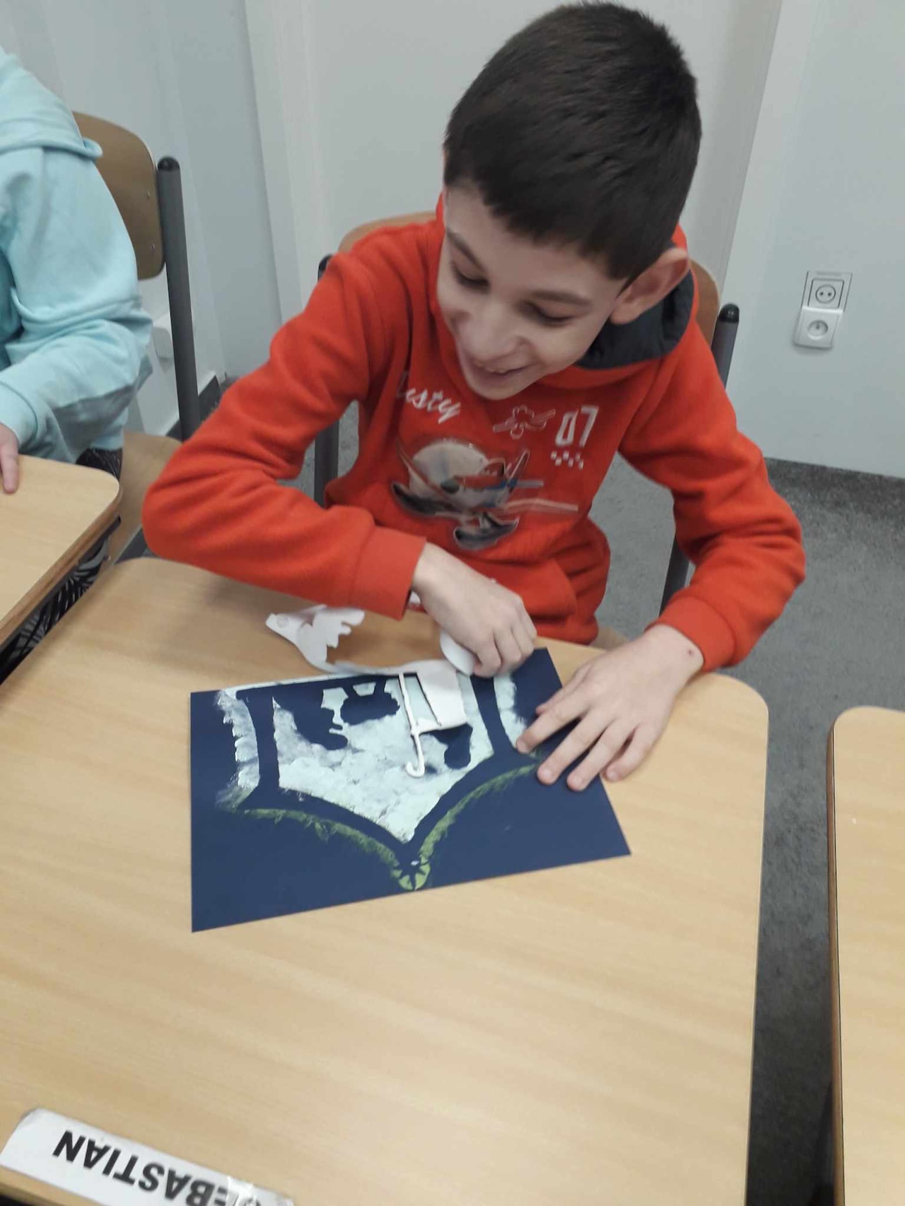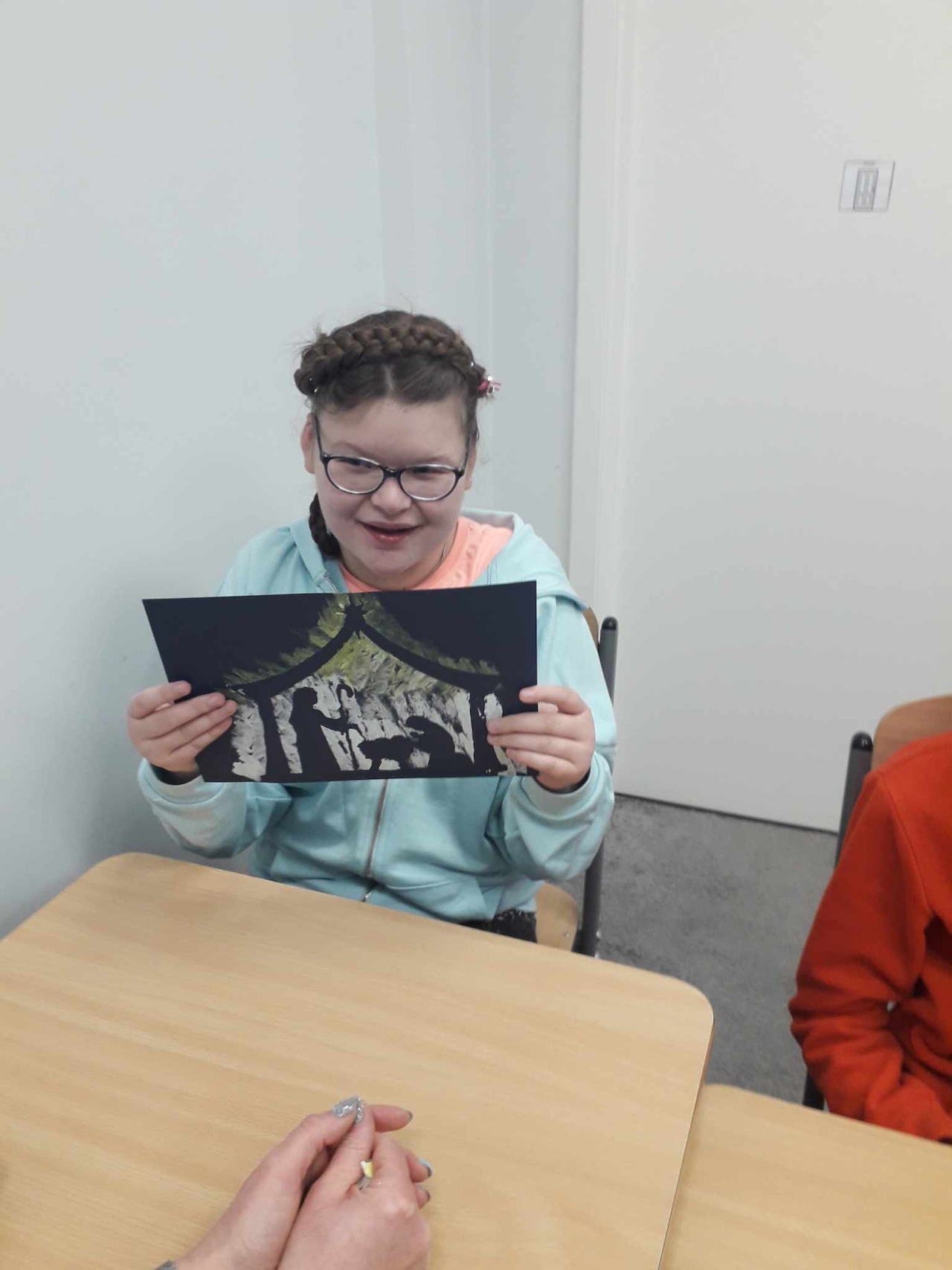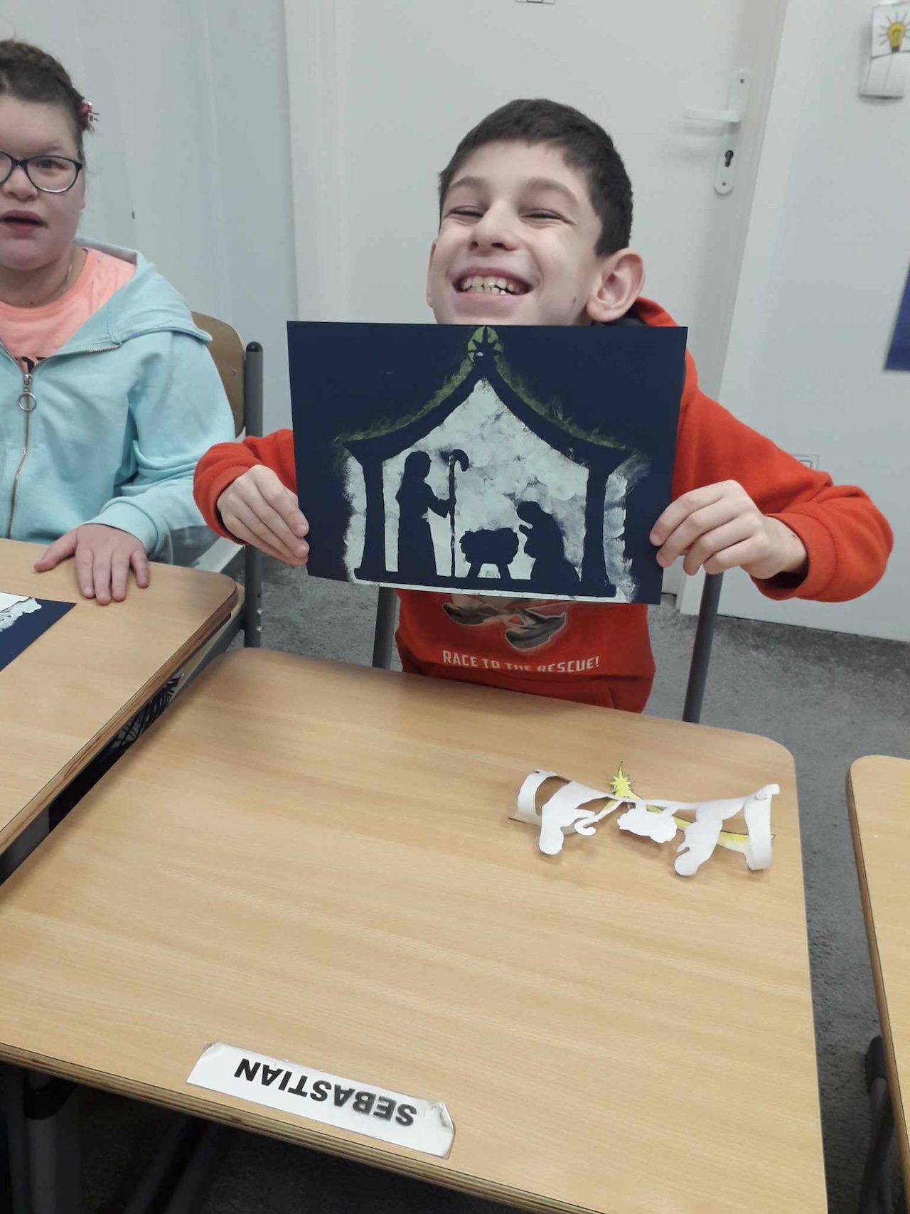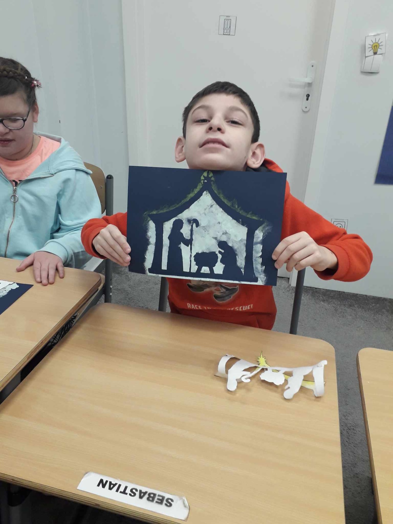 W ostatnim tygodniu przedświątecznym uczniowie oddziału „I” poznawali postacie z szopki bożonarodzeniowej i rozmawiali o nich. Zapoznali się także z tradycją robienia szopek, w tym szopek krakowskich. W ramach zajęć odwiedzili miejscową szopkę znajdującą się na Rynku i wykonali, ciekawą techniką, pracę plastyczną.