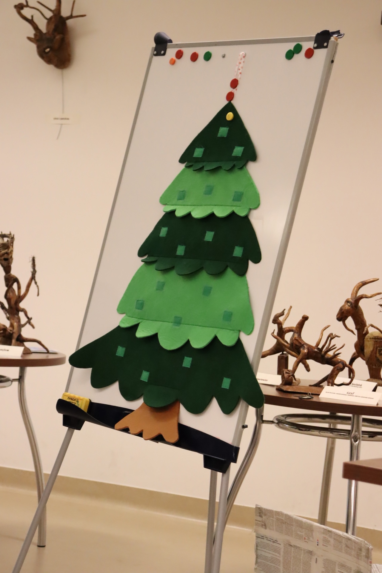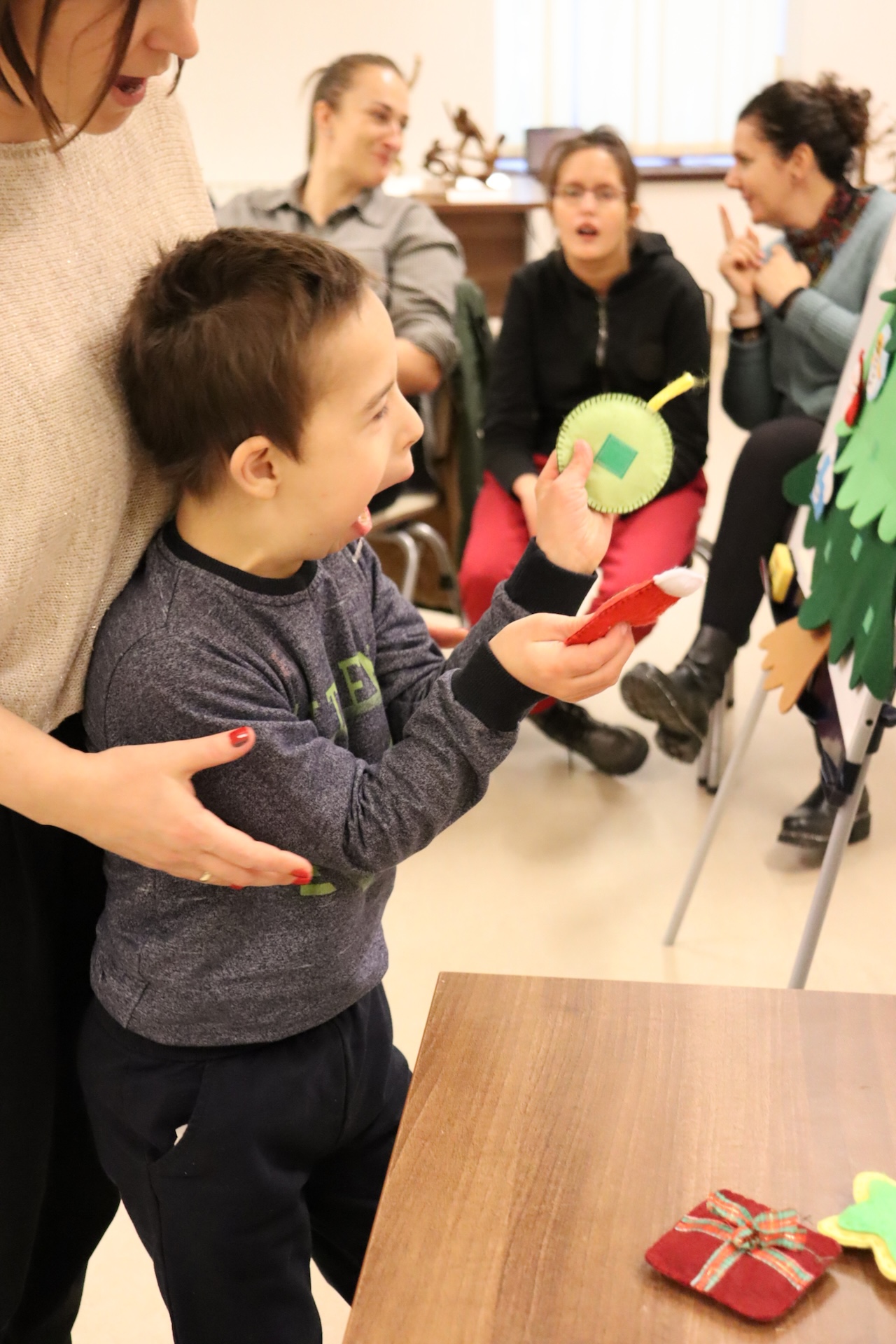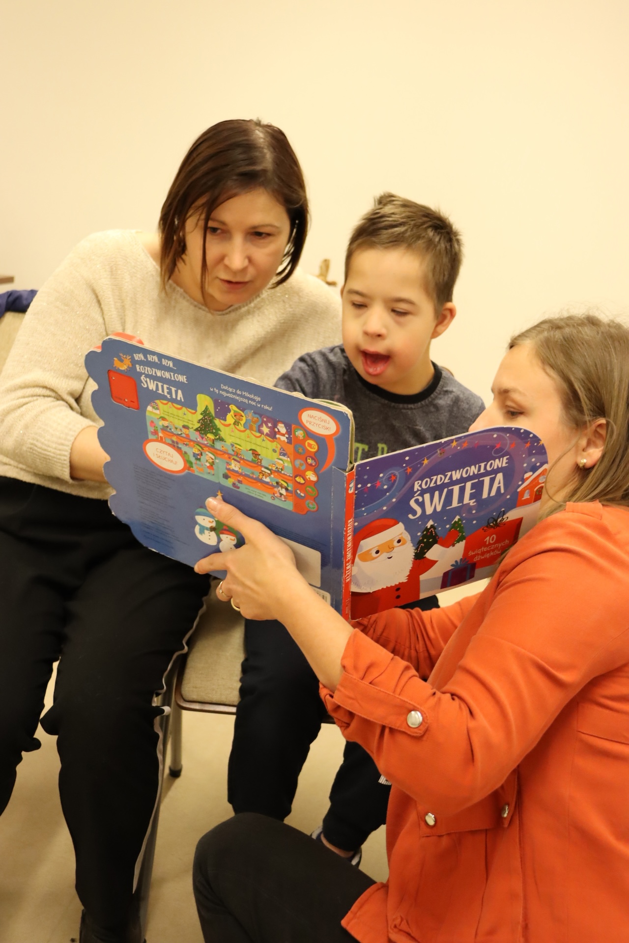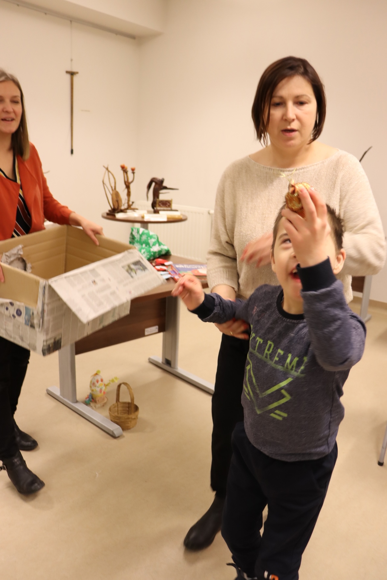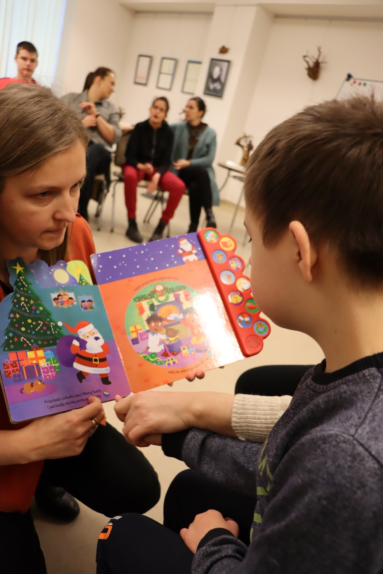 Podczas grudniowego spotkania poznaliśmy ciekawe pozycje książkowe o Mikołaju. Rozmawialiśmy o tradycji ubierania choinki na święta. Nazywaliśmy ozdoby świąteczne. Wspólnie, według przepisu Pani Karoliny, „piekliśmy pierniki”. A na koniec spotkania z gotowych elementów wykonaliśmy świąteczny portret Mikołaja.
