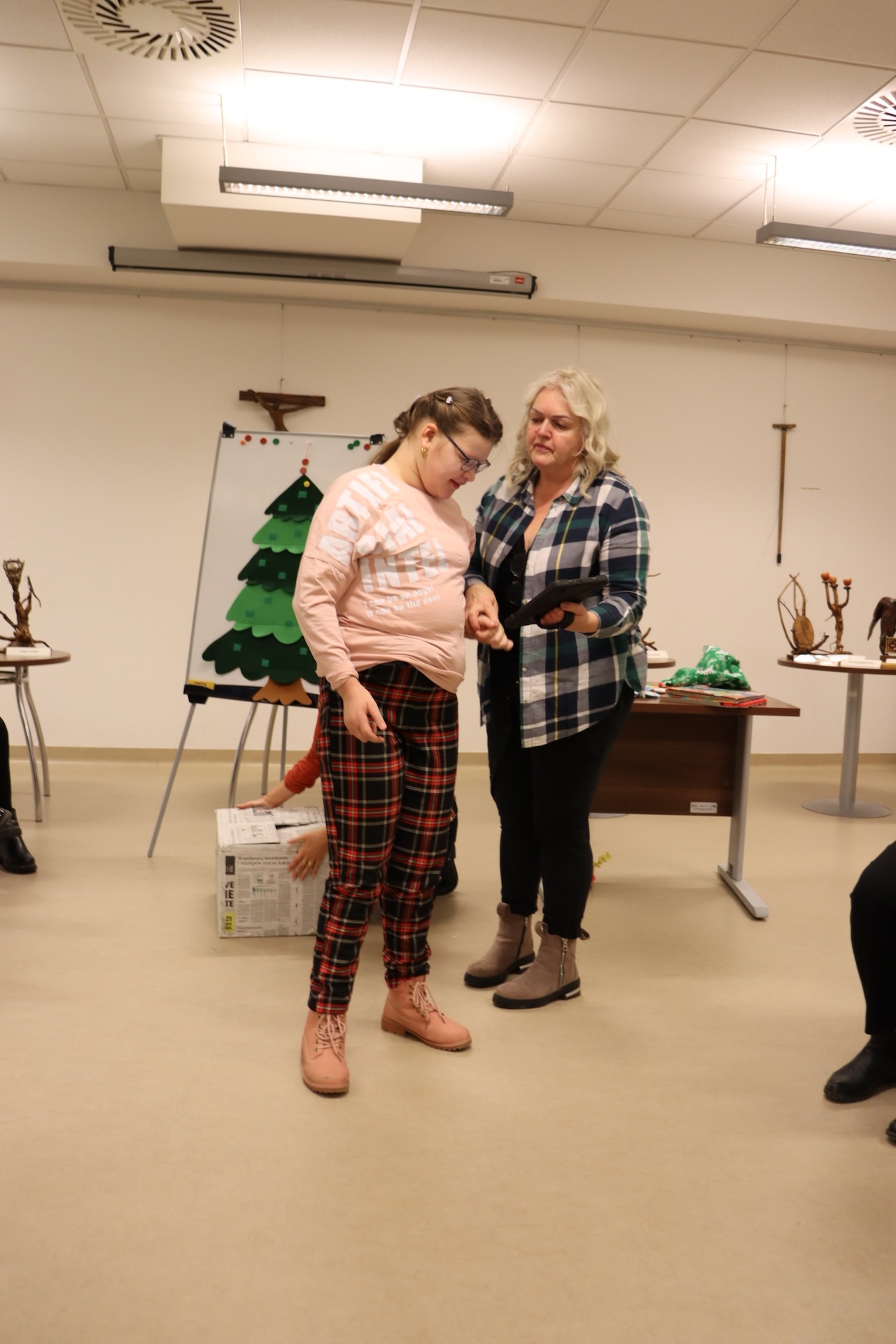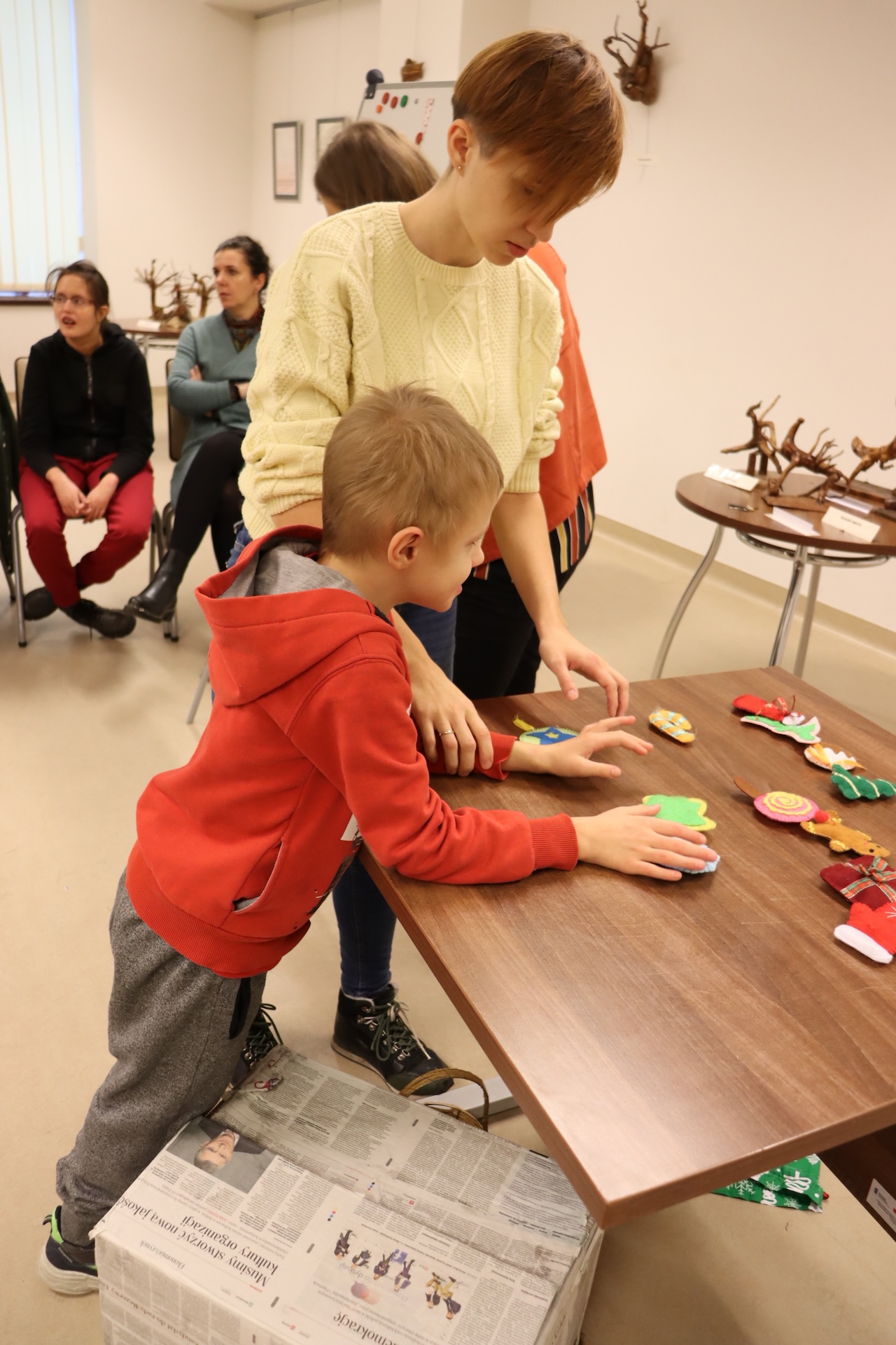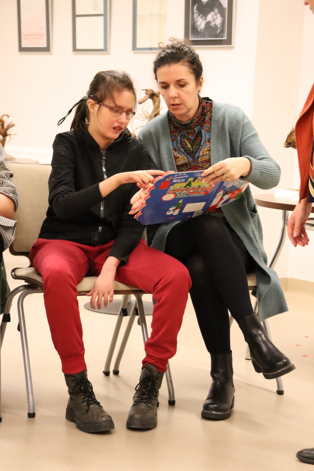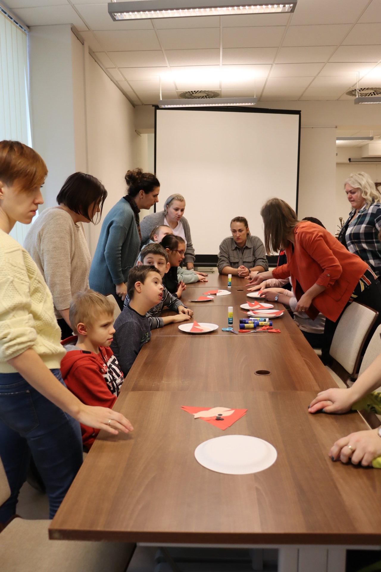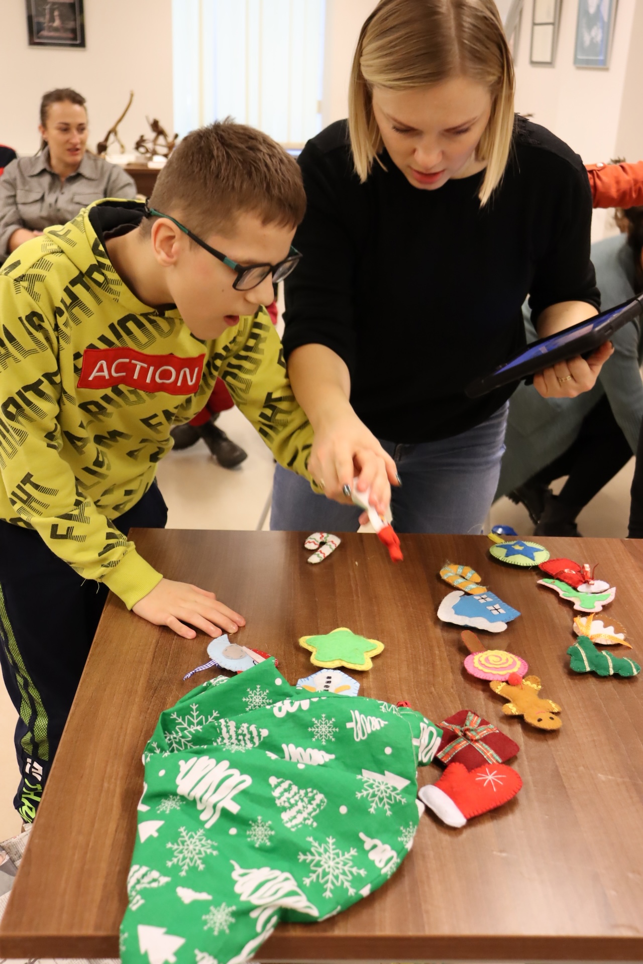 Podczas grudniowego spotkania poznaliśmy ciekawe pozycje książkowe o Mikołaju. Rozmawialiśmy o tradycji ubierania choinki na święta. Nazywaliśmy ozdoby świąteczne. Wspólnie, według przepisu Pani Karoliny, „piekliśmy pierniki”. A na koniec spotkania z gotowych elementów wykonaliśmy świąteczny portret Mikołaja.