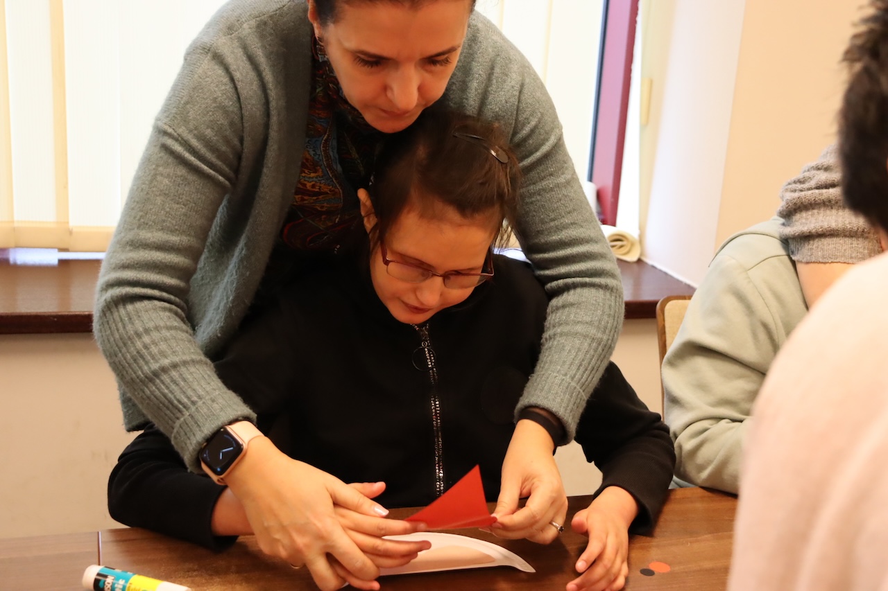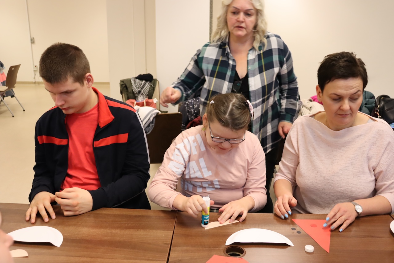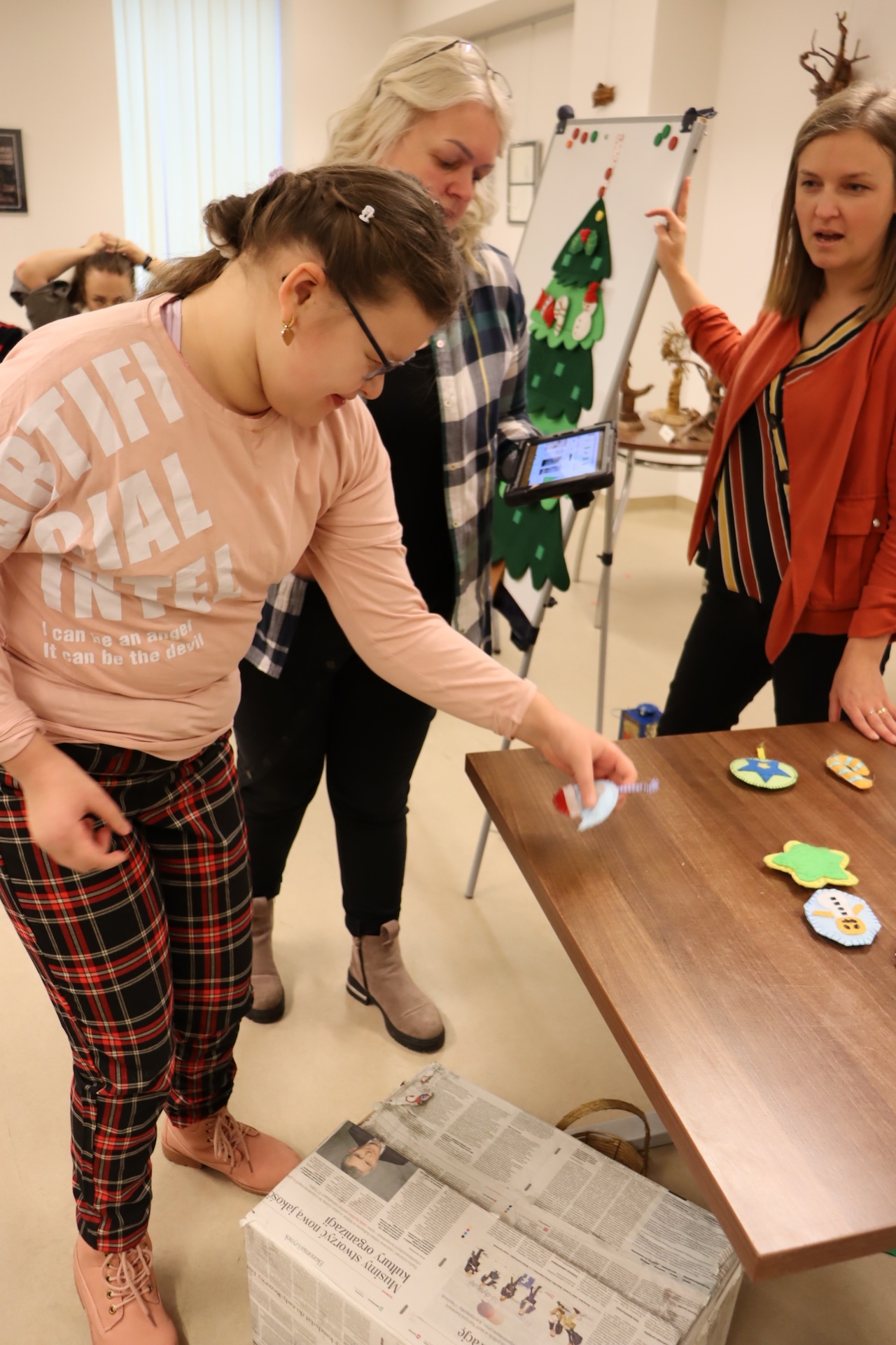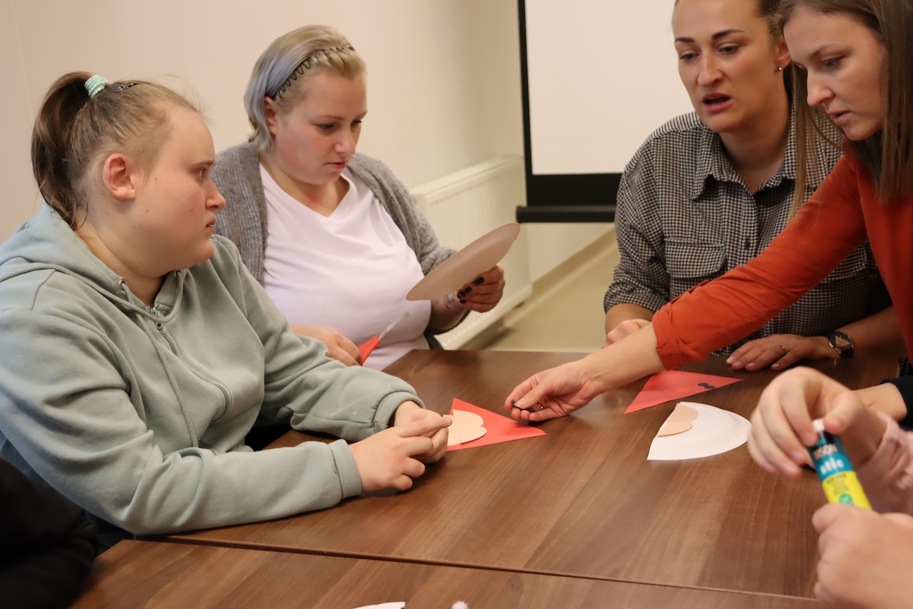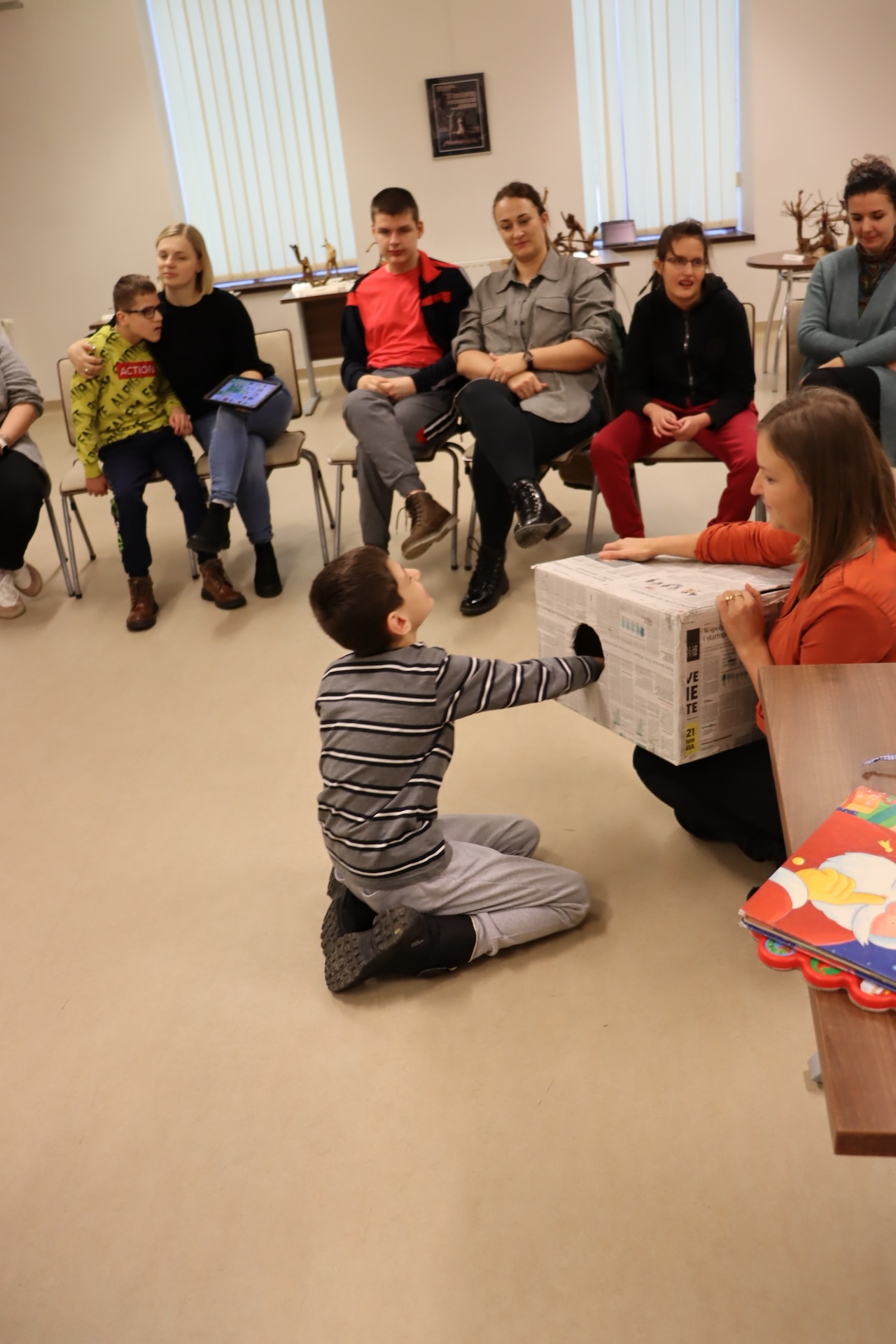 Podczas grudniowego spotkania poznaliśmy ciekawe pozycje książkowe o Mikołaju. Rozmawialiśmy o tradycji ubierania choinki na święta. Nazywaliśmy ozdoby świąteczne. Wspólnie, według przepisu Pani Karoliny, „piekliśmy pierniki”. A na koniec spotkania z gotowych elementów wykonaliśmy świąteczny portret Mikołaja.