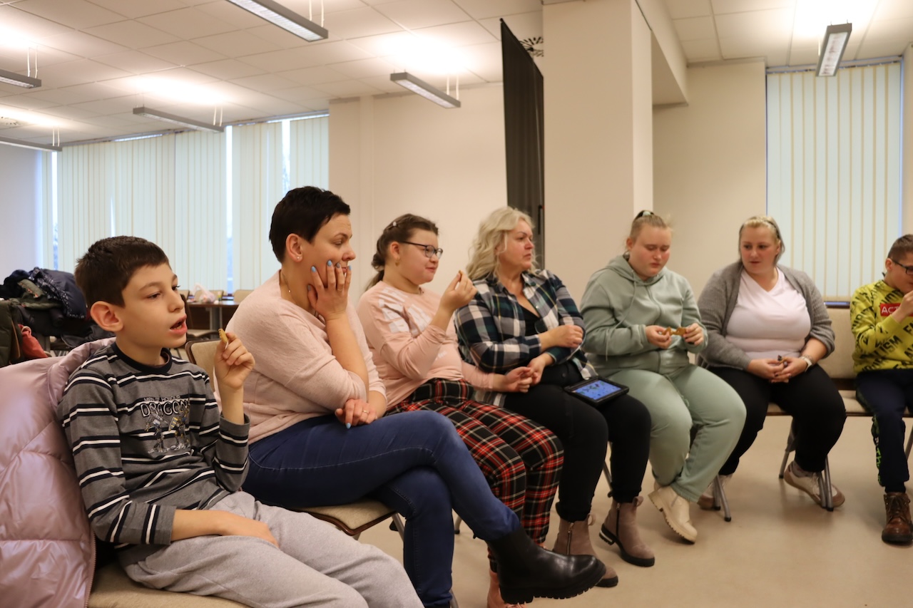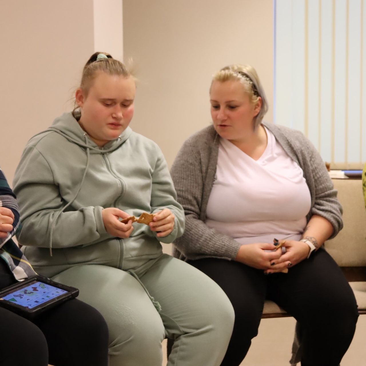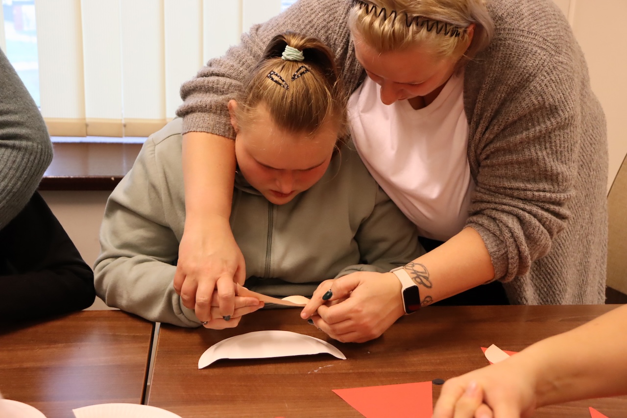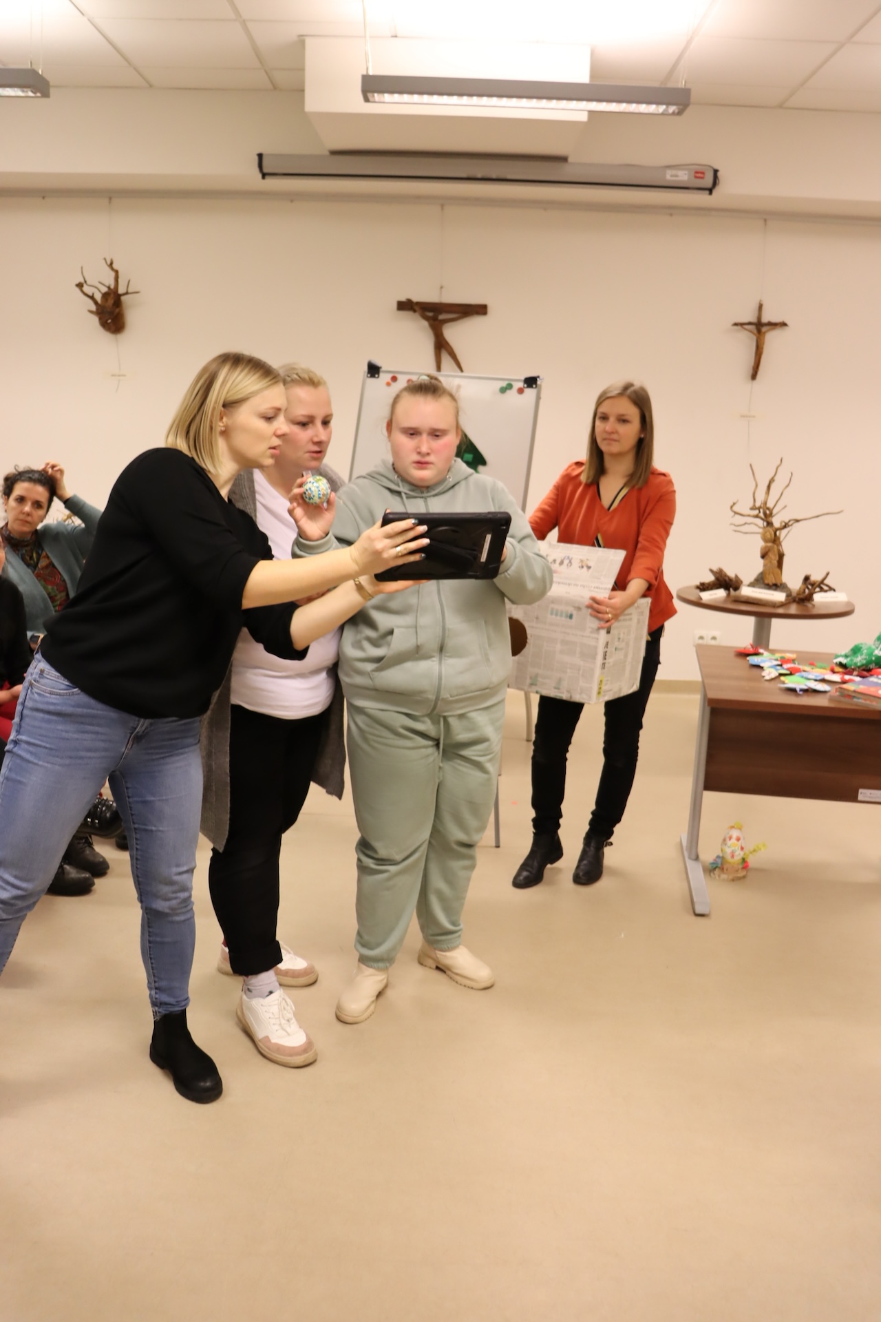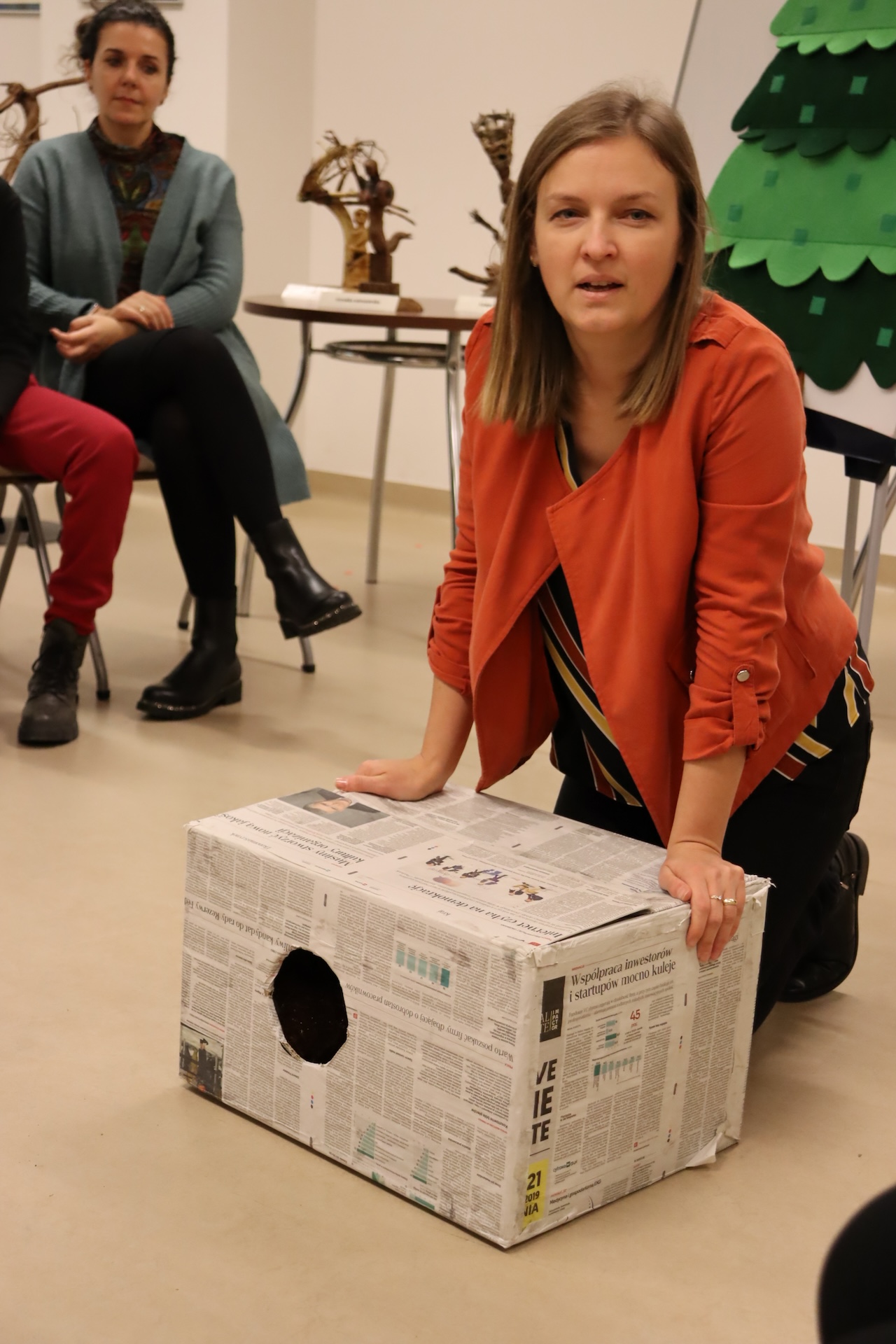 Podczas grudniowego spotkania poznaliśmy ciekawe pozycje książkowe o Mikołaju. Rozmawialiśmy o tradycji ubierania choinki na święta. Nazywaliśmy ozdoby świąteczne. Wspólnie, według przepisu Pani Karoliny, „piekliśmy pierniki”. A na koniec spotkania z gotowych elementów wykonaliśmy świąteczny portret Mikołaja.