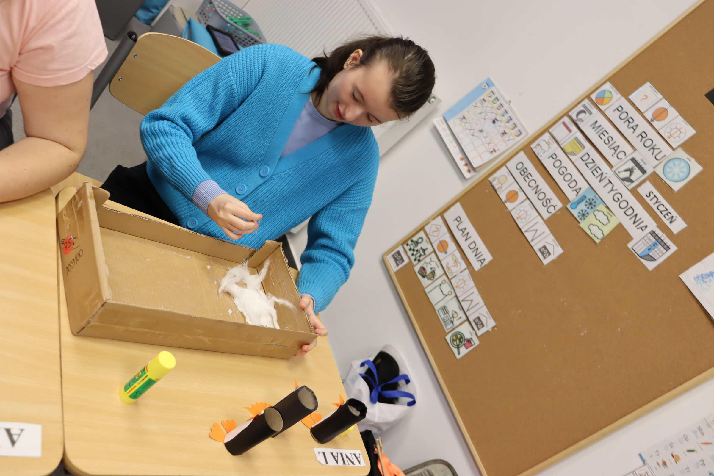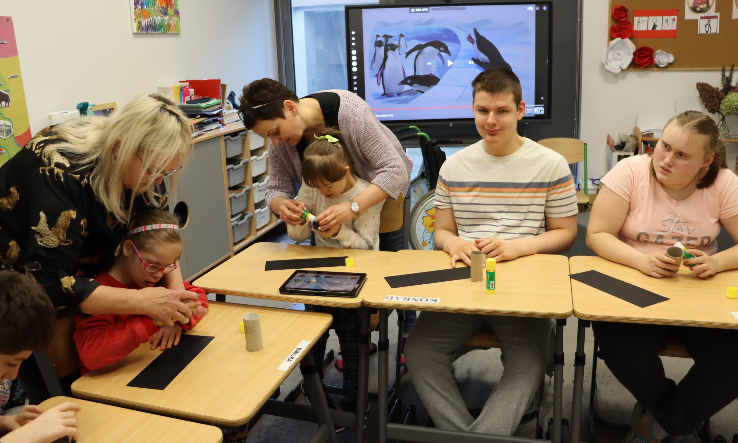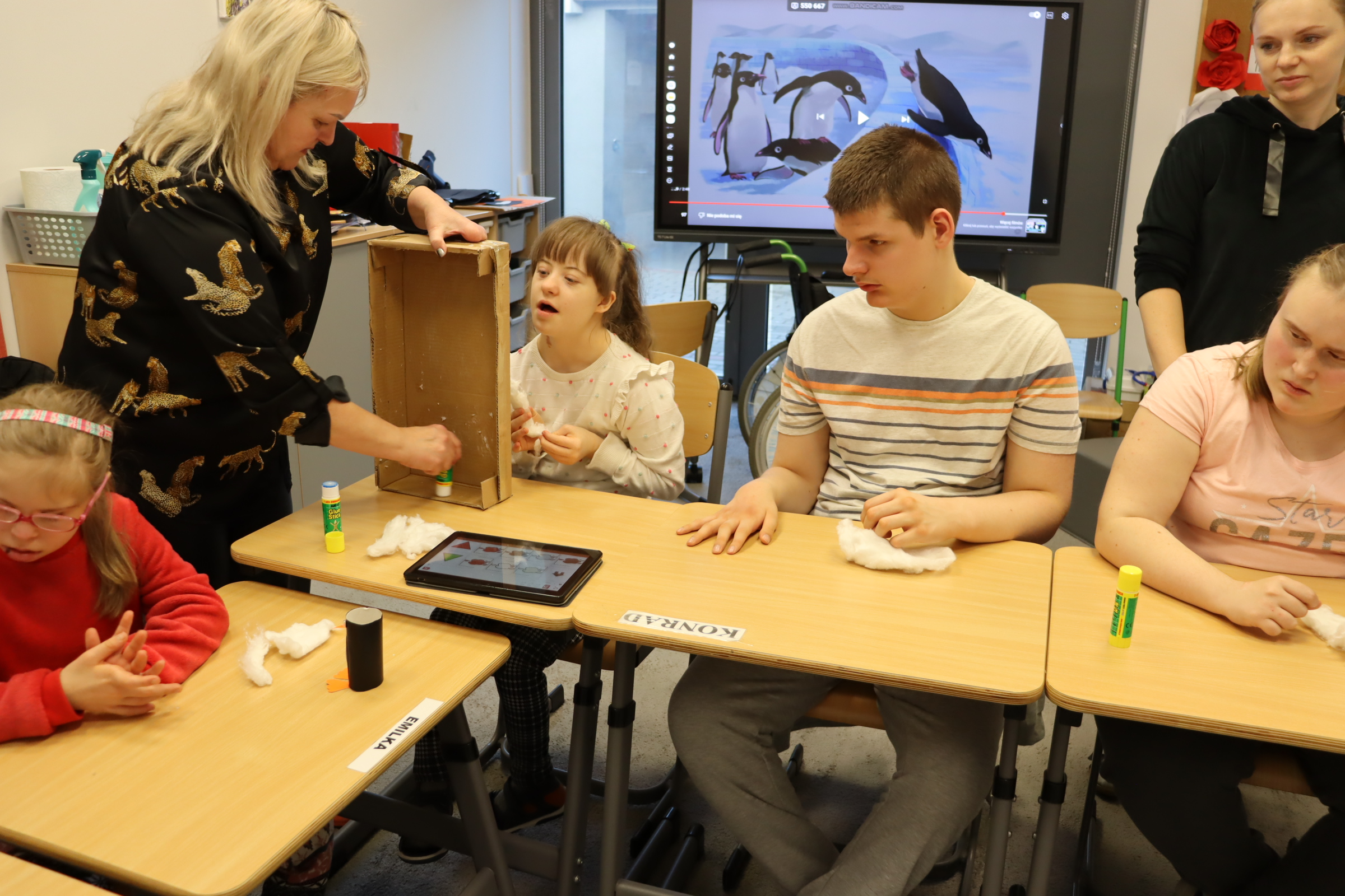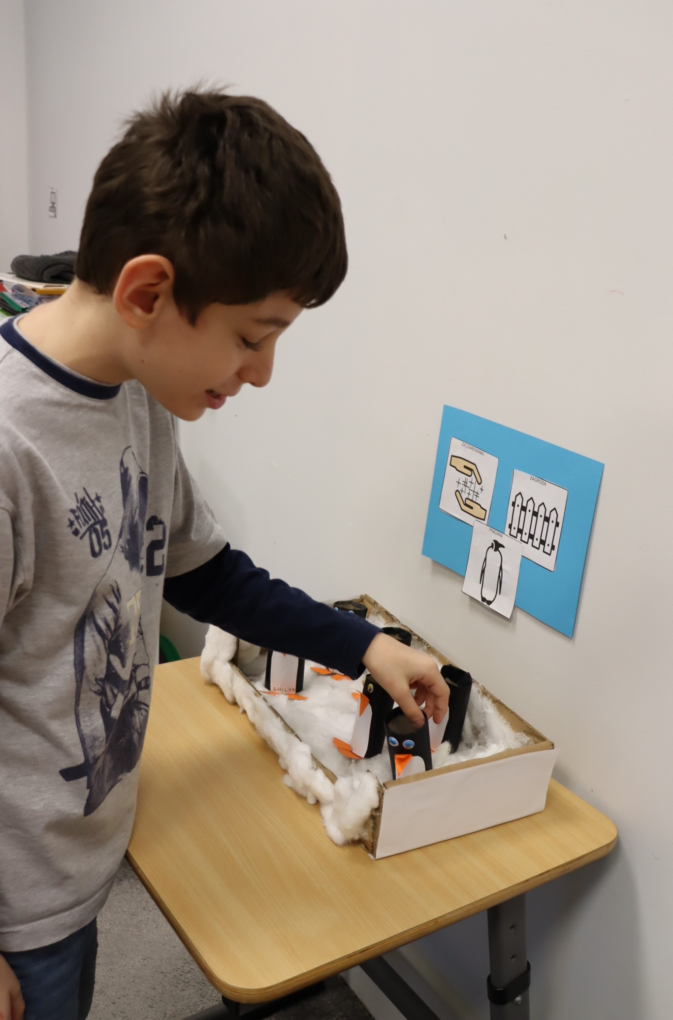 W styczniu, w ramach realizowanego w naszej szkole Projektu „Dotknij, poczuj, zobacz” uczniowie obchodzili Dzień Wiedzy o Pingwinach. Podczas zajęć edukacyjnych słuchali fragmentu opowiadania pt. „Zaczarowana Zagroda” autorstwa A. i Cz. Cenkiewiczów, na podstawie którego omówili wygląd pingwina, a Pani przeczytała im kilka ciekawostek na temat tych ptaków. Uczniowie wykonali także pracę plastyczną pt. „Zaczarowana Zagroda”. Oto fotorelacja z ich pracy.