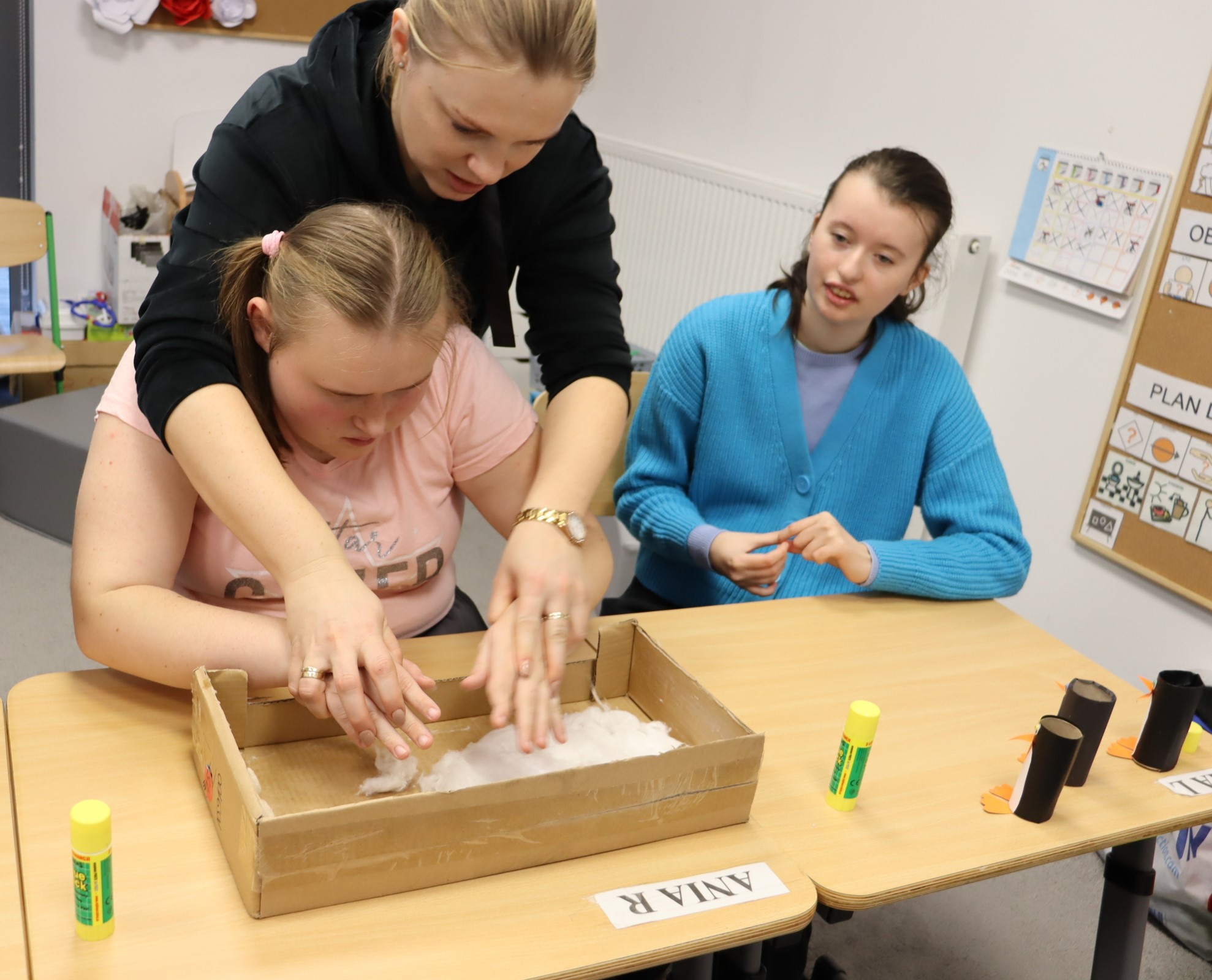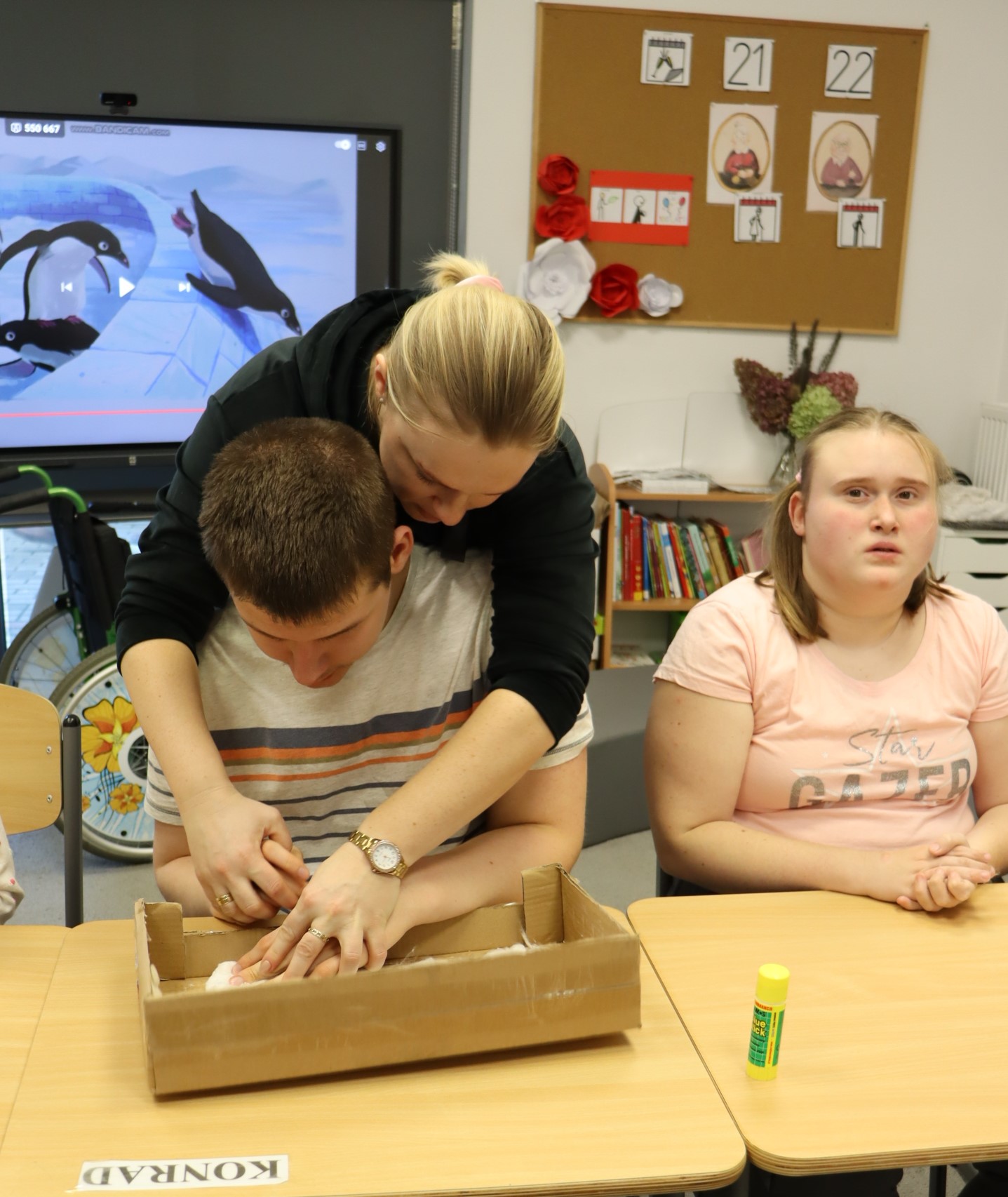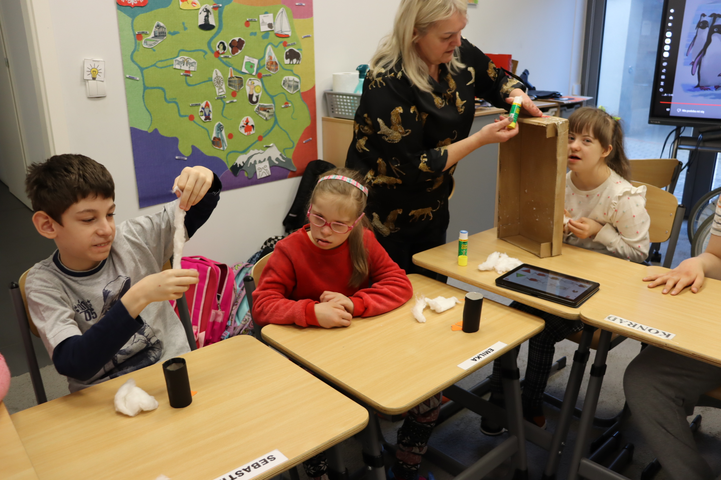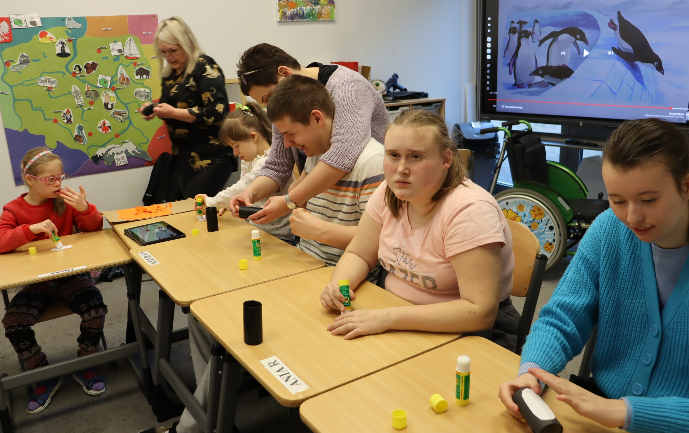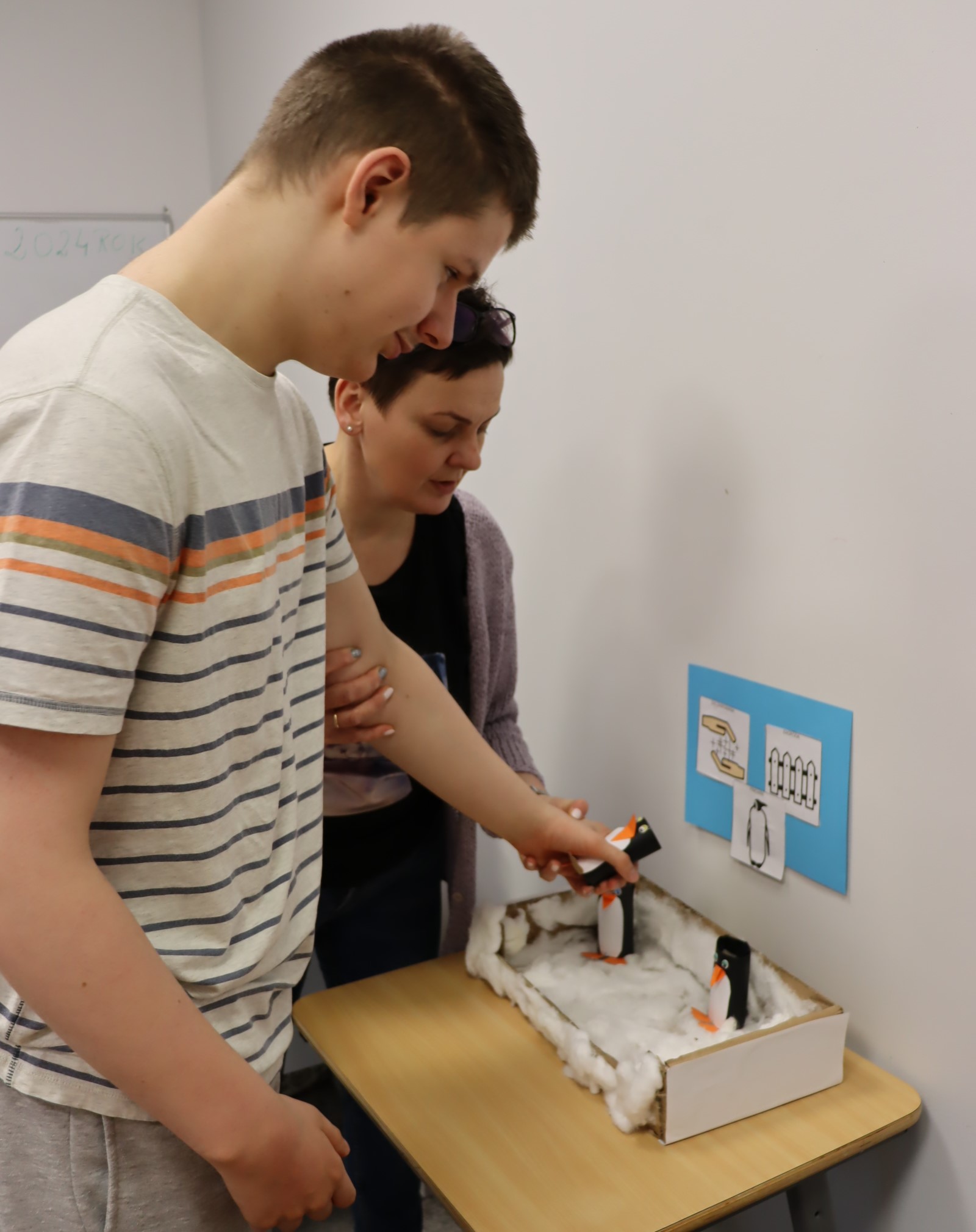 W styczniu, w ramach realizowanego w naszej szkole Projektu „Dotknij, poczuj, zobacz” uczniowie obchodzili Dzień Wiedzy o Pingwinach. Podczas zajęć edukacyjnych słuchali fragmentu opowiadania pt. „Zaczarowana Zagroda” autorstwa A. i Cz. Cenkiewiczów, na podstawie którego omówili wygląd pingwina, a Pani przeczytała im kilka ciekawostek na temat tych ptaków. Uczniowie wykonali także pracę plastyczną pt. „Zaczarowana Zagroda”. Oto fotorelacja z ich pracy.