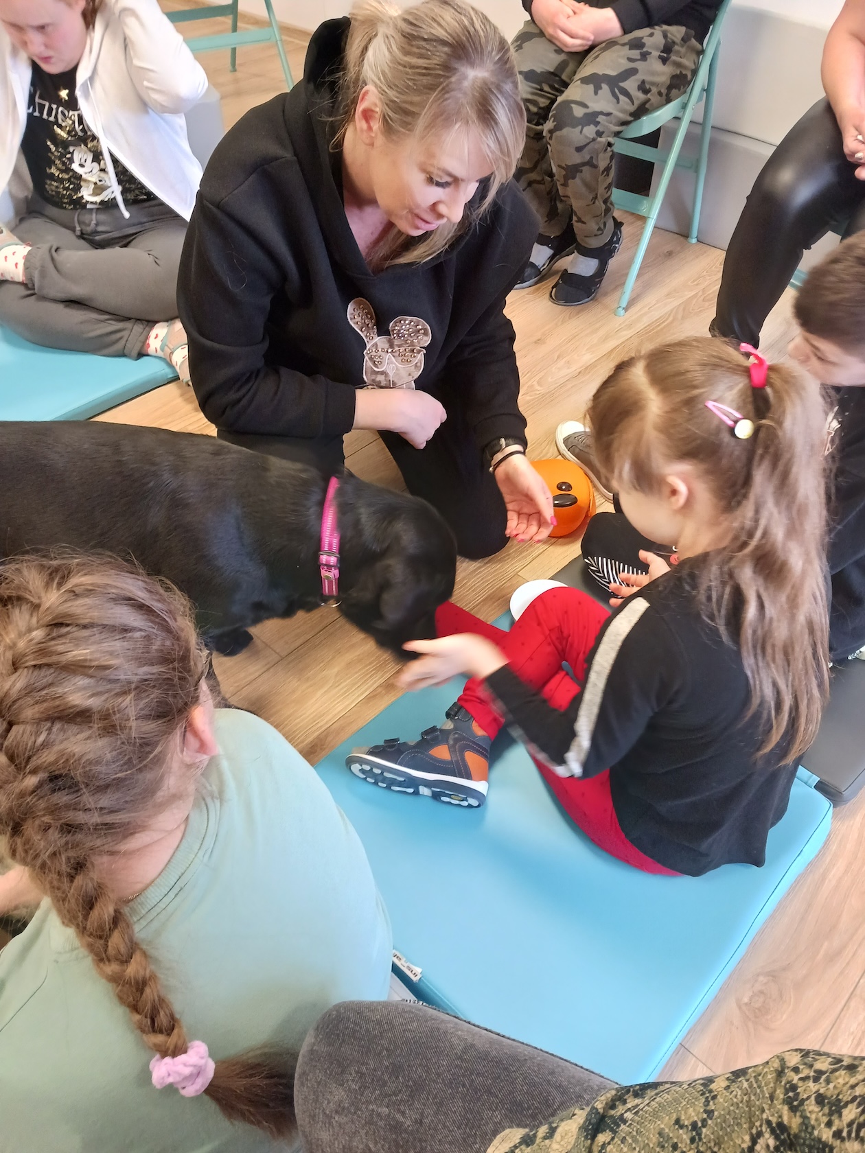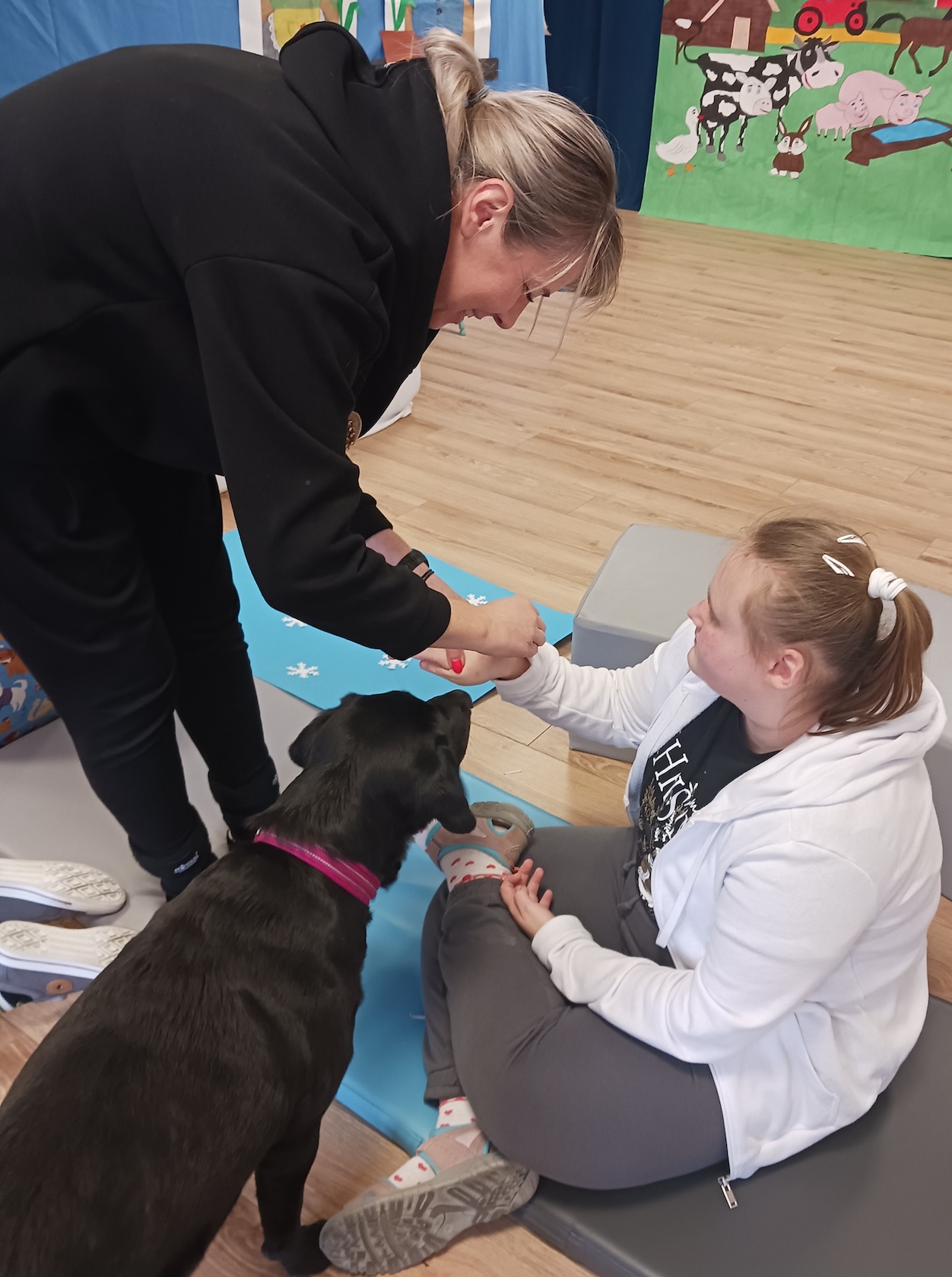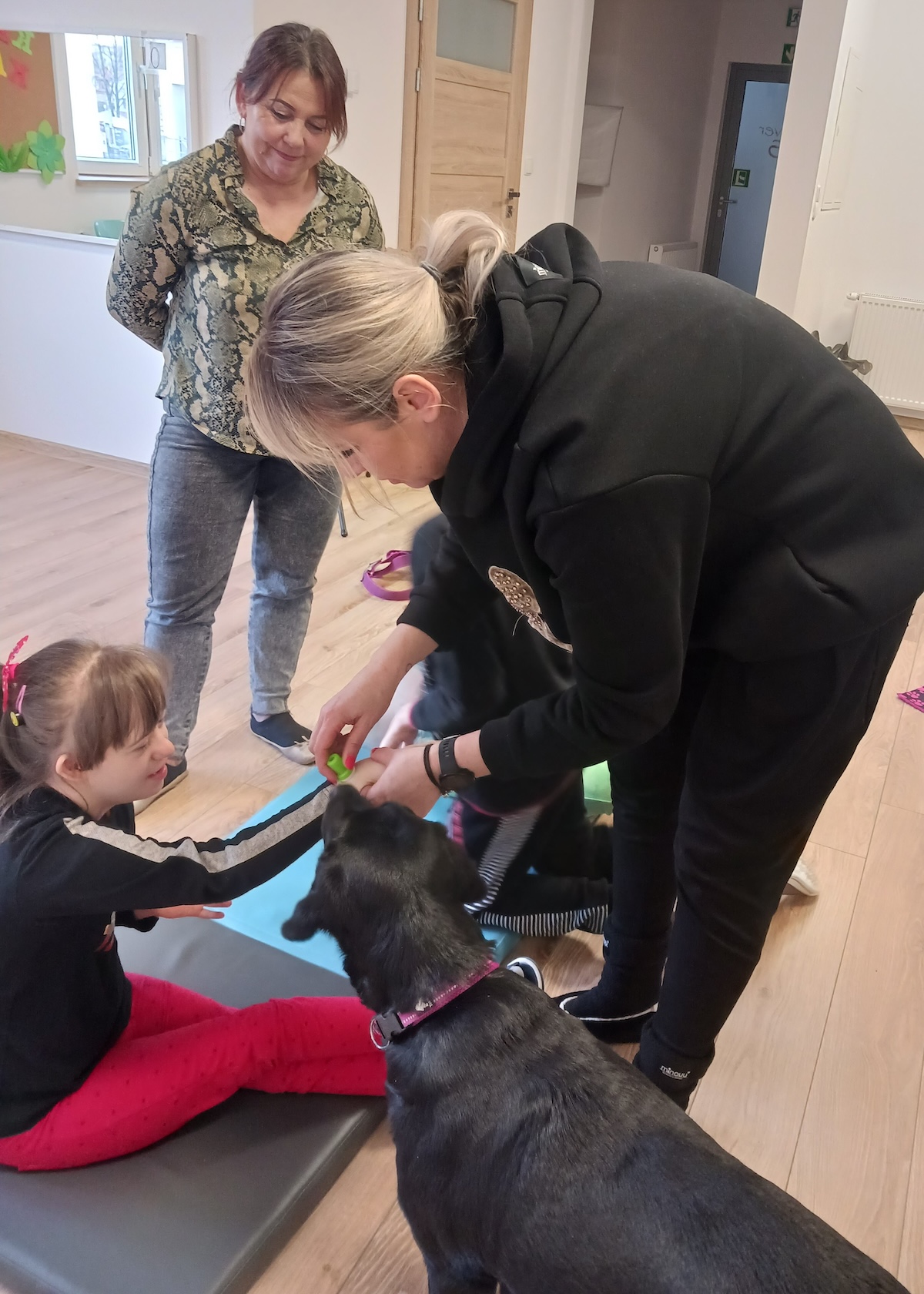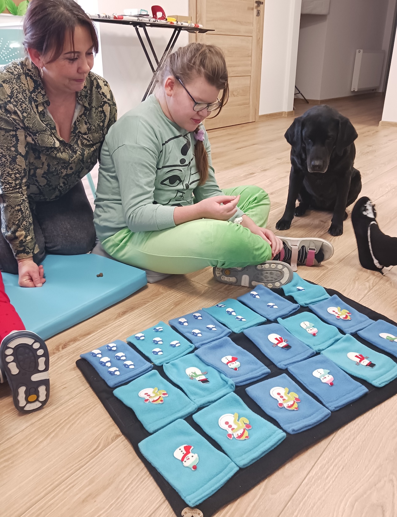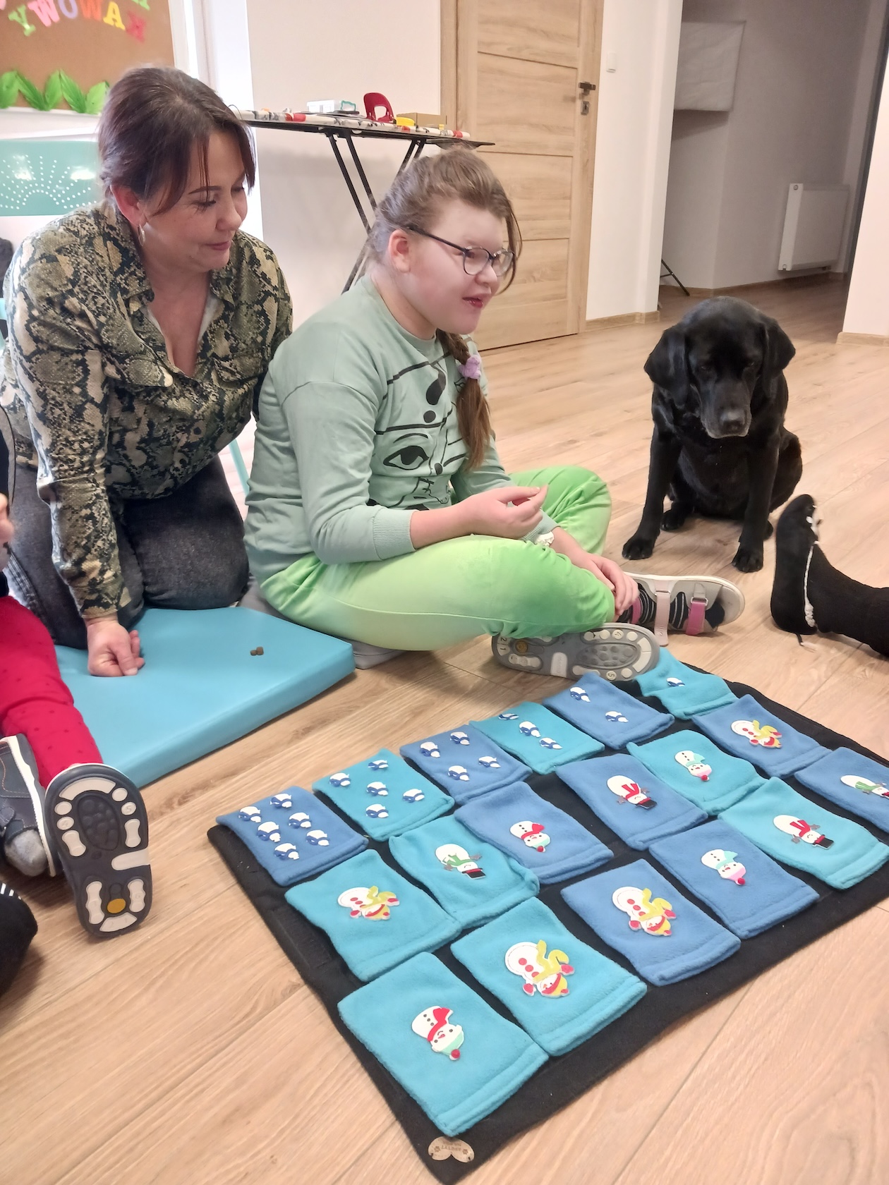W lutym podczas zajęć dogoterapii uczniowie szukali w pudełeczku ze śniegiem gwiazdek i dopasowywali je do gotowej planszy. Potem chowali odpowiednio do ilości wylosowanych gwiazdek „psi smaczek” pod danym okienkiem z bałwankiem , a następnie ćwiczyli komendy „szukaj” i „łapa” . Dzieci chętnie współpracują z Panią Kamilą i jej psami . Dziękujemy za tak wspaniale przygotowaną każdą lekcję .