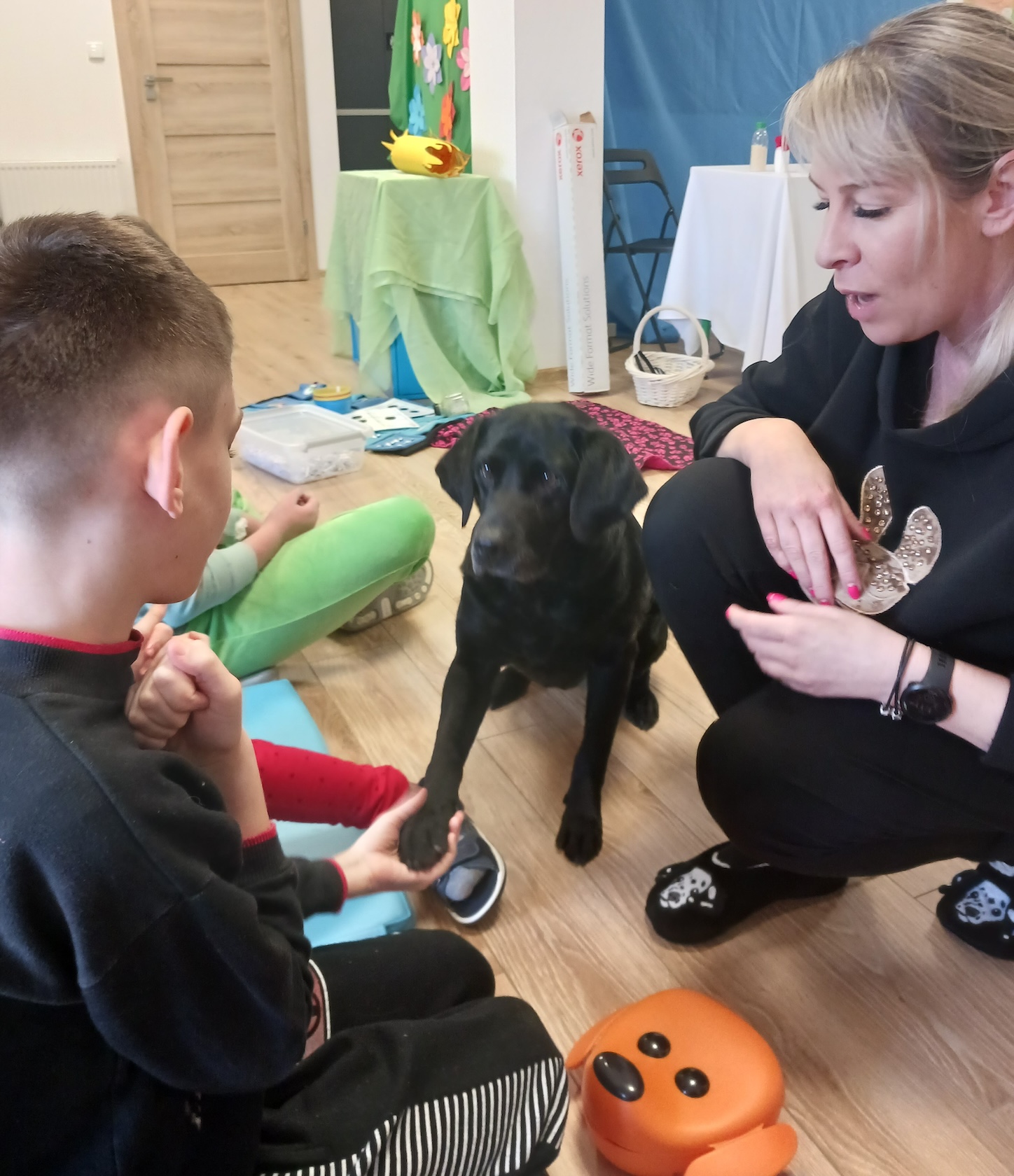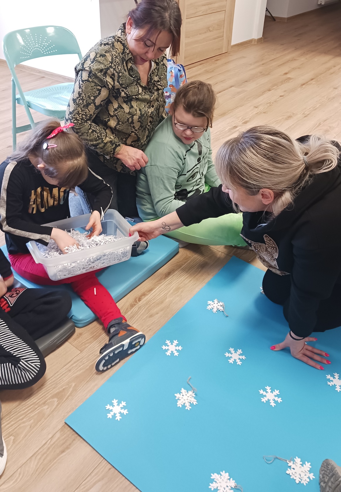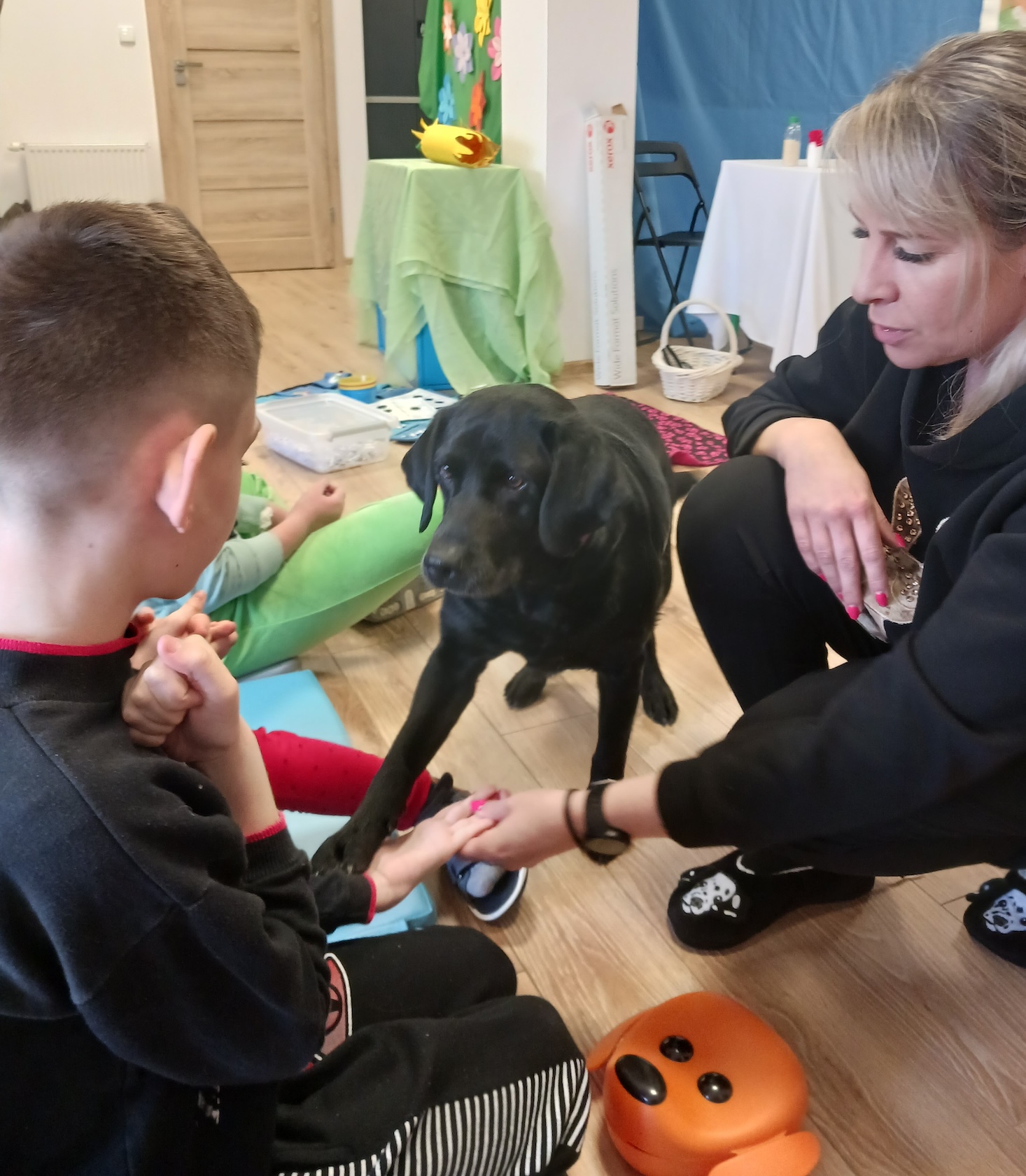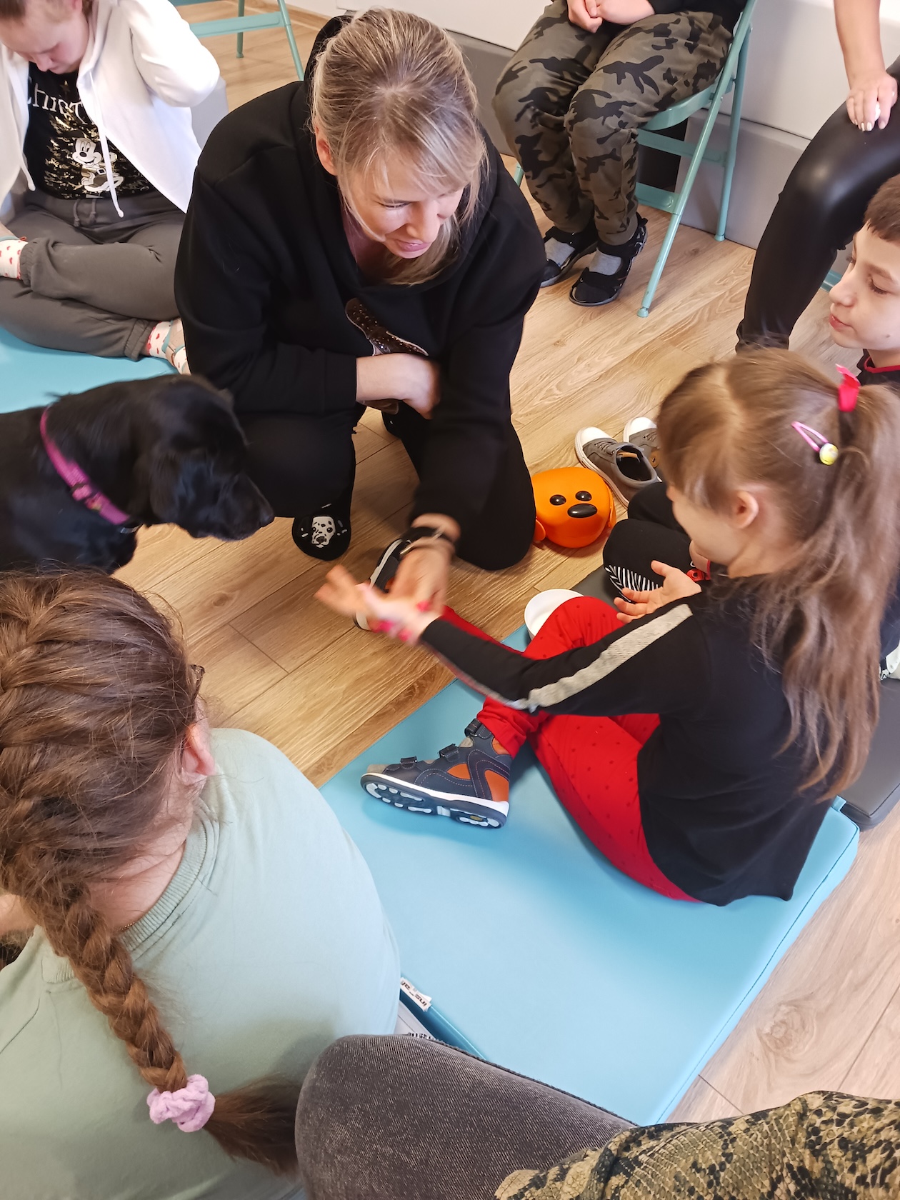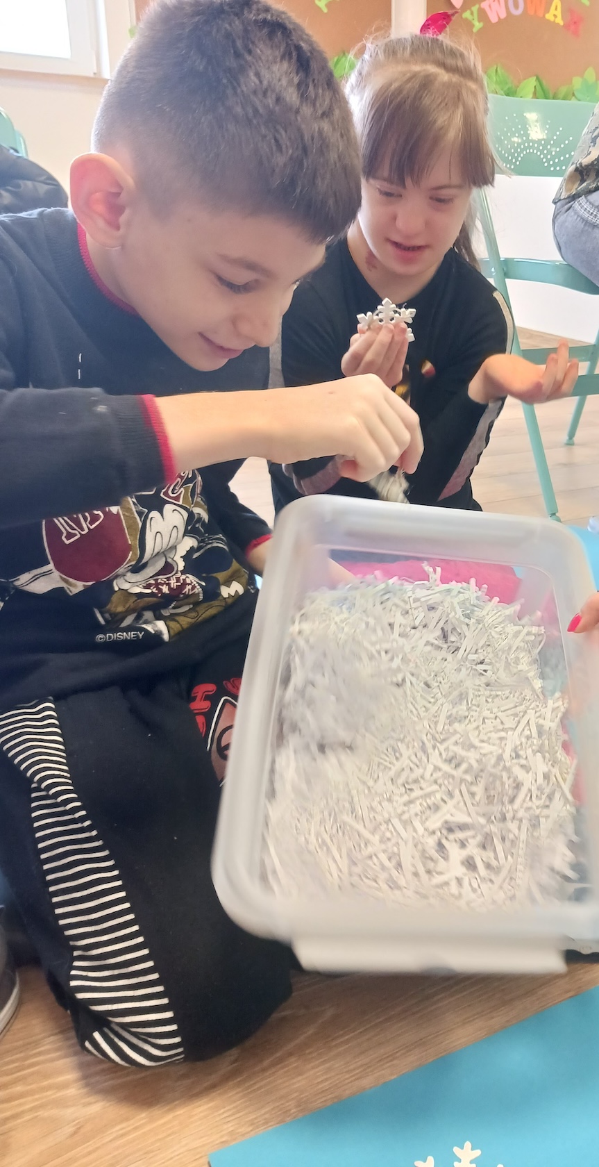 W lutym podczas zajęć dogoterapii uczniowie szukali w pudełeczku ze śniegiem gwiazdek i dopasowywali je do gotowej planszy. Potem chowali odpowiednio do ilości wylosowanych gwiazdek „psi smaczek” pod danym okienkiem z bałwankiem , a następnie ćwiczyli komendy „szukaj” i „łapa” . Dzieci chętnie współpracują z Panią Kamilą i jej psami . Dziękujemy za tak wspaniale przygotowaną każdą lekcję .