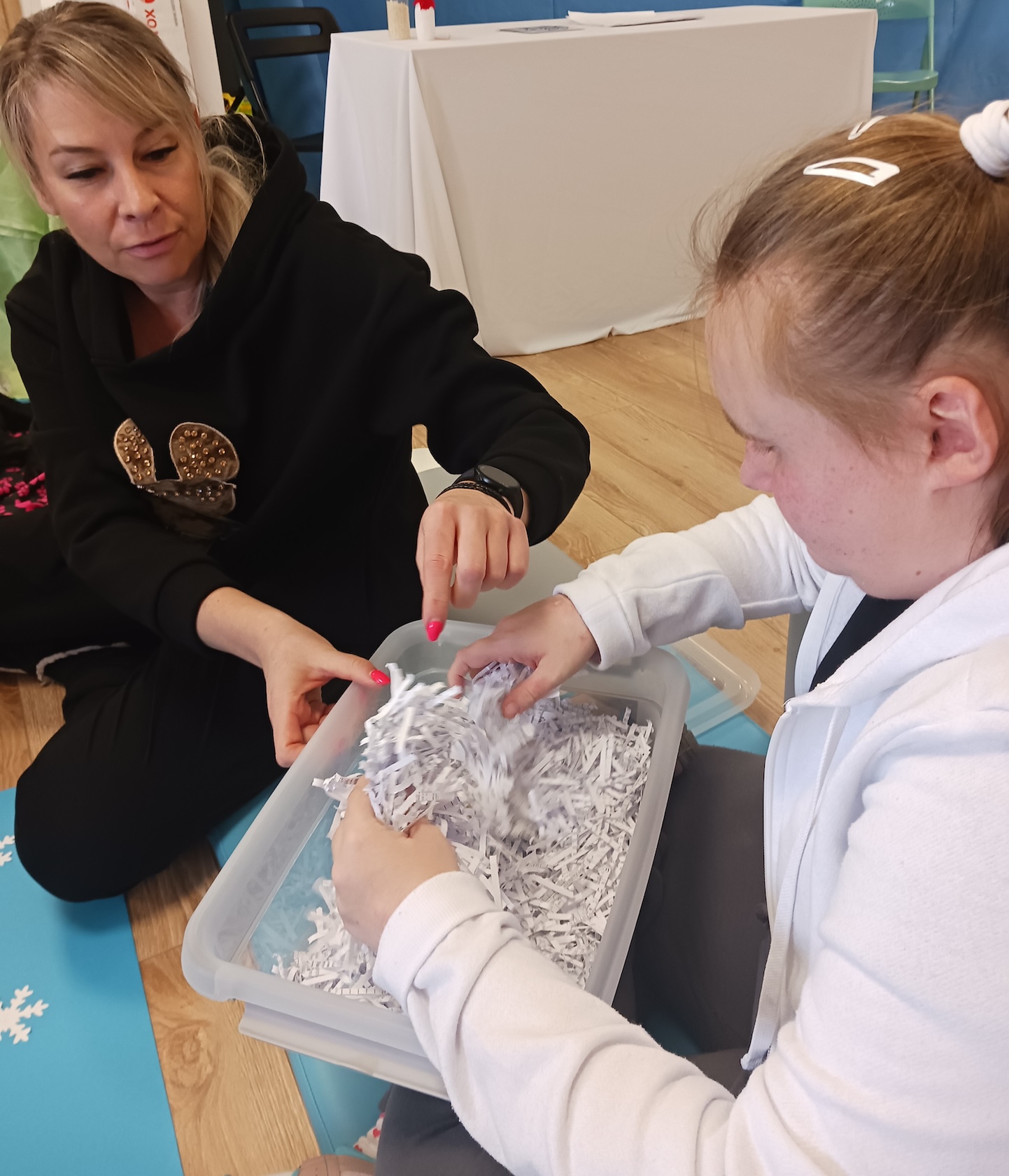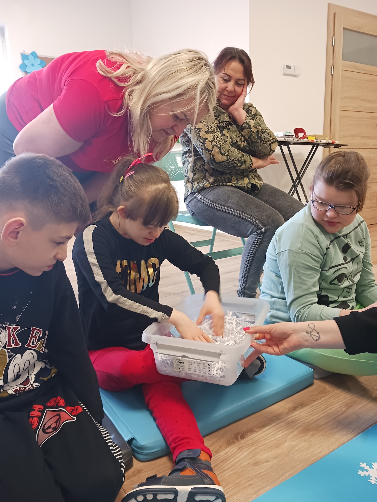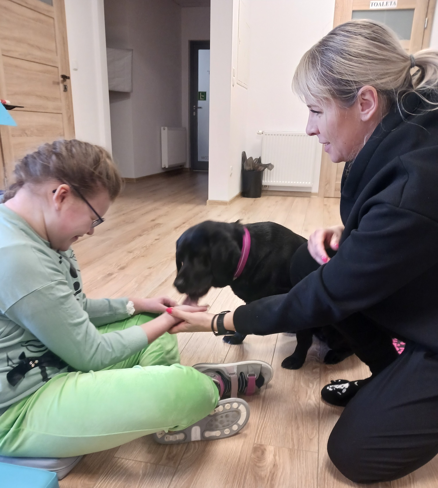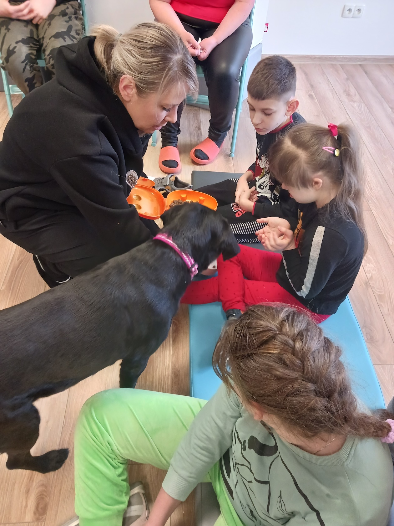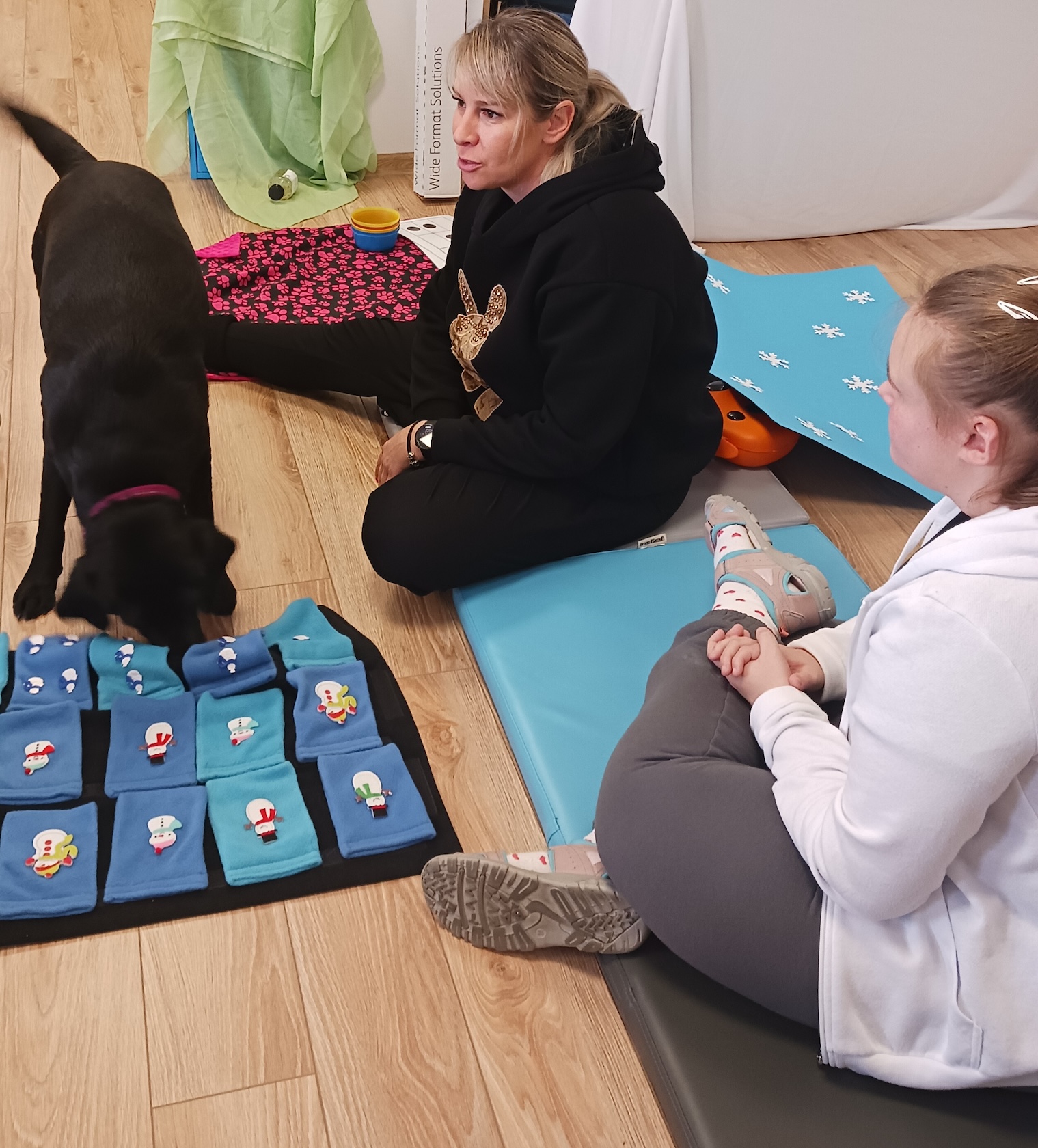 W lutym podczas zajęć dogoterapii uczniowie szukali w pudełeczku ze śniegiem gwiazdek i dopasowywali je do gotowej planszy. Potem chowali odpowiednio do ilości wylosowanych gwiazdek „psi smaczek” pod danym okienkiem z bałwankiem , a następnie ćwiczyli komendy „szukaj” i „łapa” . Dzieci chętnie współpracują z Panią Kamilą i jej psami . Dziękujemy za tak wspaniale przygotowaną każdą lekcję .