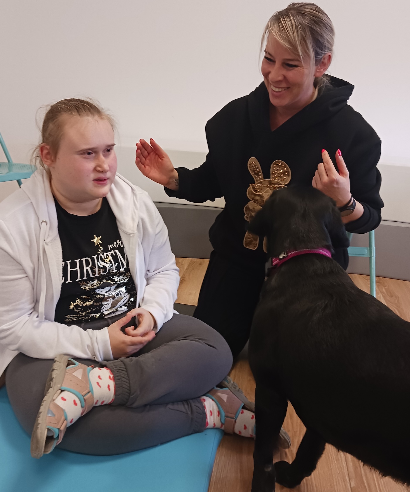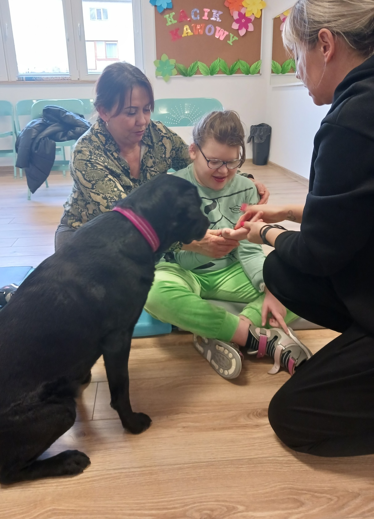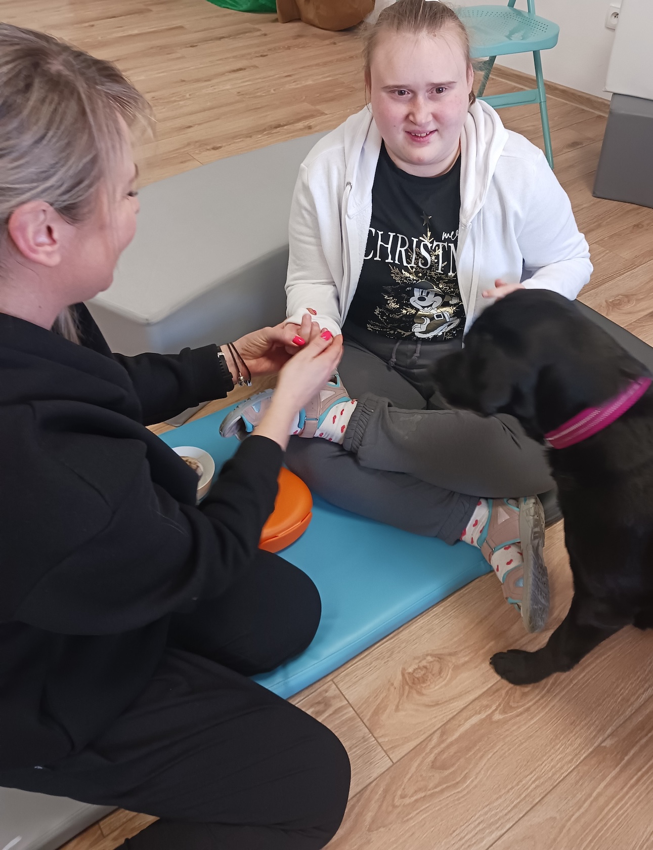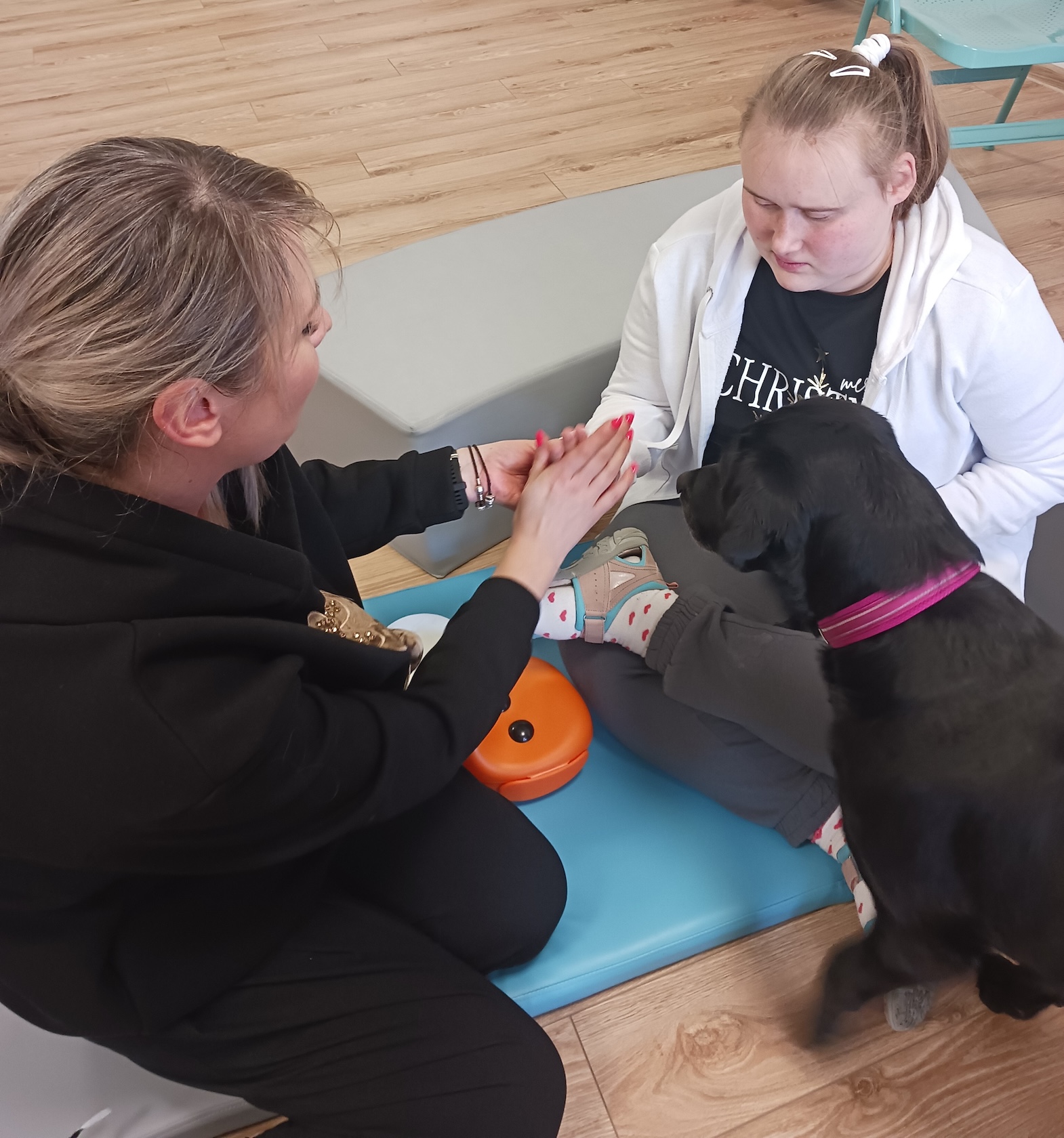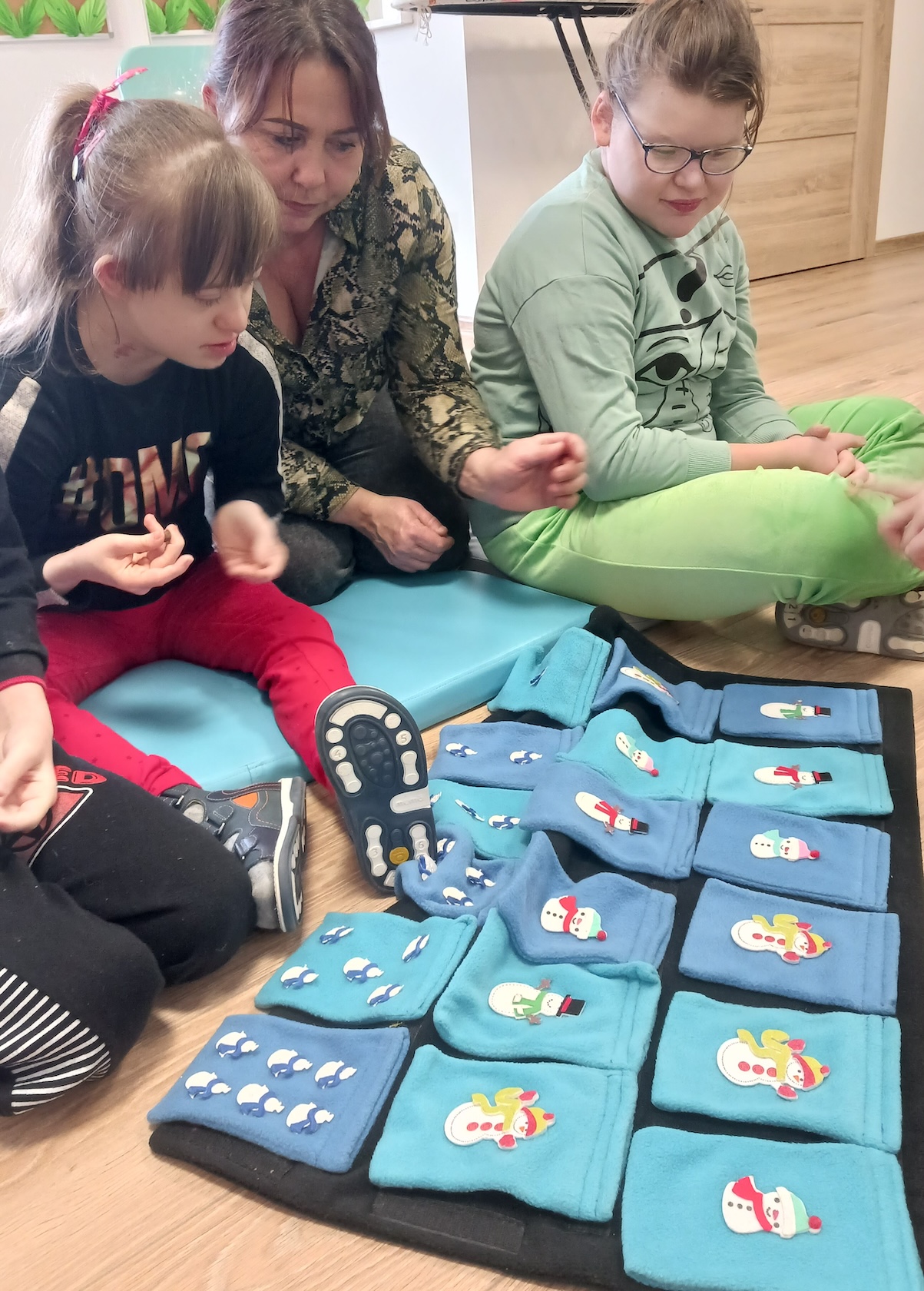 W lutym podczas zajęć dogoterapii uczniowie szukali w pudełeczku ze śniegiem gwiazdek i dopasowywali je do gotowej planszy. Potem chowali odpowiednio do ilości wylosowanych gwiazdek „psi smaczek” pod danym okienkiem z bałwankiem , a następnie ćwiczyli komendy „szukaj” i „łapa” . Dzieci chętnie współpracują z Panią Kamilą i jej psami . Dziękujemy za tak wspaniale przygotowaną każdą lekcję .