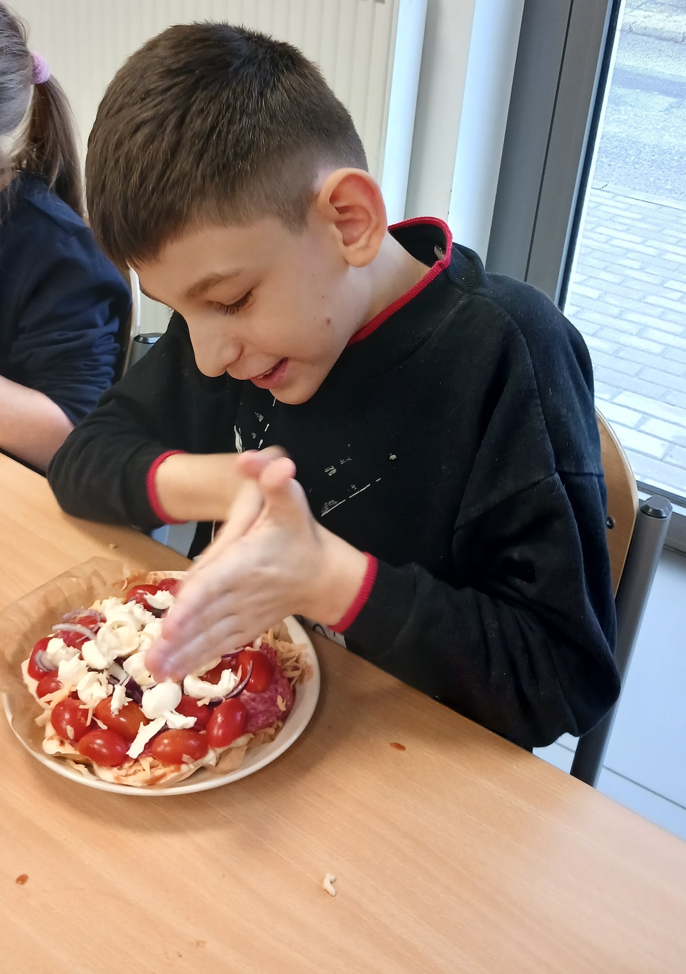 Międzynarodowy Dzień Pizzy przypada na 9 lutego. Tego dnia w naszej szkole na obiad serwowaliśmy to pyszne danie . Każde z dzieci przyniosło swoje ulubione składniki i przyrządziło pizzę dla siebie . Była to doskonała okazja do nauki rozpoznawania różnych zapachów i smaków. Każdy z nas śmiało stwierdził, że to był naprawdę smakowity dzień .