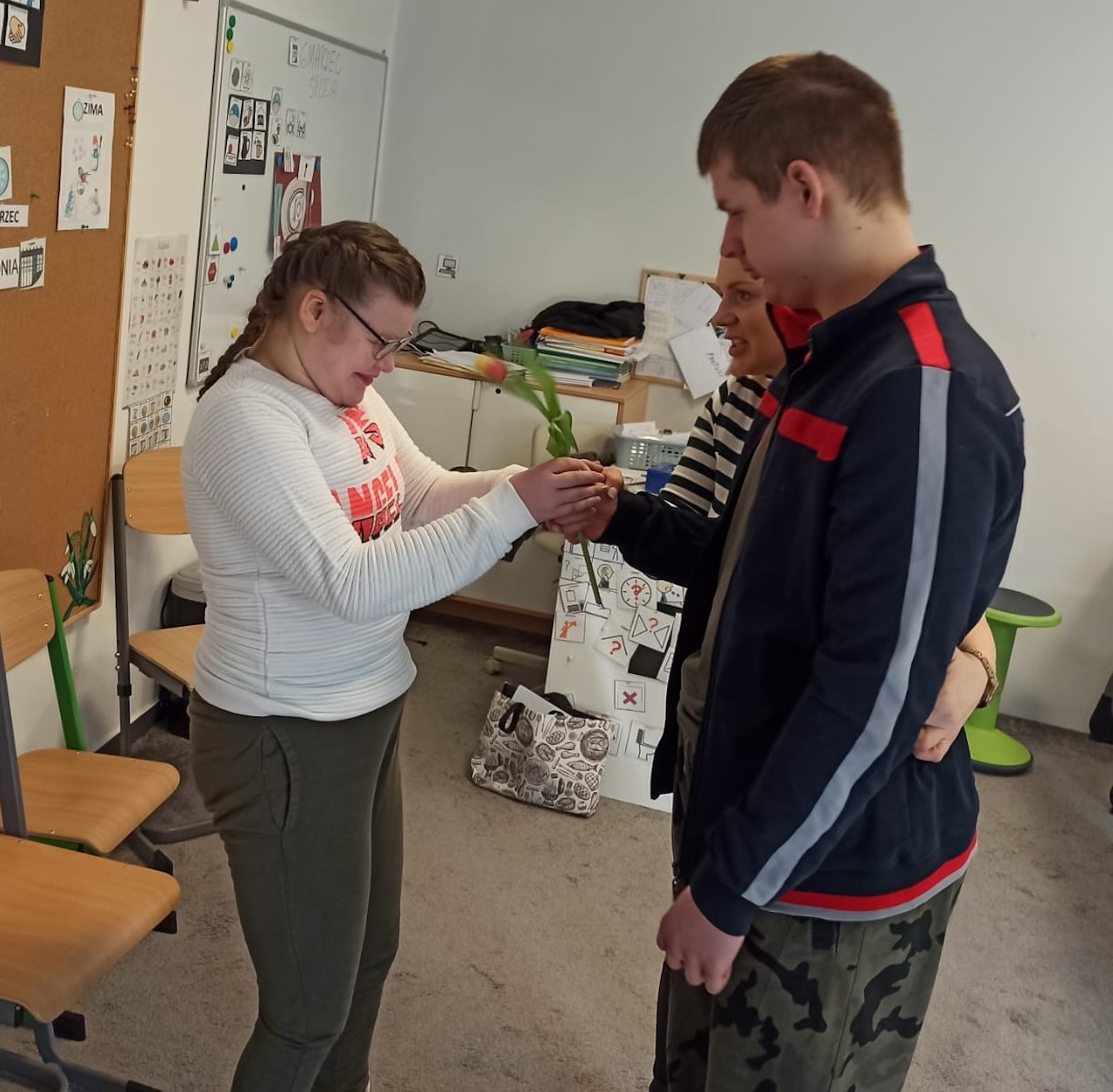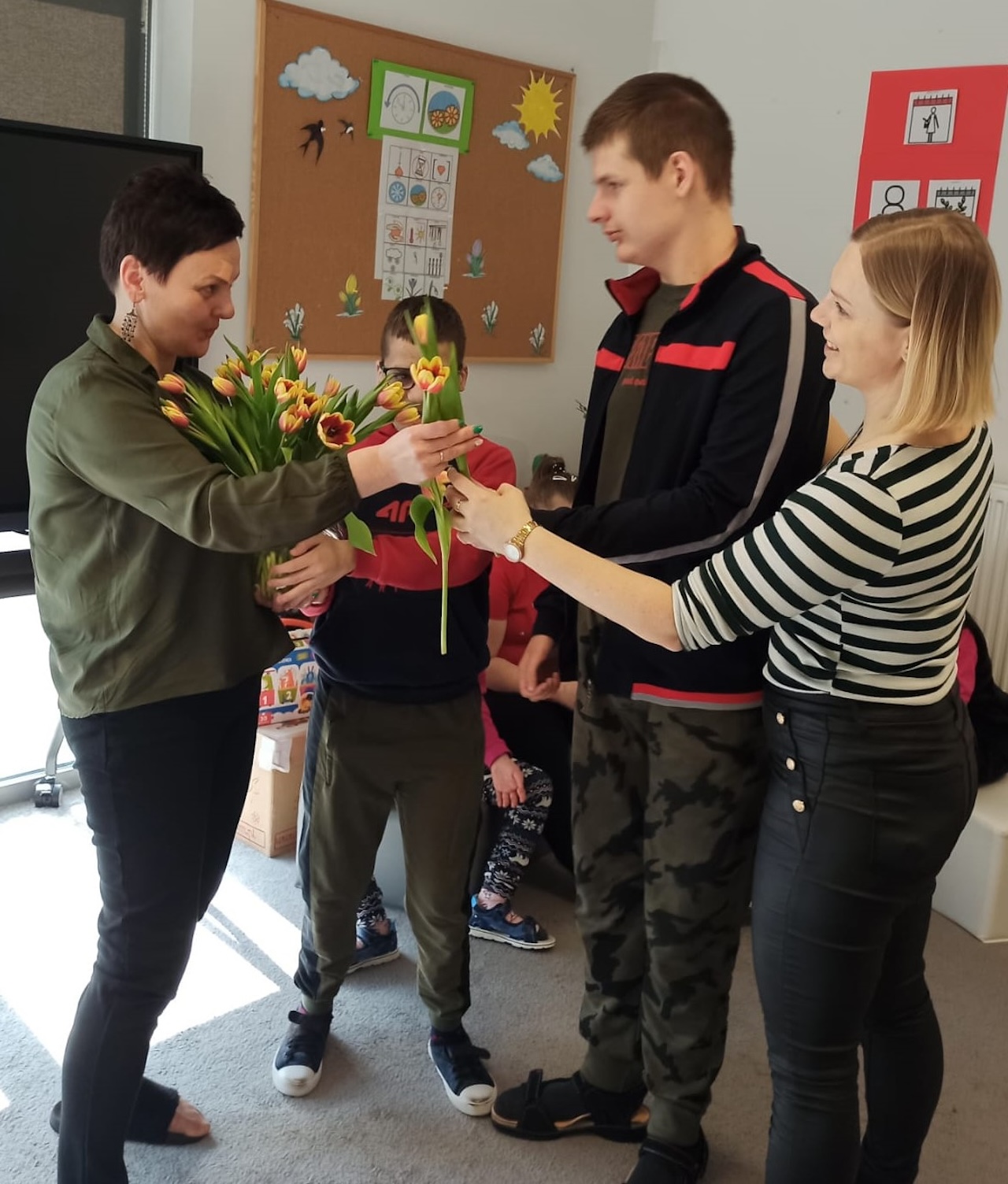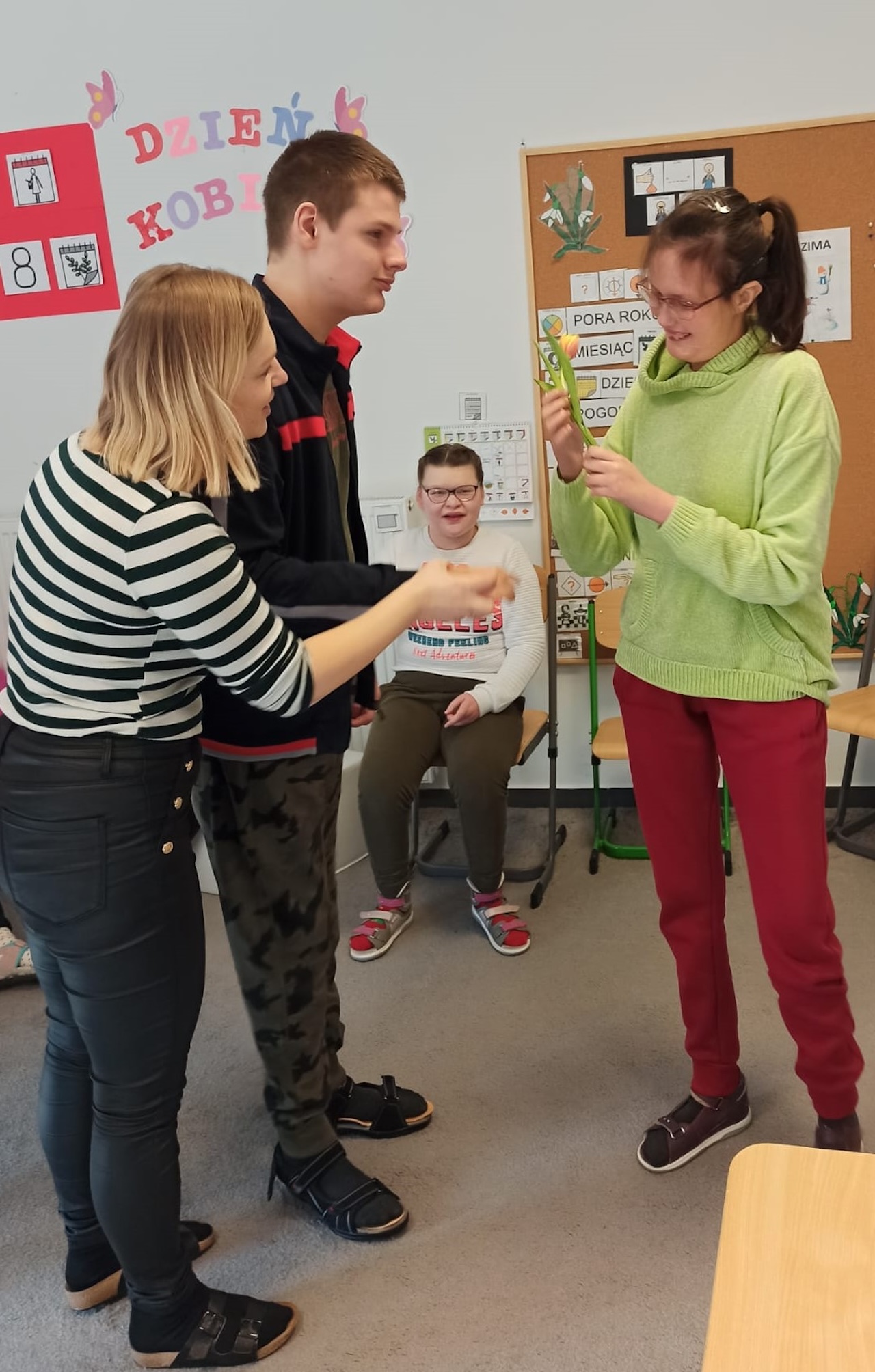 Międzynarodowy Dzień Kobiet był obchodzony bardzo uroczyście w naszej szkole. Udaliśmy się w ramach podwieczorku do Kawiarni „Kawowe Love” gdzie zjedliśmy pyszną szarlotkę , wypiliśmy kawę oraz soczki . Chłopcy w tym dniu zachowali się jak prawdziwi dżentelmeni swoim koleżankom oraz Paniom wręczyli po tulipanie i czekoladki - za co serdecznie dziękujemy .