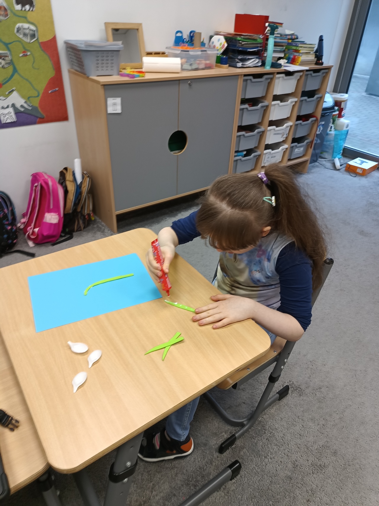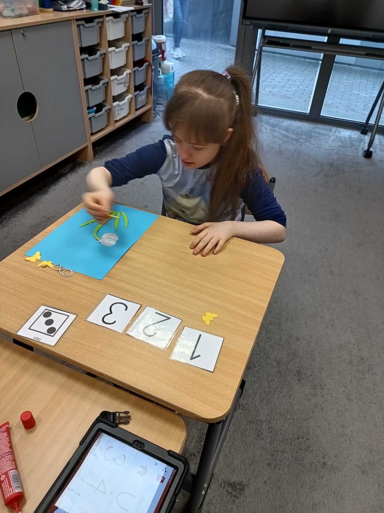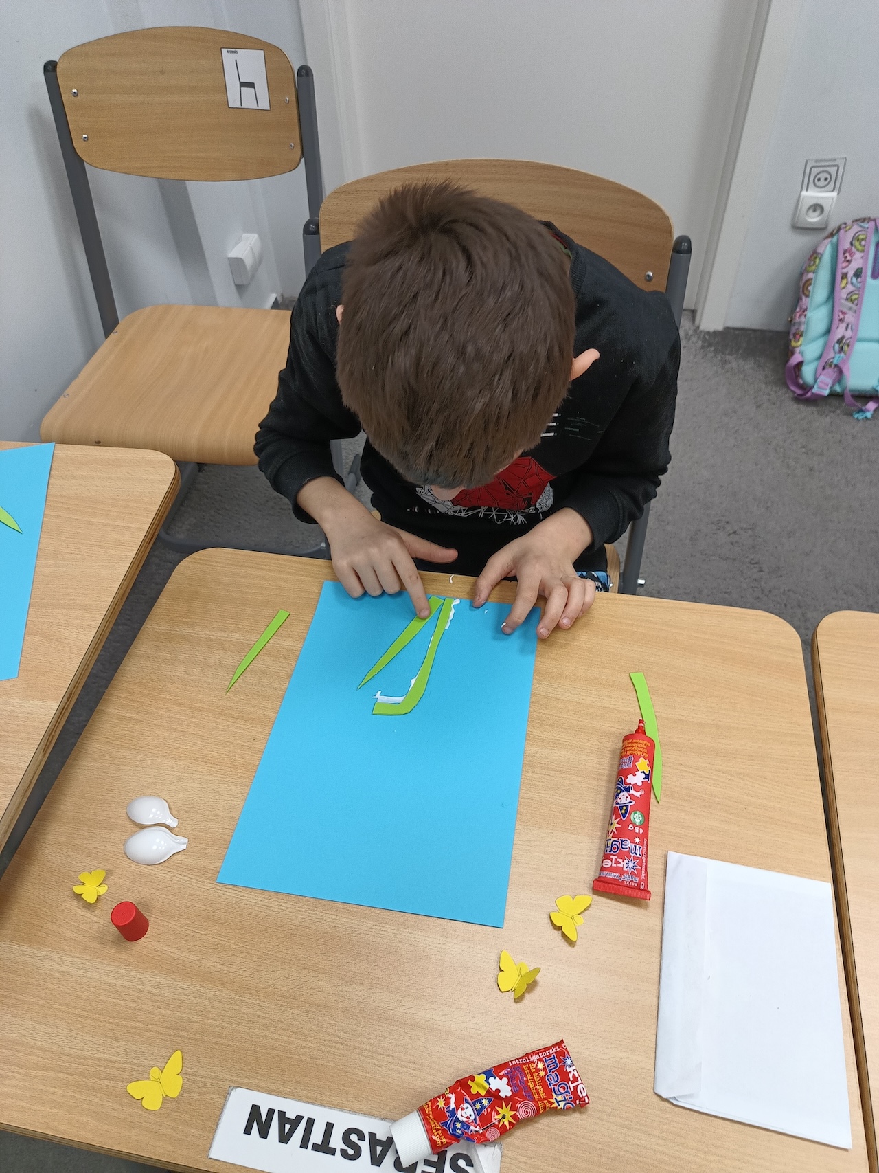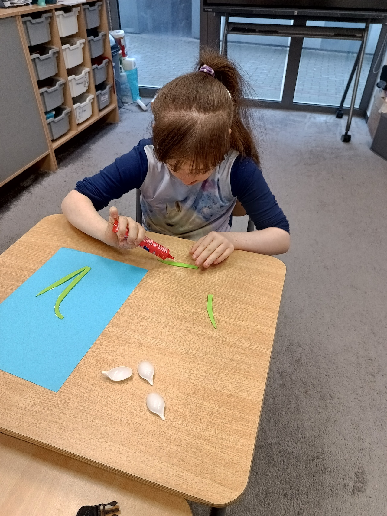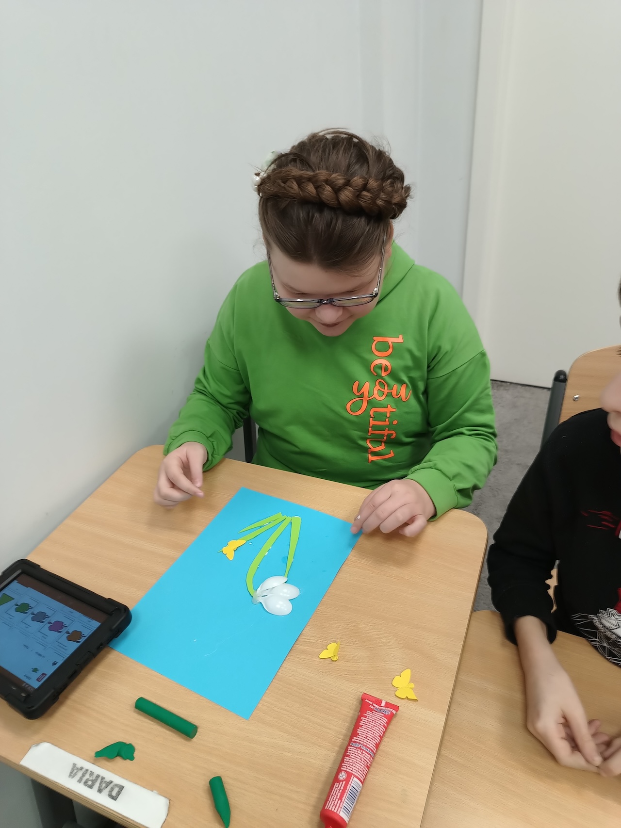 Uczniowie oddziału „I”, realizując temat tygodnia „Wiosna tuż, tuż”, poznawali i utrwalali nazwy pierwszych wiosennych kwiatów oraz wykonali pracę plastyczną „Przebiśnieg”. Rozwijali przy tym sprawność manualną. Utrwalali kolory: biały, zielony, żółty i niebieski, a także znak graficzny cyfry 3 oraz ćwiczyli przeliczanie do 3. Na ich prace przyleciały tez pierwsze wiosenne motylki-cytrynki.