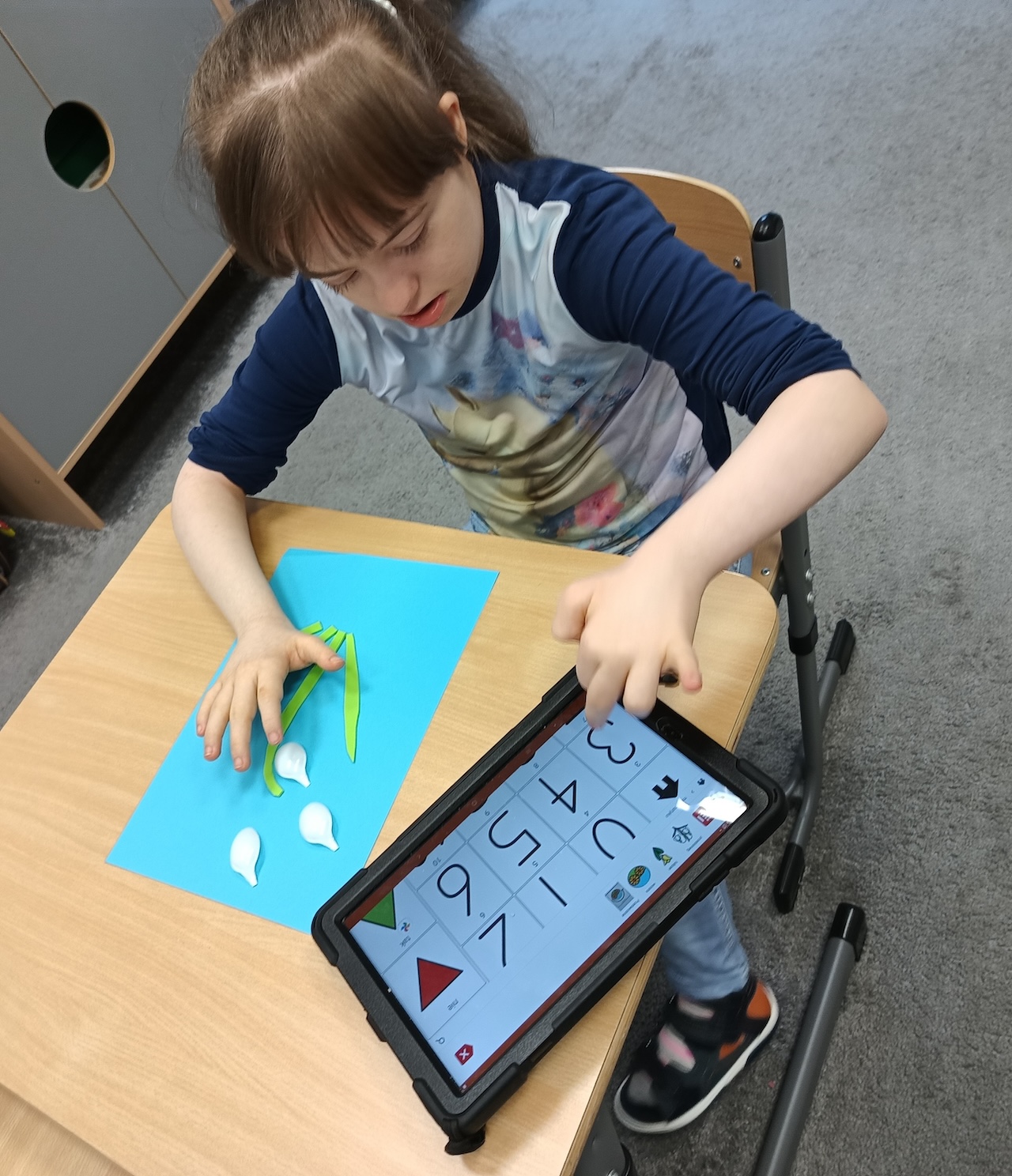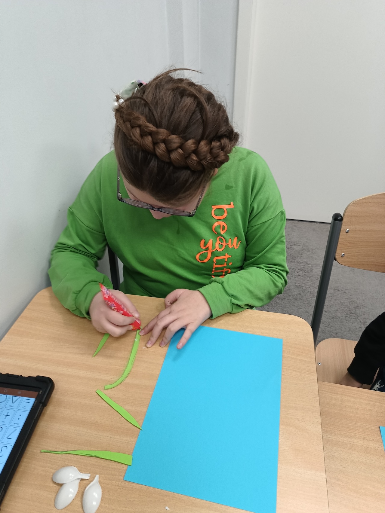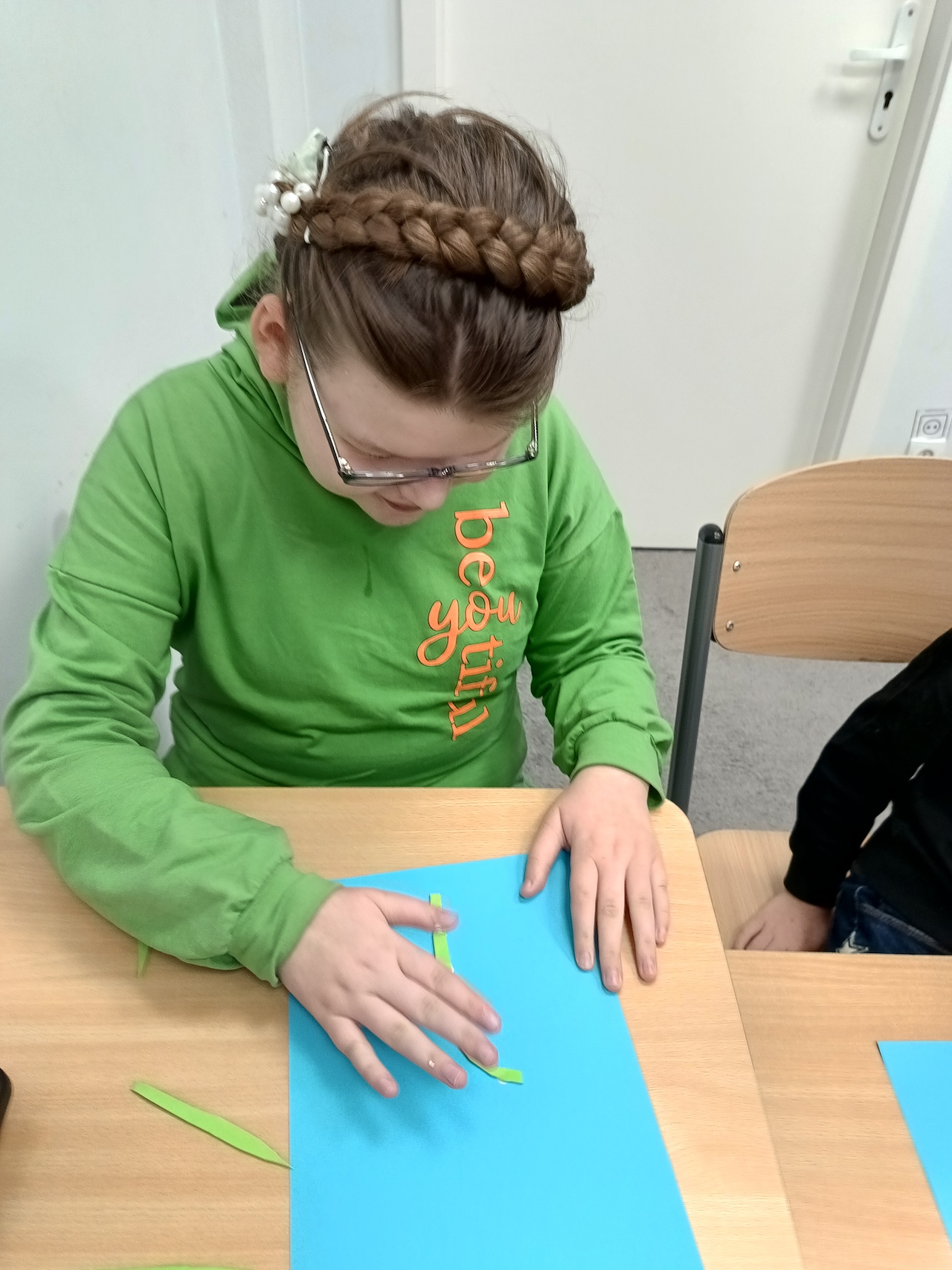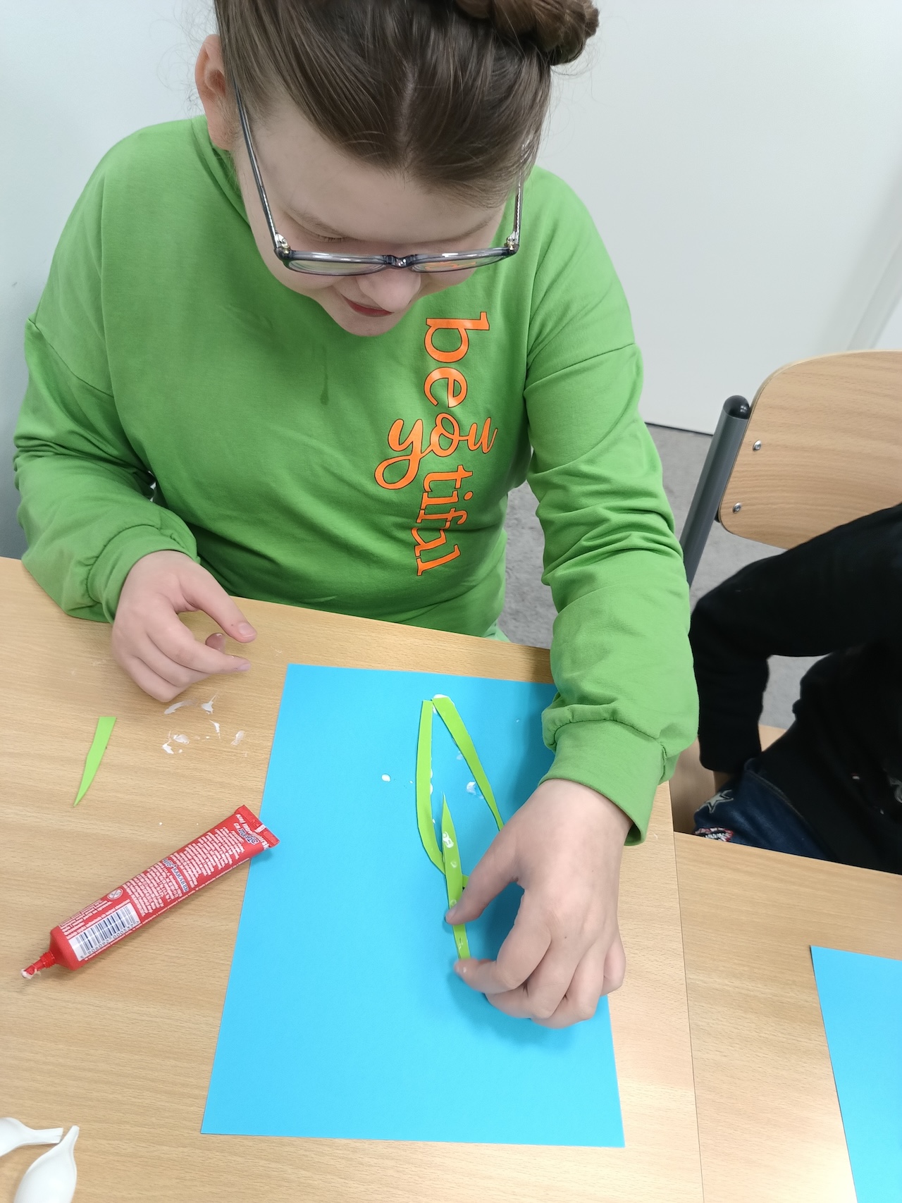 Uczniowie oddziału „I”, realizując temat tygodnia „Wiosna tuż, tuż”, poznawali i utrwalali nazwy pierwszych wiosennych kwiatów oraz wykonali pracę plastyczną „Przebiśnieg”. Rozwijali przy tym sprawność manualną. Utrwalali kolory: biały, zielony, żółty i niebieski, a także znak graficzny cyfry 3 oraz ćwiczyli przeliczanie do 3. Na ich prace przyleciały tez pierwsze wiosenne motylki-cytrynki.