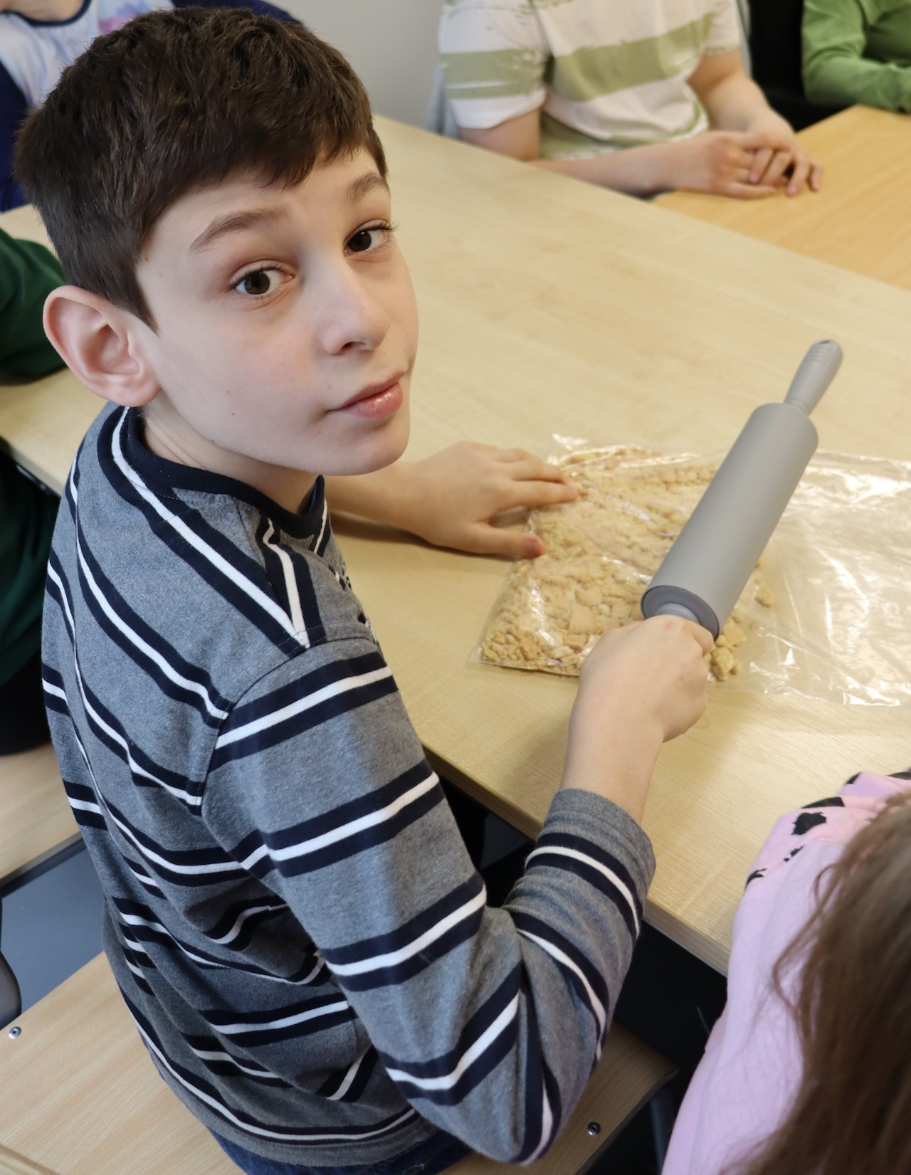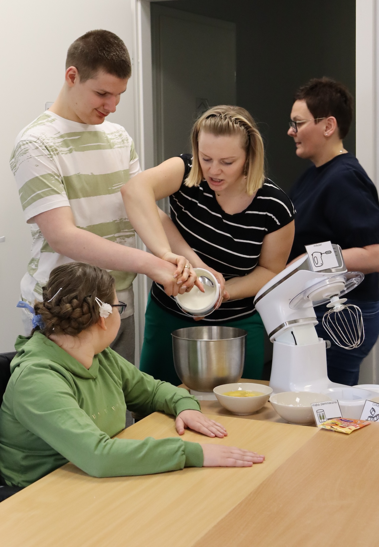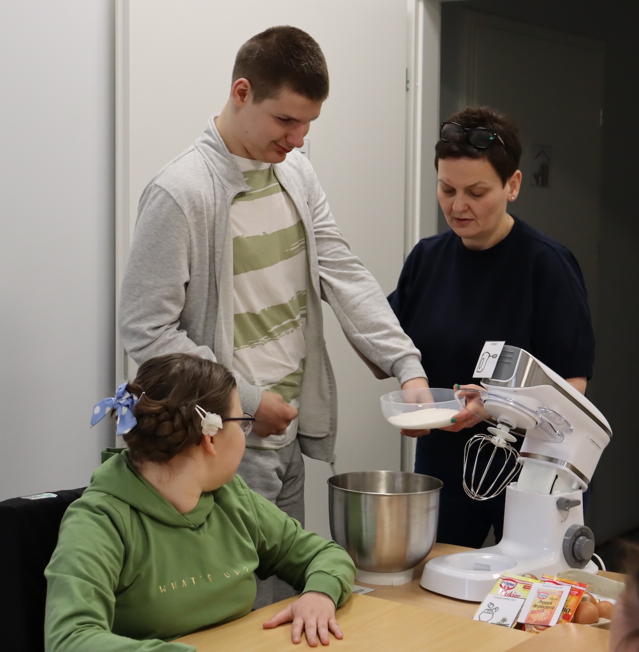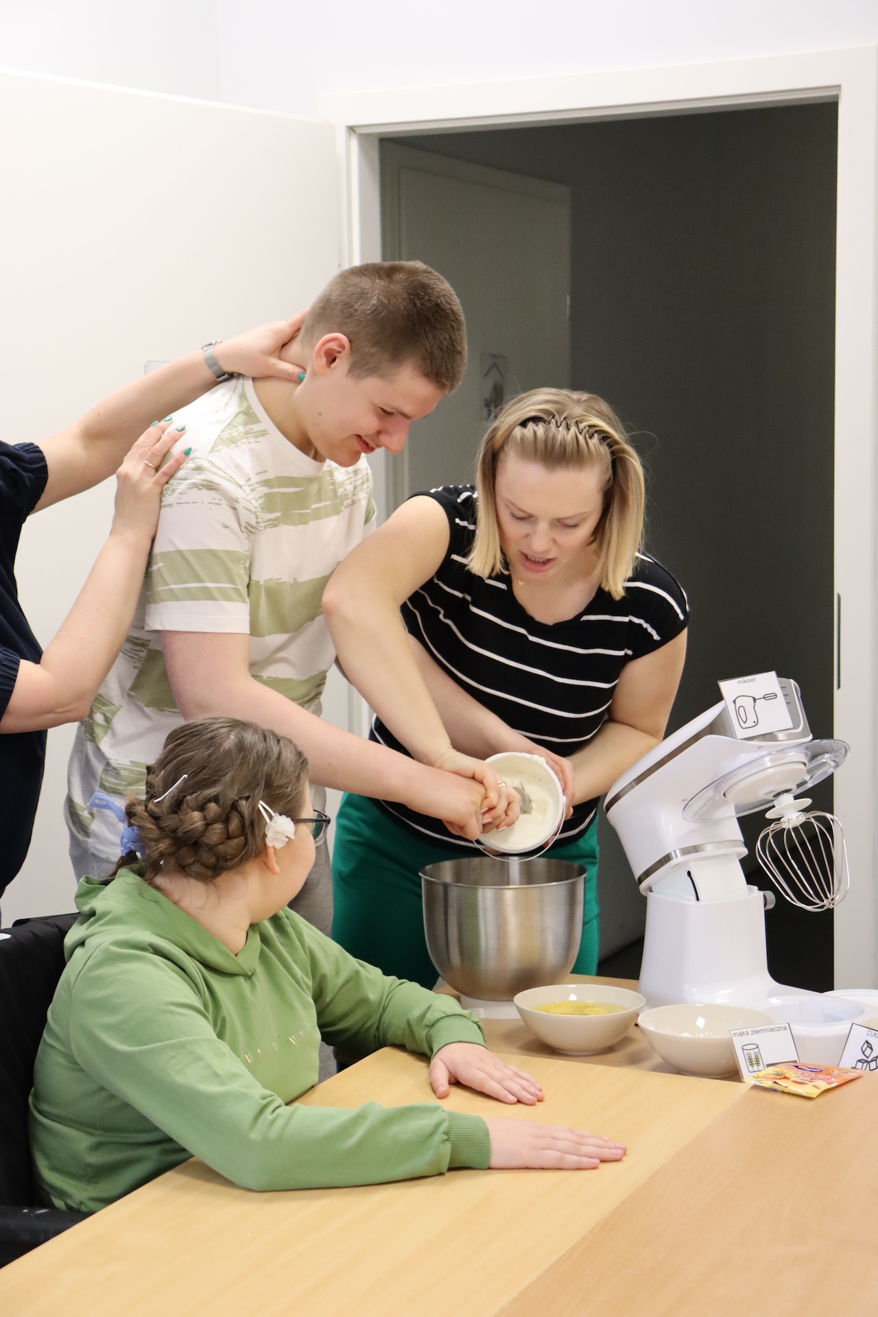 Uczniowie naszej szkoły dzień przed Uroczystym Śniadaniem Wielkanocnym przygotowywali wraz z nauczycielami ciasta. Każde dziecko po kolei odmierzało odpowiednią ilość składników potrzebnych do wykonania danego przepisu, następnie za pomocą robota planetarnego wszystkie składniki zostały wymieszane. Podczas pieczenia po szkole unosił się smakowity zapach…. A oto fotorelacja z tego pysznego dnia.