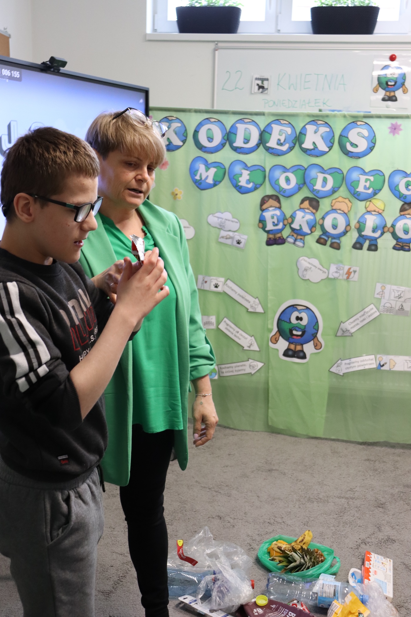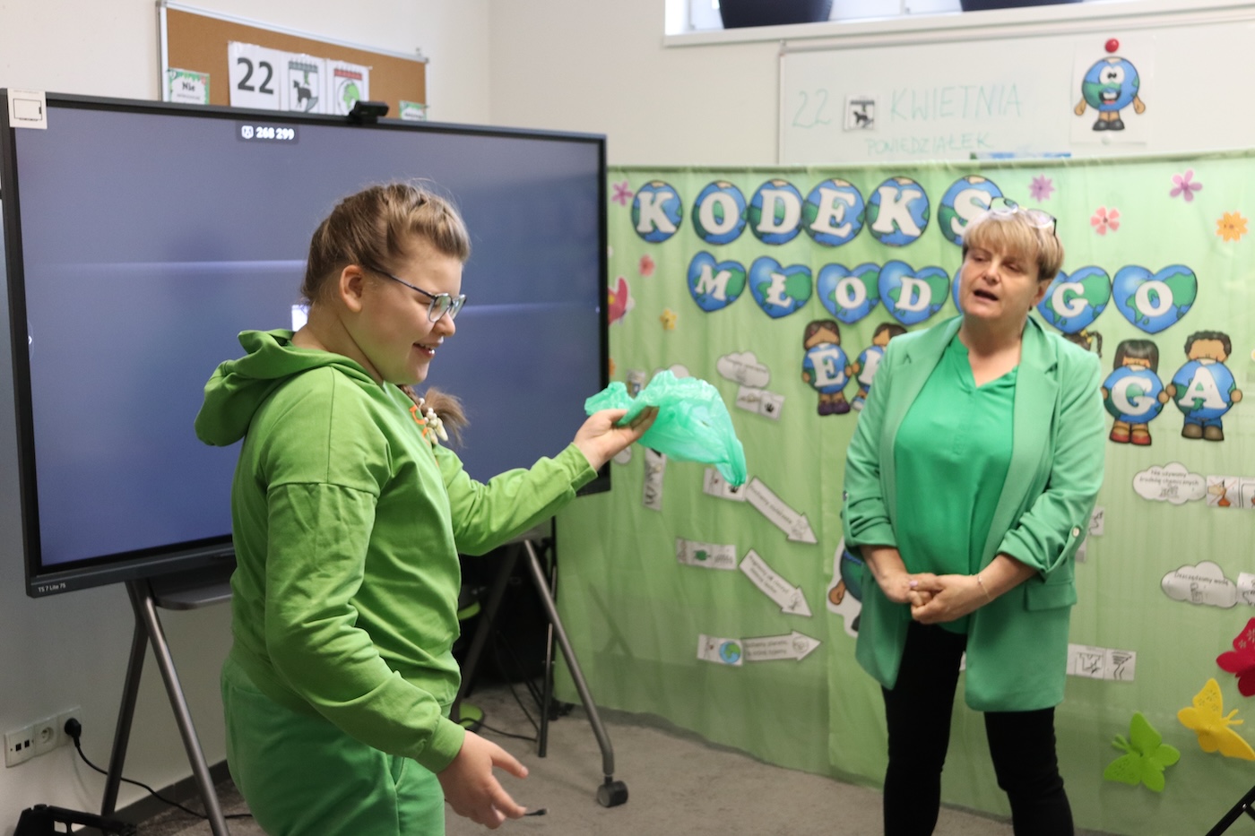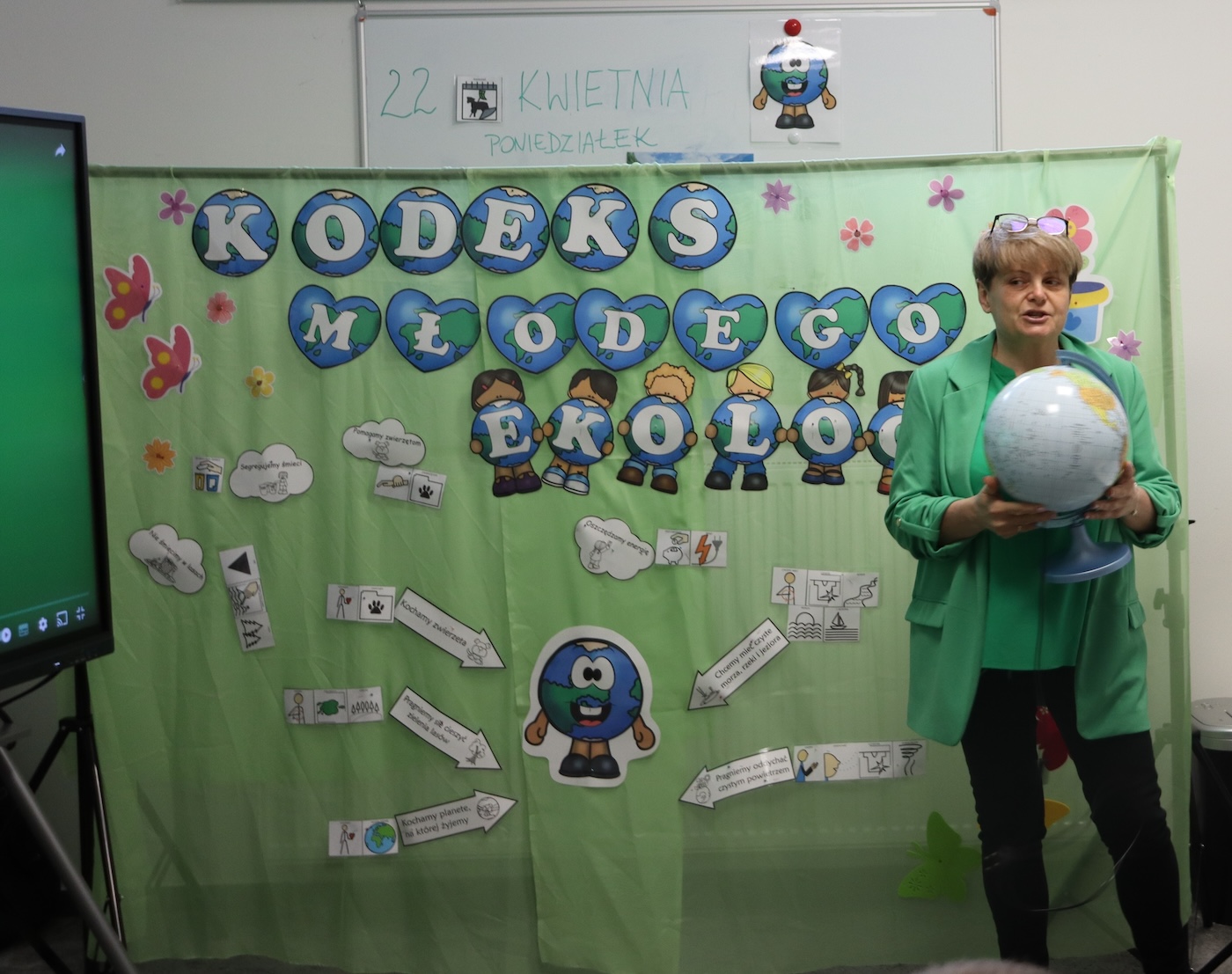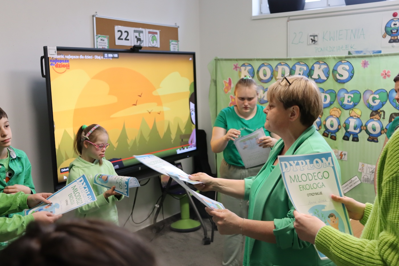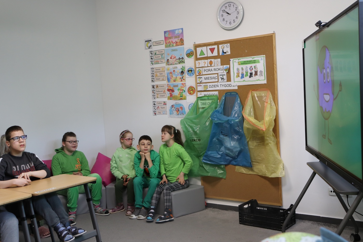 Dzień Ziemi Dnia 22 Kwietnia obchodzony jest Międzynarodowy Dzień Ziemi , którego zadaniem jest uświadamianie dzieci jak dbać o naszą planetę. W tym dniu Panie z naszej szkoły przygotowały ciekawą prezentację , którą uczniowie wysłuchali z wielkim zainteresowaniem. Następnie odbyła się lekcja segregowania śmieci, każdy z uczniów brał w niej czynny udział. Na końcu przeszliśmy do szkolnej kuchni gdzie zostały upieczone zielone muffinki. To był bardzo intensywny dzień.