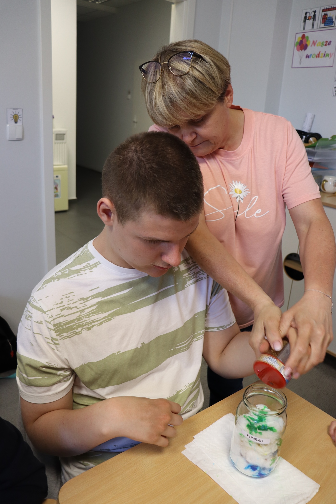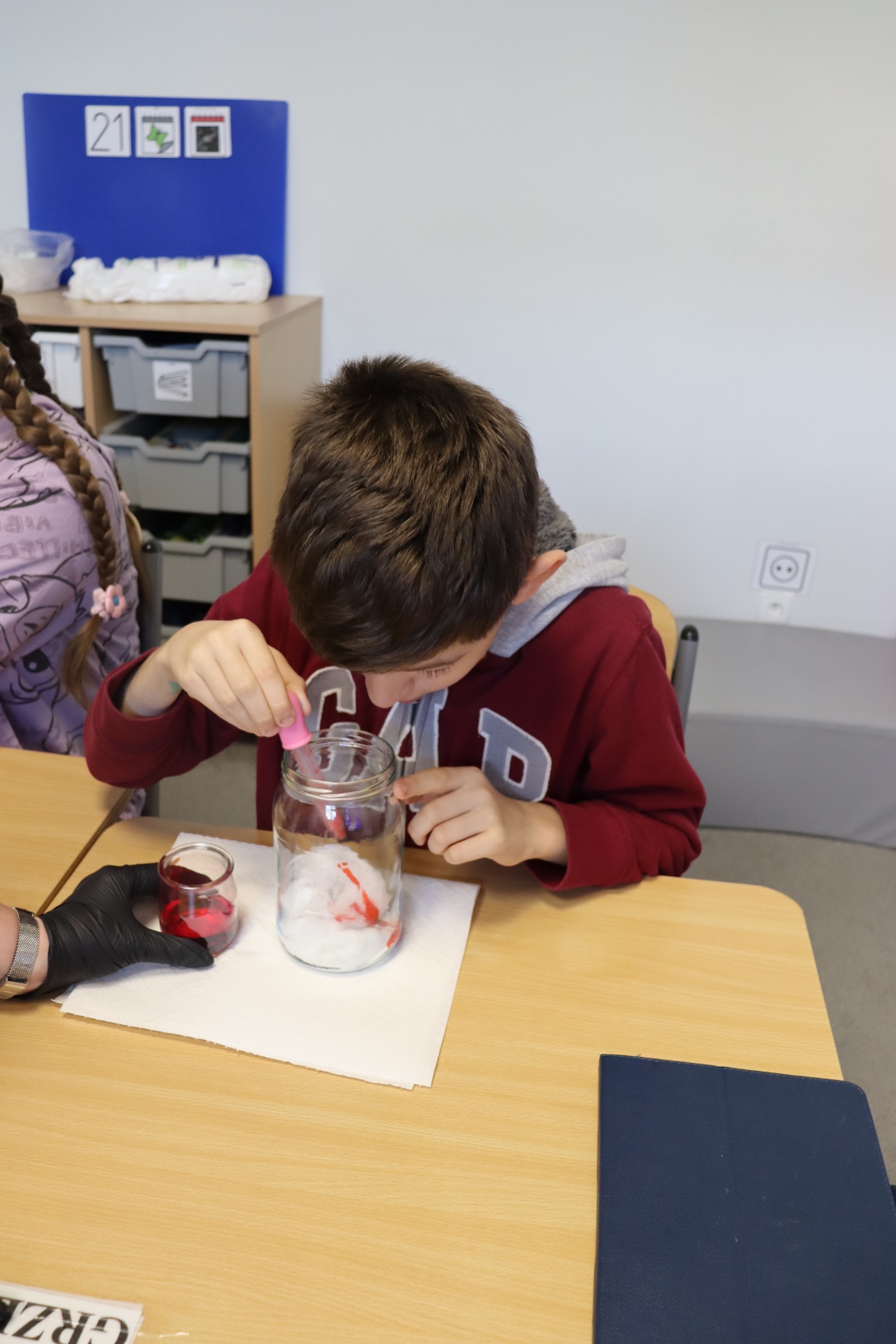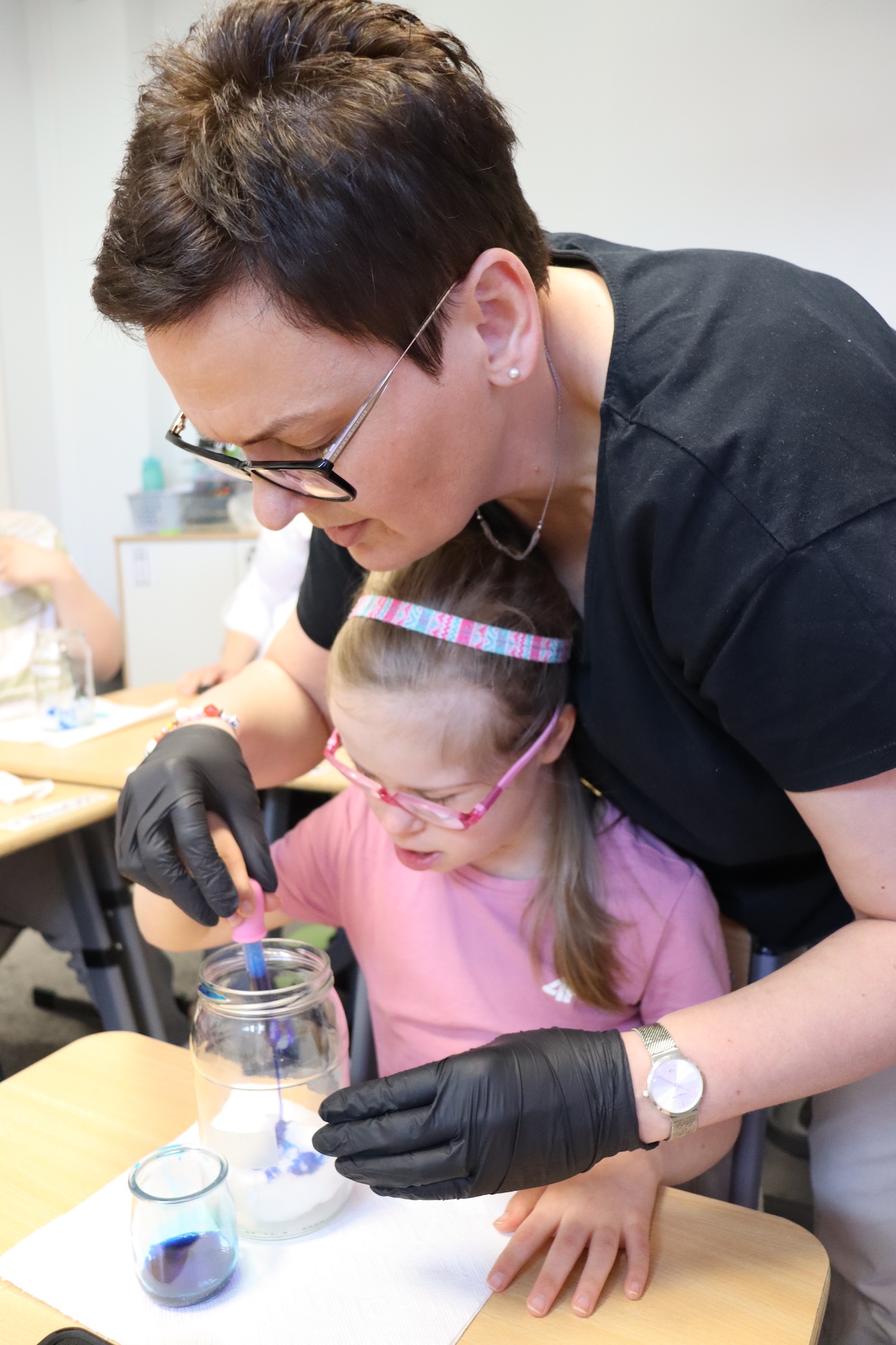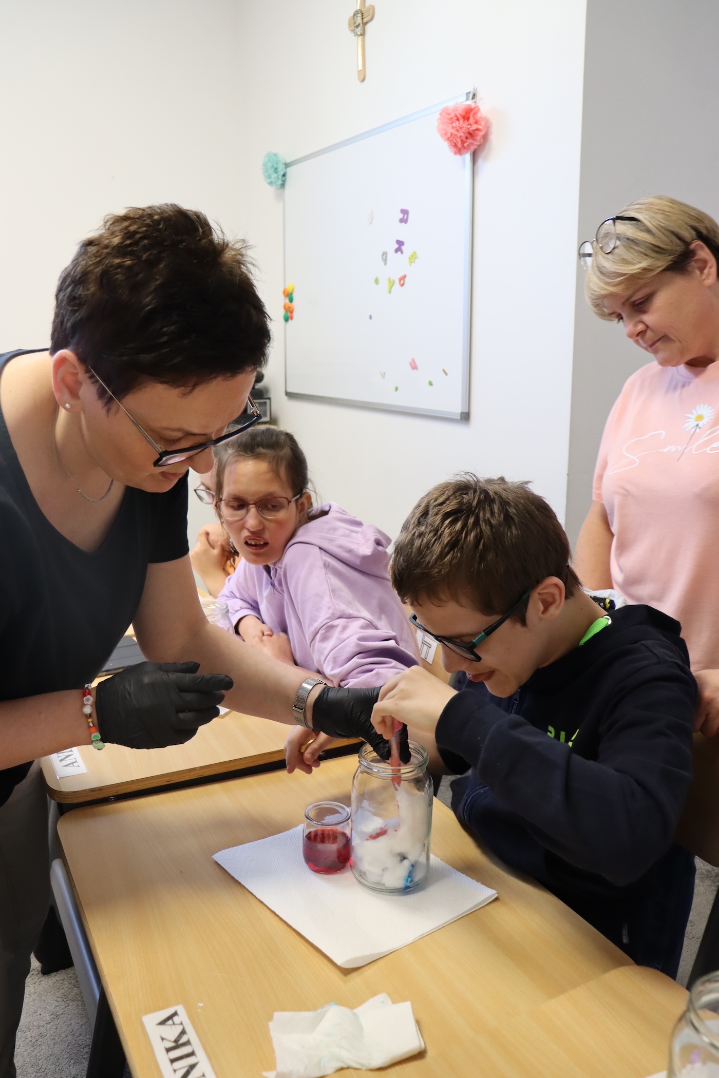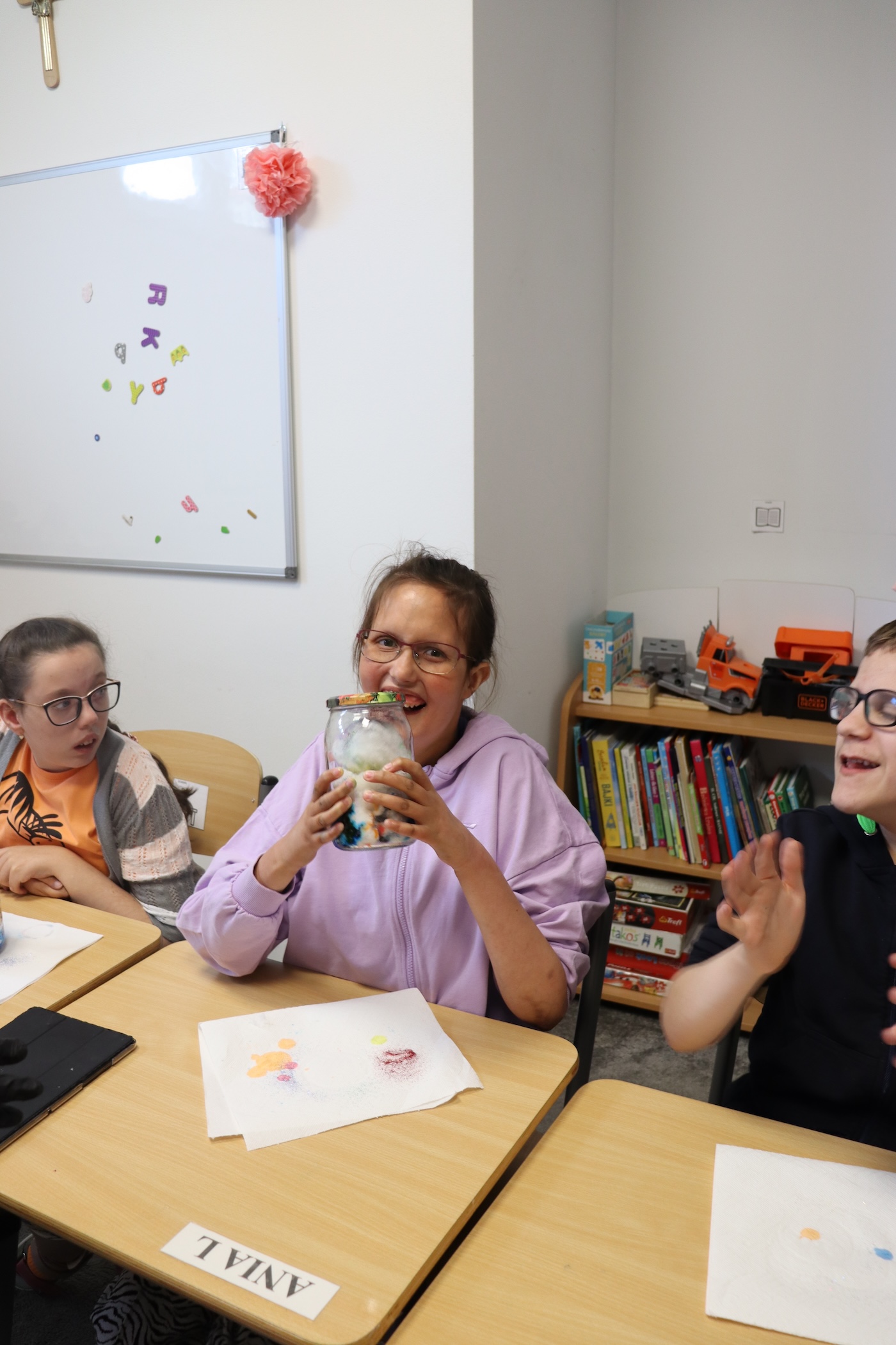 Dnia 21 maja obchodzony jest Światowy Dzień Kosmosu. Uczniowie naszej szkoły tego dnia również poznawali kosmos po przez wysłuchanie piosenki tematycznej, utrwalenie nazw planet i wykonanie pracy tematycznej „Kosmos zamknięty w słoiku” . Najciekawszym punktem dnia był eksperyment do którego wykorzystaliśmy : watę , barwniki, wodę , brokat i słoiki. Celem pracy było rozwijanie sprawności manualnych i koordynacji wzrokowo – ruchowej oraz rozwijanie kreatywności.