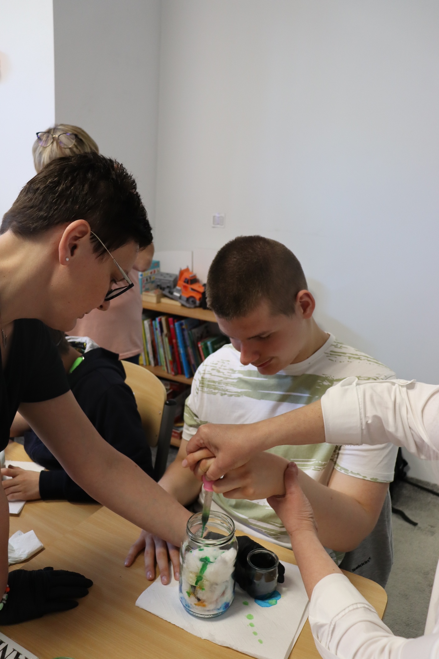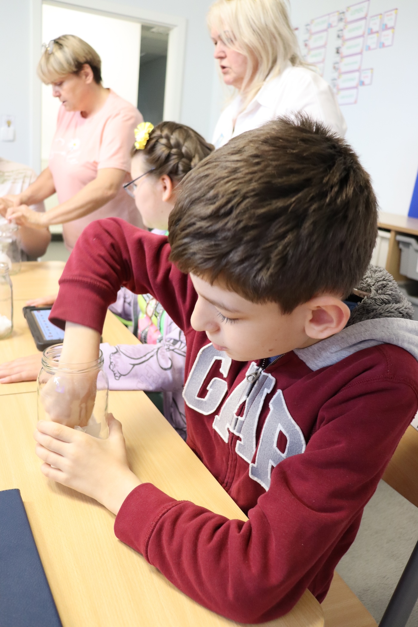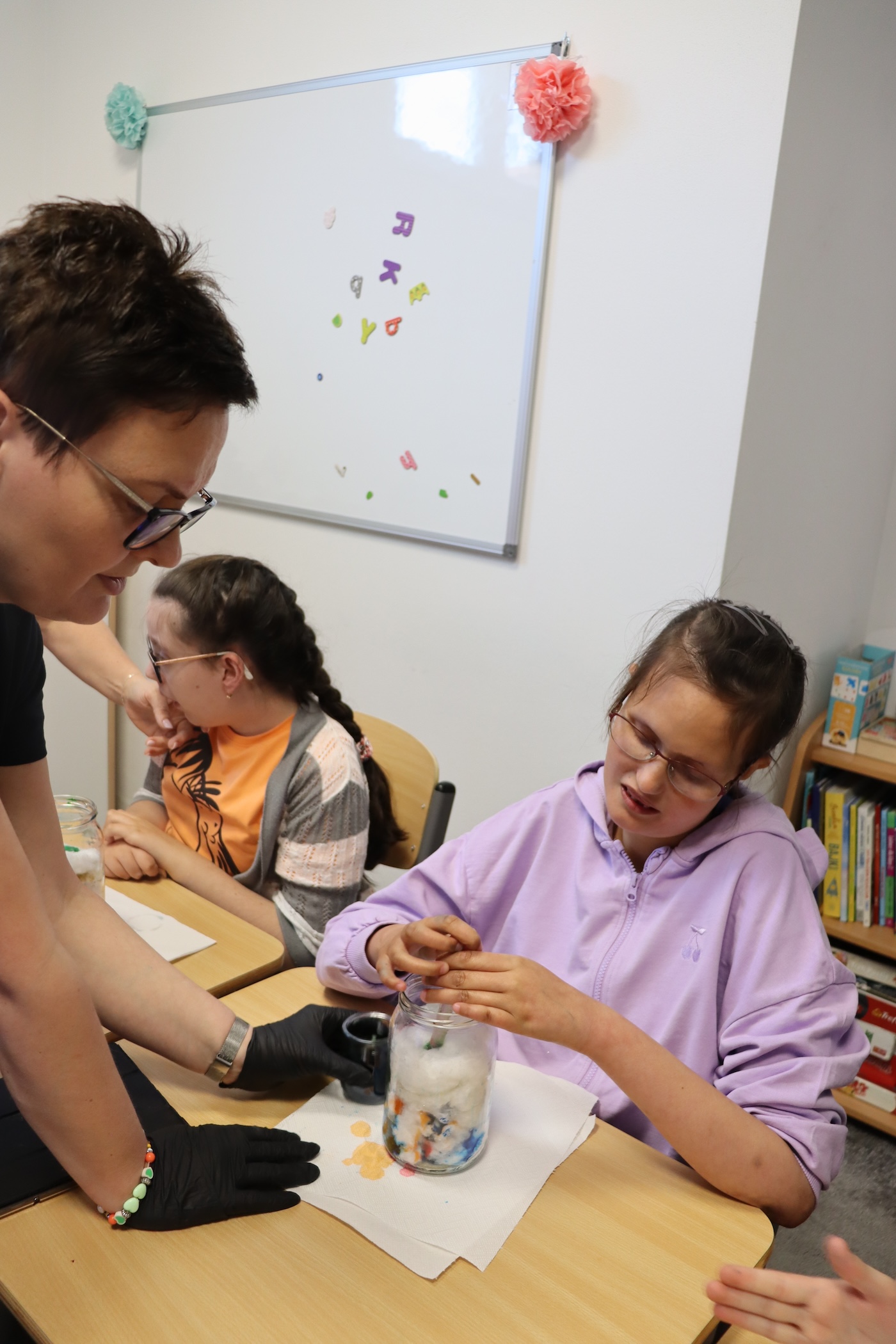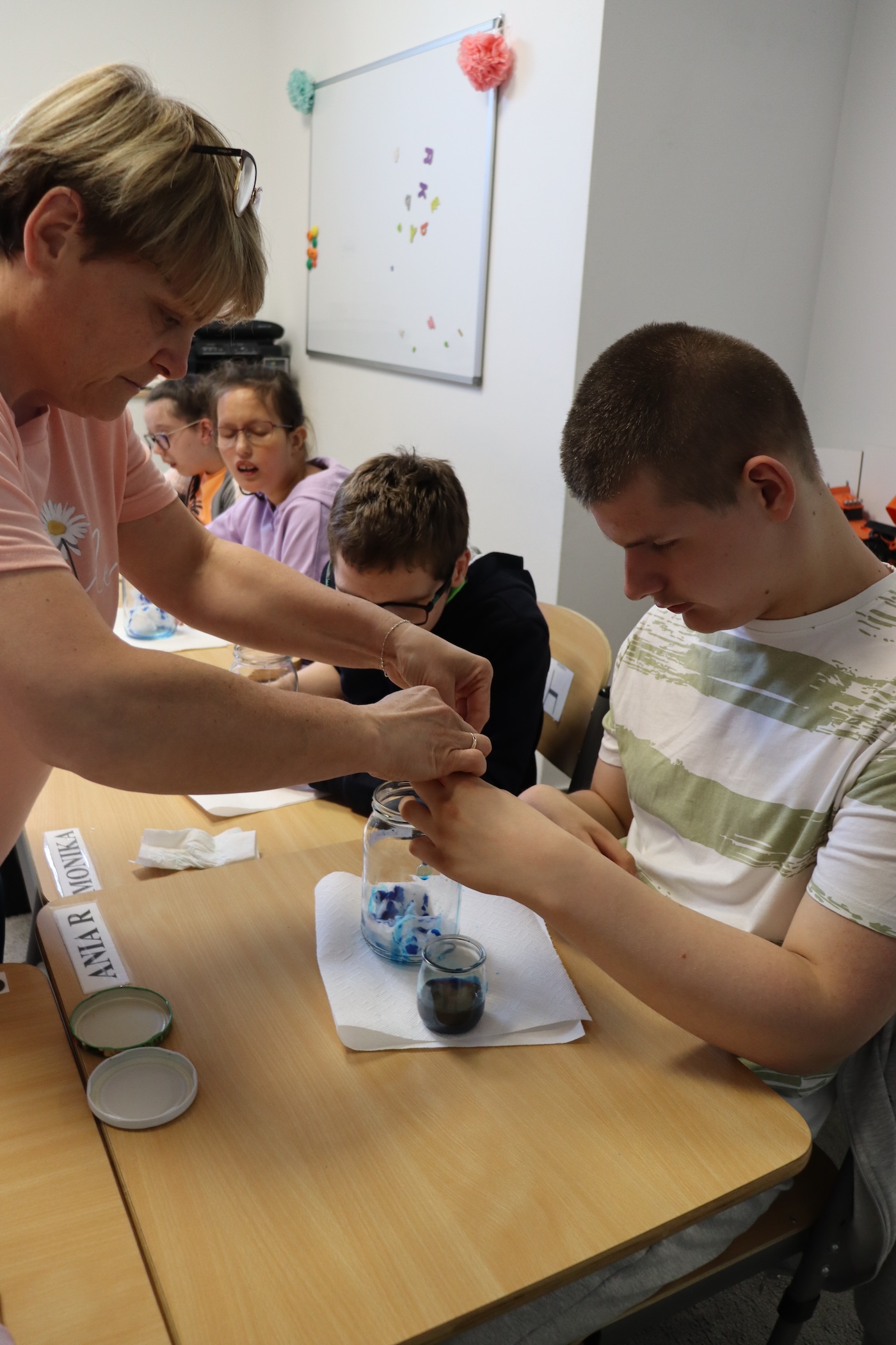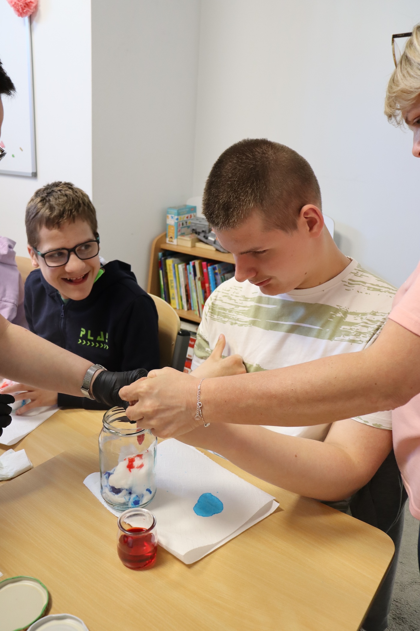 Dnia 21 maja obchodzony jest Światowy Dzień Kosmosu. Uczniowie naszej szkoły tego dnia również poznawali kosmos po przez wysłuchanie piosenki tematycznej, utrwalenie nazw planet i wykonanie pracy tematycznej „Kosmos zamknięty w słoiku” . Najciekawszym punktem dnia był eksperyment do którego wykorzystaliśmy : watę , barwniki, wodę , brokat i słoiki. Celem pracy było rozwijanie sprawności manualnych i koordynacji wzrokowo – ruchowej oraz rozwijanie kreatywności.