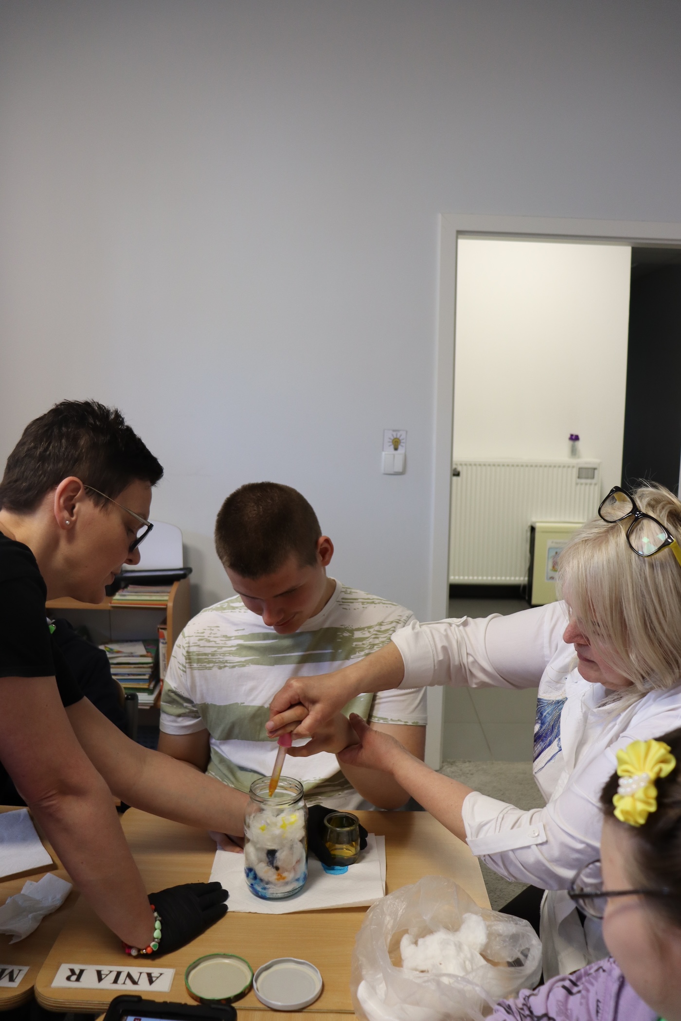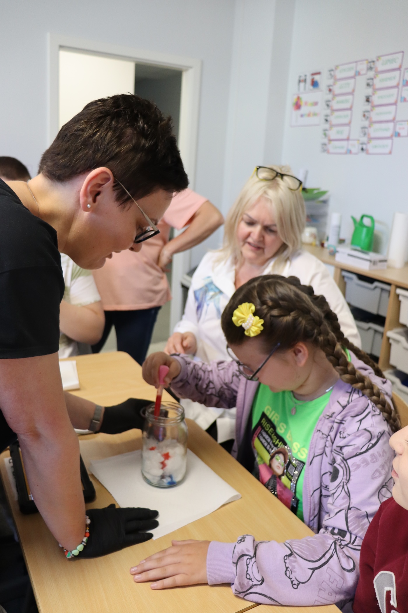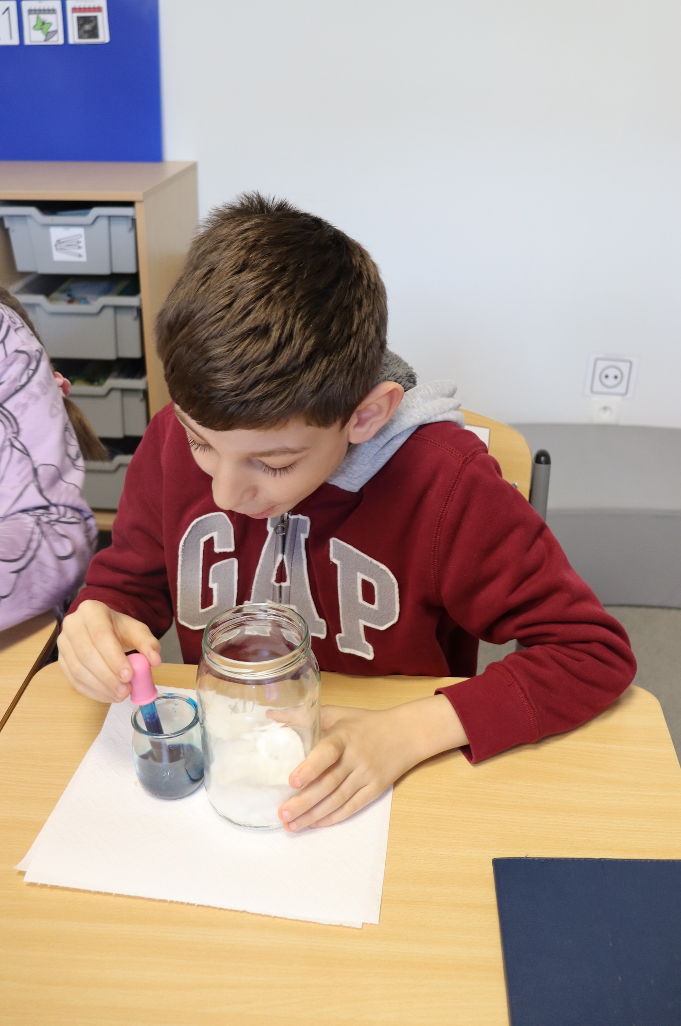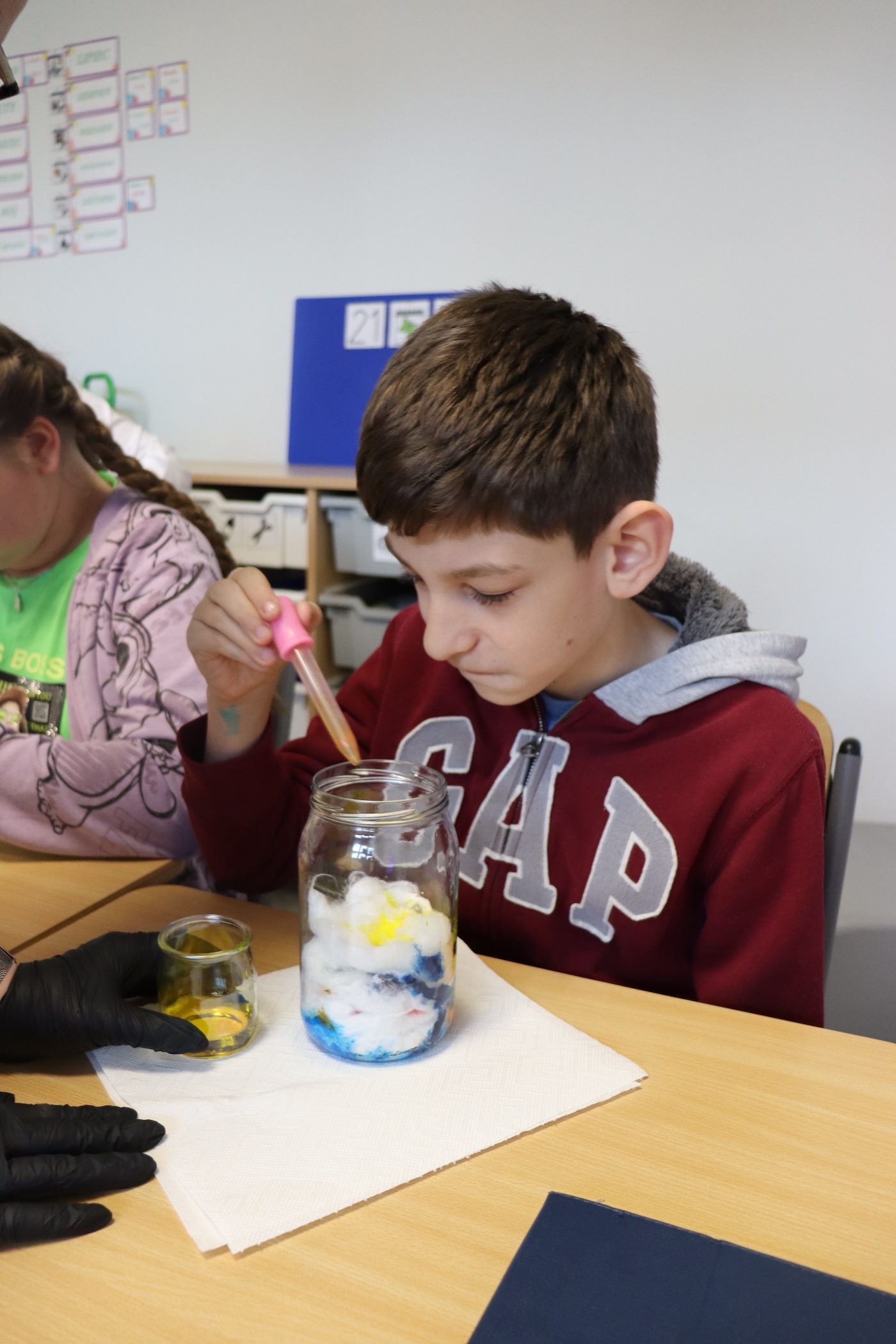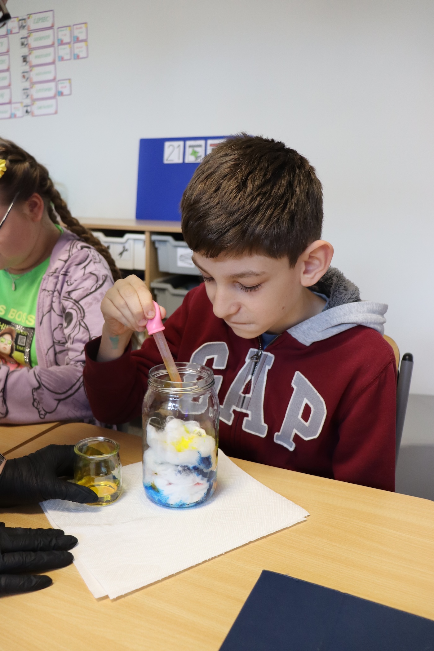 Dnia 21 maja obchodzony jest Światowy Dzień Kosmosu. Uczniowie naszej szkoły tego dnia również poznawali kosmos po przez wysłuchanie piosenki tematycznej, utrwalenie nazw planet i wykonanie pracy tematycznej „Kosmos zamknięty w słoiku” . Najciekawszym punktem dnia był eksperyment do którego wykorzystaliśmy : watę , barwniki, wodę , brokat i słoiki. Celem pracy było rozwijanie sprawności manualnych i koordynacji wzrokowo – ruchowej oraz rozwijanie kreatywności.