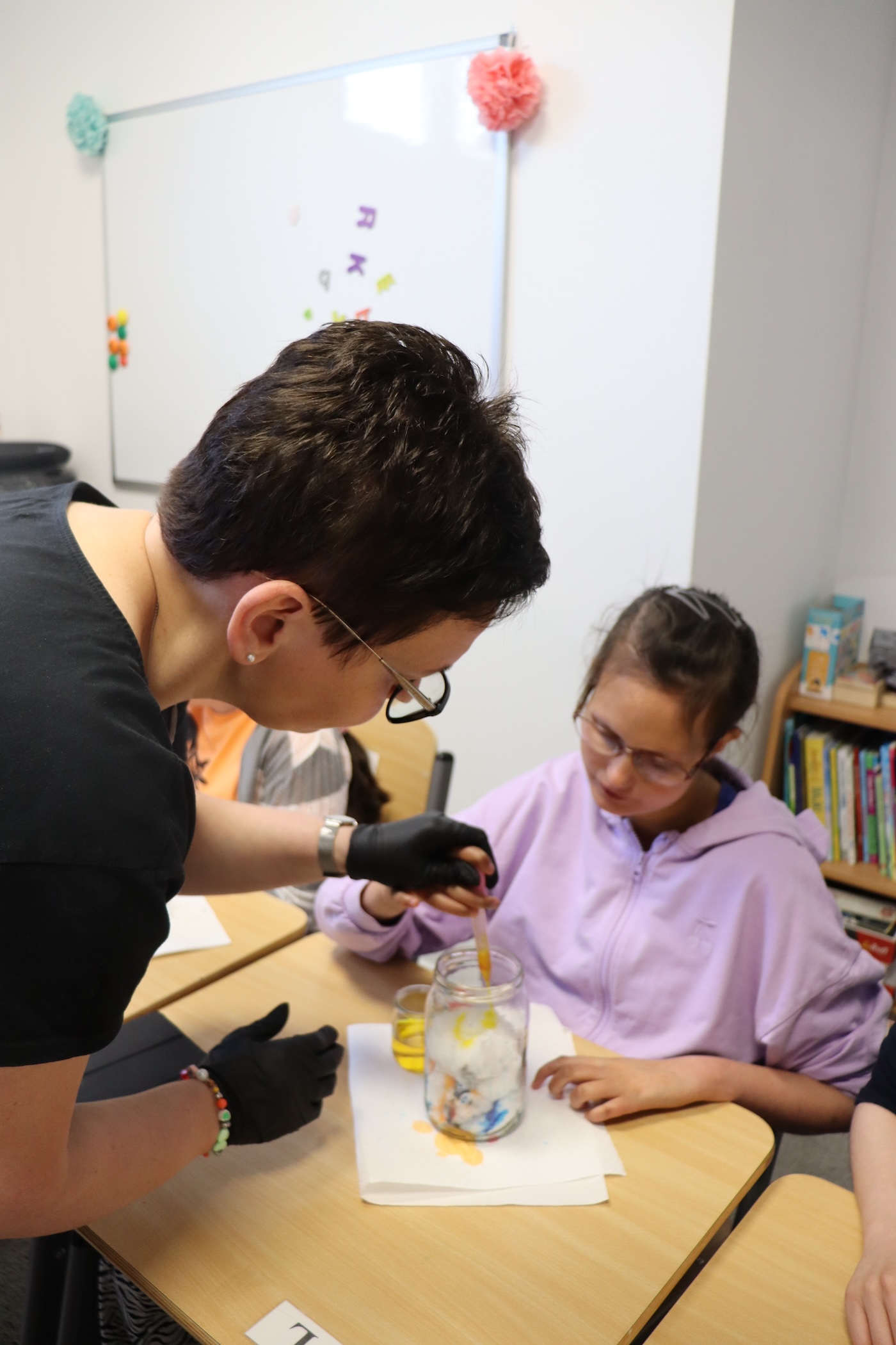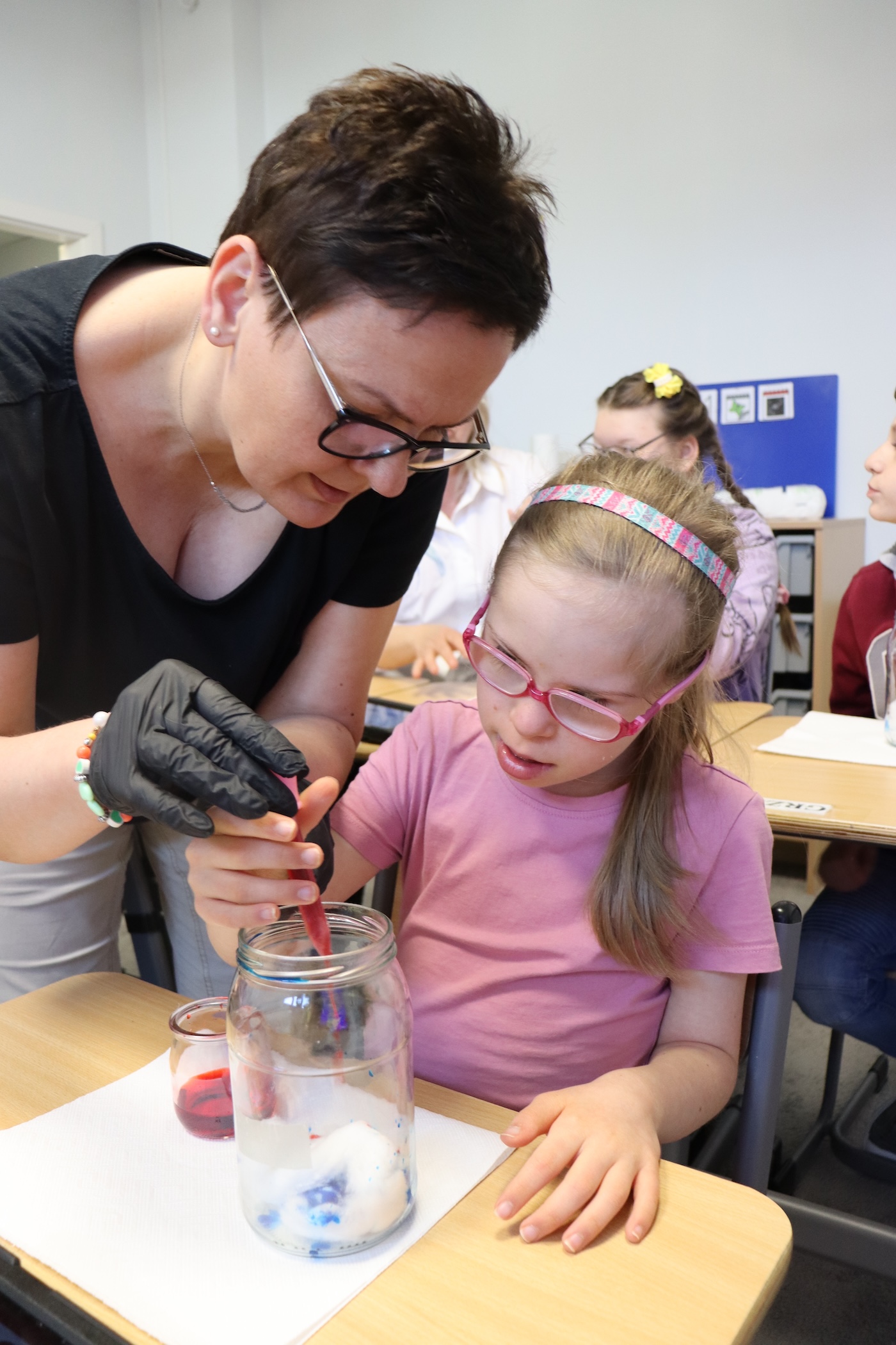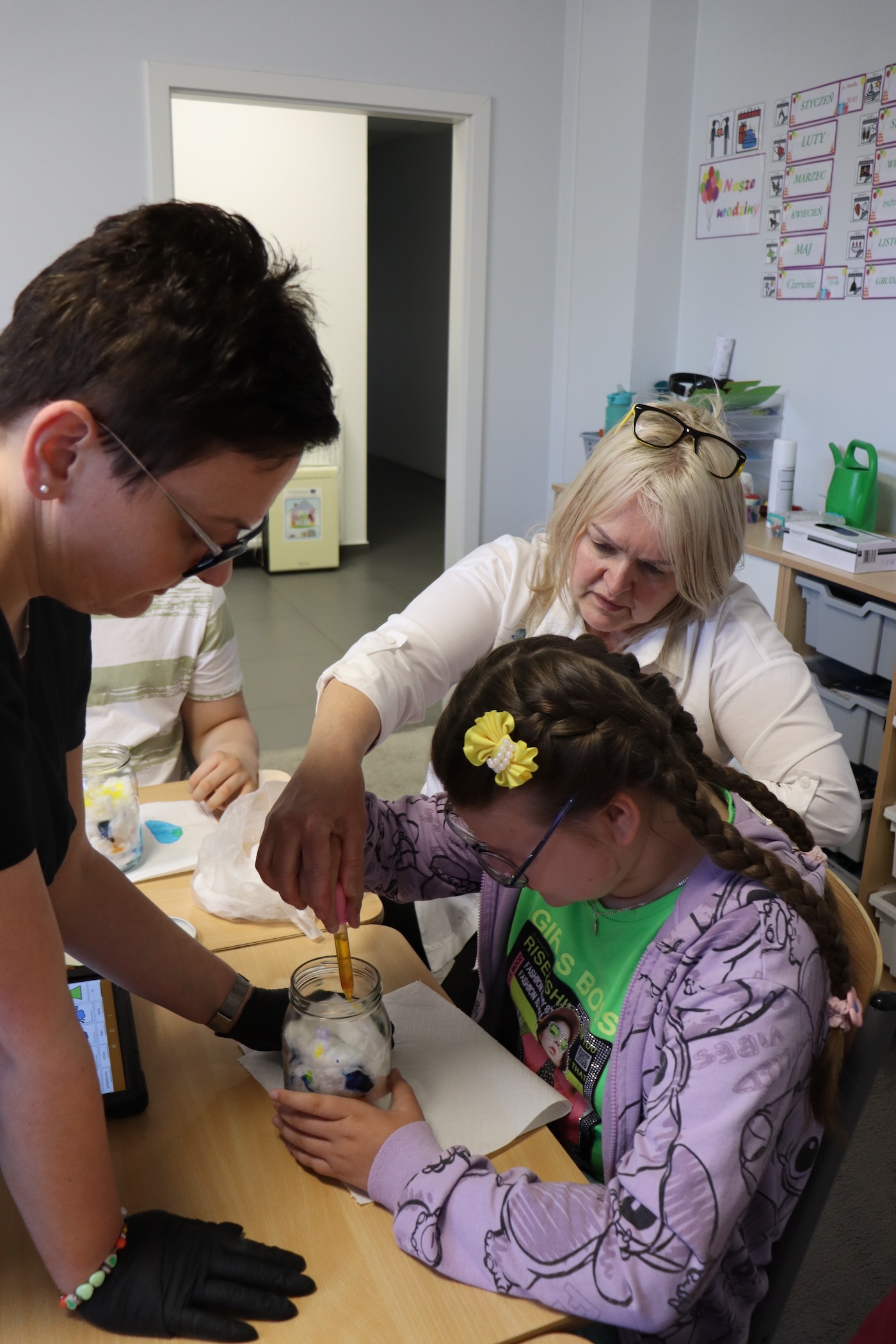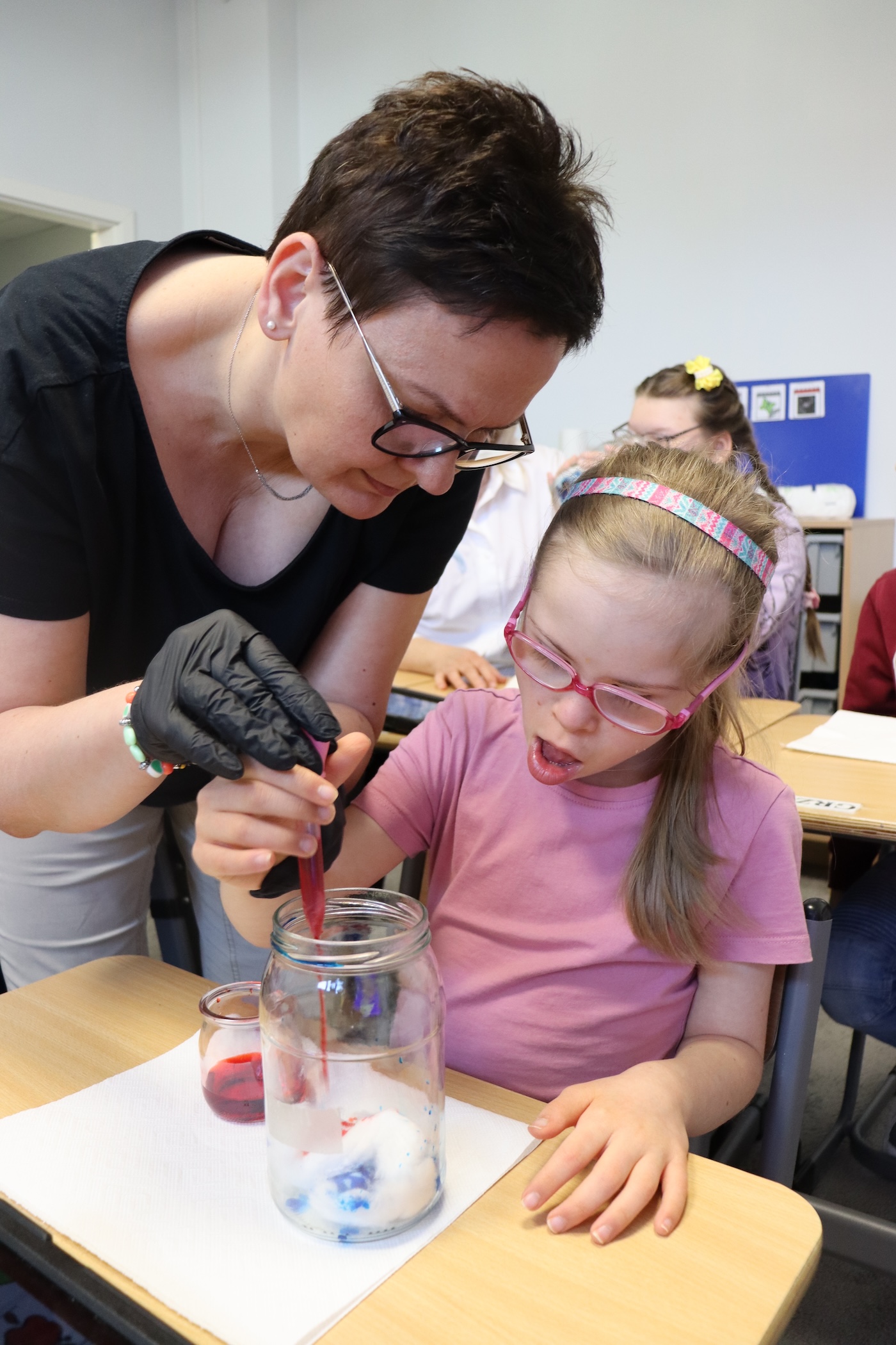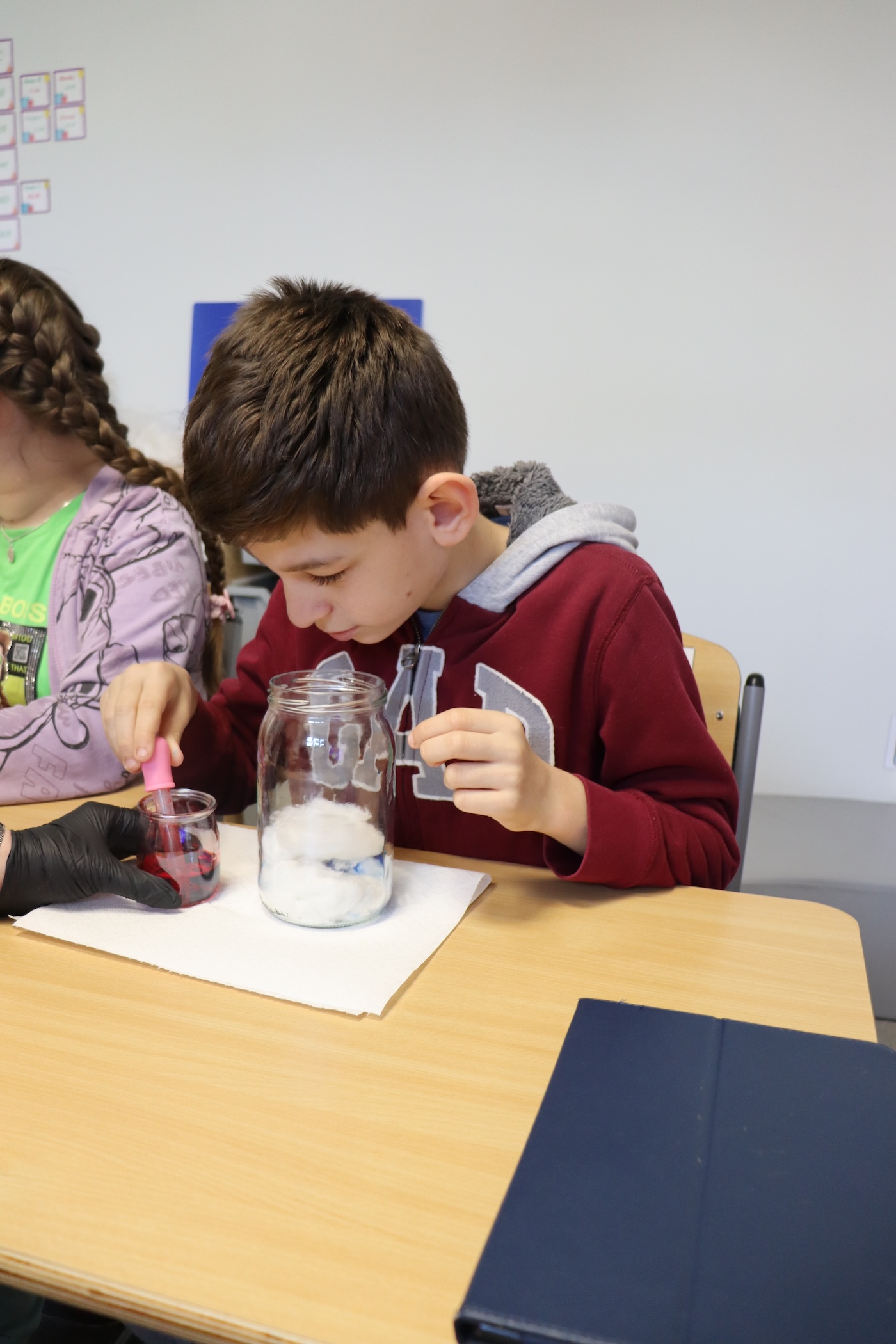 Dnia 21 maja obchodzony jest Światowy Dzień Kosmosu. Uczniowie naszej szkoły tego dnia również poznawali kosmos po przez wysłuchanie piosenki tematycznej, utrwalenie nazw planet i wykonanie pracy tematycznej „Kosmos zamknięty w słoiku” . Najciekawszym punktem dnia był eksperyment do którego wykorzystaliśmy : watę , barwniki, wodę , brokat i słoiki. Celem pracy było rozwijanie sprawności manualnych i koordynacji wzrokowo – ruchowej oraz rozwijanie kreatywności.