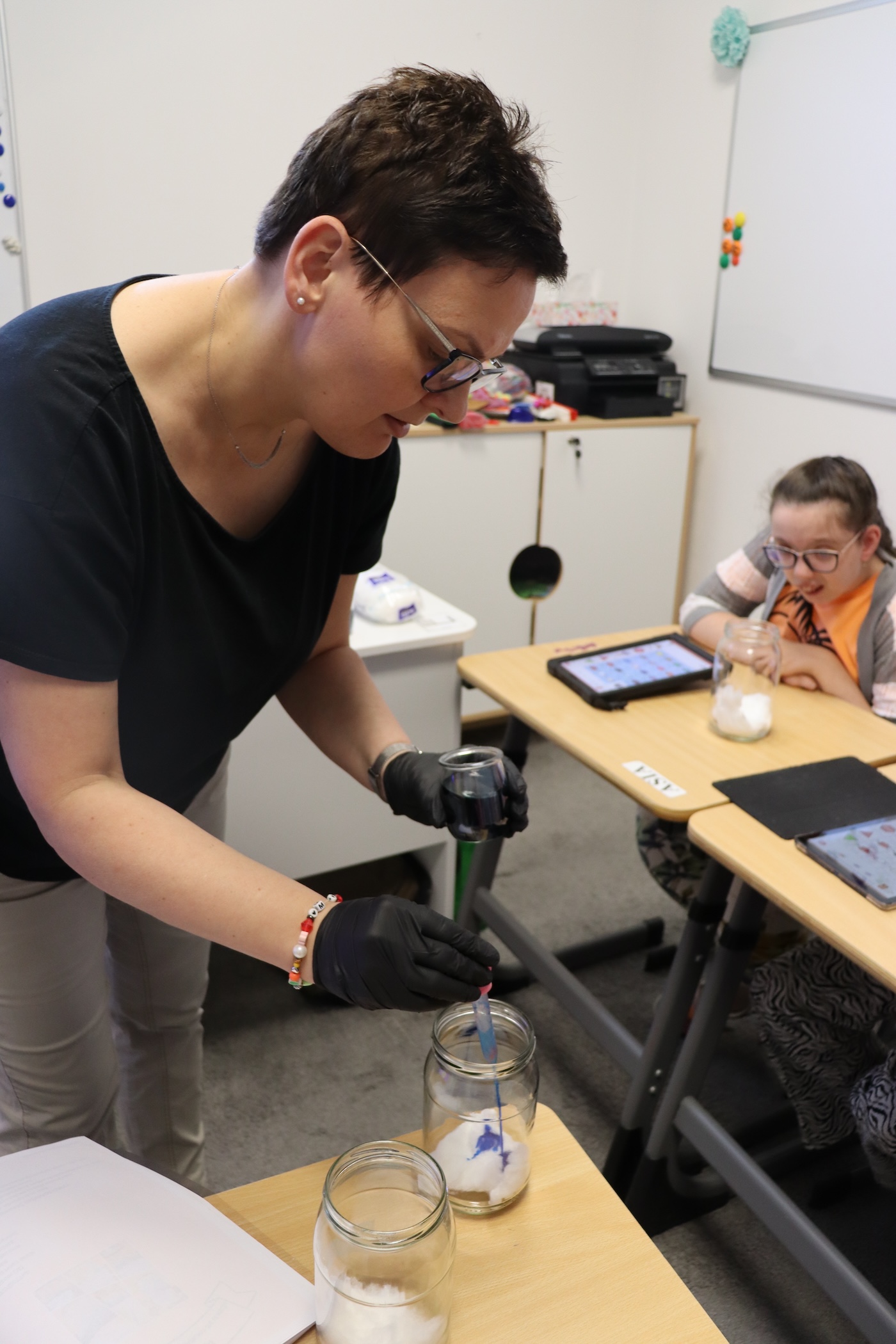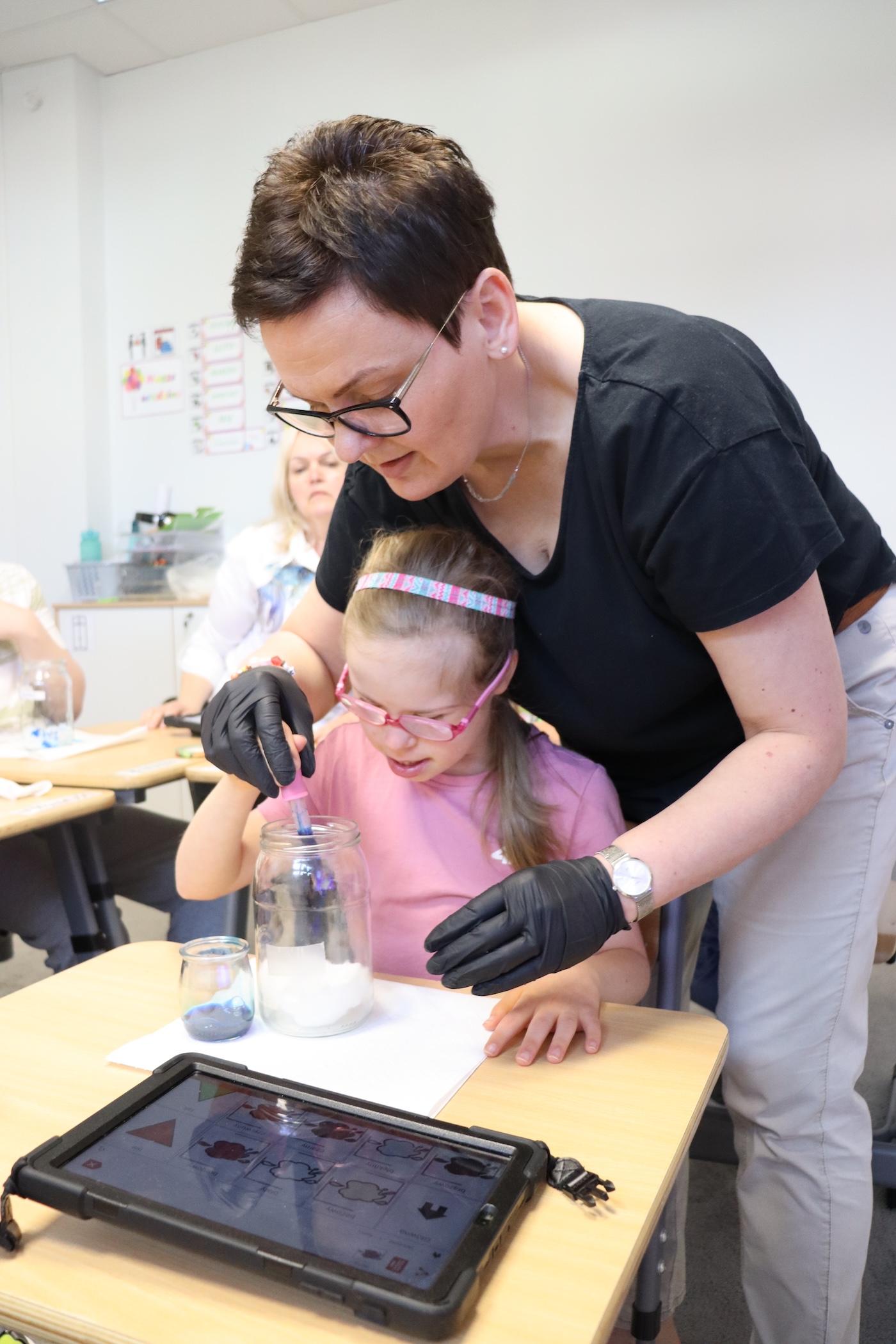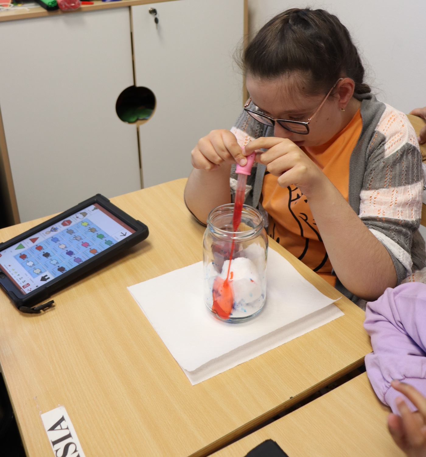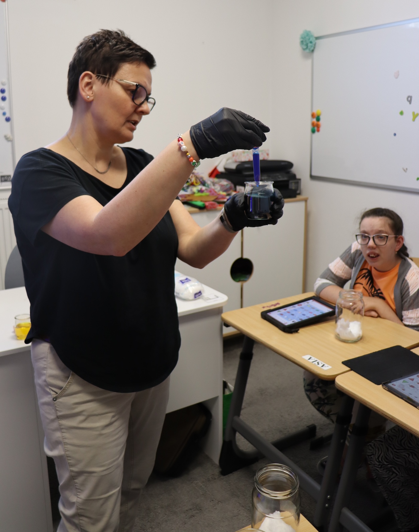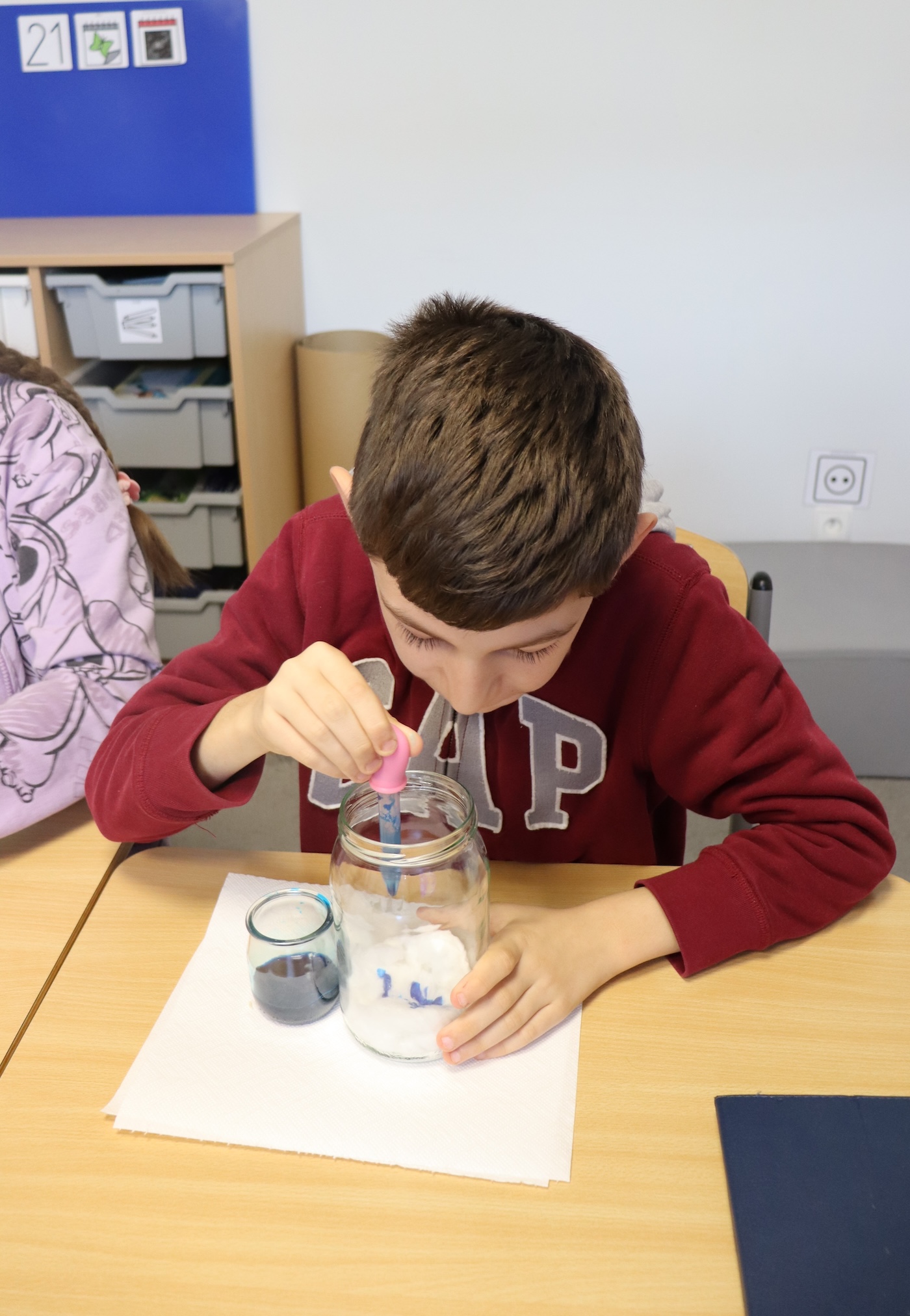 Dnia 21 maja obchodzony jest Światowy Dzień Kosmosu. Uczniowie naszej szkoły tego dnia również poznawali kosmos po przez wysłuchanie piosenki tematycznej, utrwalenie nazw planet i wykonanie pracy tematycznej „Kosmos zamknięty w słoiku” . Najciekawszym punktem dnia był eksperyment do którego wykorzystaliśmy : watę , barwniki, wodę , brokat i słoiki. Celem pracy było rozwijanie sprawności manualnych i koordynacji wzrokowo – ruchowej oraz rozwijanie kreatywności.