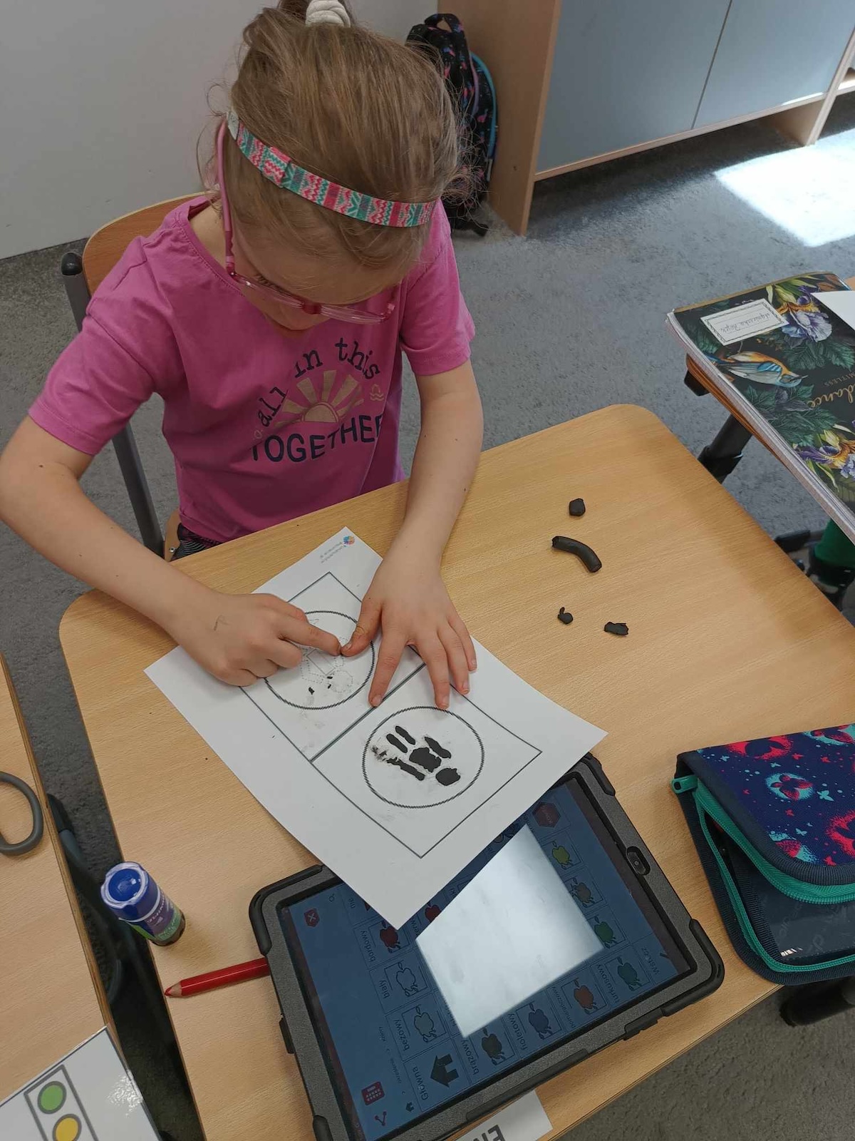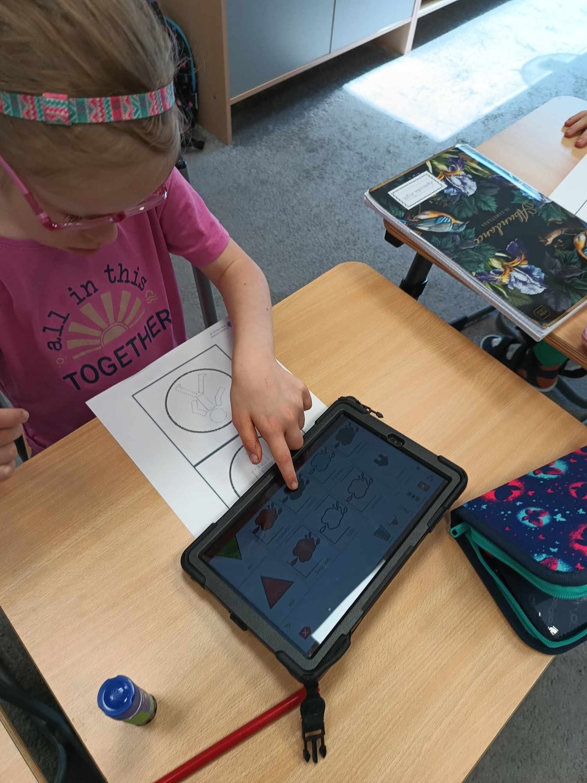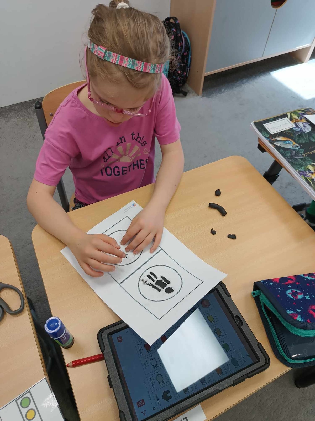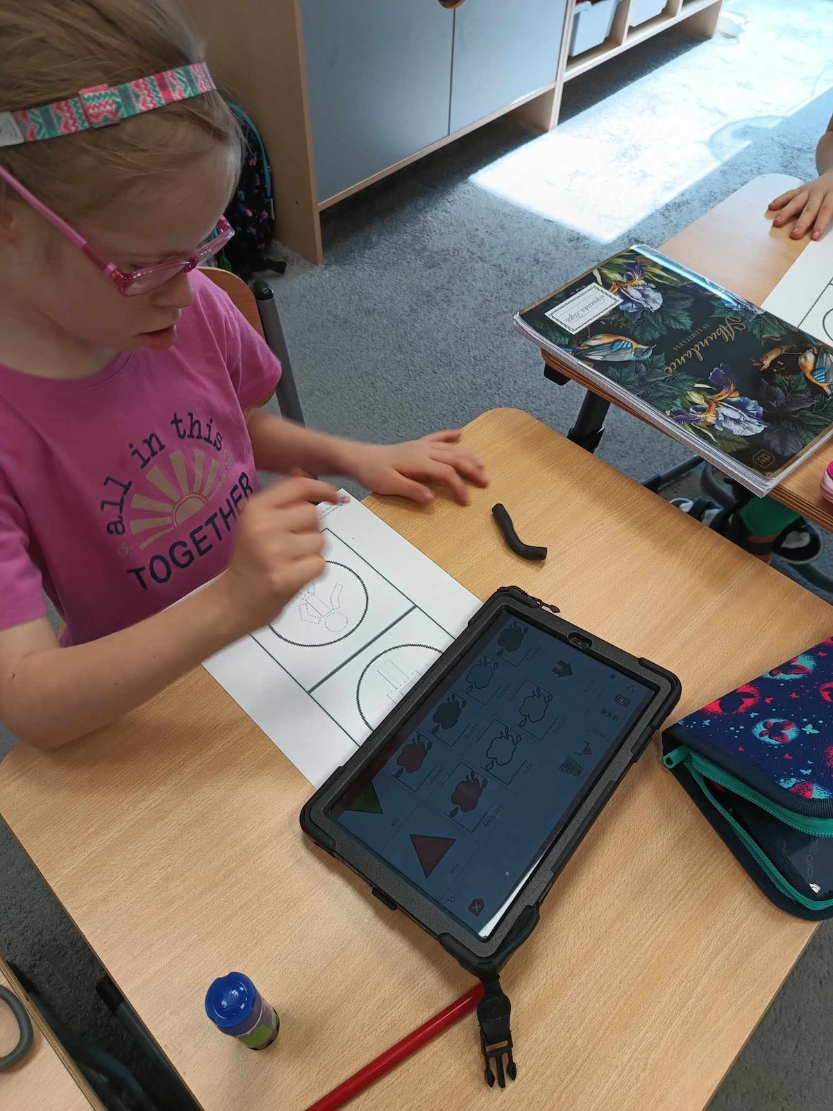 Uczniowie oddziału „I” omawiając temat tygodnia „Bezpieczna droga do szkoły” wykonali prace plastyczną „Sygnalizator świetlny”. Ćwicząc przy tym swoją sprawność manualną, utrwalali kolory: czerwony, zielony i czarny oraz kształt koła.