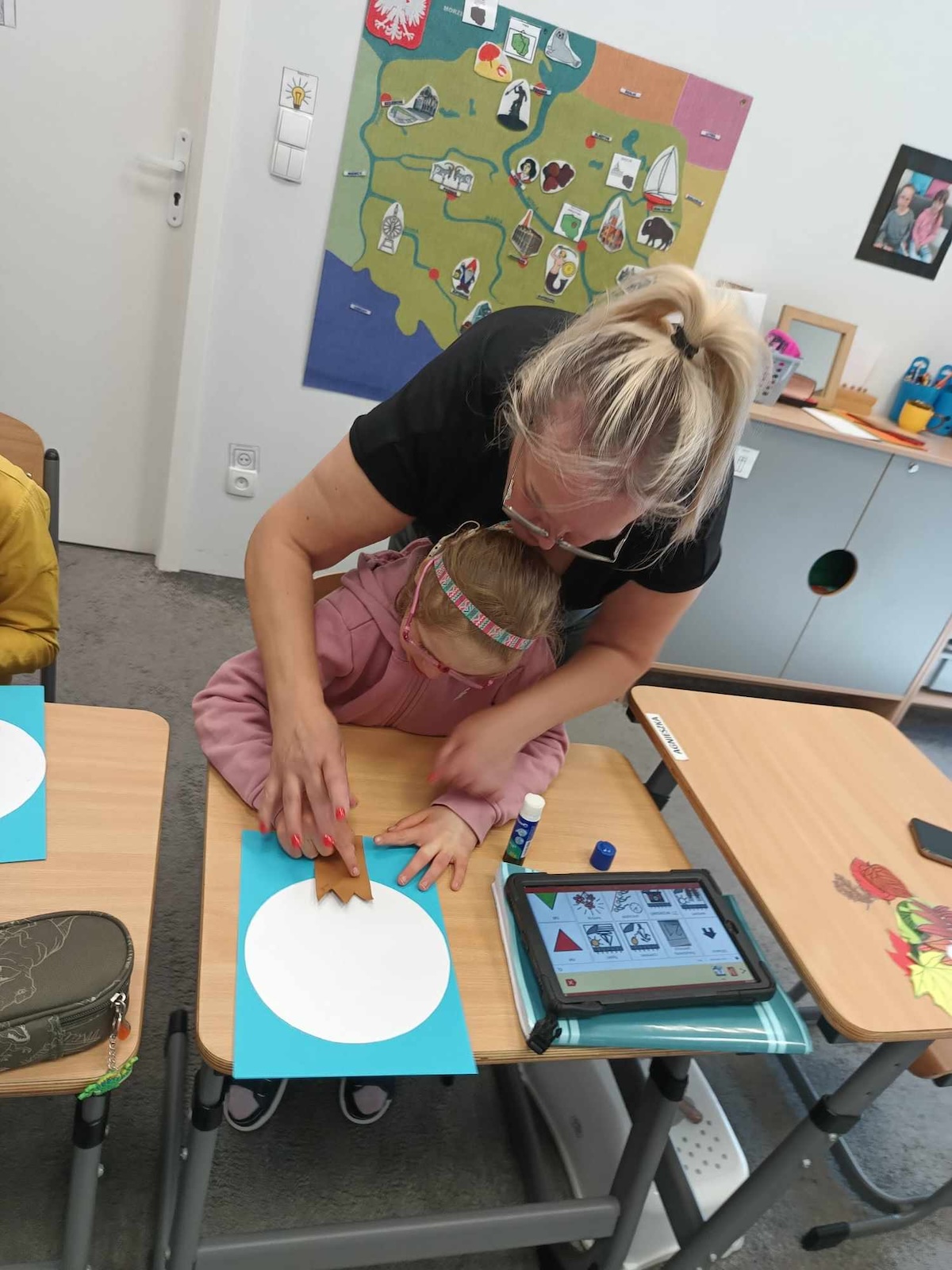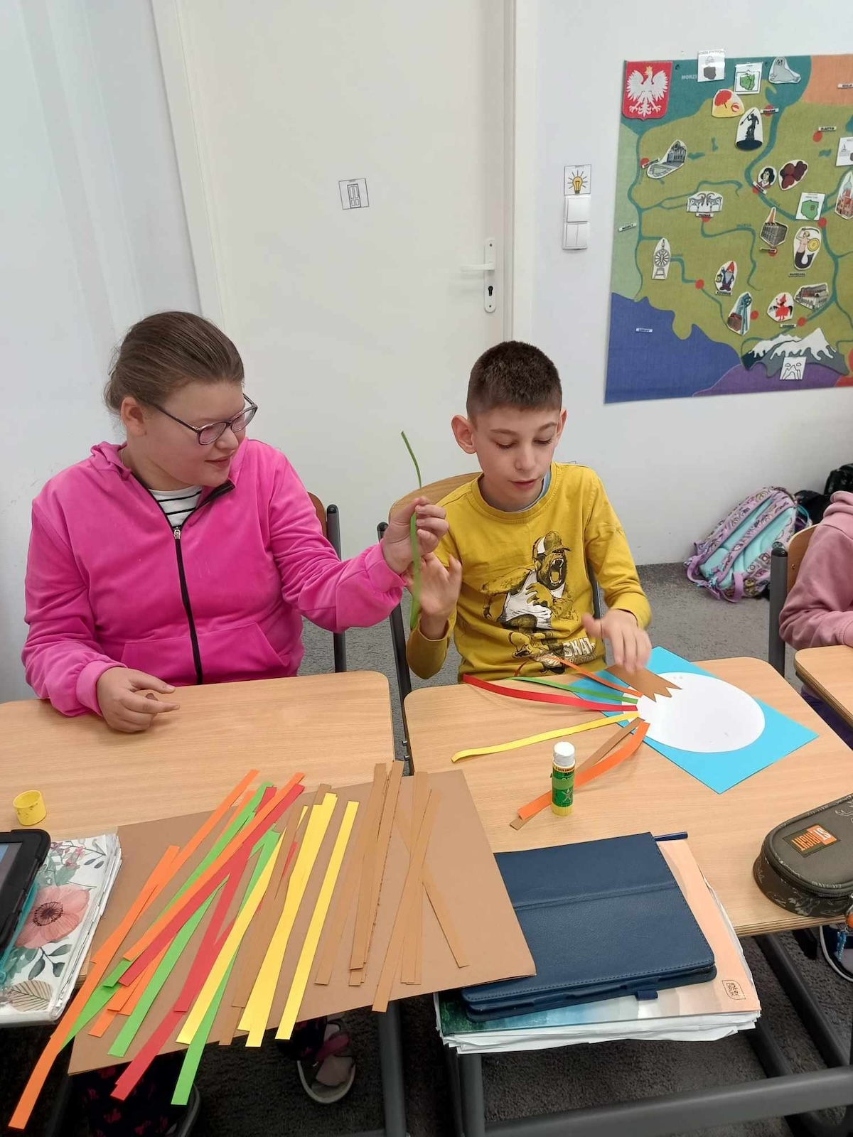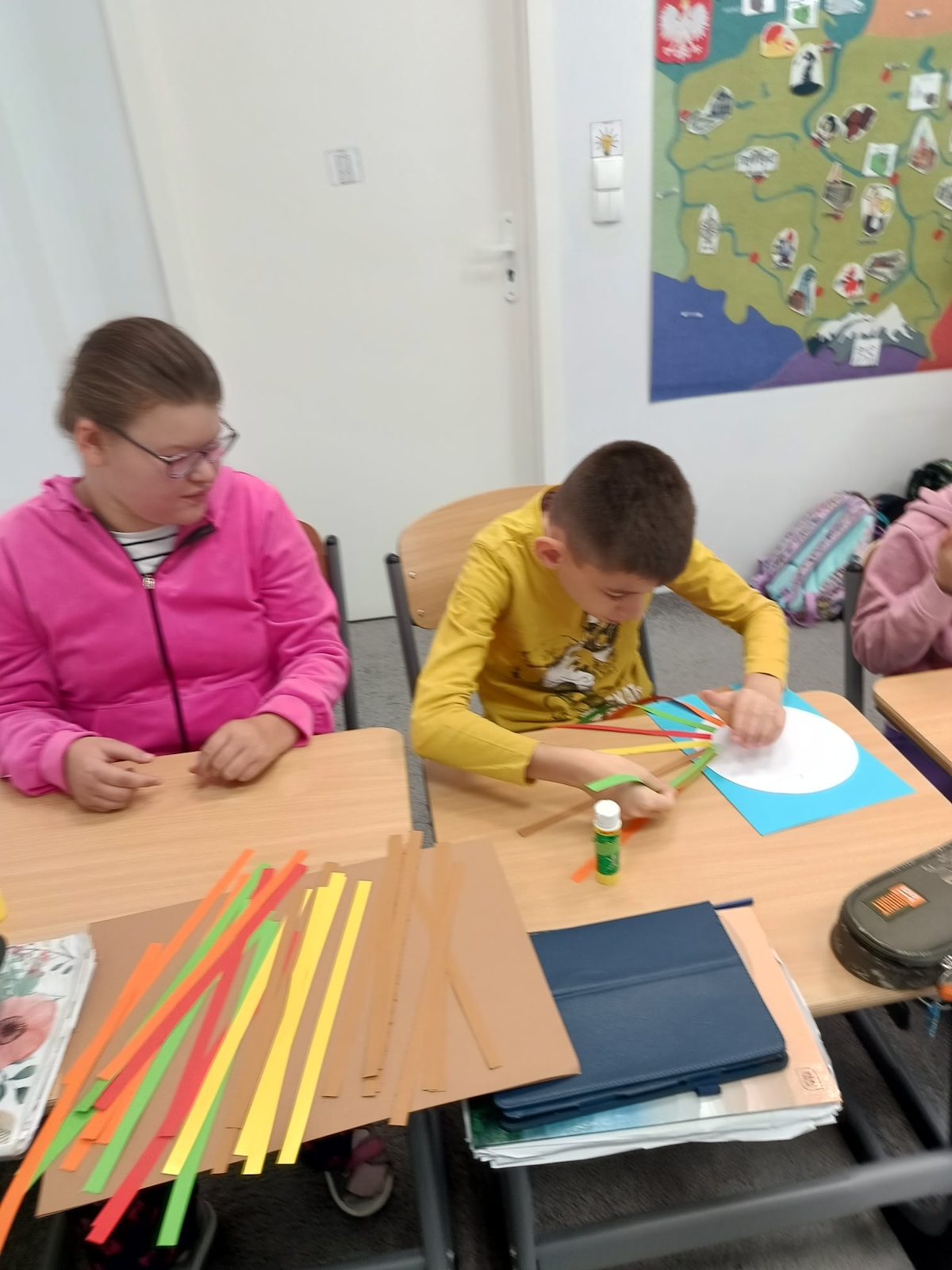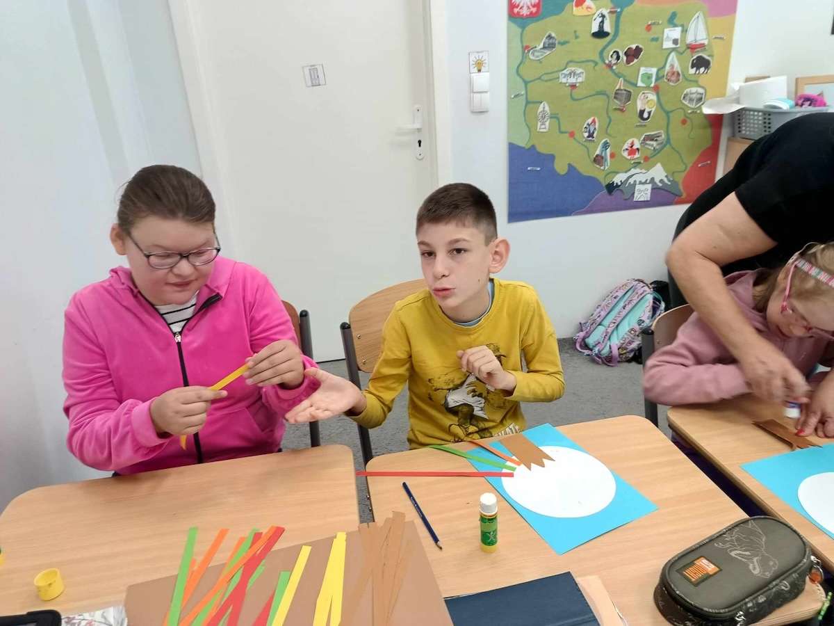 Uczniowie oddziału „I” podczas omawiania tematu dnia „Cechy Jesieni” utrwalali wiadomości opisujące nową porę roku - Jesień. Wykonali pracę plastyczną „Jesienne drzewo”- utrwalając jesienne kolory i ćwicząc swoją sprawność manualną.