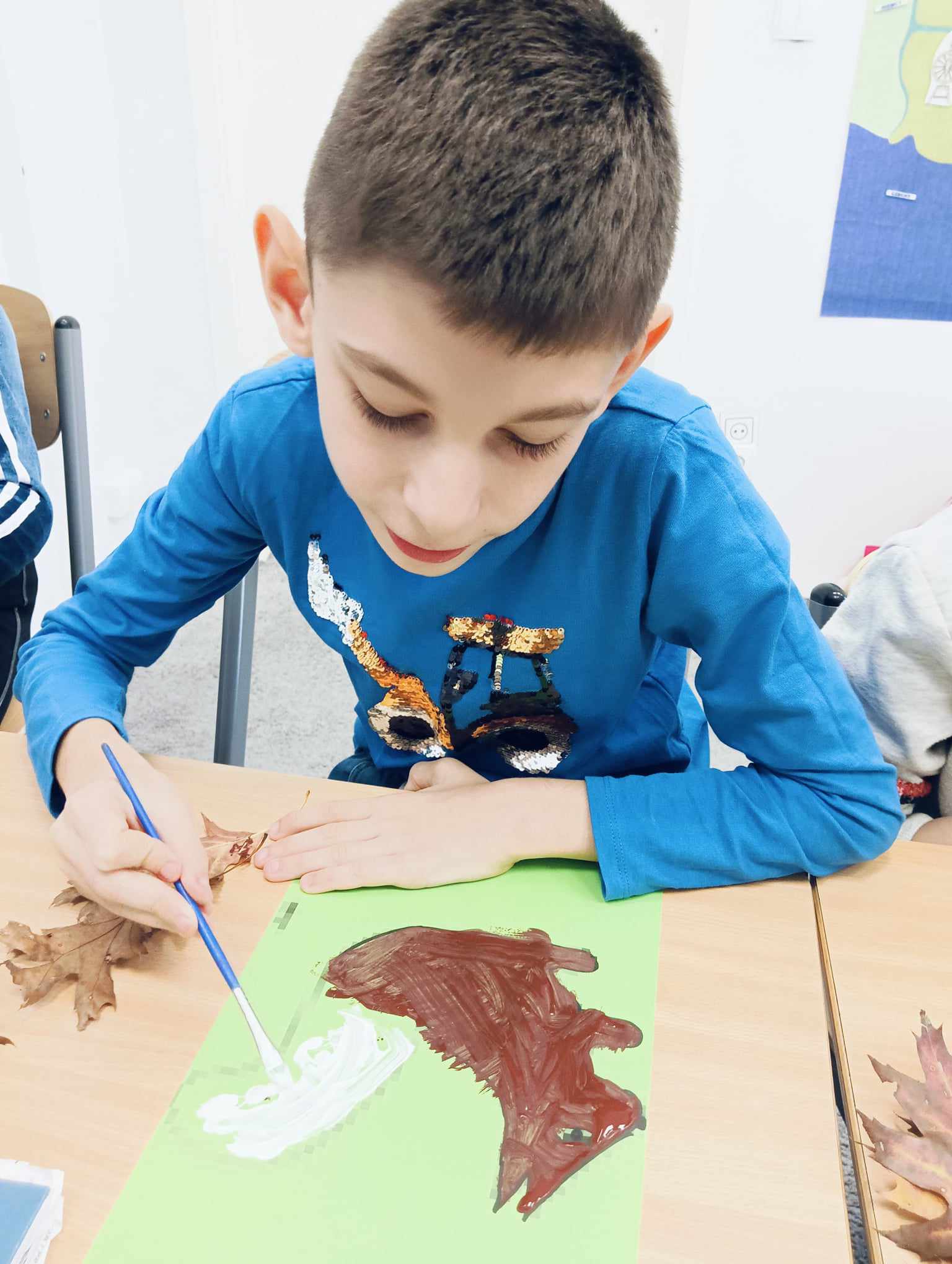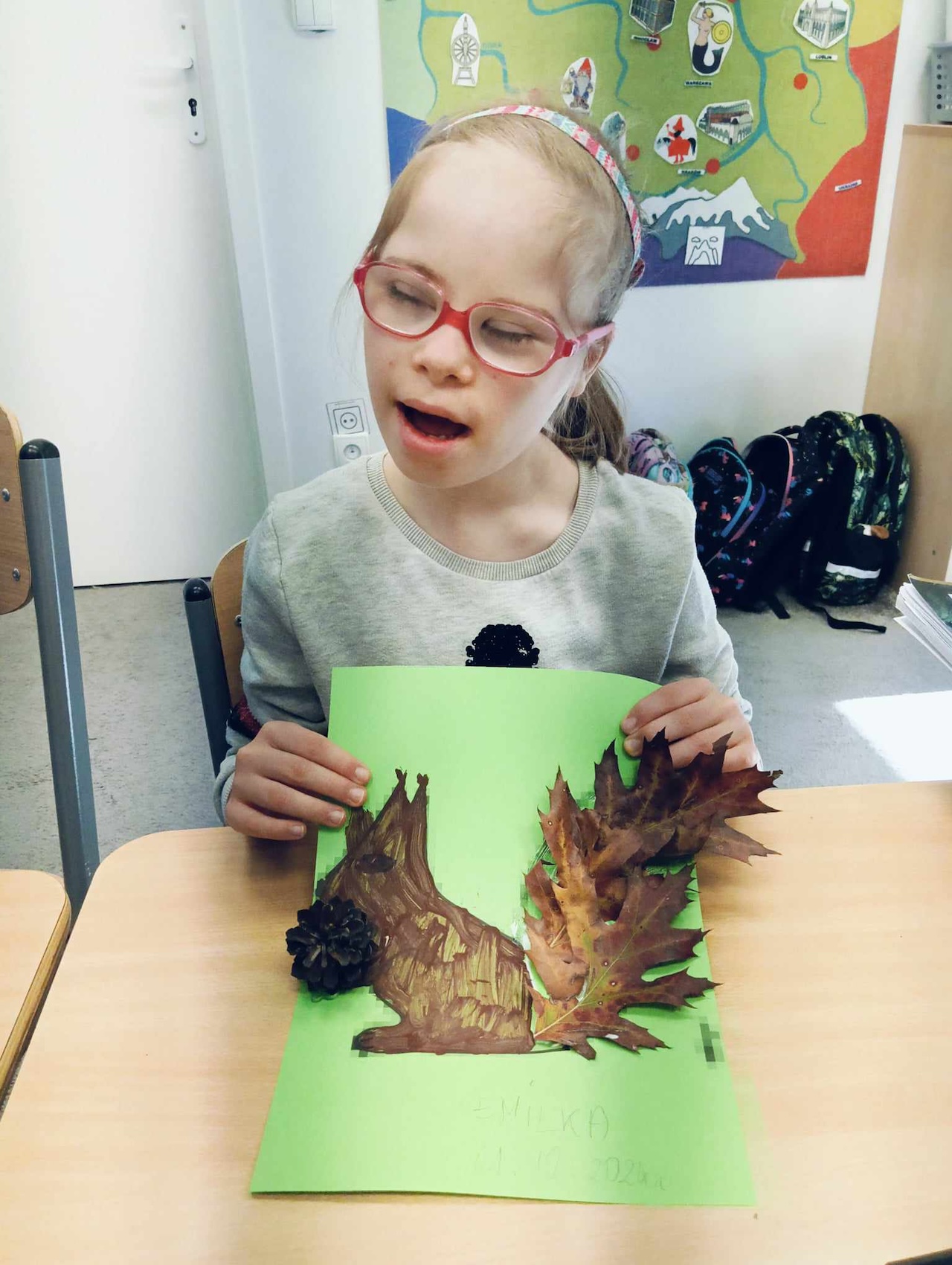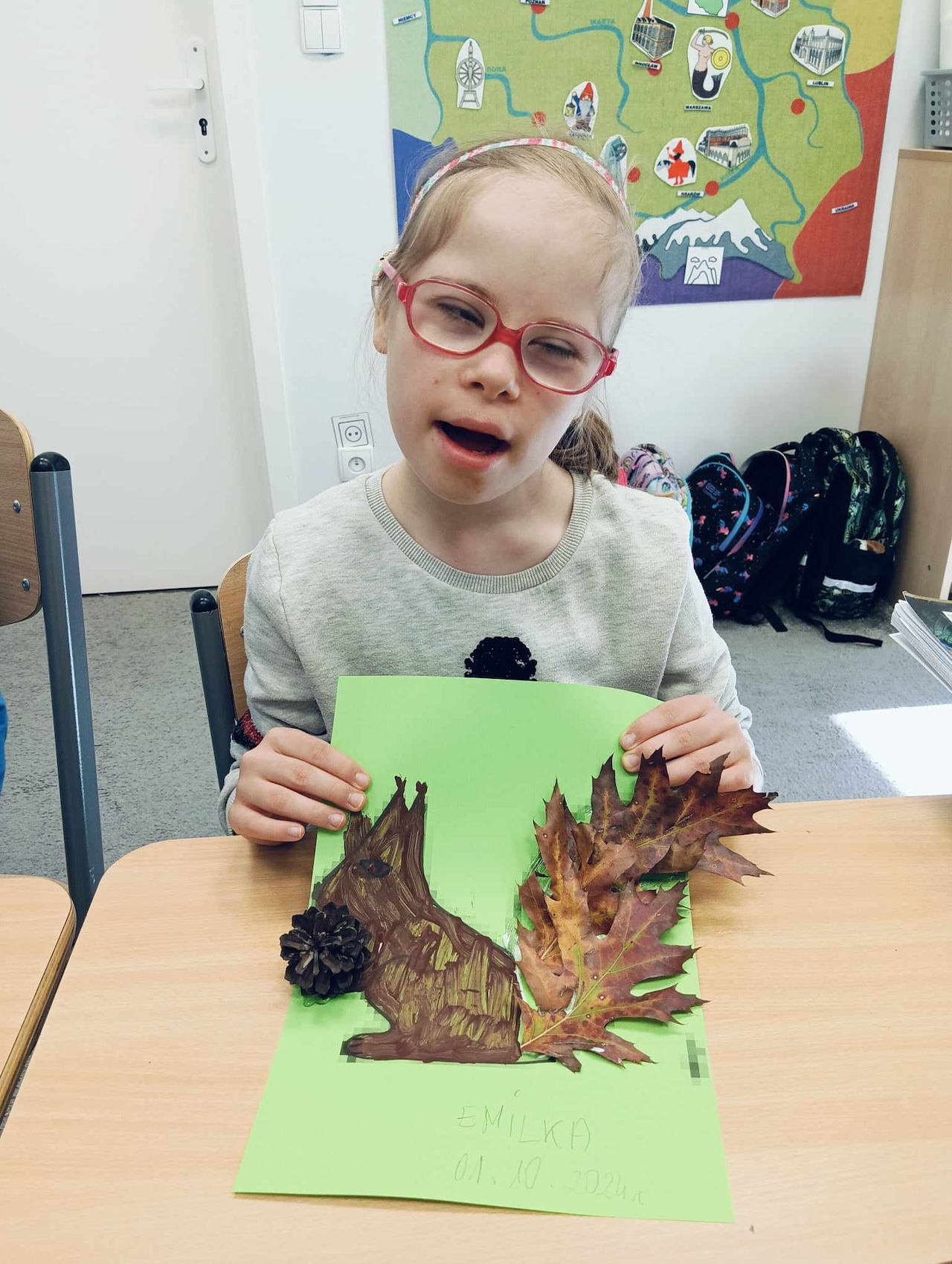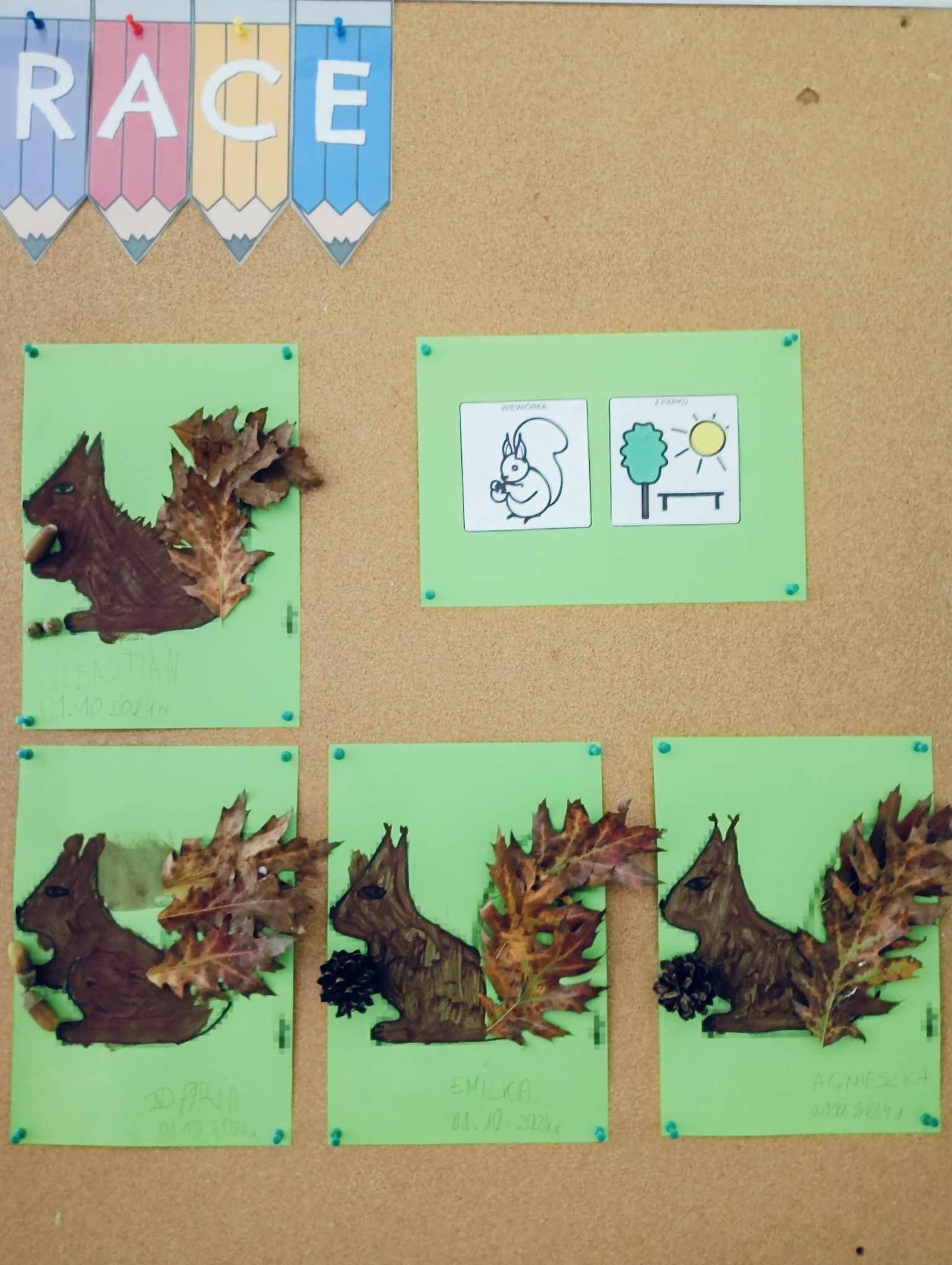 Uczniowie oddziału „I” podczas omawiania tematu tygodnia „Park Jesienią” uczyli się o darach tej pory roku, jakie można znaleźć podczas spaceru w parku. Wykonali przy tym pracę plastyczną „ Wiewiórka”, używając znalezionych w parku jesiennych liści, żołędzi, szyszek i kasztanów. Utrwalali także kolor brązowy, przeliczali do 3, ćwiczyli swoją sprawność manualną, rozwijali koordynacje wzrokowo-ruchową oraz kreatywność.