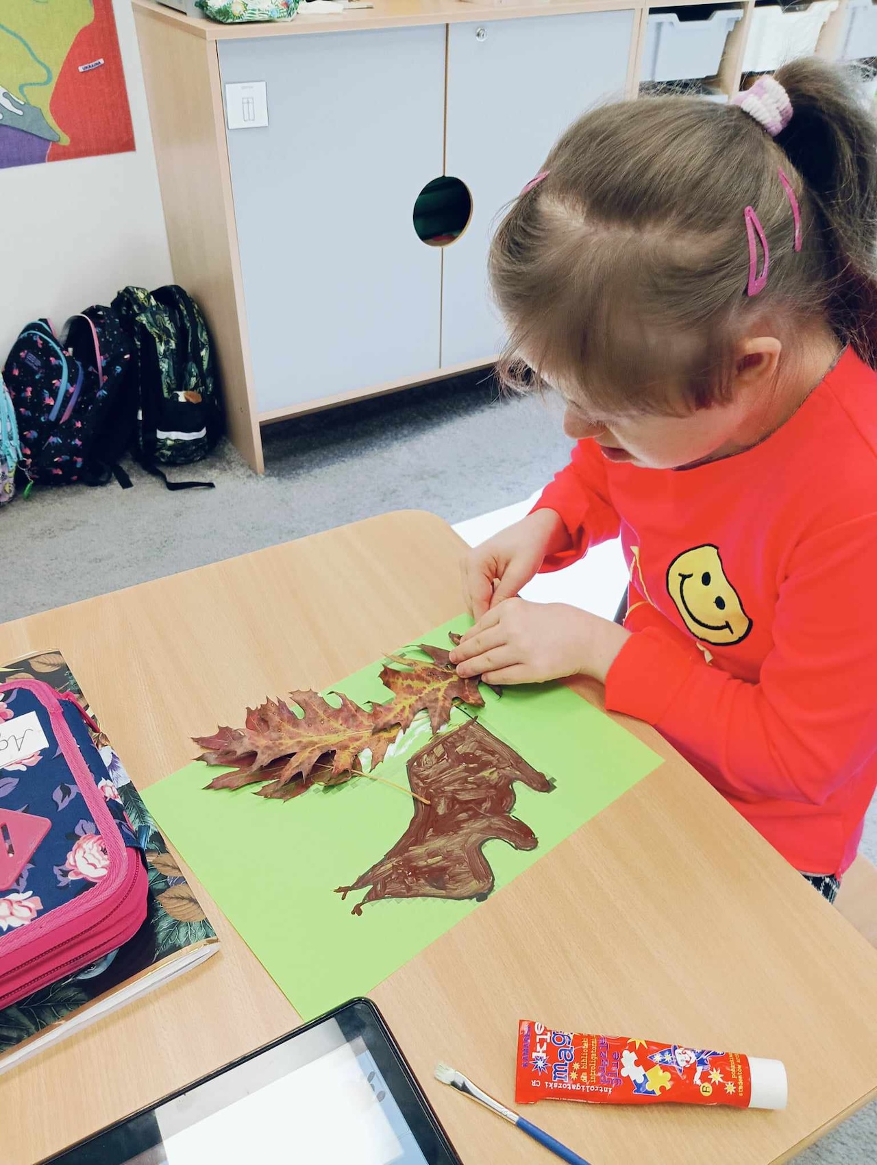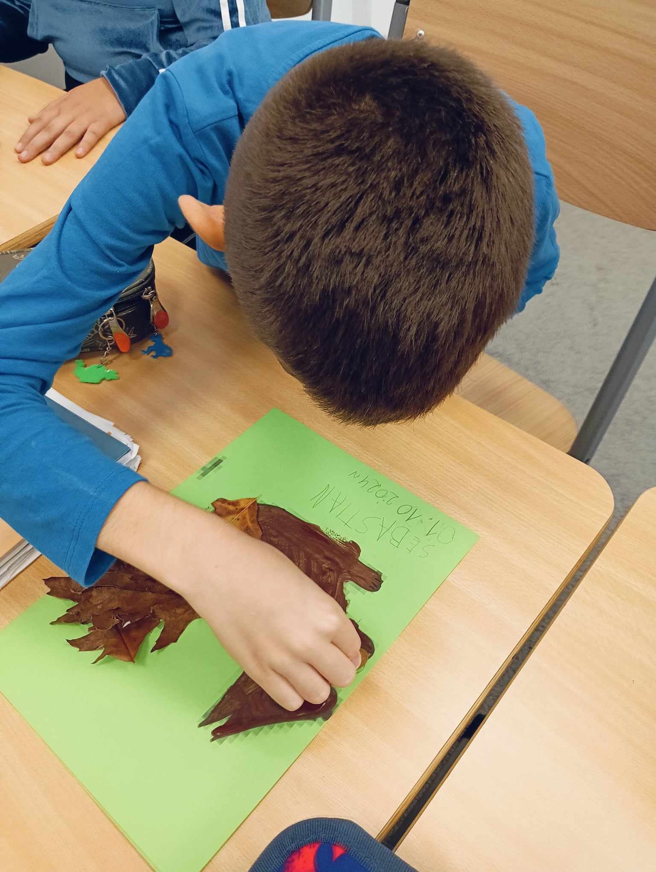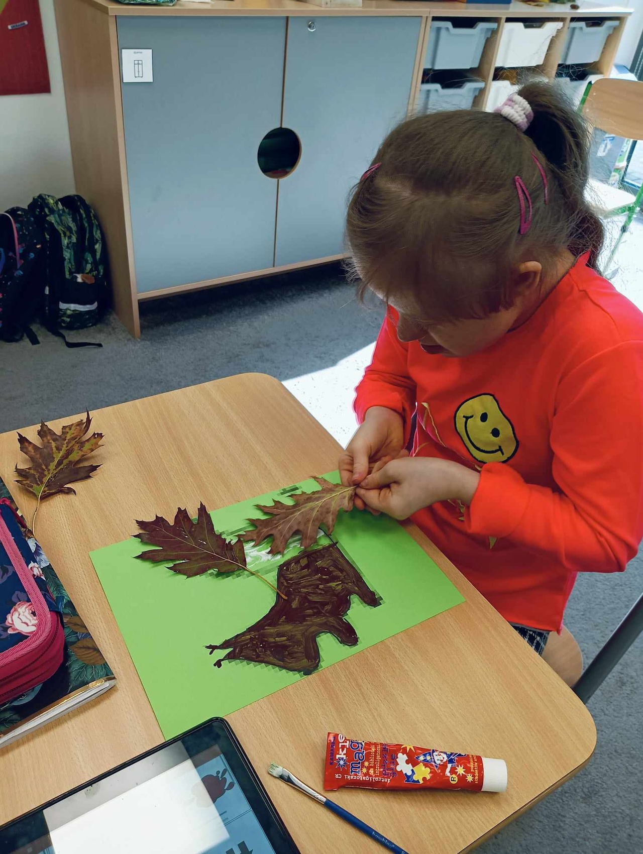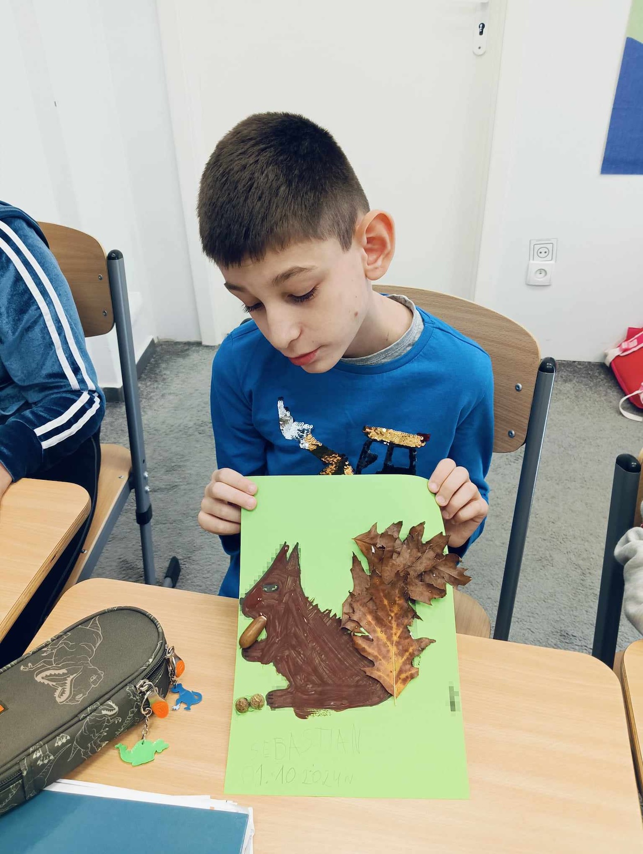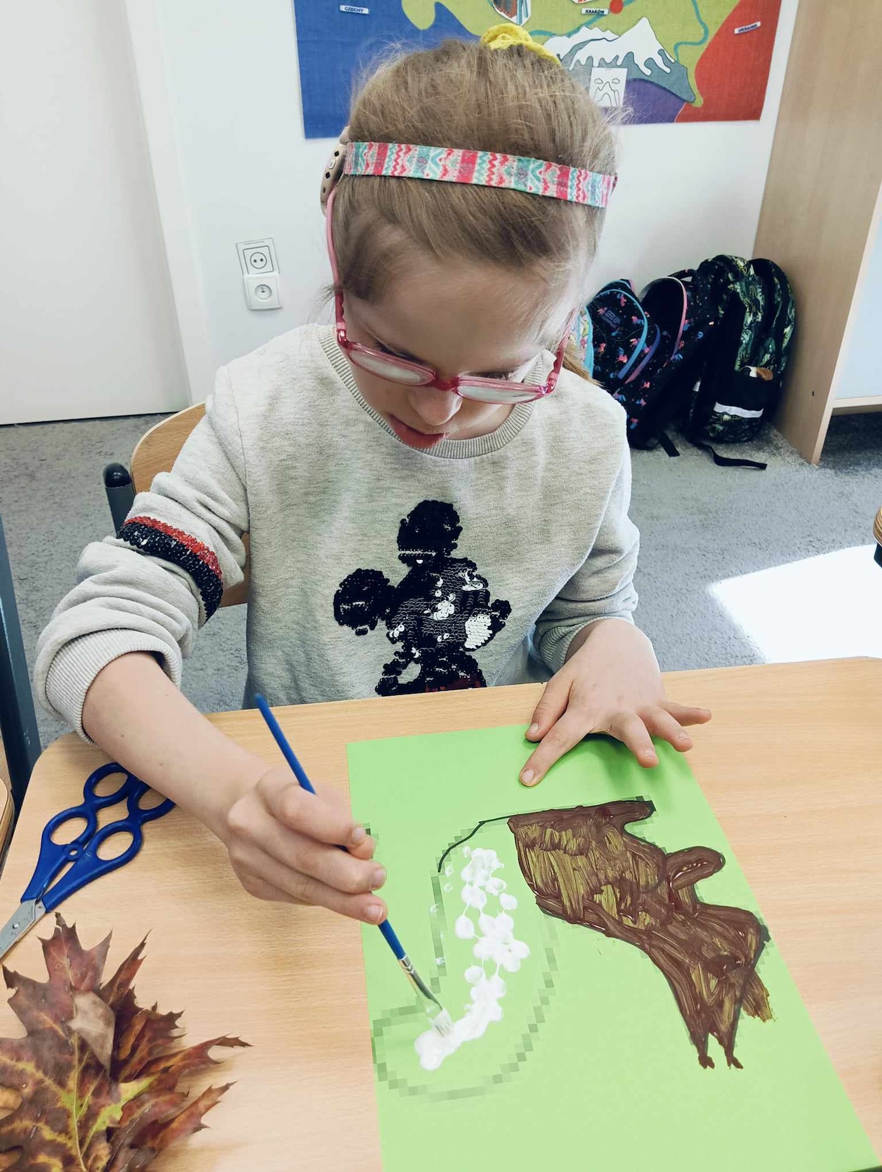 Uczniowie oddziału „I” podczas omawiania tematu tygodnia „Park Jesienią” uczyli się o darach tej pory roku, jakie można znaleźć podczas spaceru w parku. Wykonali przy tym pracę plastyczną „ Wiewiórka”, używając znalezionych w parku jesiennych liści, żołędzi, szyszek i kasztanów. Utrwalali także kolor brązowy, przeliczali do 3, ćwiczyli swoją sprawność manualną, rozwijali koordynacje wzrokowo-ruchową oraz kreatywność.