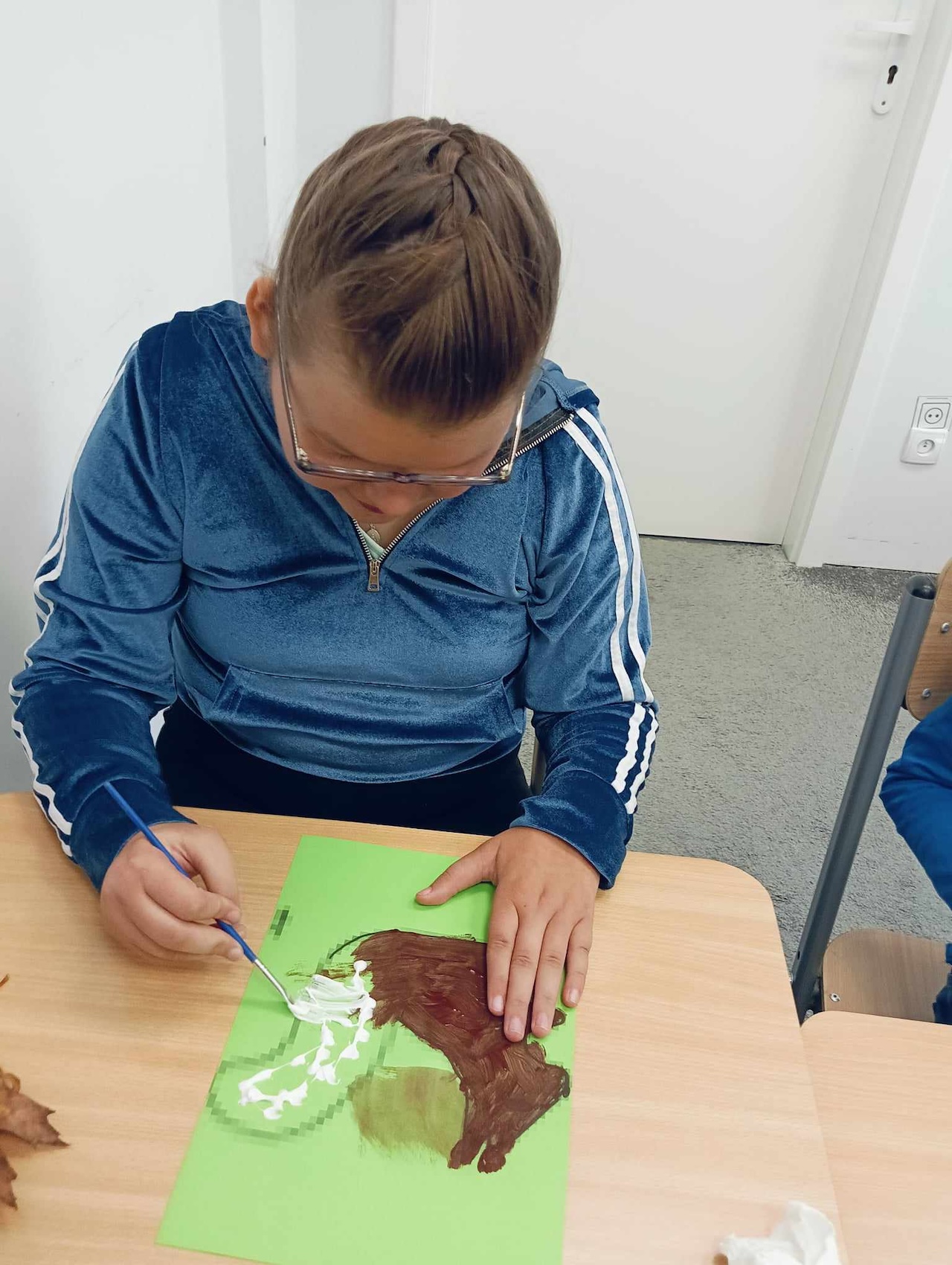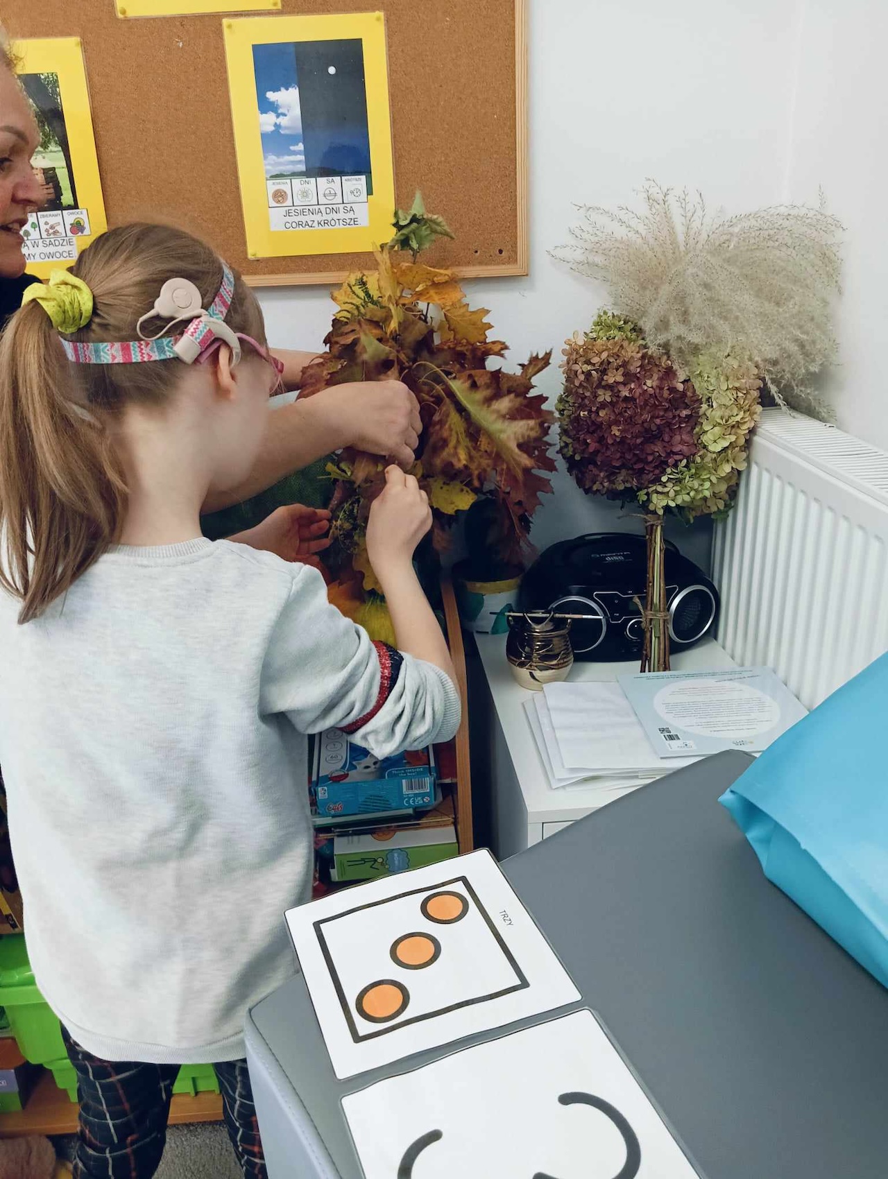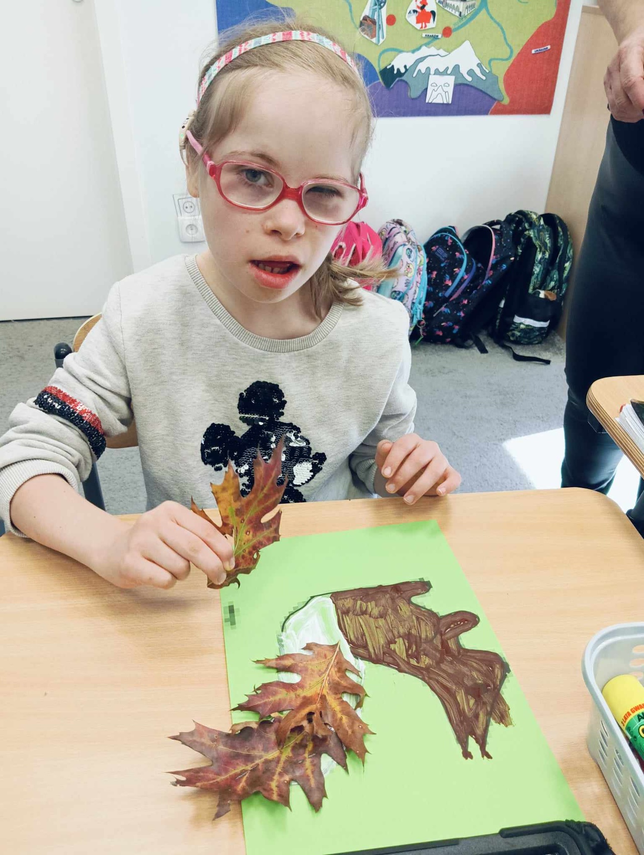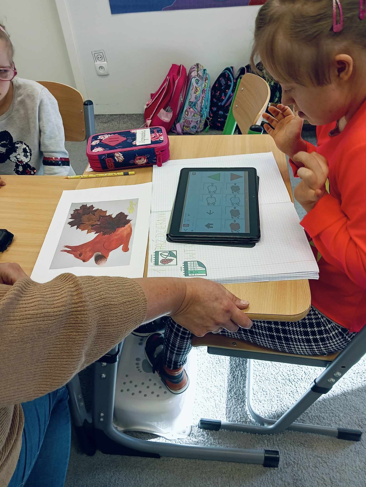Uczniowie oddziału „I” podczas omawiania tematu tygodnia „Park Jesienią” uczyli się o darach tej pory roku, jakie można znaleźć podczas spaceru w parku. Wykonali przy tym pracę plastyczną „ Wiewiórka”, używając znalezionych w parku jesiennych liści, żołędzi, szyszek i kasztanów. Utrwalali także kolor brązowy, przeliczali do 3, ćwiczyli swoją sprawność manualną, rozwijali koordynacje wzrokowo-ruchową oraz kreatywność.