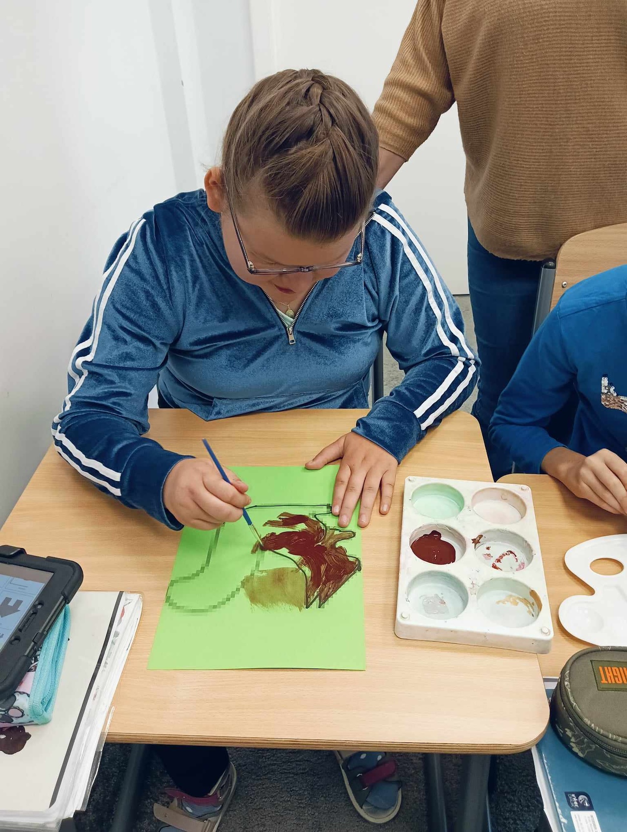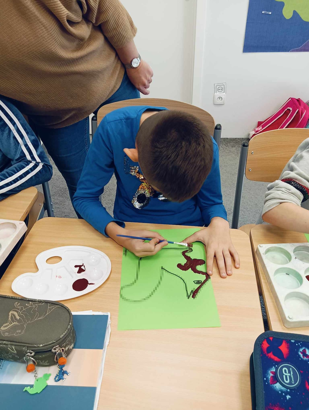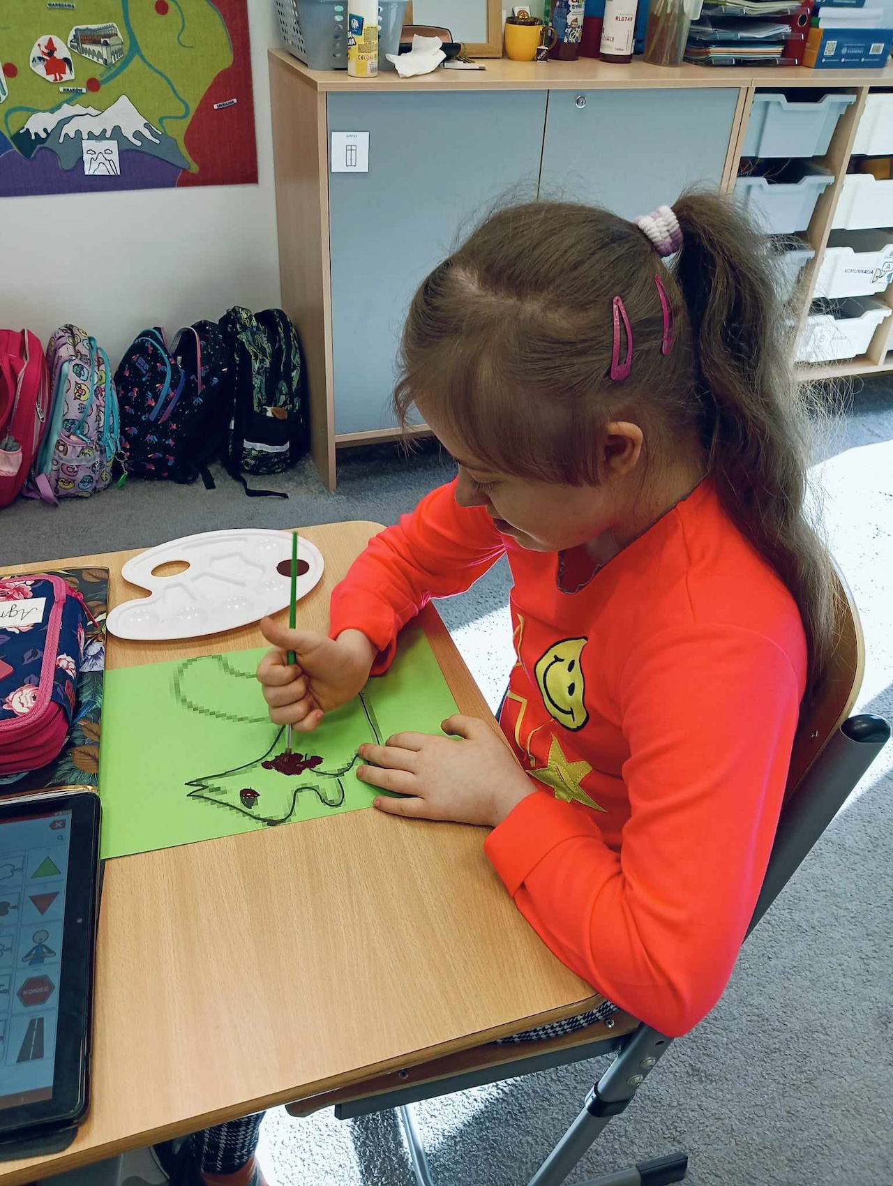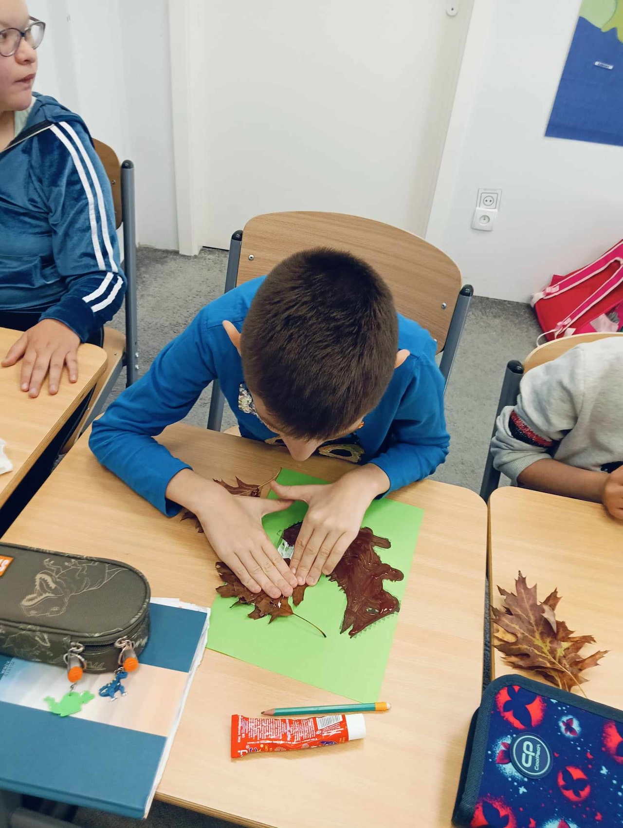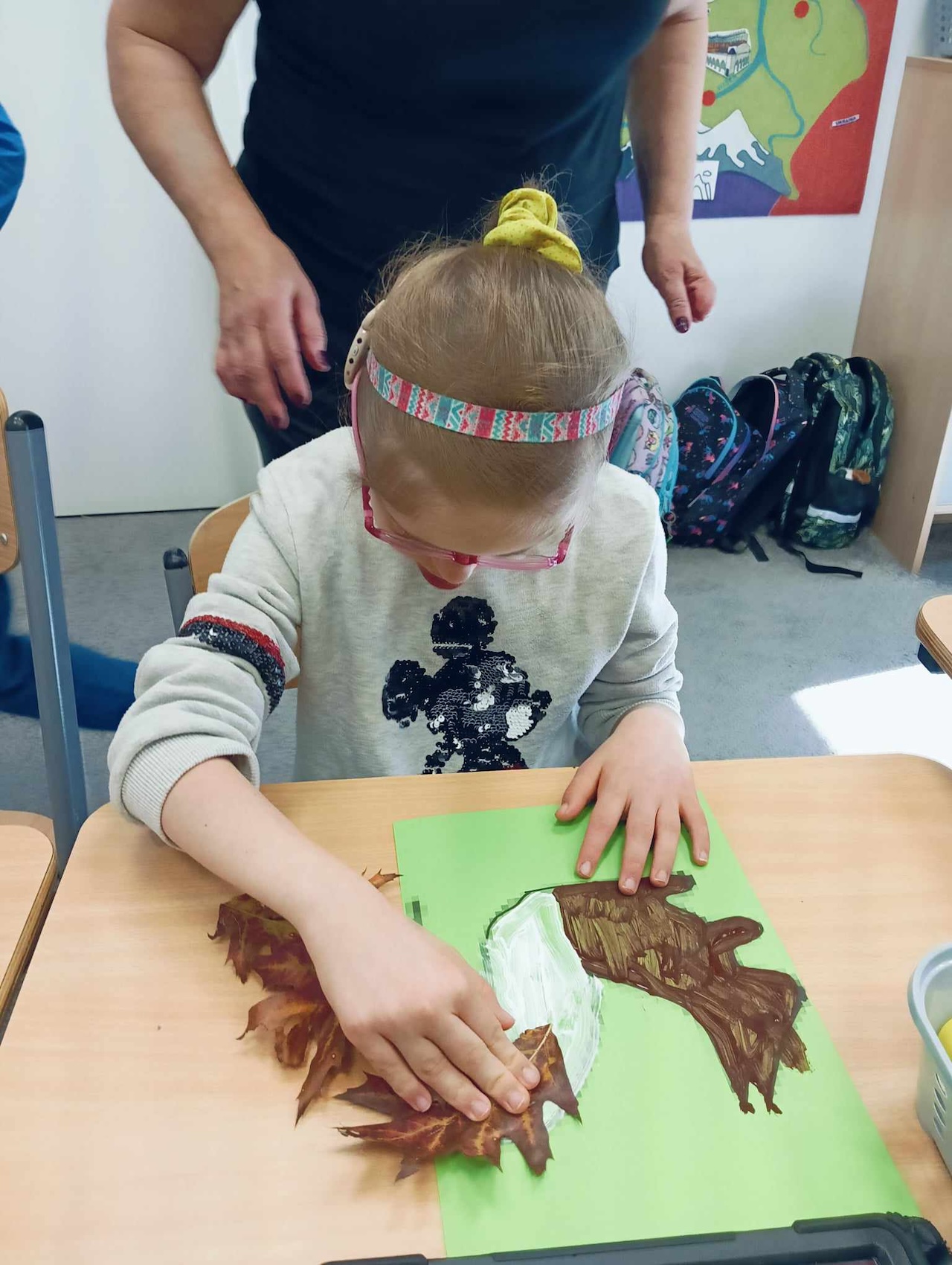 Uczniowie oddziału „I” podczas omawiania tematu tygodnia „Park Jesienią” uczyli się o darach tej pory roku, jakie można znaleźć podczas spaceru w parku. Wykonali przy tym pracę plastyczną „ Wiewiórka”, używając znalezionych w parku jesiennych liści, żołędzi, szyszek i kasztanów. Utrwalali także kolor brązowy, przeliczali do 3, ćwiczyli swoją sprawność manualną, rozwijali koordynacje wzrokowo-ruchową oraz kreatywność.