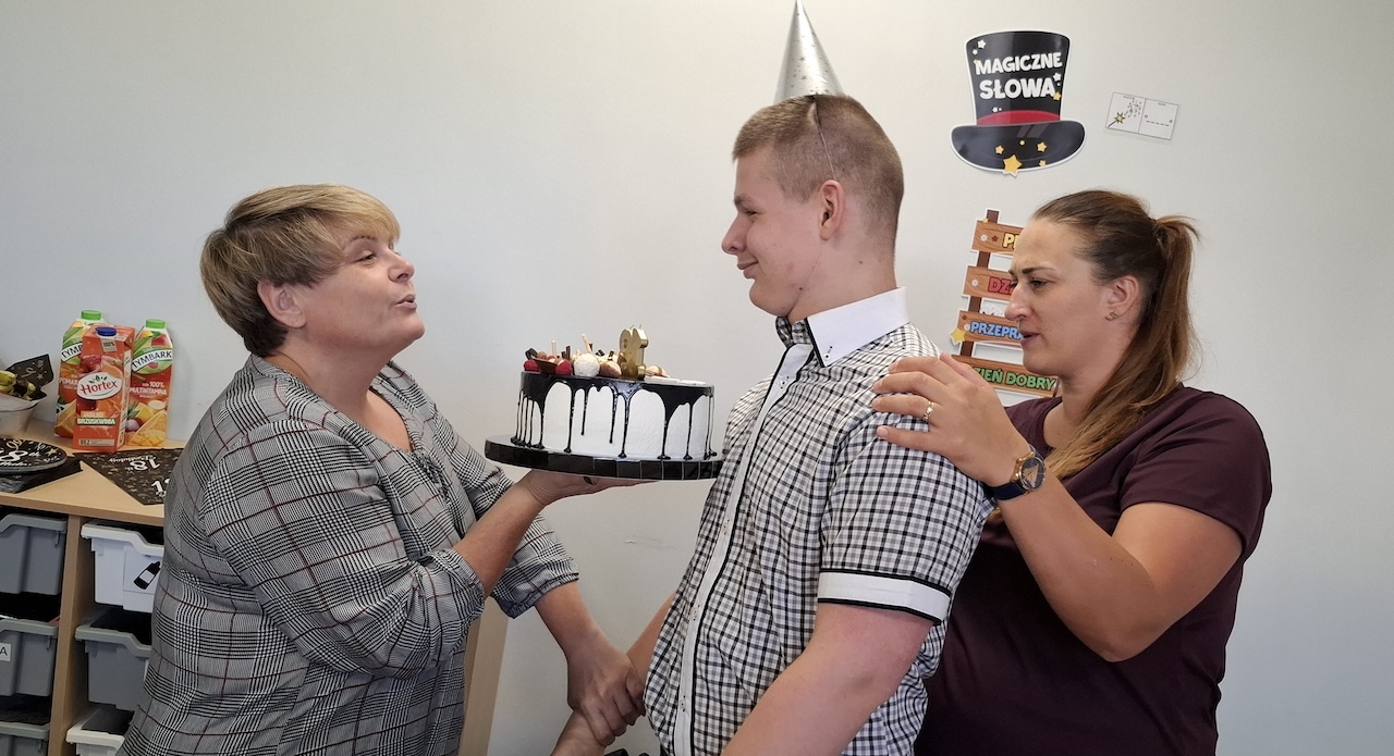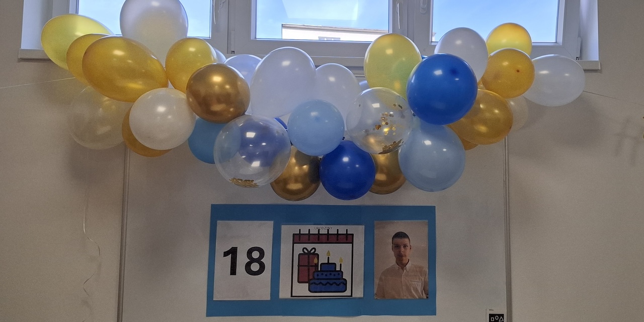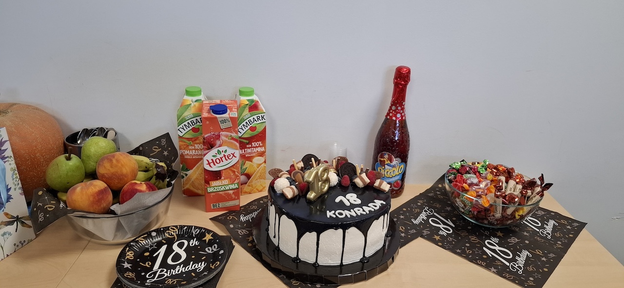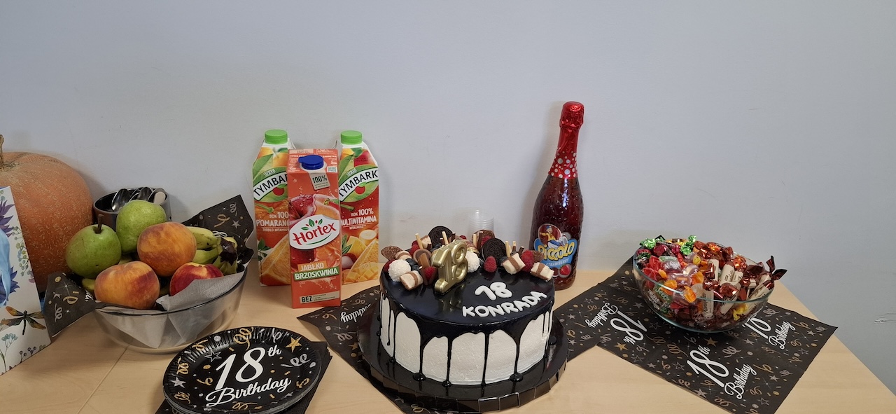 Dnia 26 września nasz uczeń Konrad obchodził swoje 18 urodziny. W tym dniu nie obeszło się bez pysznego tortu, owoców, cukierków i wielu wspaniałych prezentów dla solenizanta. Konrad życzymy Ci , abyś patrzył na świat z ciekawością i entuzjazmem , niezależnie od przeciwności losu. Niech te 18 urodziny będą początkiem pięknej przygody, która zabierze Cię w wyjątkowe miejsca, by poznać prawdziwych przyjaciół i sprawi, że będziesz szczęśliwą osobą. Wszystkiego Najlepszego !