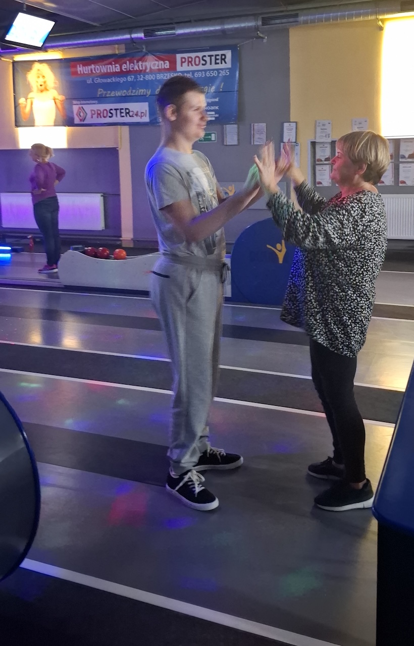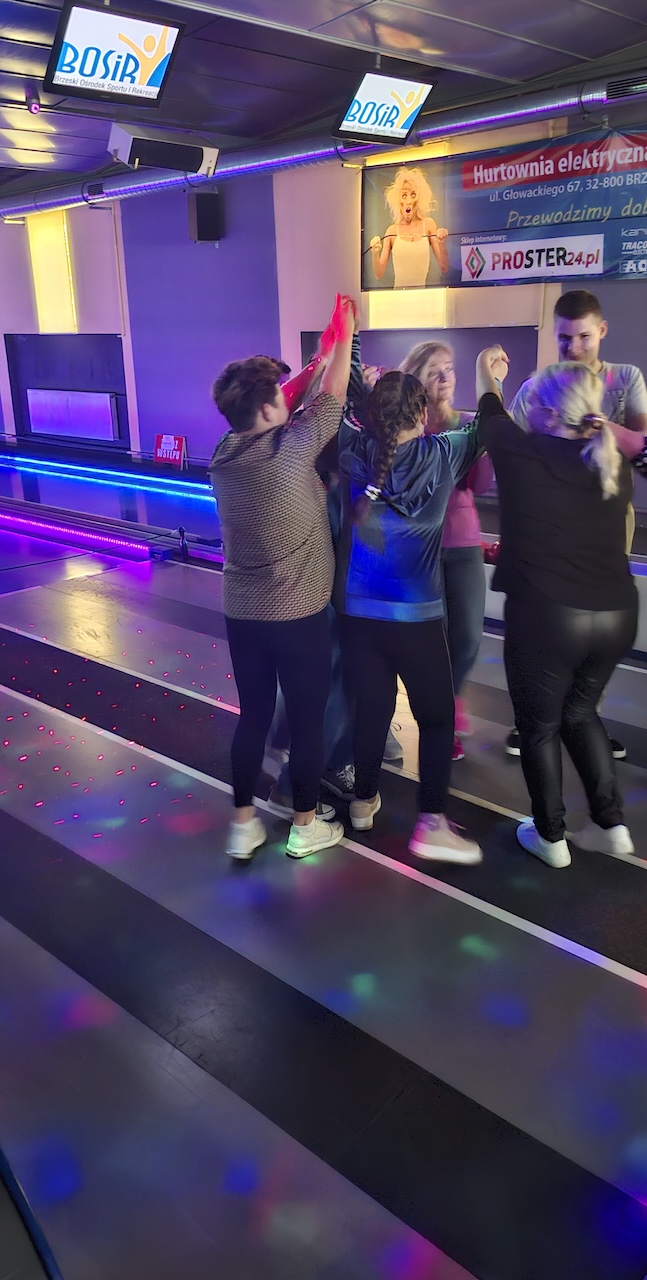 Dnia 7 października uczniowie naszej szkoły wraz z nauczycielami i rodzicami udali się na kolejną wizytę do zaprzyjaźnionej w Brzesku kręgielni. Uczniowie przypomnieli sobie zasady gry i po kilku próbach bardzo dobrze radzili sobie w rzucie kulą. Na końcu Pan z obsługi włączył muzykę przy której mogliśmy zatańczyć wspólnie tańce . Uśmiechu i radości było co niemiara!