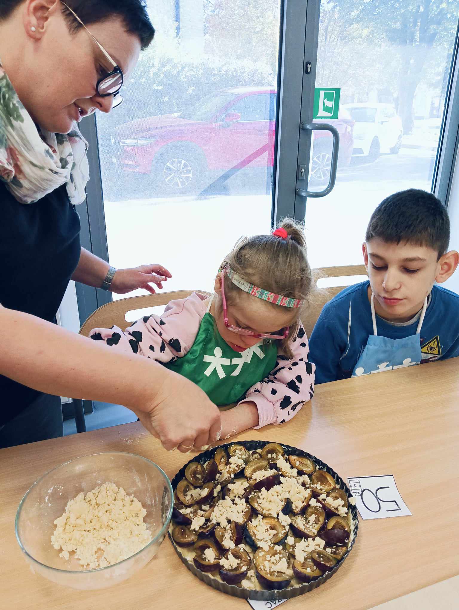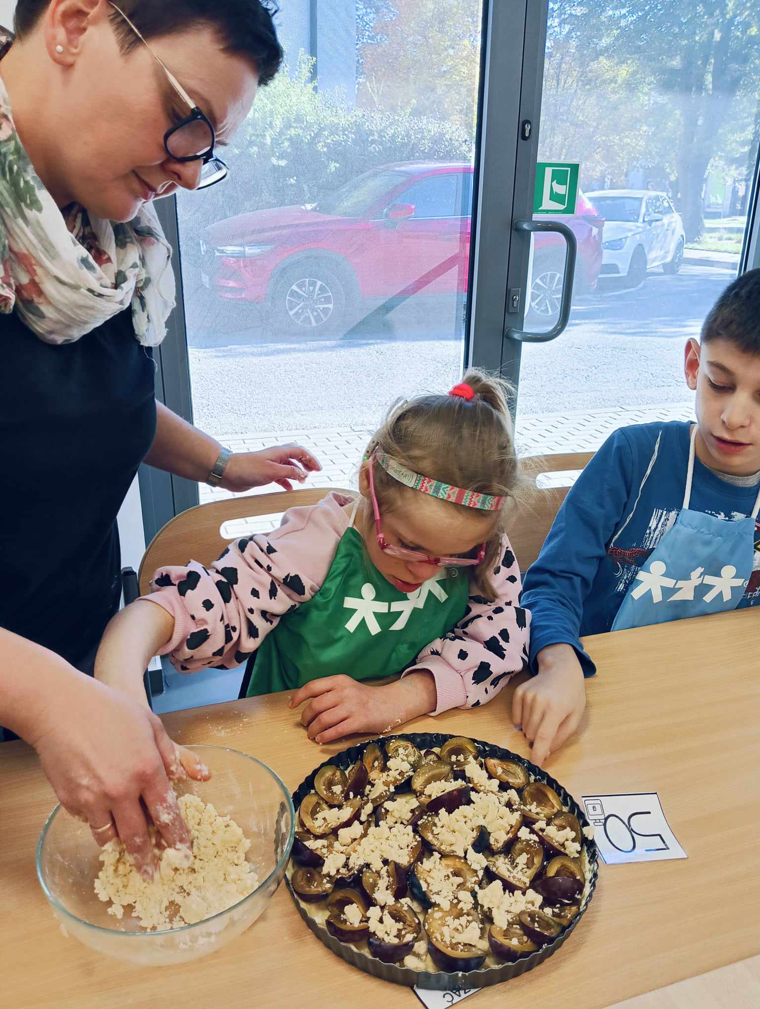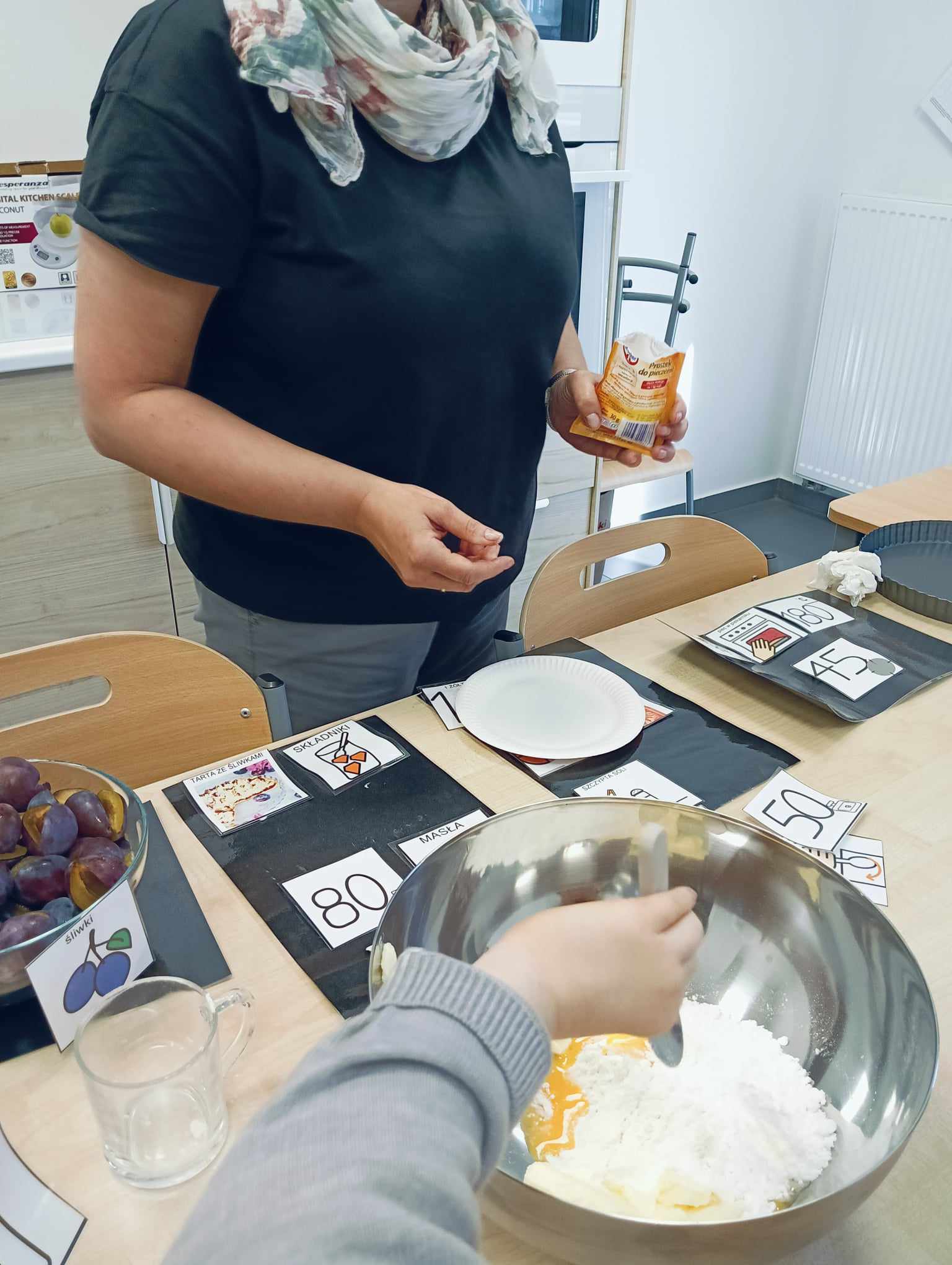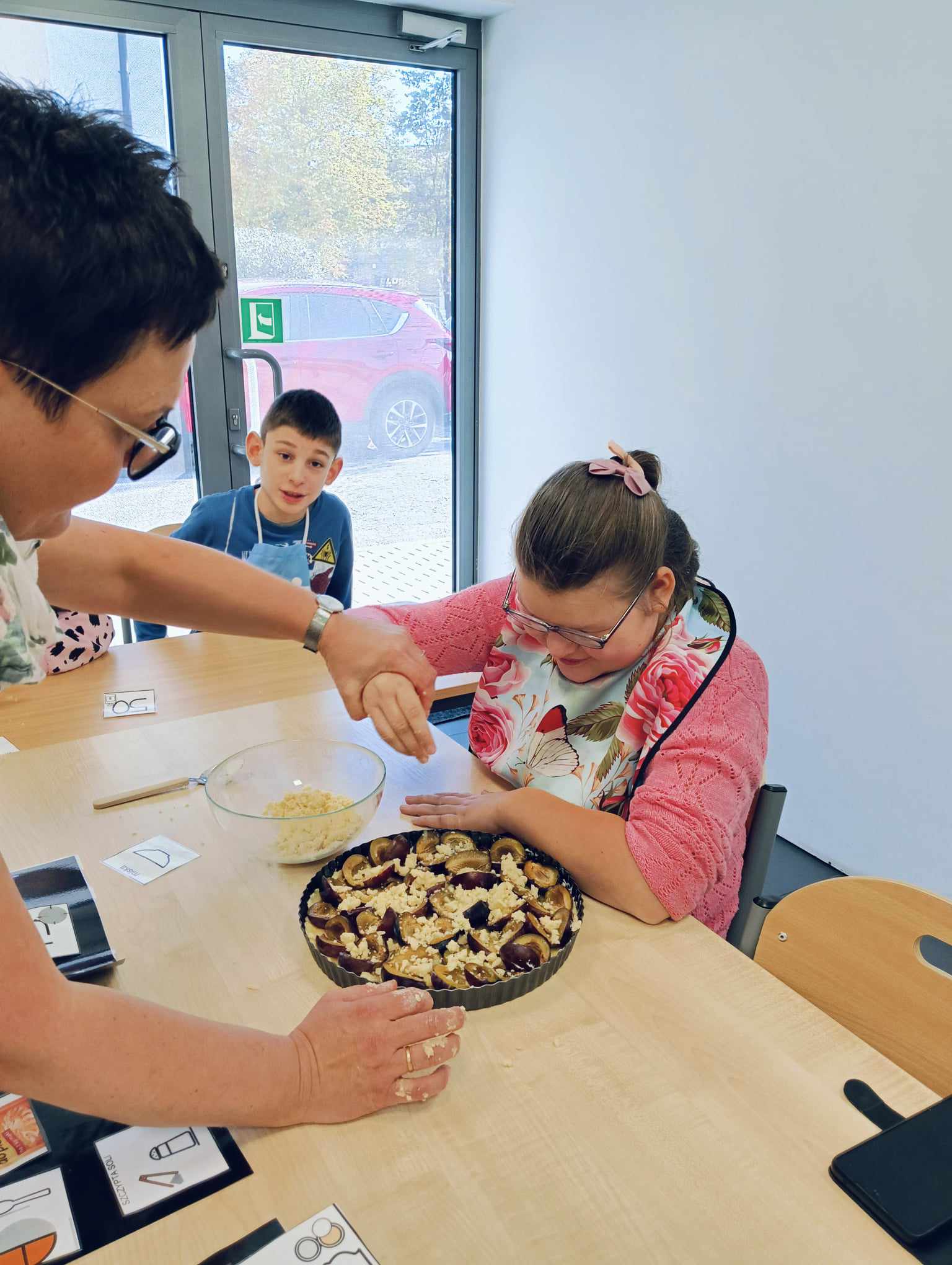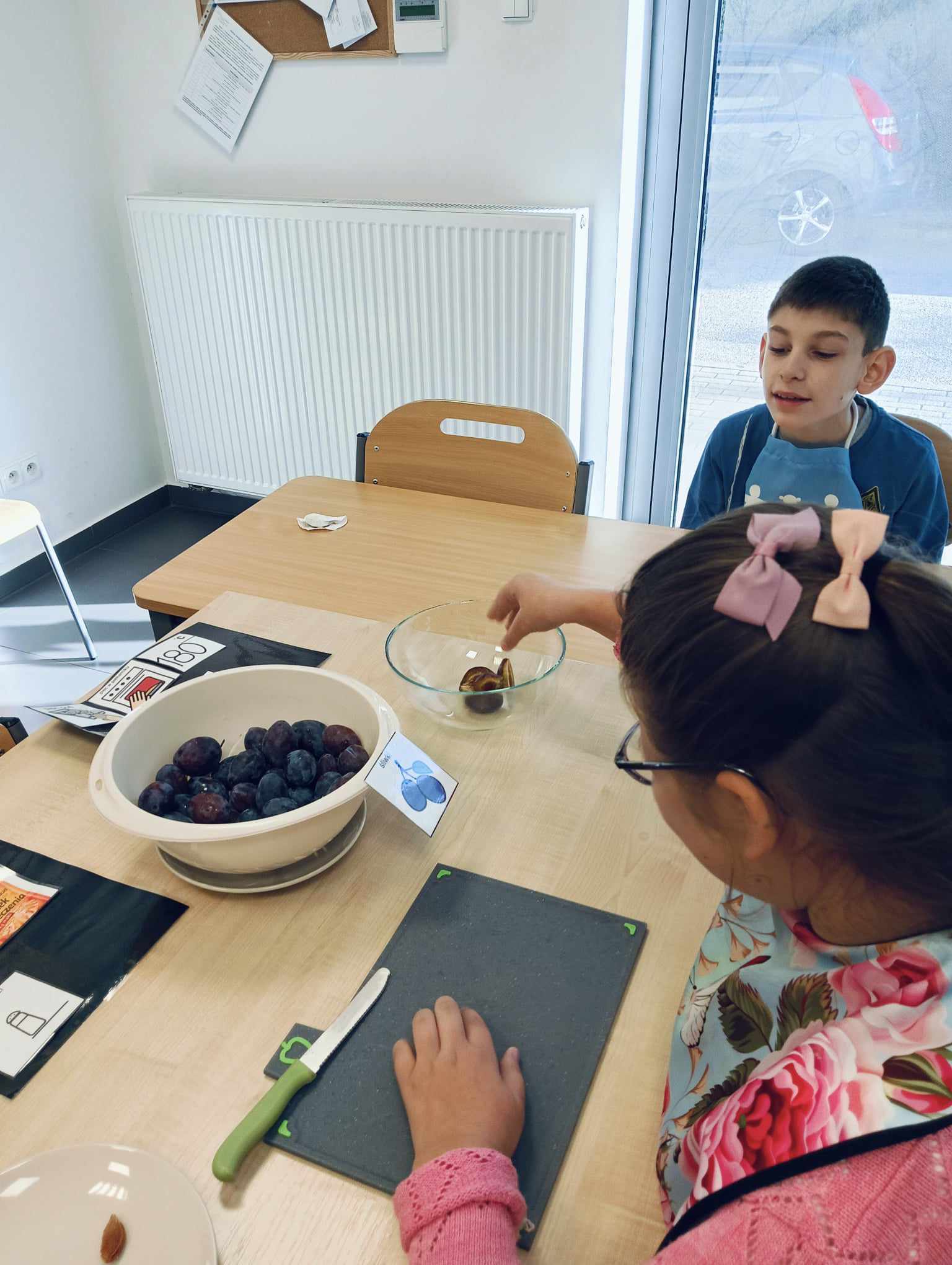 Uczniowie oddziału „I” omawiając temat „Jesienne owoce”, w ramach zajęć rozwijających kreatywność, poznali i zapisali w zeszytach przepis na tartę ze śliwkami. Potem ją wspólnie upiekli, a z owoców, które pozostały przygotowali kompot. W tym dniu po obiedzie mieli, przygotowany przez siebie, pyszny deser.