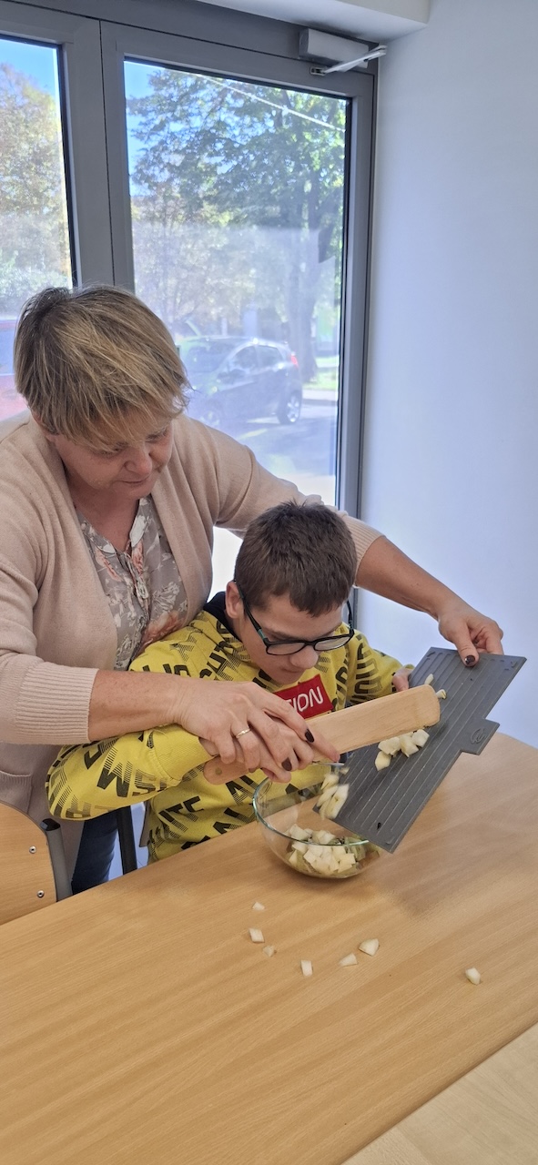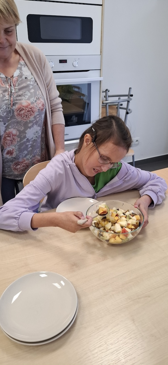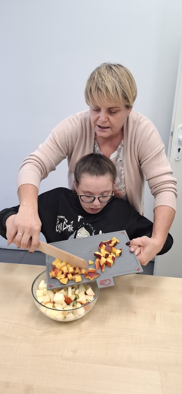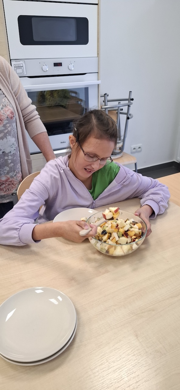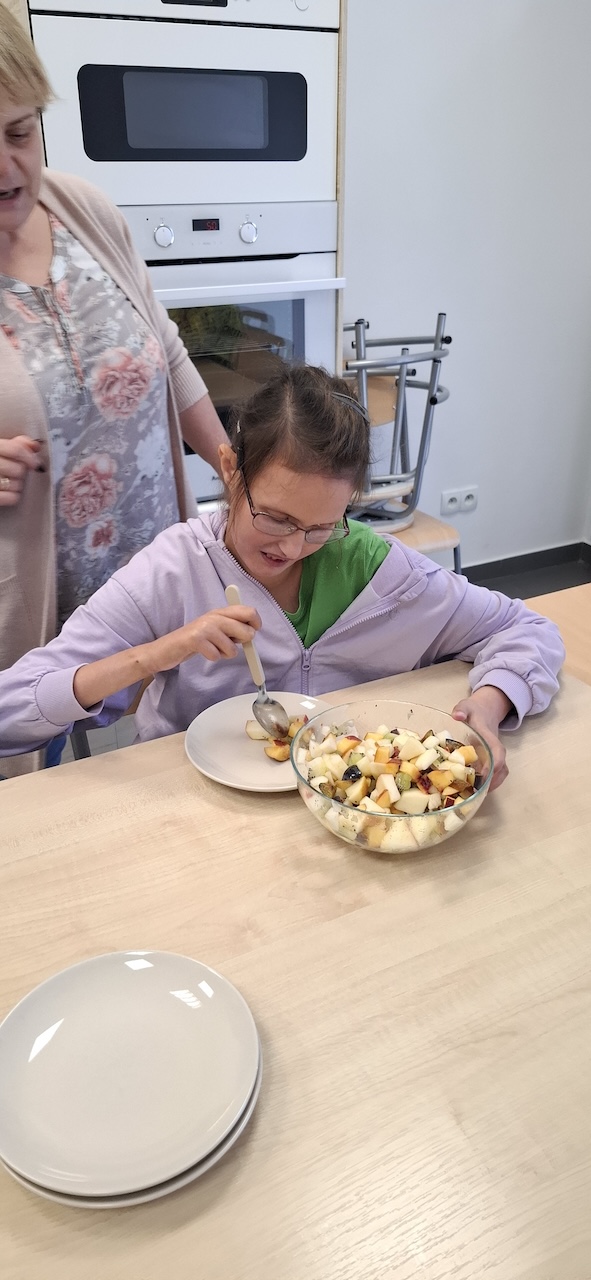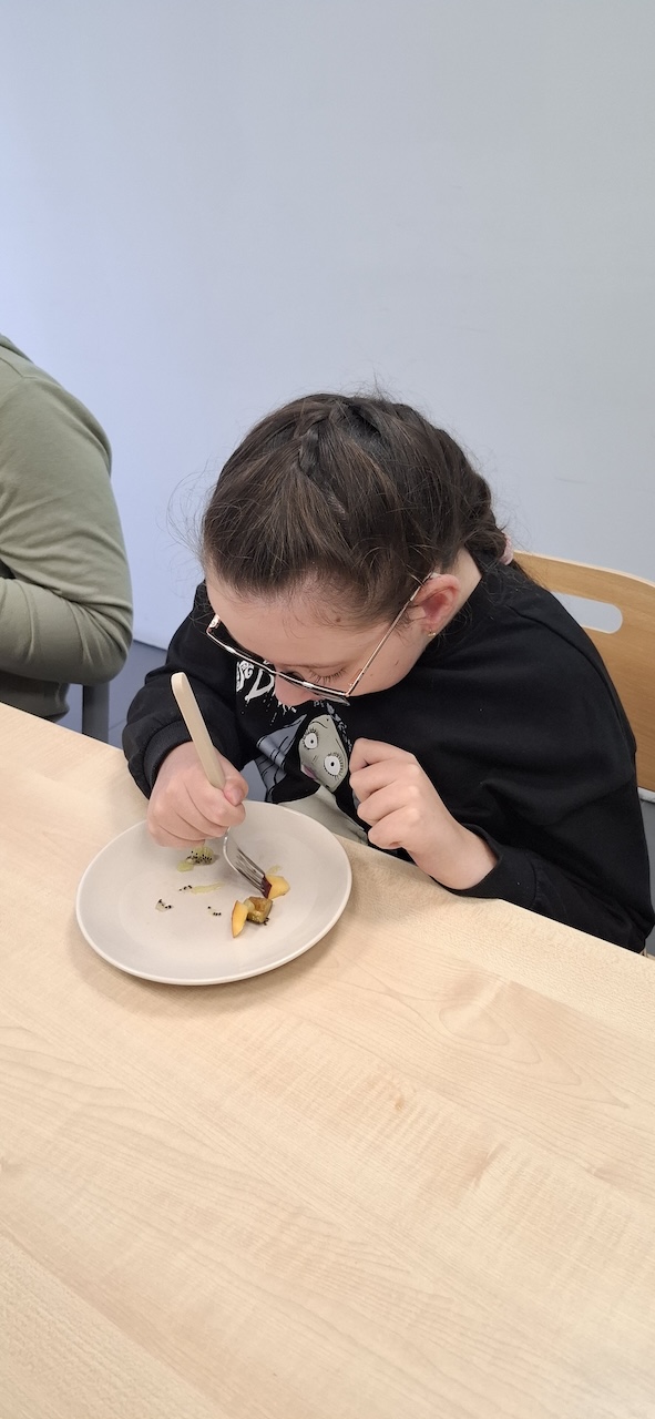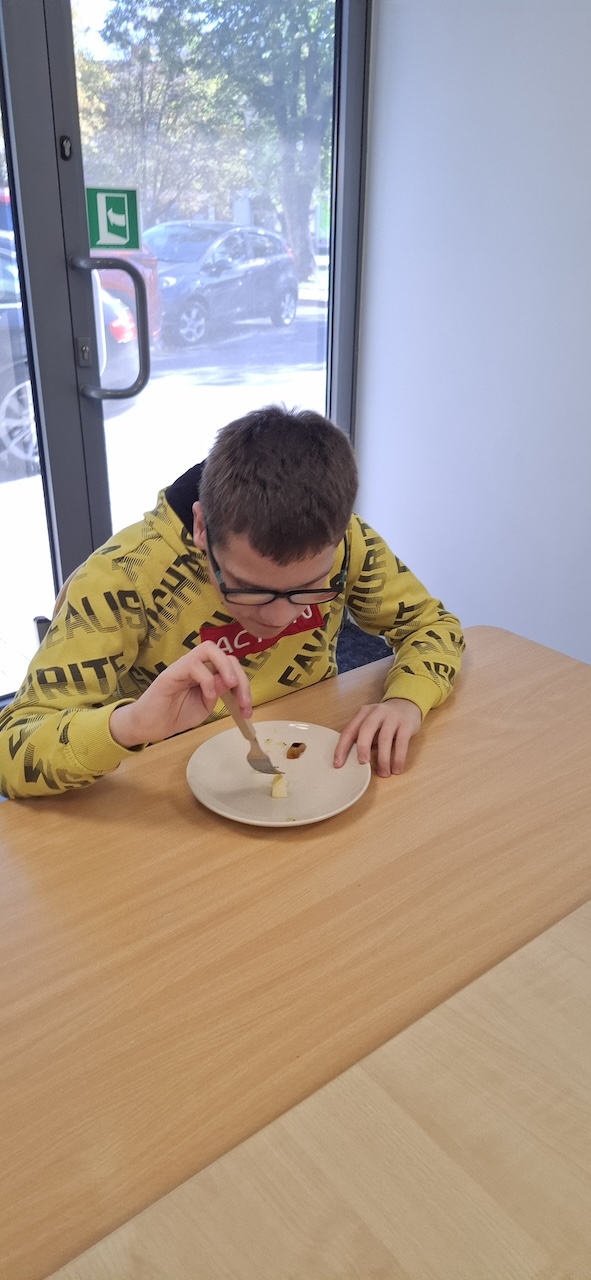 W tygodniu omawiając owoce i warzywa jesienne w naszej szkole uczniowie oddziału „II” przygotowali sałatkę owocową. Na początku Pani omówiła sposób wykonania sałatki , zwróciła uwagę na higienę pracy i przystąpiliśmy do działania. Owoce zostały umyte i obrane, następnie uczniowie kroili je w kostkę i przesypywali do dużej miski. Własnoręcznie zrobiona sałatka bardzo wszystkim smakowała , zajęcia dostarczyły wrażeń smakowych i dotykowych.