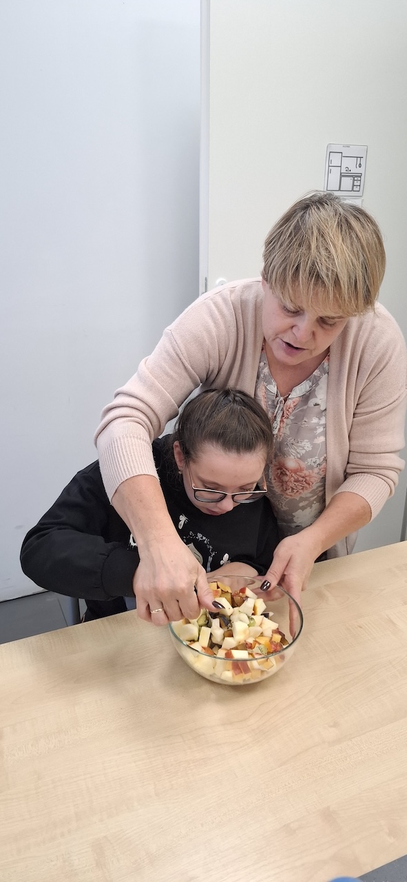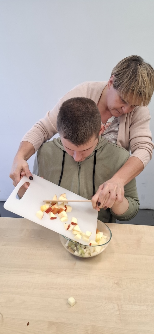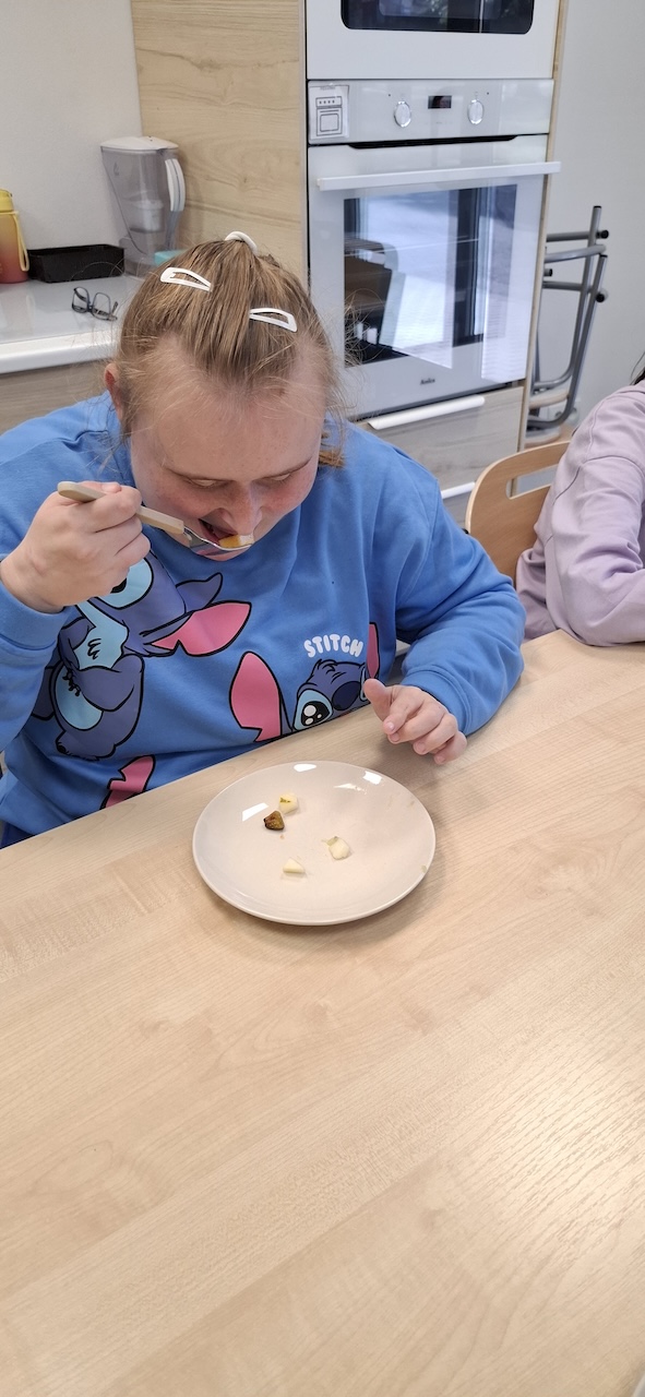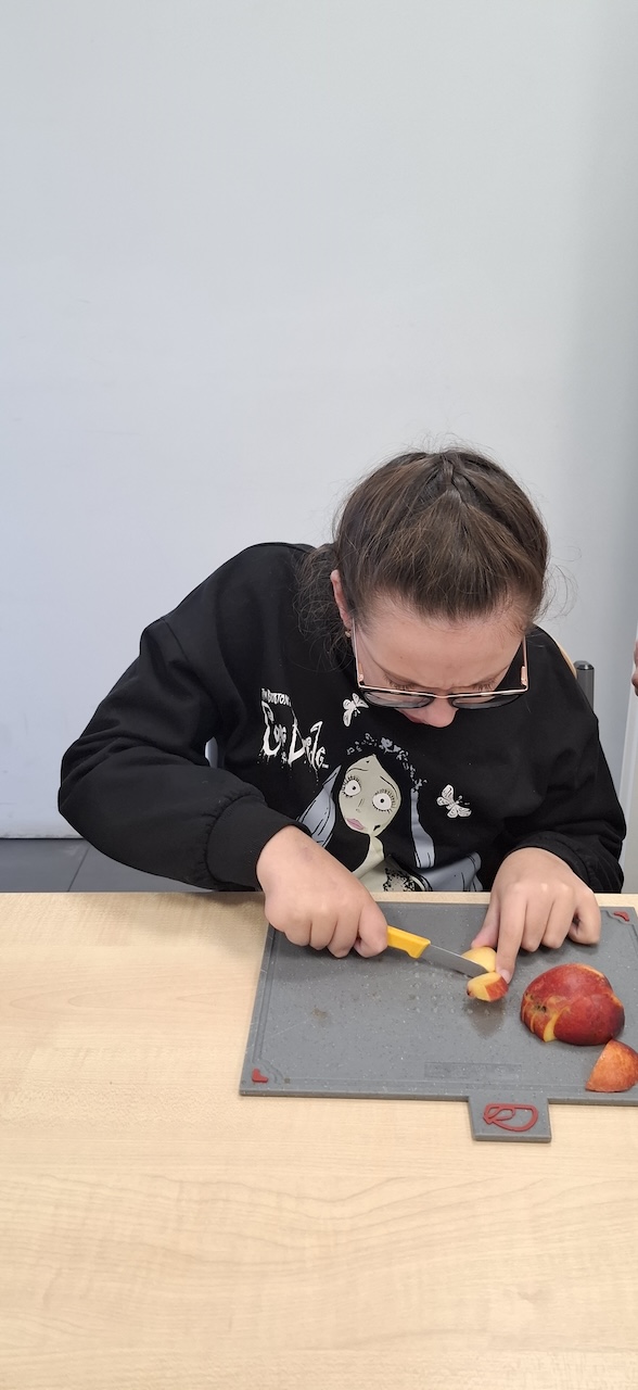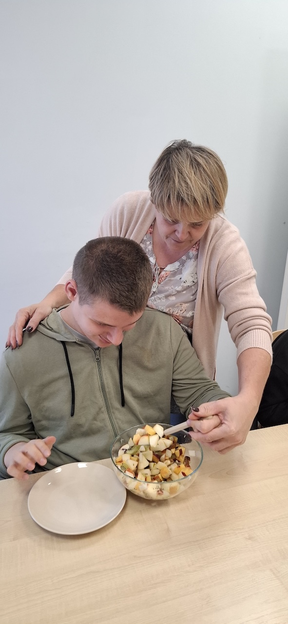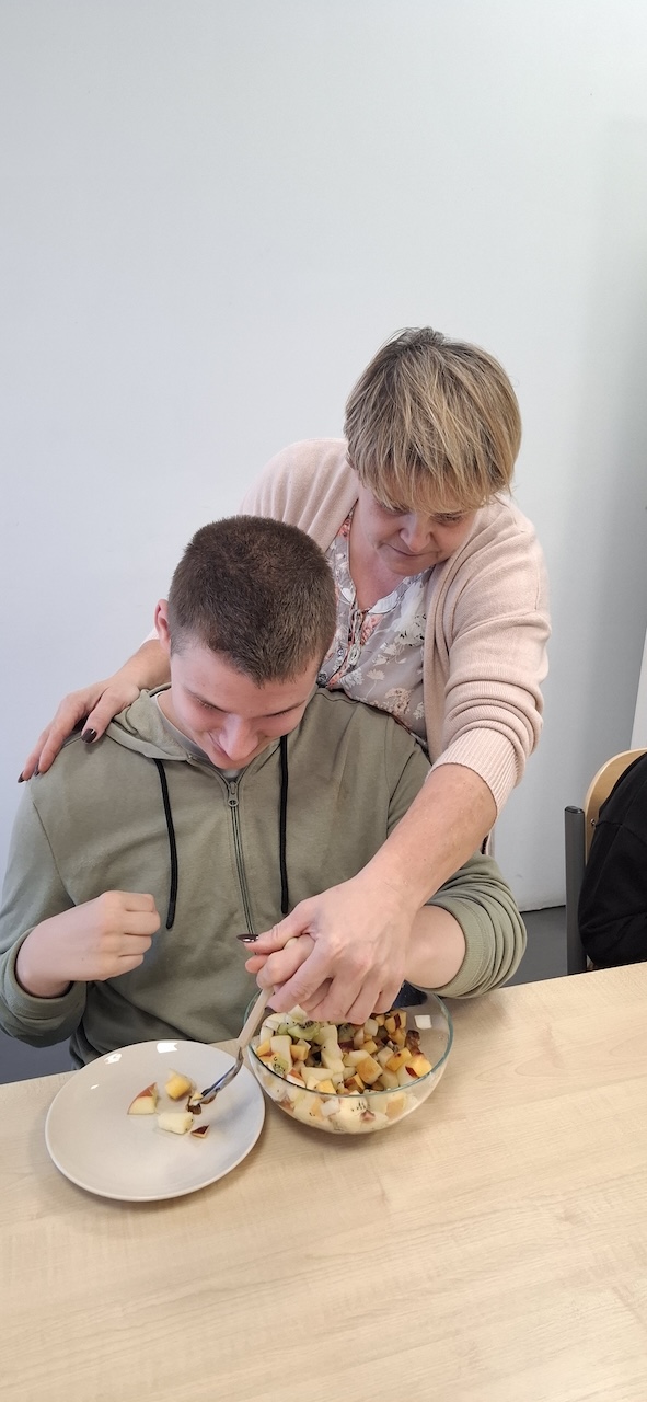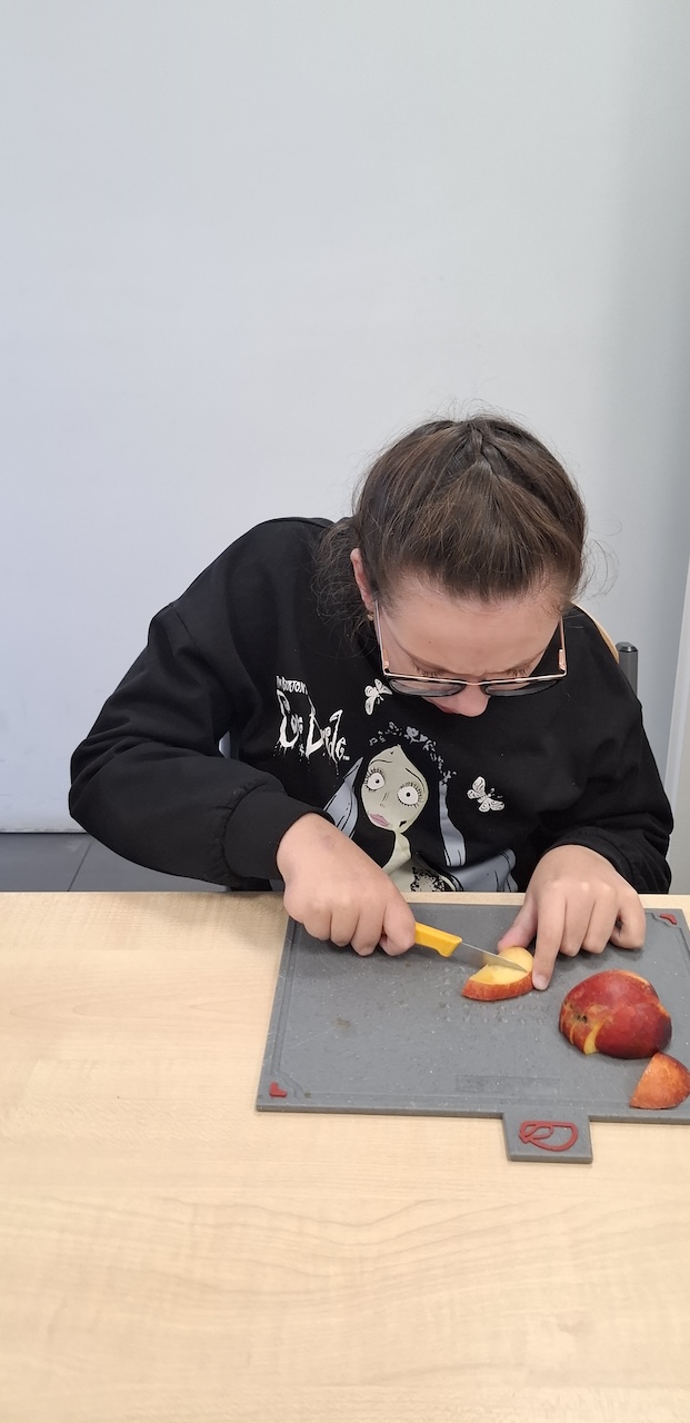 W tygodniu omawiając owoce i warzywa jesienne w naszej szkole uczniowie oddziału „II” przygotowali sałatkę owocową. Na początku Pani omówiła sposób wykonania sałatki , zwróciła uwagę na higienę pracy i przystąpiliśmy do działania. Owoce zostały umyte i obrane, następnie uczniowie kroili je w kostkę i przesypywali do dużej miski. Własnoręcznie zrobiona sałatka bardzo wszystkim smakowała , zajęcia dostarczyły wrażeń smakowych i dotykowych.