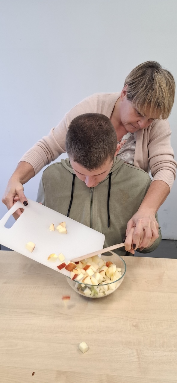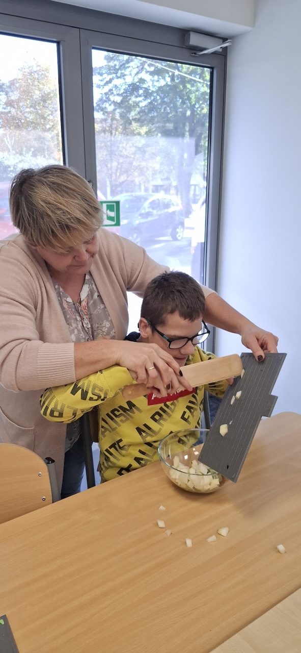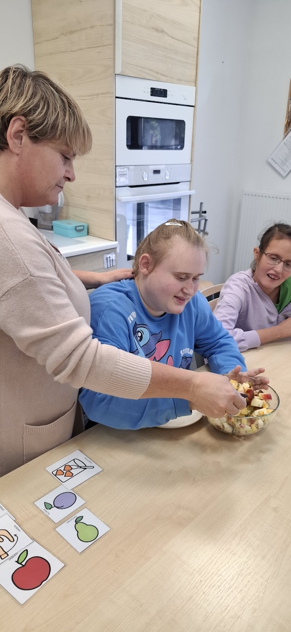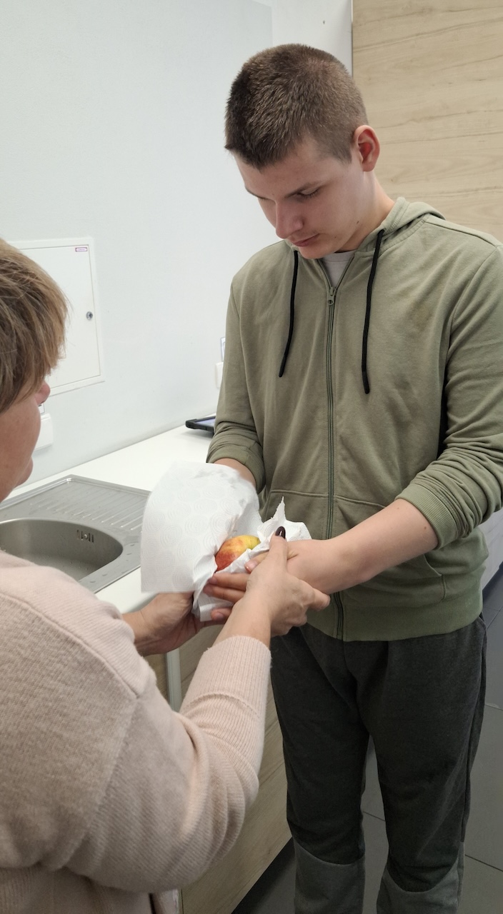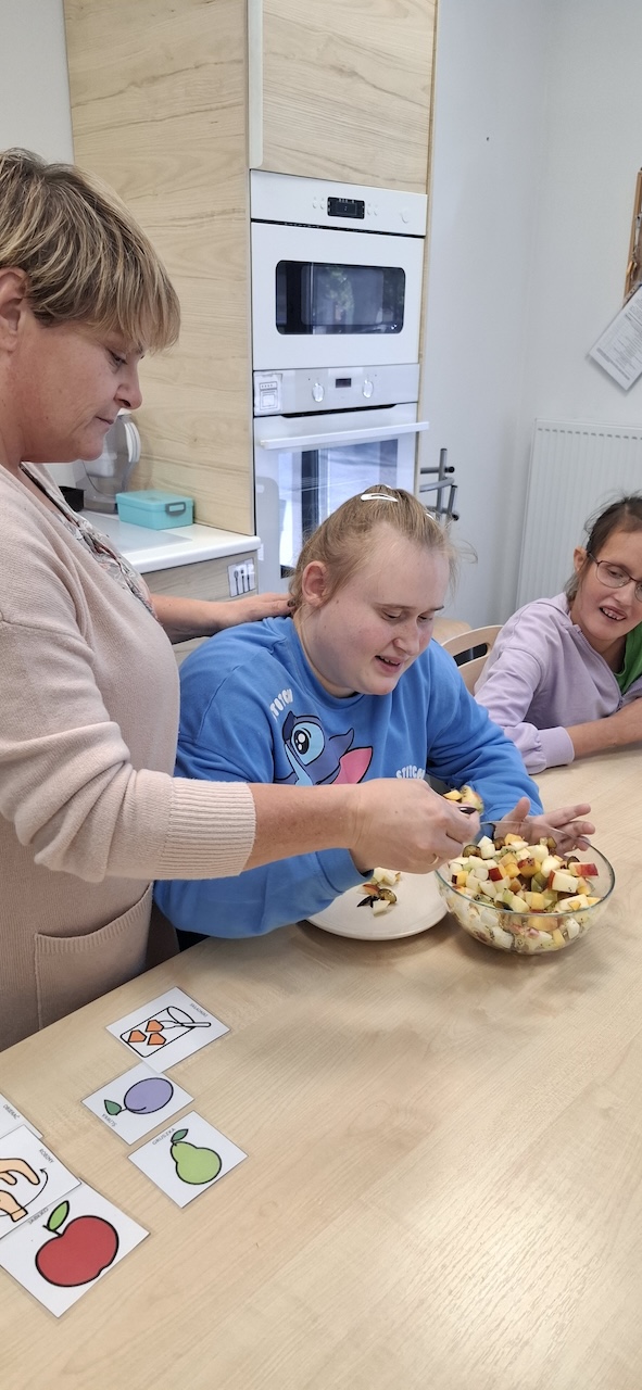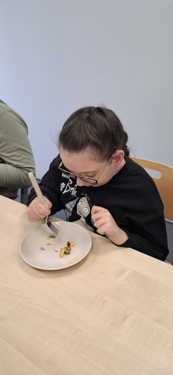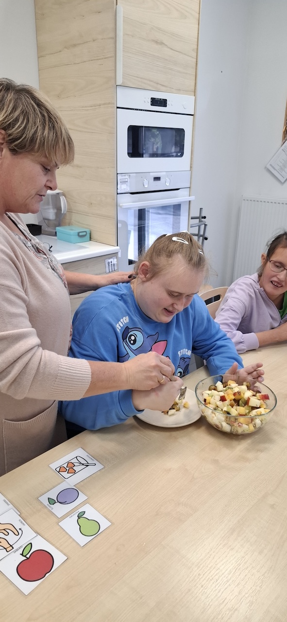 W tygodniu omawiając owoce i warzywa jesienne w naszej szkole uczniowie oddziału „II” przygotowali sałatkę owocową. Na początku Pani omówiła sposób wykonania sałatki , zwróciła uwagę na higienę pracy i przystąpiliśmy do działania. Owoce zostały umyte i obrane, następnie uczniowie kroili je w kostkę i przesypywali do dużej miski. Własnoręcznie zrobiona sałatka bardzo wszystkim smakowała , zajęcia dostarczyły wrażeń smakowych i dotykowych.