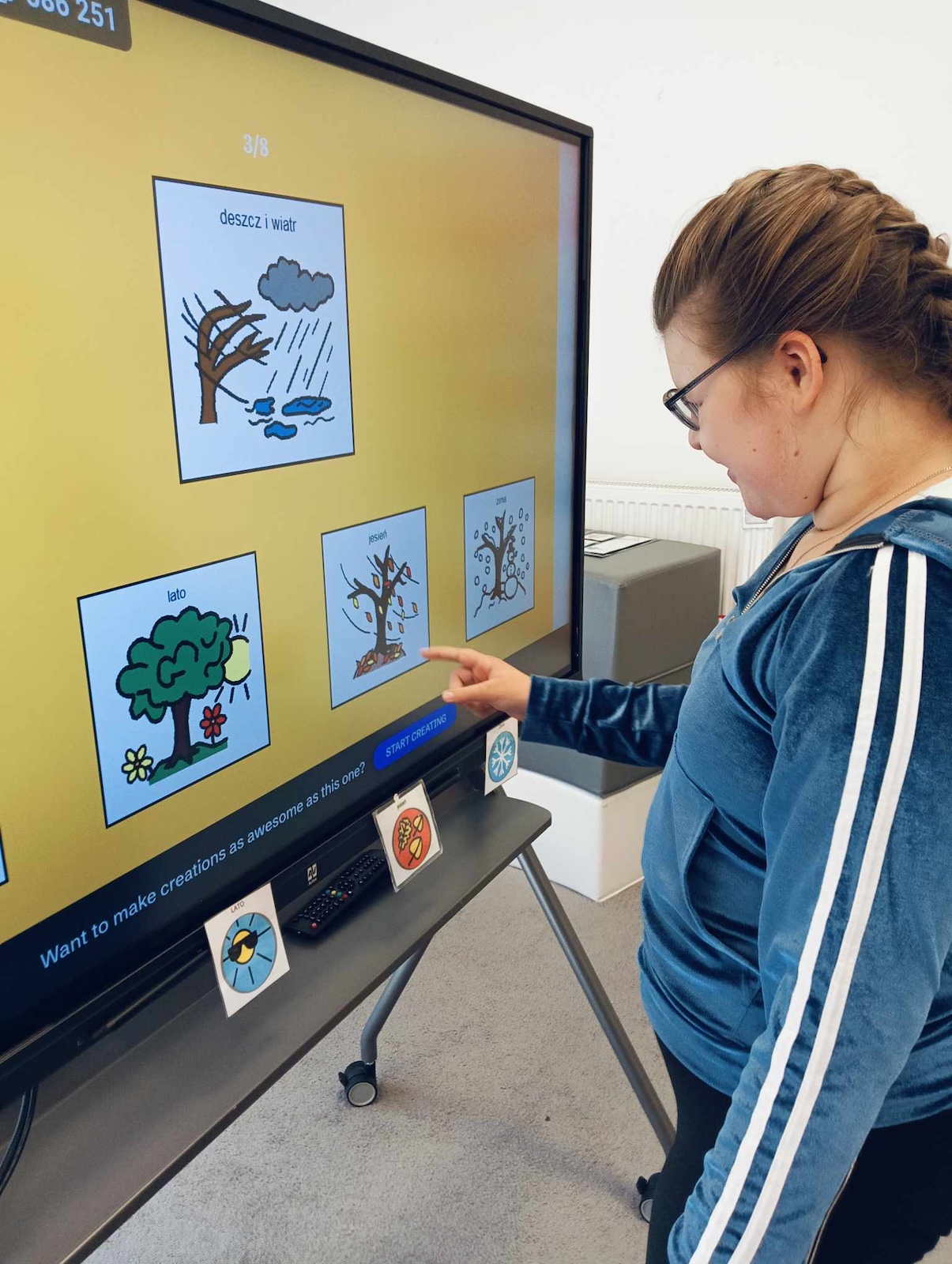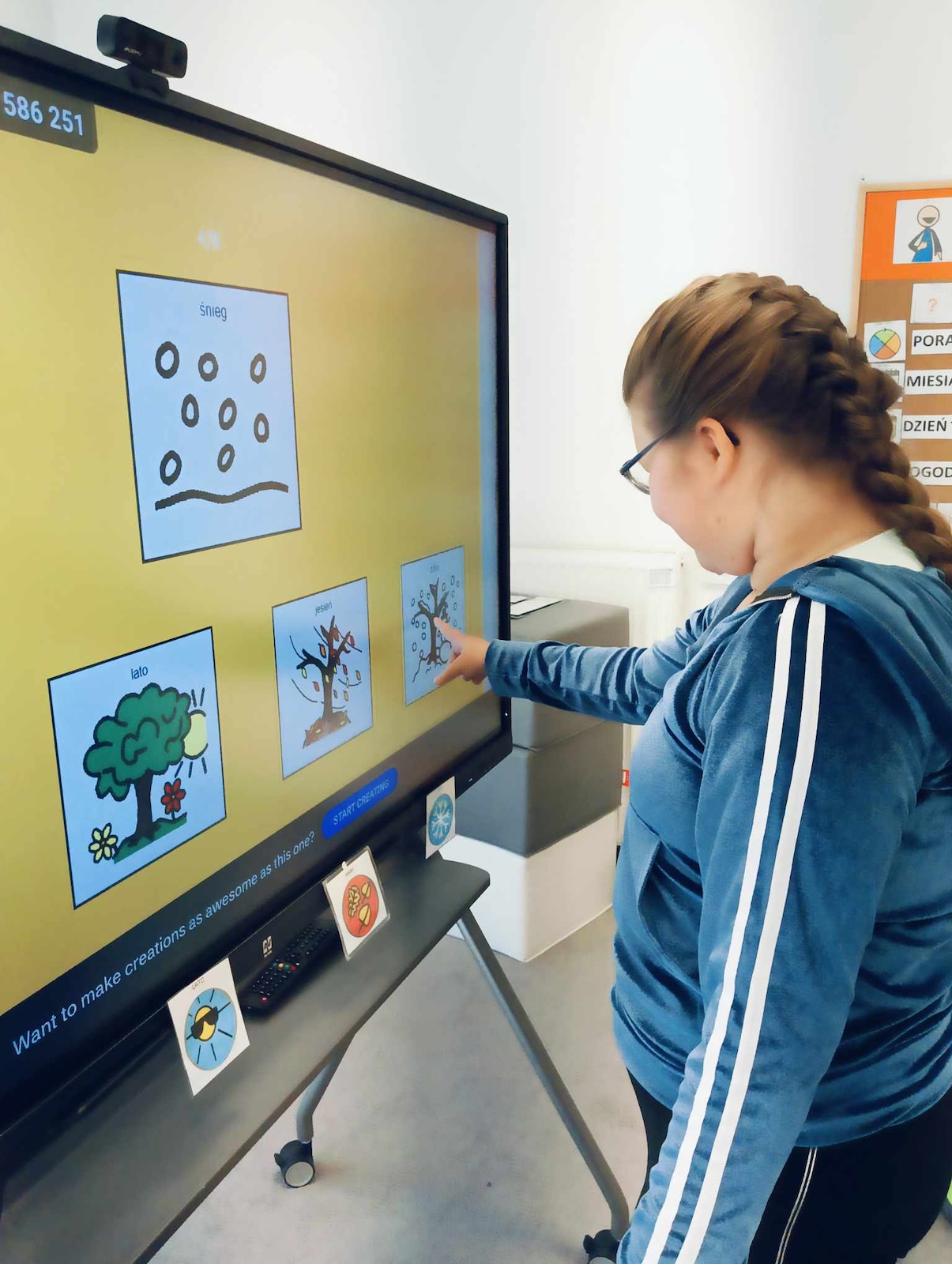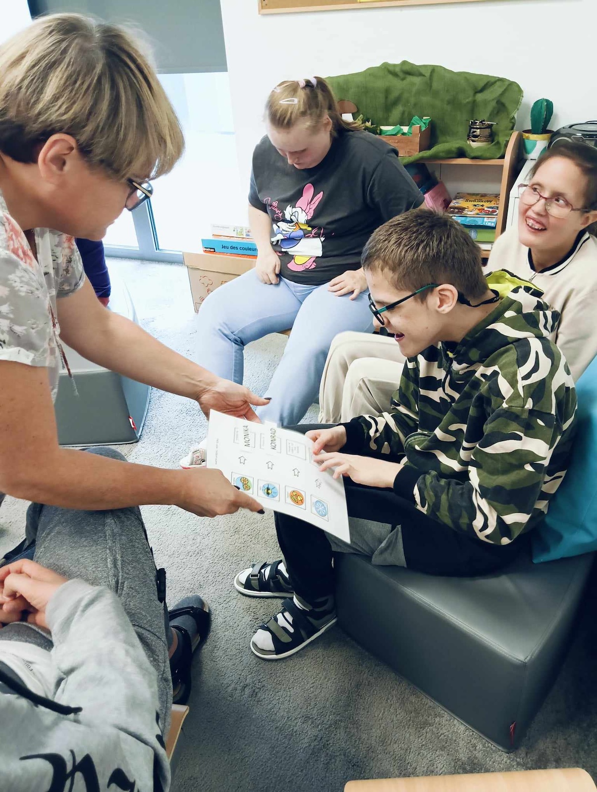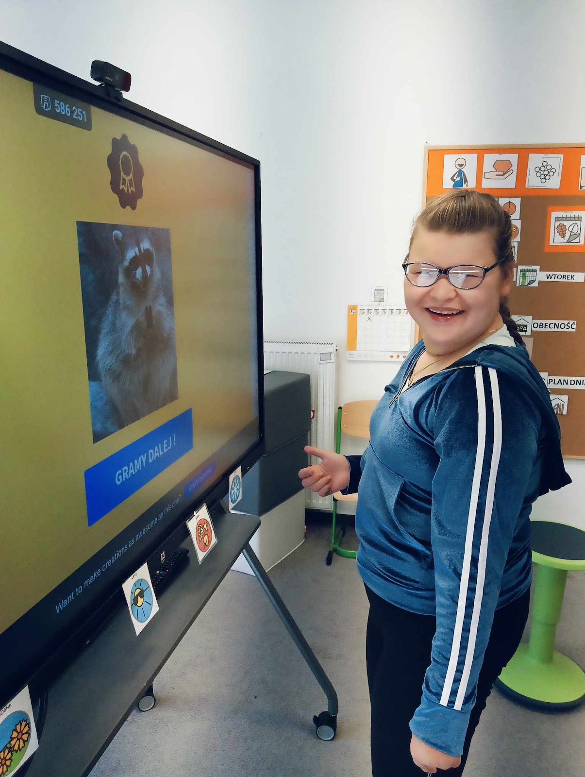 Uczniowie naszej szkoły w roku szkolnym 2024/2025 biorą udział w projekcie „Gram, by rozmawiać. Rozmawiam by grać.” Celem głównym programu jest współpraca sieci przedszkoli, szkół i placówek w zakresie rozwijania umiejętności komunikacji werbalnej, wspomagającej oraz alternatywnej w środowisku koleżeńskim dzieci i młodzieży. Pierwszym etapem programu jest zapoznanie z zasadami i nauka gry „Cztery pory roku” zapisanej symbolami MÓWik. Następnym, utworzenie w oprogramowaniu MÓWik, folderu każdego ucznia, wraz z tablicami, umożliwiającymi włączenia go do aktywnej gry oraz nauka gry online. Podczas grania uczniowie doskonalą umiejętności korzystania z wspierających lub alternatywnych metod komunikacji, a także doskonalą słownictwo i umiejętność formułowania krótkich wypowiedzi i rozwijają umiejętności społeczne.