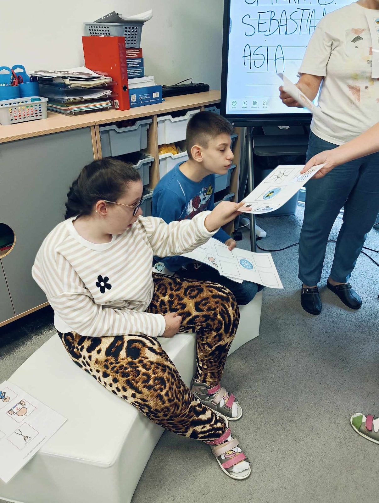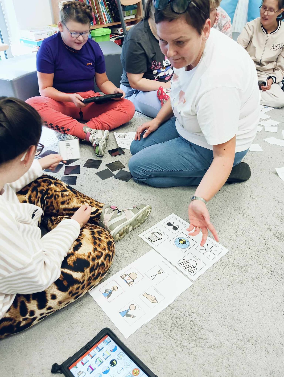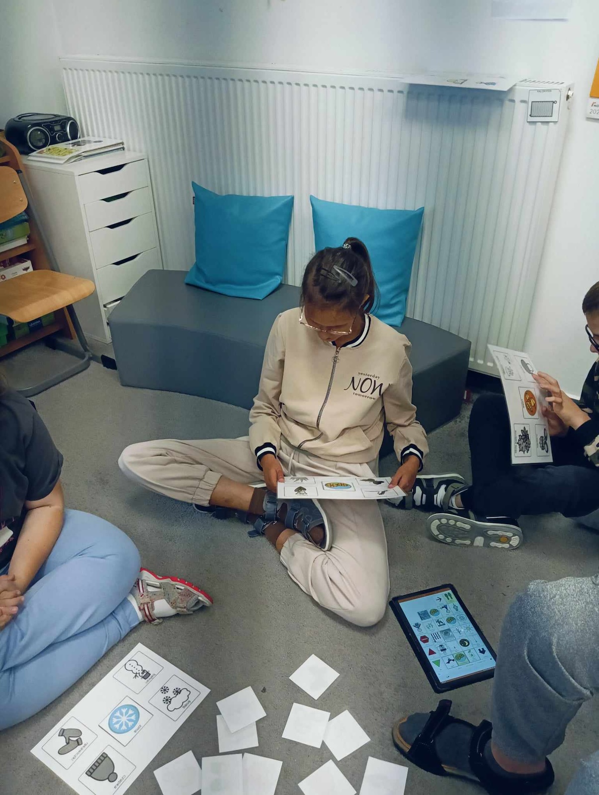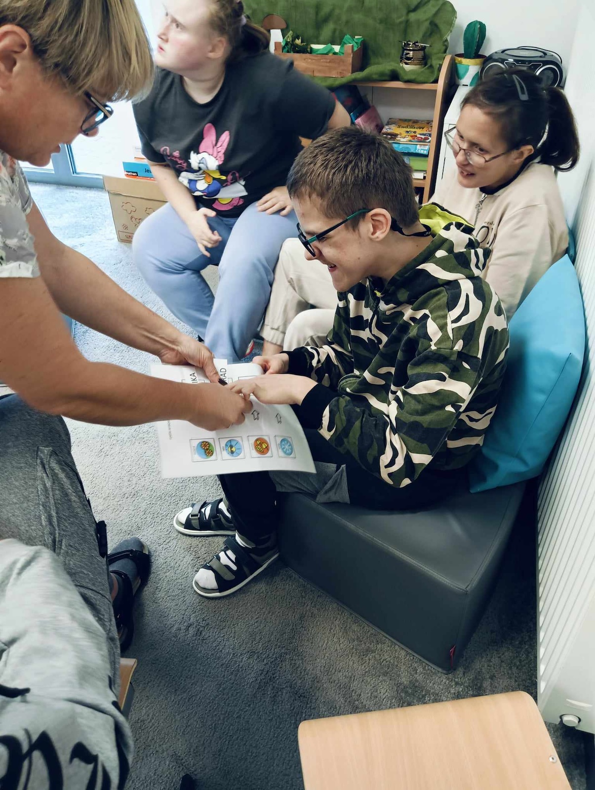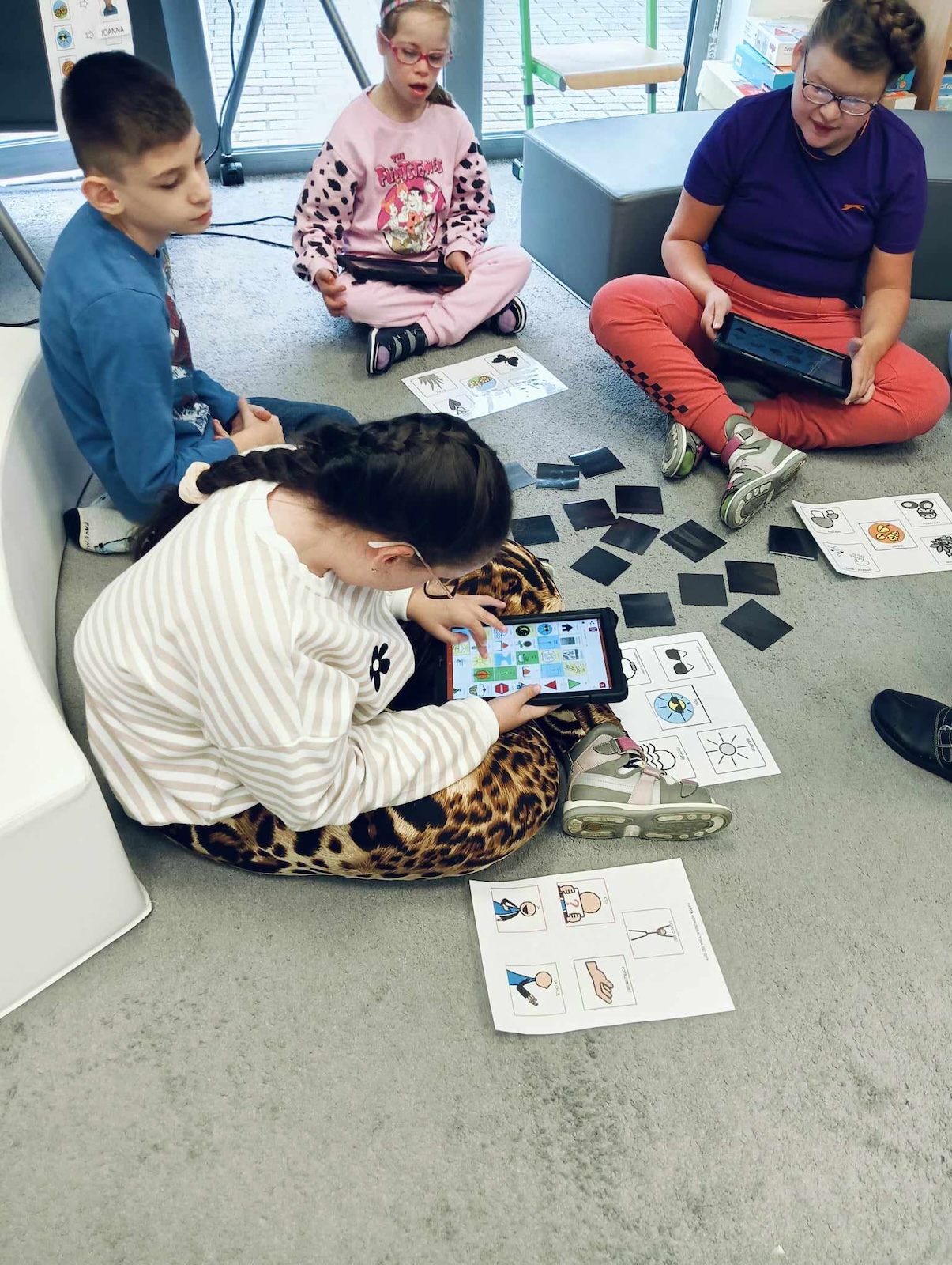 Uczniowie naszej szkoły w roku szkolnym 2024/2025 biorą udział w projekcie „Gram, by rozmawiać. Rozmawiam by grać.” Celem głównym programu jest współpraca sieci przedszkoli, szkół i placówek w zakresie rozwijania umiejętności komunikacji werbalnej, wspomagającej oraz alternatywnej w środowisku koleżeńskim dzieci i młodzieży. Pierwszym etapem programu jest zapoznanie z zasadami i nauka gry „Cztery pory roku” zapisanej symbolami MÓWik. Następnym, utworzenie w oprogramowaniu MÓWik, folderu każdego ucznia, wraz z tablicami, umożliwiającymi włączenia go do aktywnej gry oraz nauka gry online. Podczas grania uczniowie doskonalą umiejętności korzystania z wspierających lub alternatywnych metod komunikacji, a także doskonalą słownictwo i umiejętność formułowania krótkich wypowiedzi i rozwijają umiejętności społeczne.