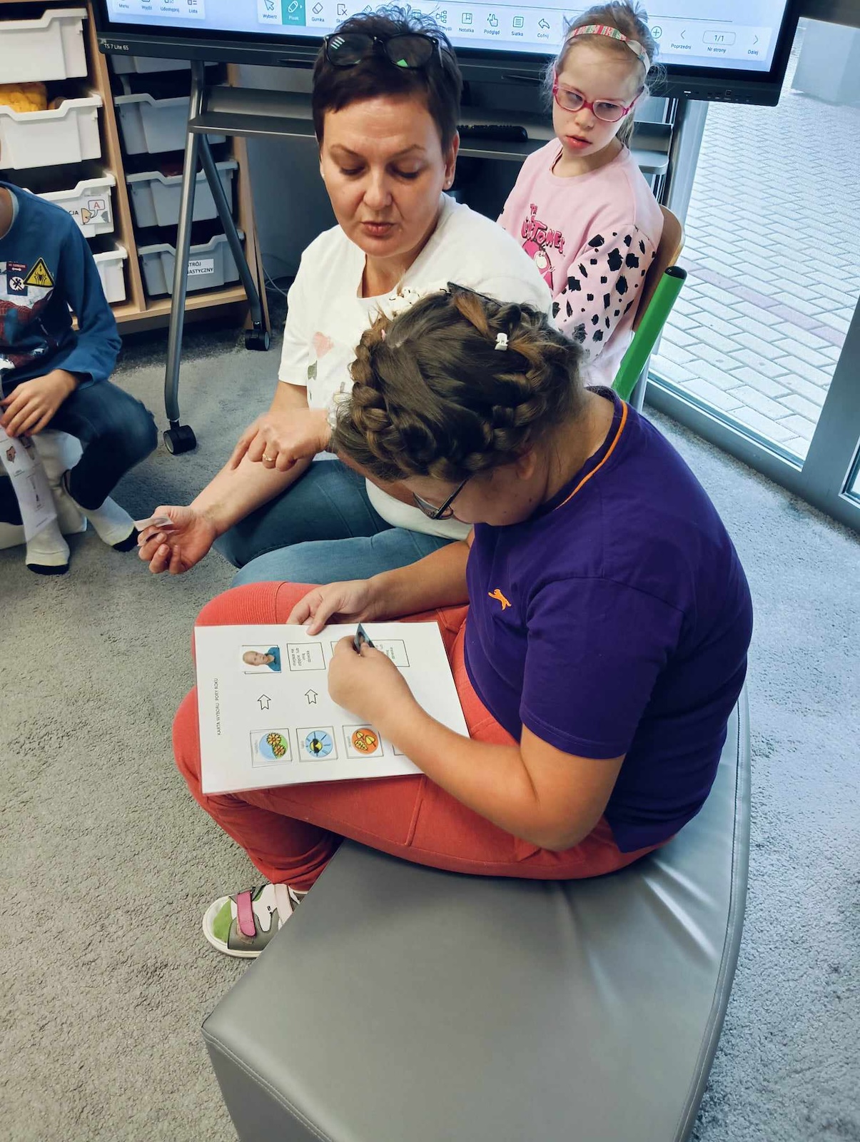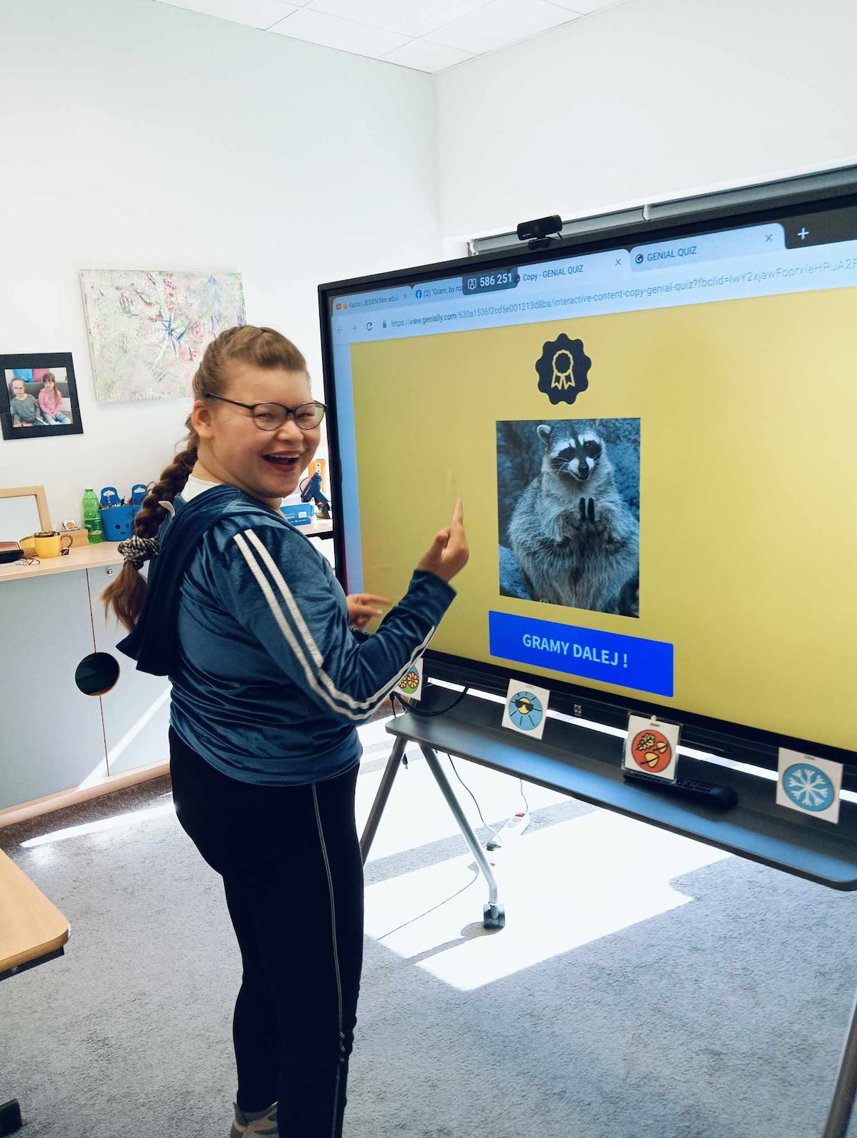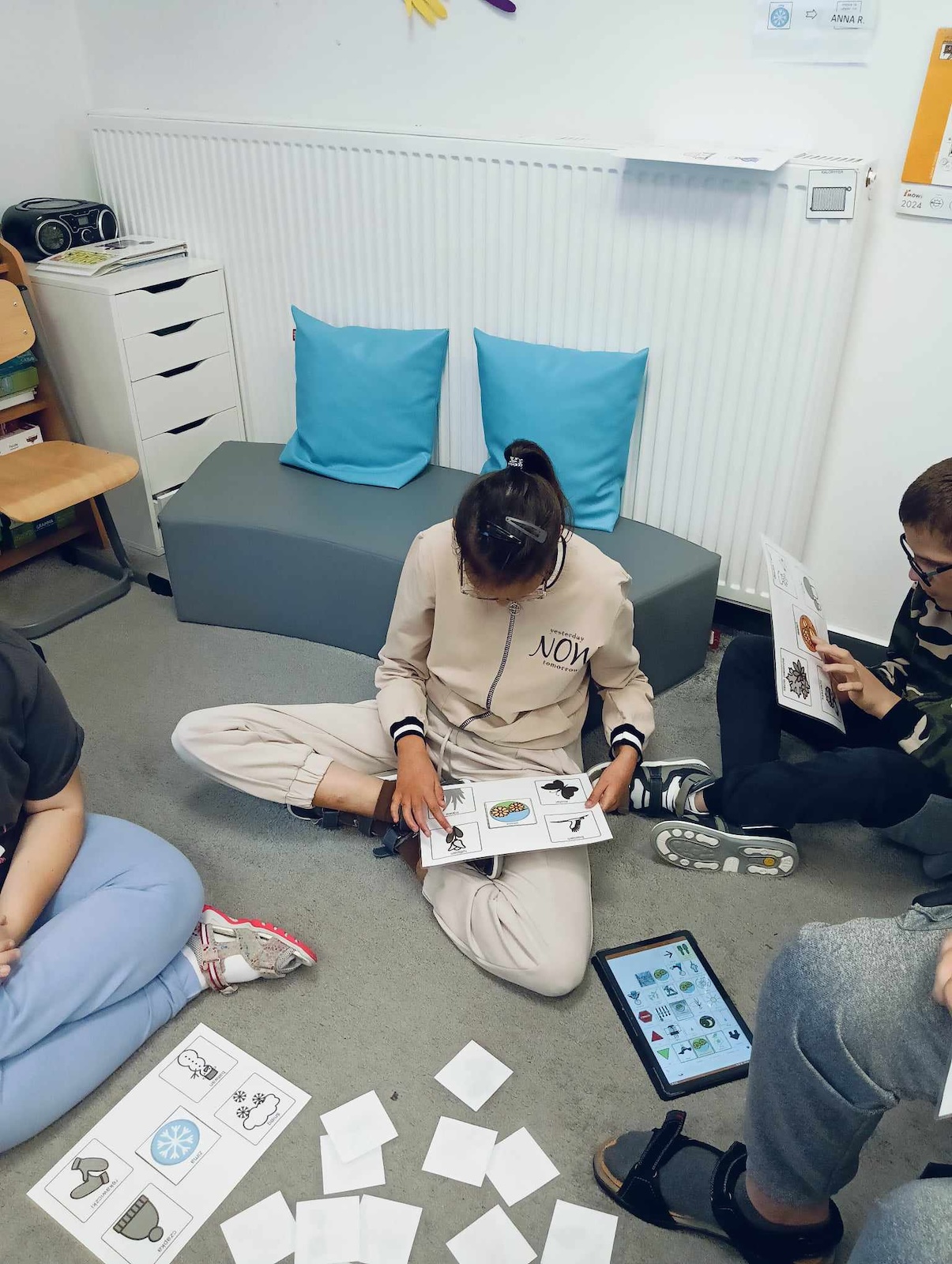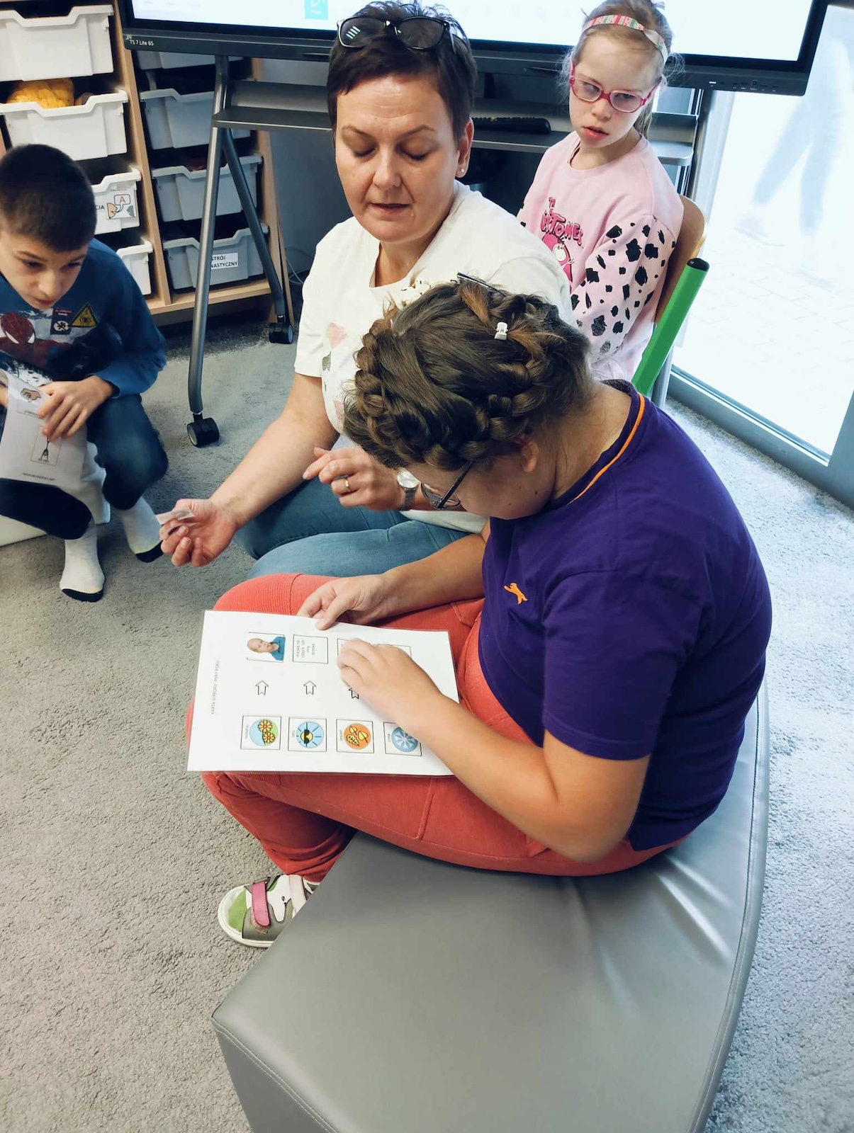 Uczniowie naszej szkoły w roku szkolnym 2024/2025 biorą udział w projekcie „Gram, by rozmawiać. Rozmawiam by grać.” Celem głównym programu jest współpraca sieci przedszkoli, szkół i placówek w zakresie rozwijania umiejętności komunikacji werbalnej, wspomagającej oraz alternatywnej w środowisku koleżeńskim dzieci i młodzieży. Pierwszym etapem programu jest zapoznanie z zasadami i nauka gry „Cztery pory roku” zapisanej symbolami MÓWik. Następnym, utworzenie w oprogramowaniu MÓWik, folderu każdego ucznia, wraz z tablicami, umożliwiającymi włączenia go do aktywnej gry oraz nauka gry online. Podczas grania uczniowie doskonalą umiejętności korzystania z wspierających lub alternatywnych metod komunikacji, a także doskonalą słownictwo i umiejętność formułowania krótkich wypowiedzi i rozwijają umiejętności społeczne.