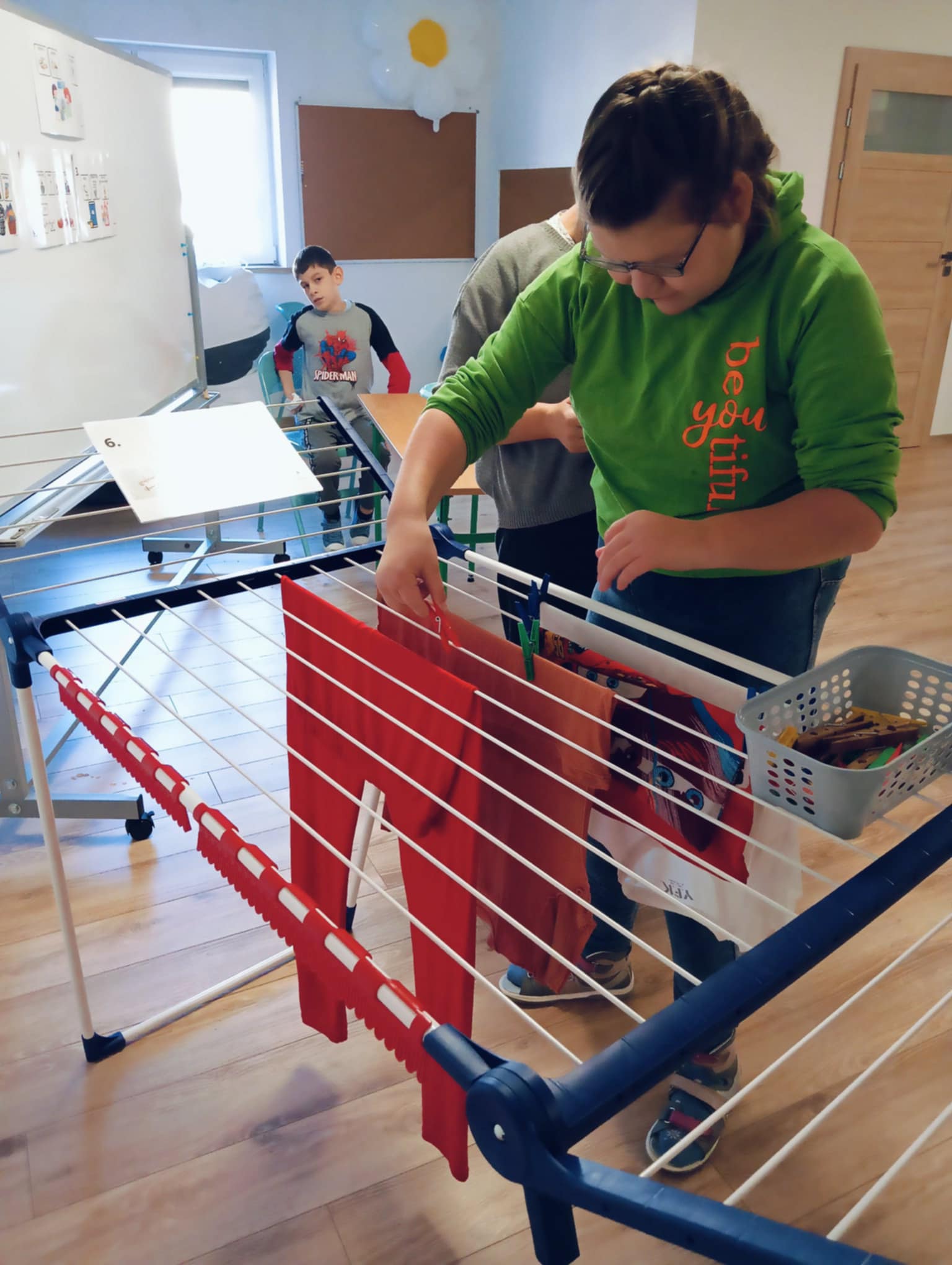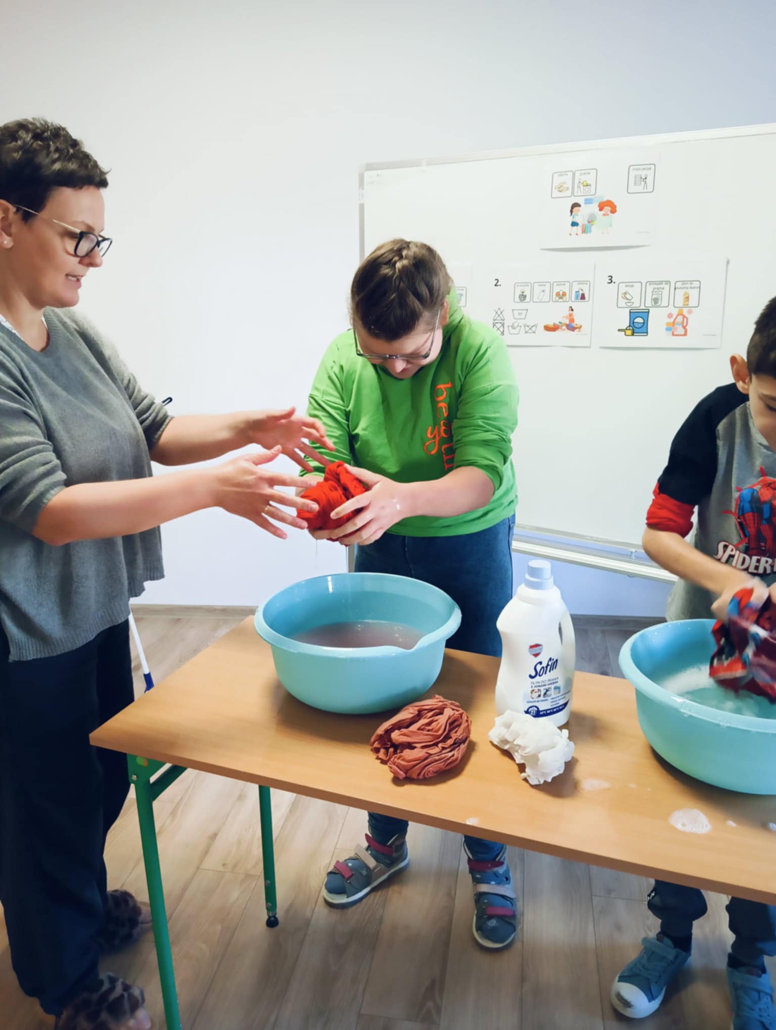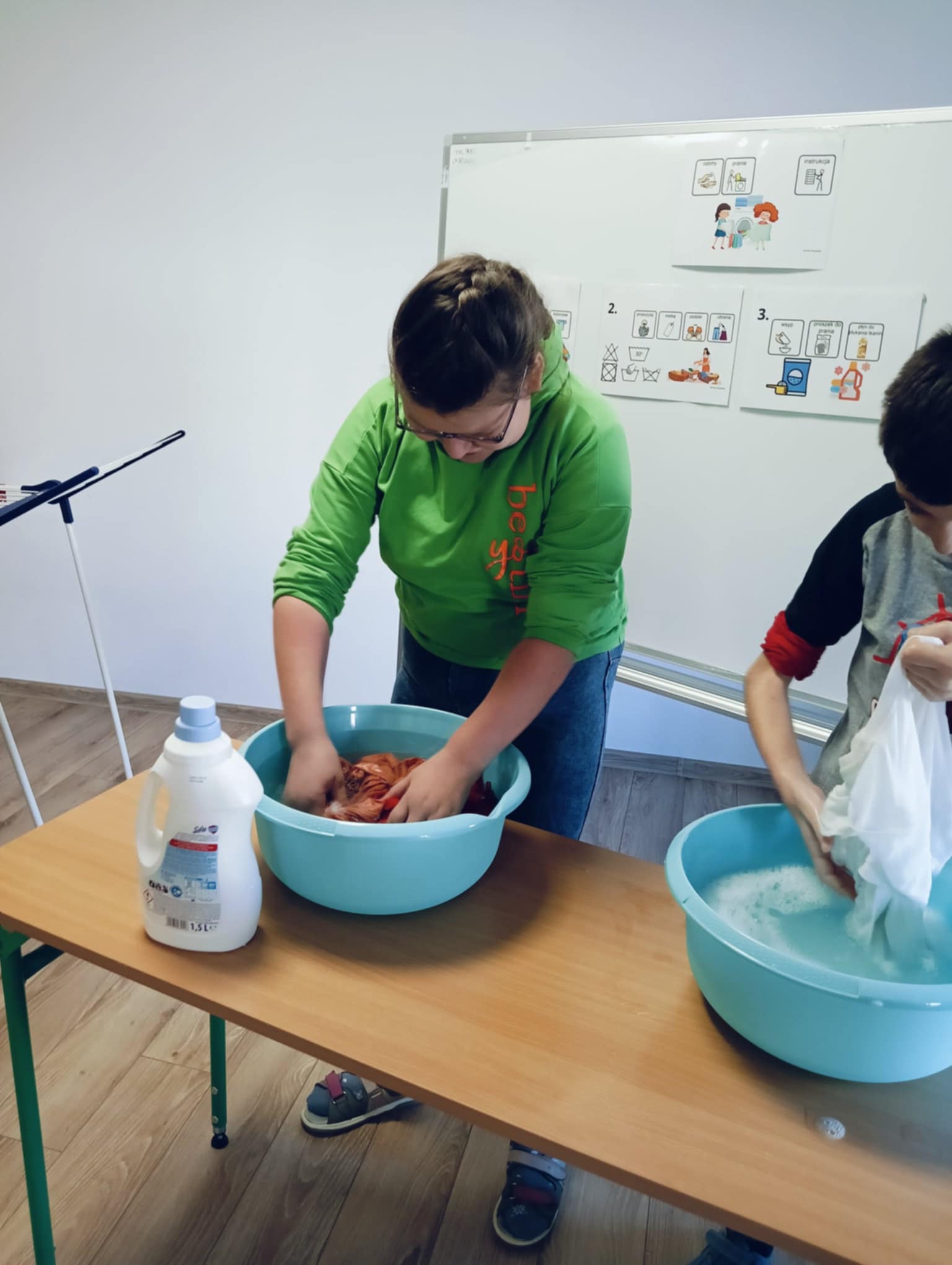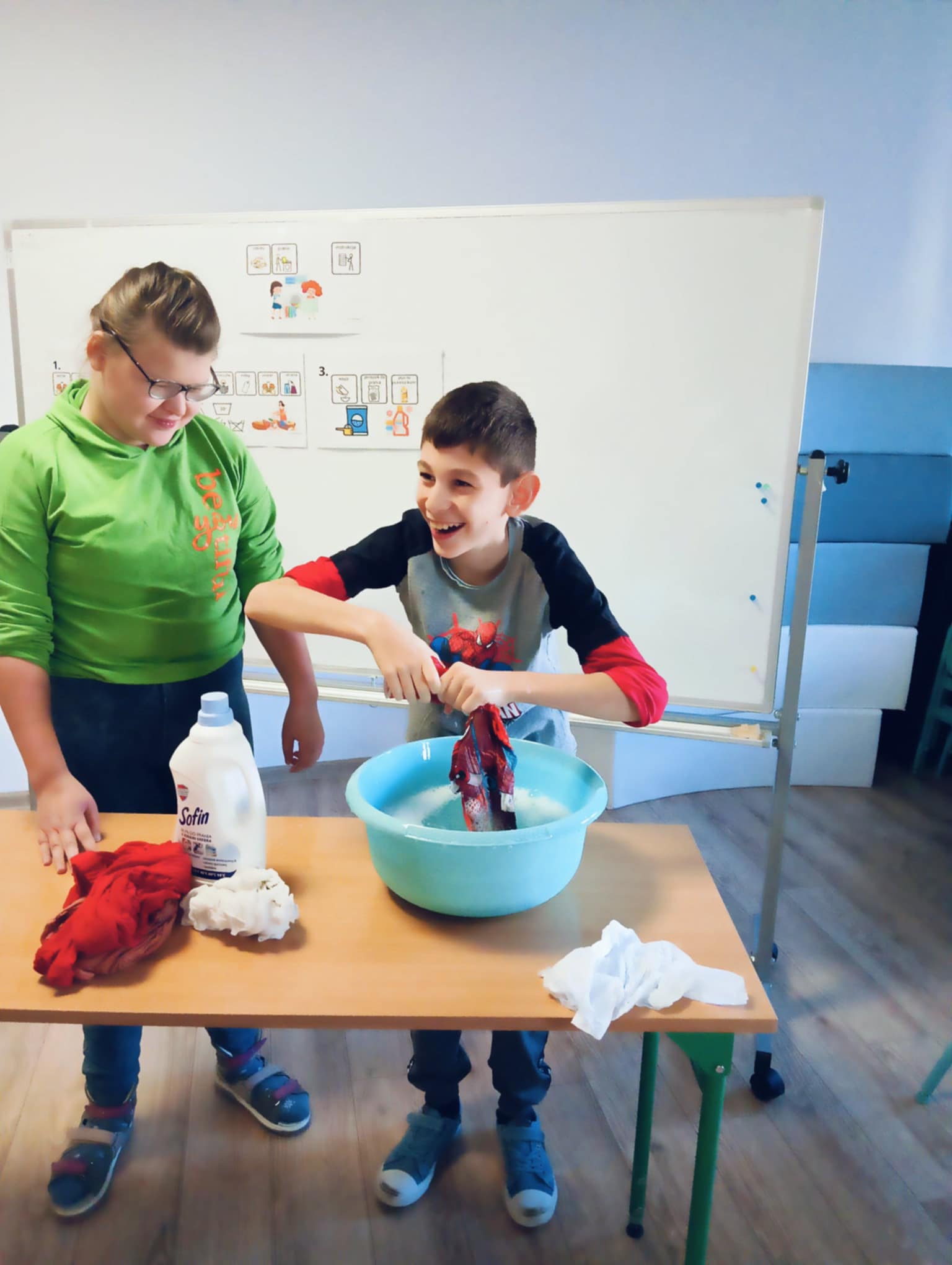 Uczniowie oddziału „I” omawiając temat tygodnia „Higiena osobista” utrwalali zasady jej stosowania. Uczyli się jak prawidłowo uprać ubrania, a następnie jak je wyprasować i poskładać. Niektórzy po raz pierwszy mieli w ręce żelazko i było to dla nich bardzo ekscytujące.