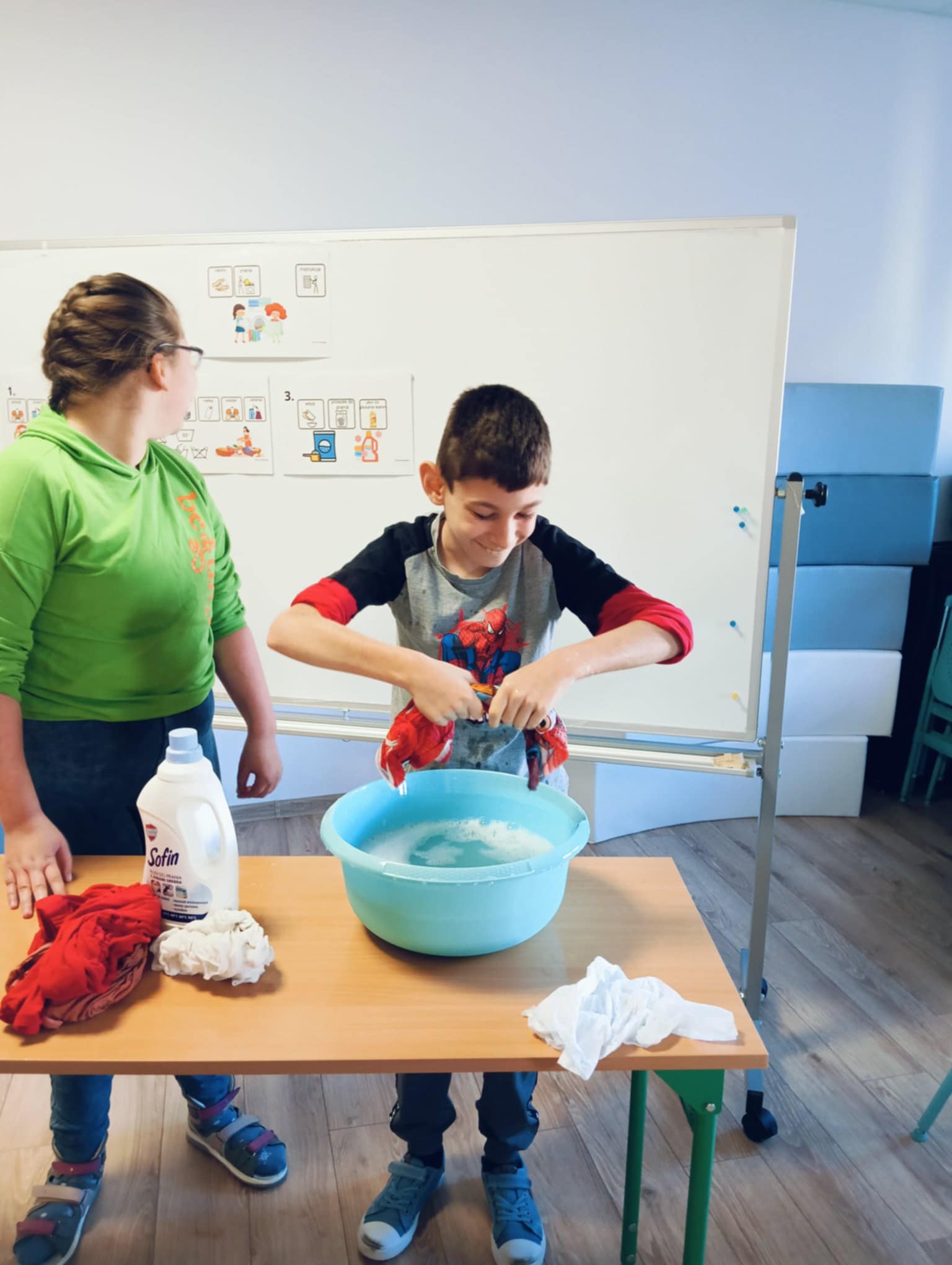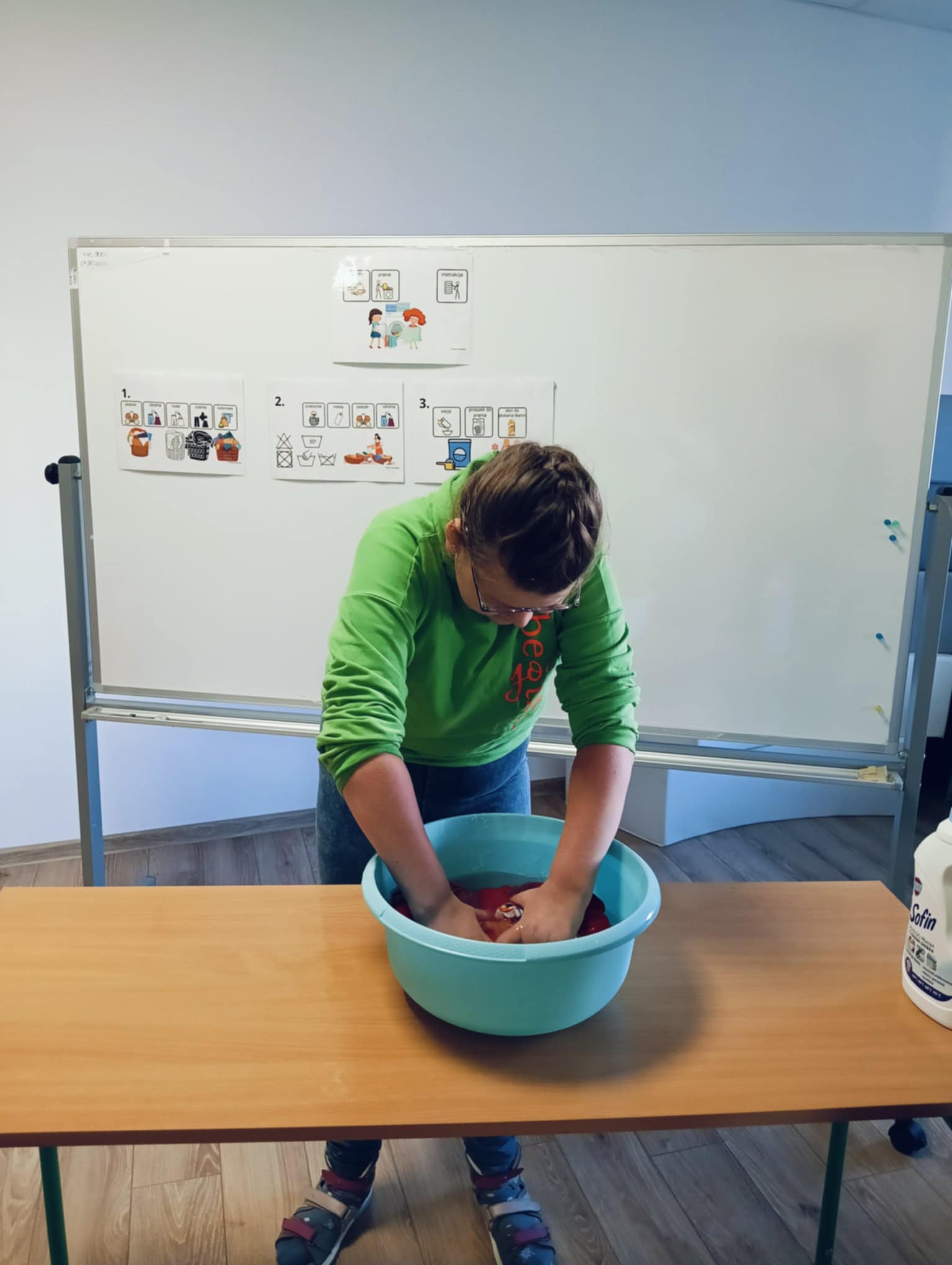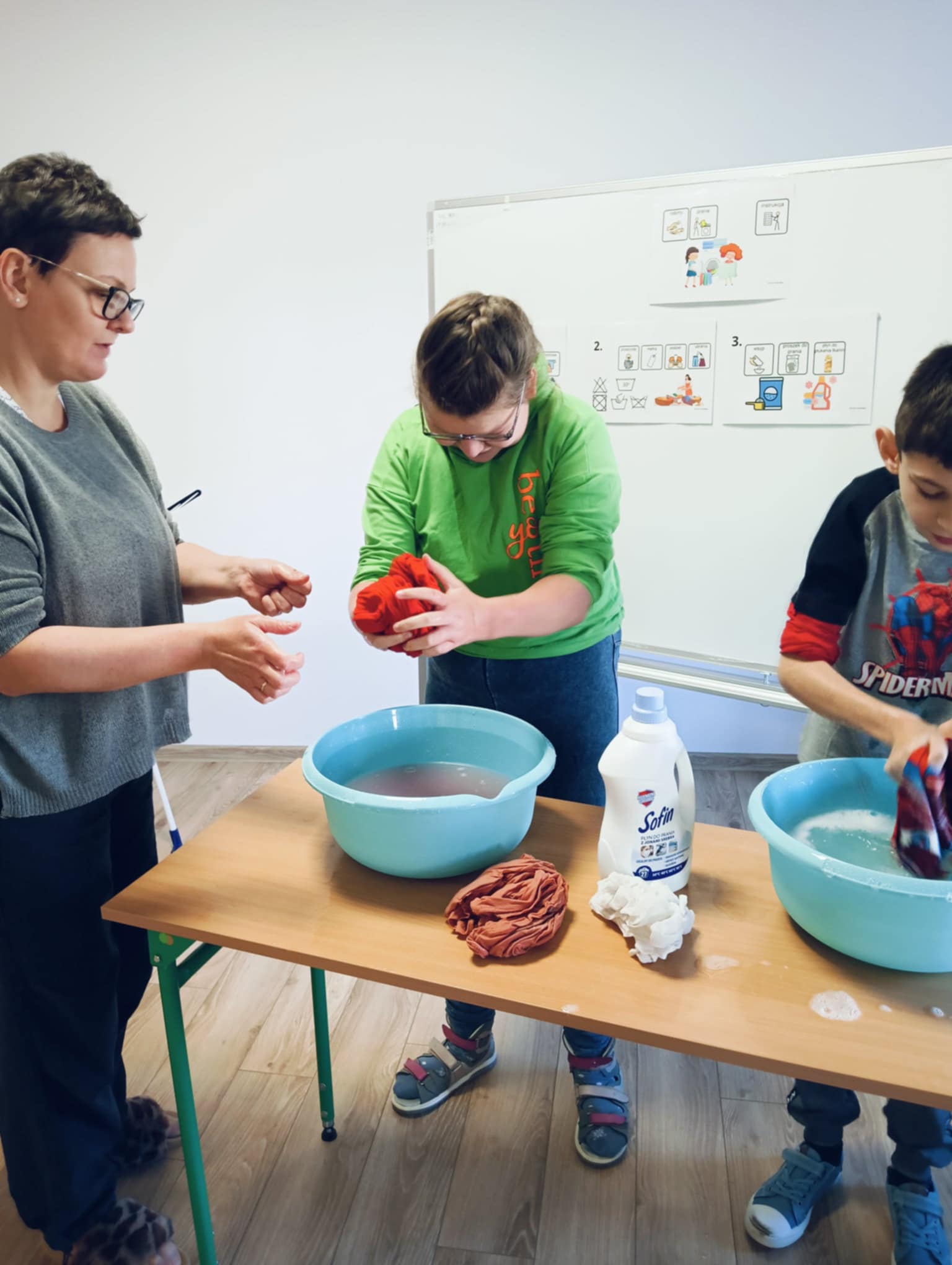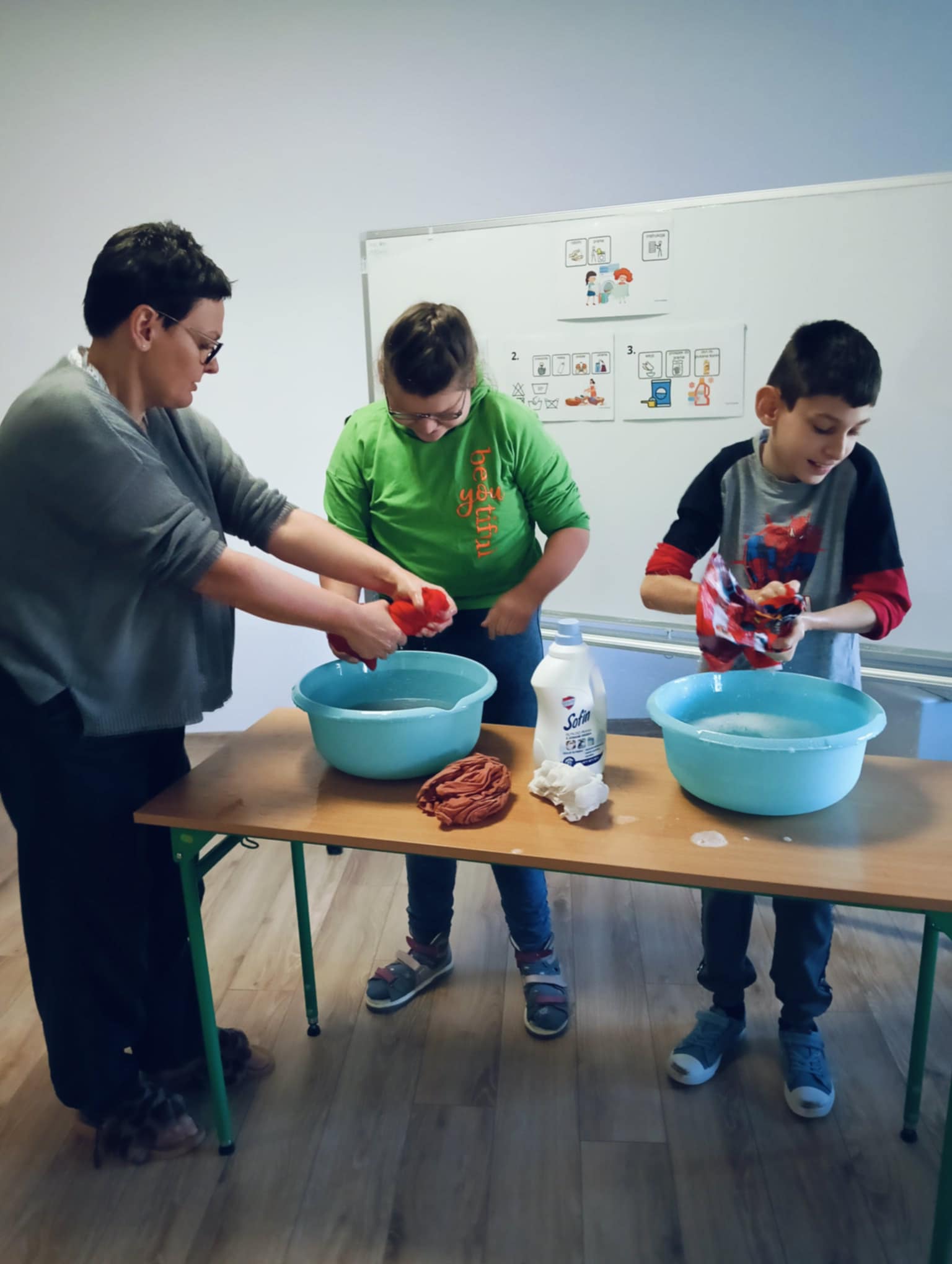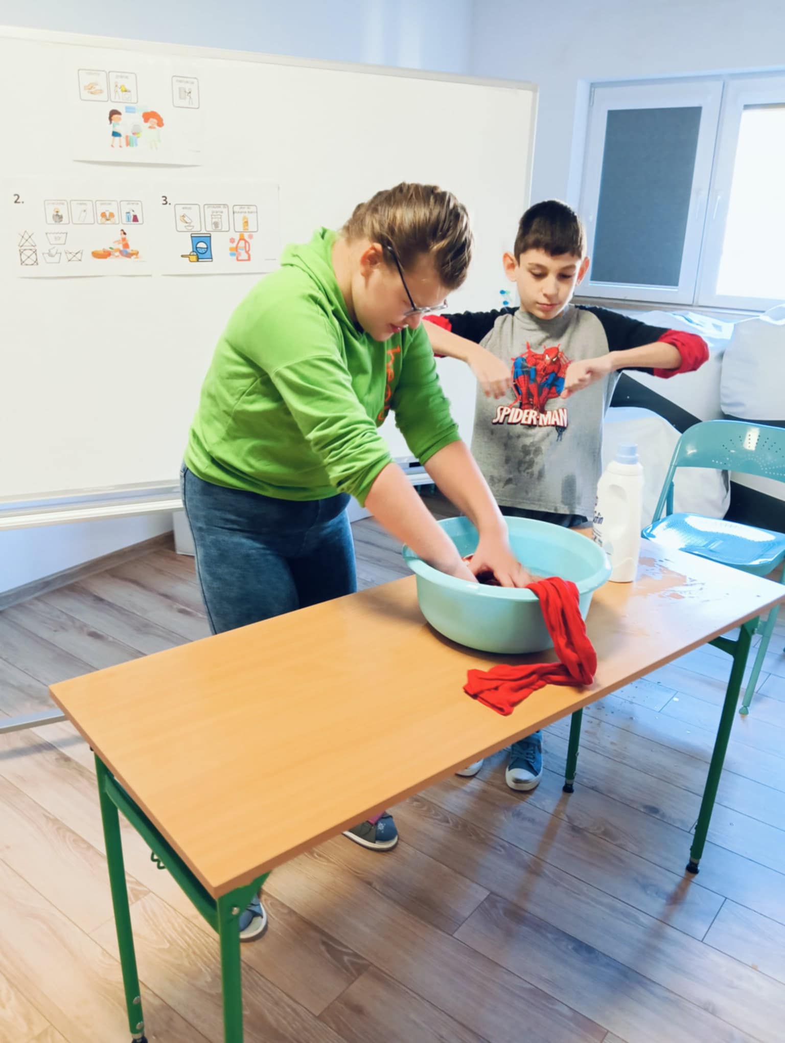 Uczniowie oddziału „I” omawiając temat tygodnia „Higiena osobista” utrwalali zasady jej stosowania. Uczyli się jak prawidłowo uprać ubrania, a następnie jak je wyprasować i poskładać. Niektórzy po raz pierwszy mieli w ręce żelazko i było to dla nich bardzo ekscytujące.