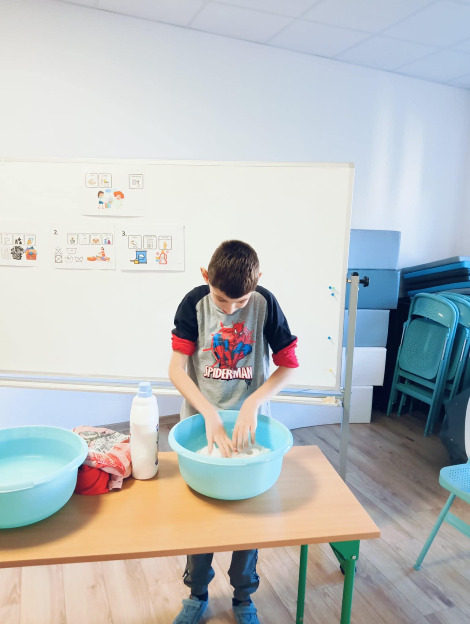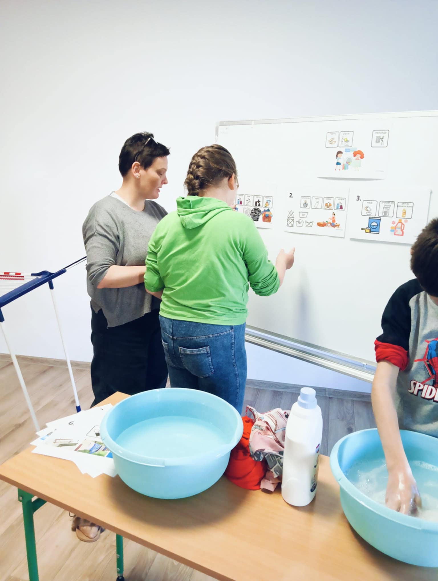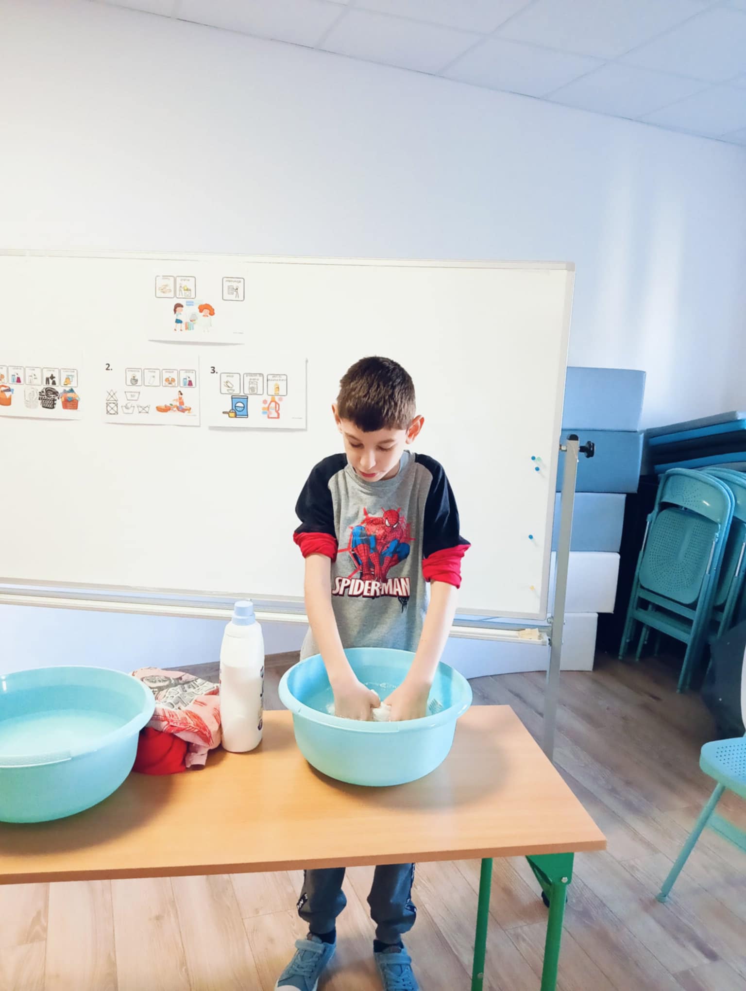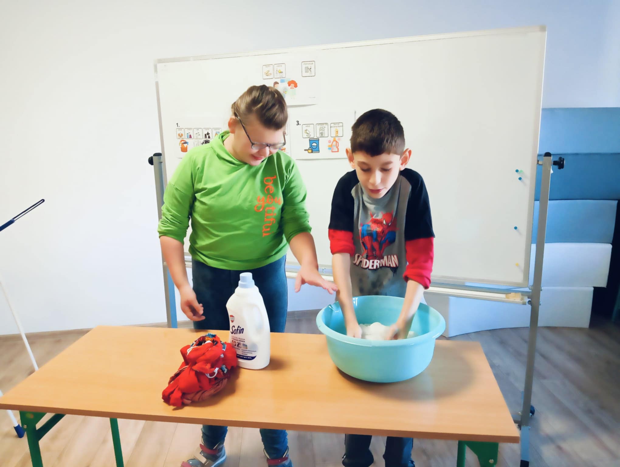 Uczniowie oddziału „I” omawiając temat tygodnia „Higiena osobista” utrwalali zasady jej stosowania. Uczyli się jak prawidłowo uprać ubrania, a następnie jak je wyprasować i poskładać. Niektórzy po raz pierwszy mieli w ręce żelazko i było to dla nich bardzo ekscytujące.