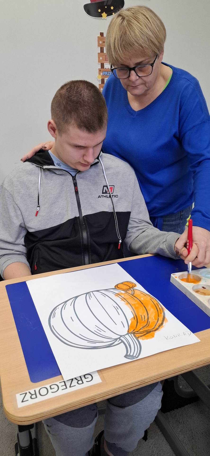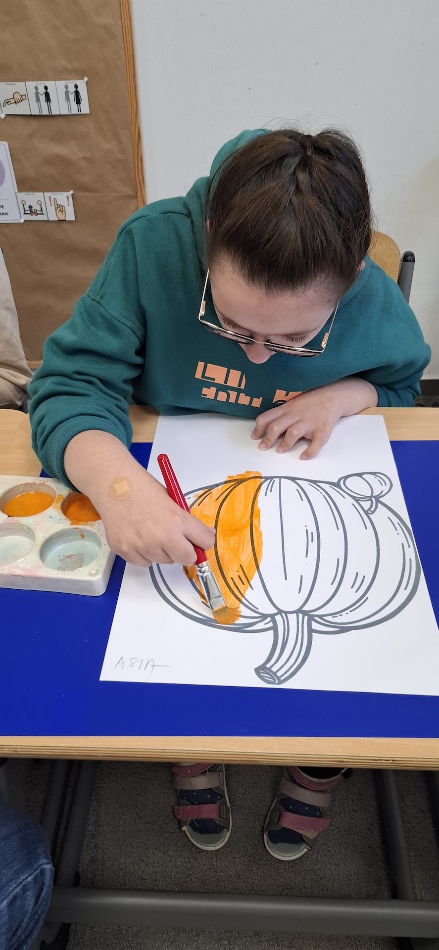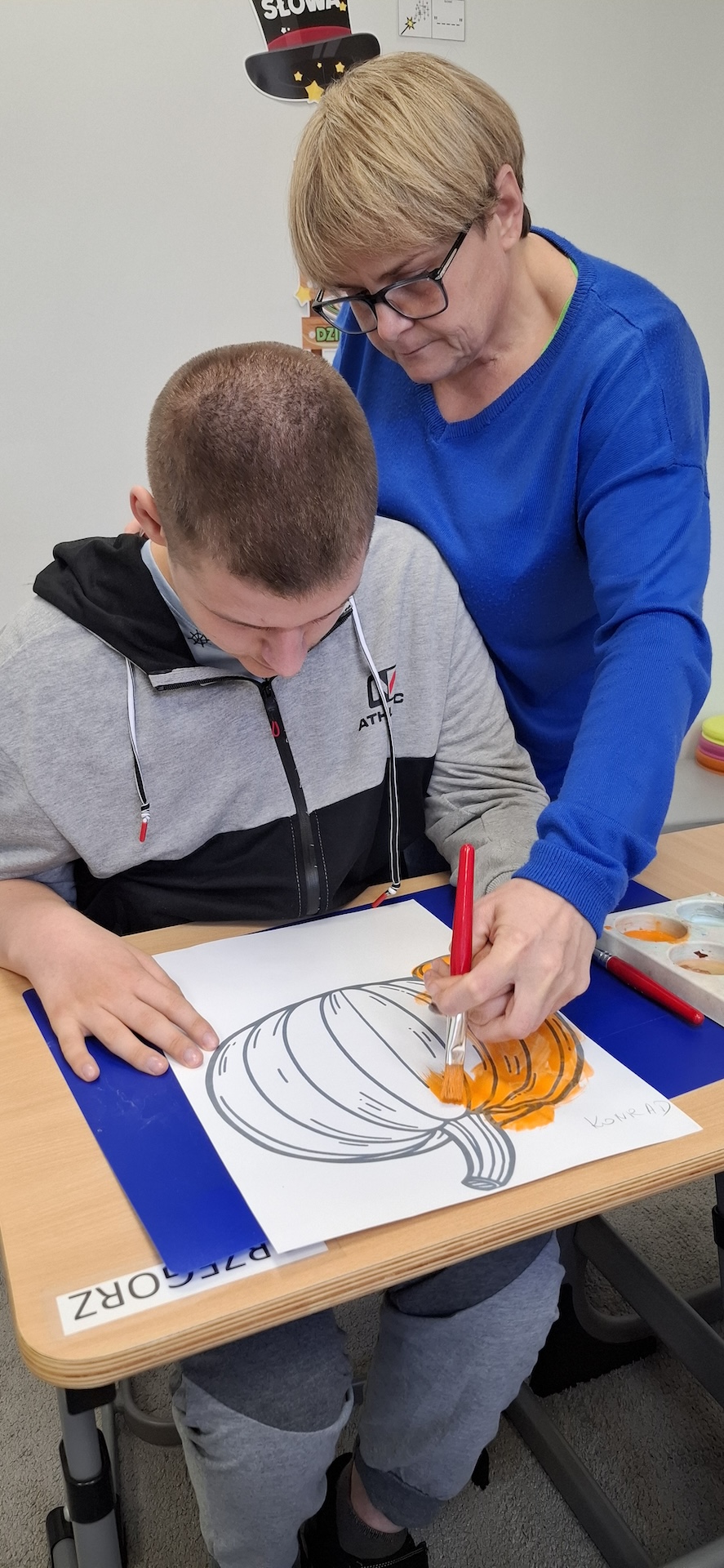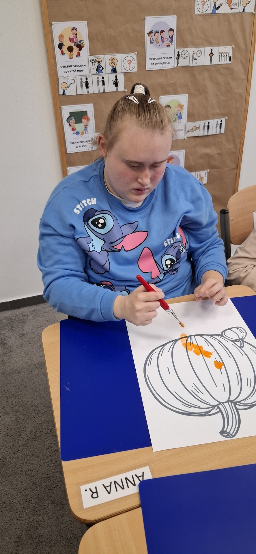 Uczniowie oddziału „II” utrwalając wiedzę na temat jesieni wykonali pracę plastyczną pt: „Dynia” . Jesień to czas, kiedy przyroda zachwyca nas bogactwem kolorów – od złocistych liści po pomarańczowe i charakterystyczne brązowe odcienie. To doskonała okazja, aby spędzać kreatywnie czas z uczniami, wprowadzając ich w świat sztuki i twórczości. Pomysłem na rozwijanie ich wyobraźni było kolorowanie jesiennej dyni farbami. Zabawa ta nie tylko dostarczała wiele radości ale również była doskonałą okazją do nauki, wspierającą rozwój motoryki małej. A oto krótka fotorelacja z tego dnia.
