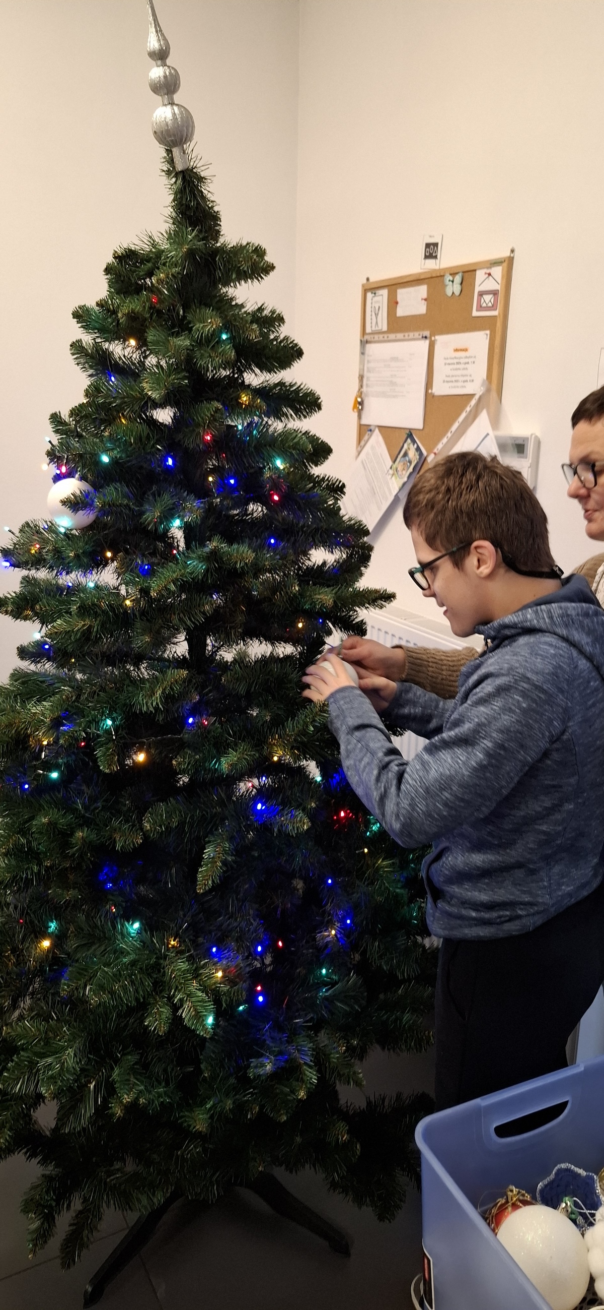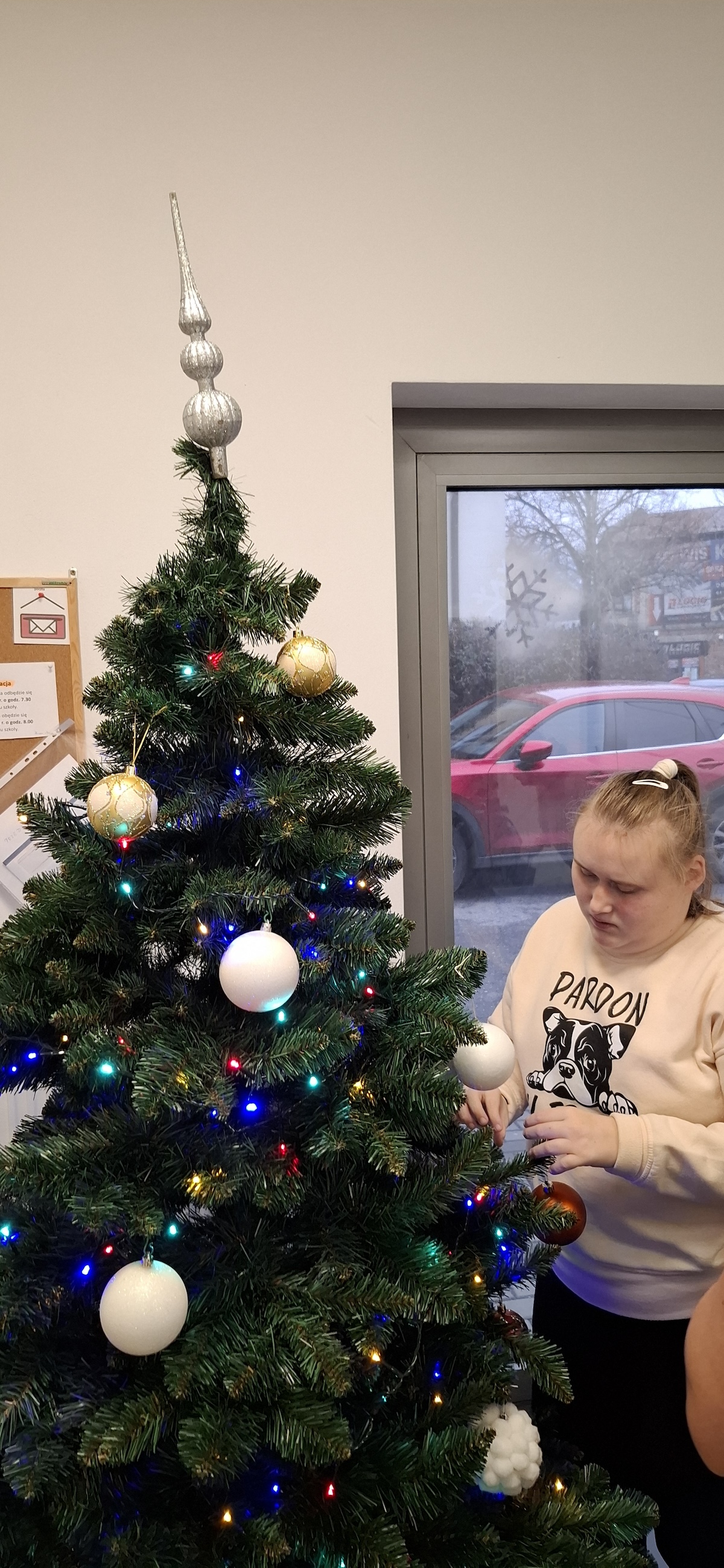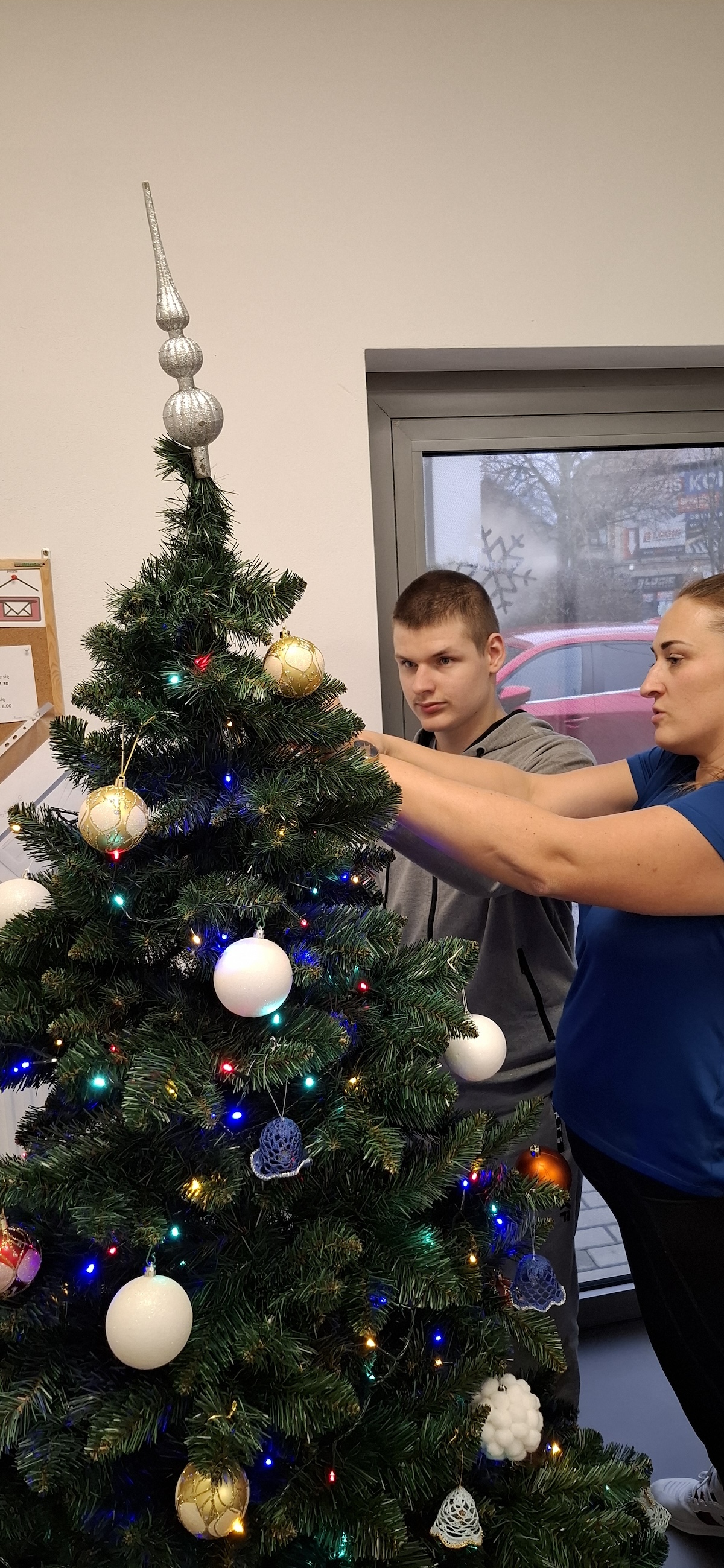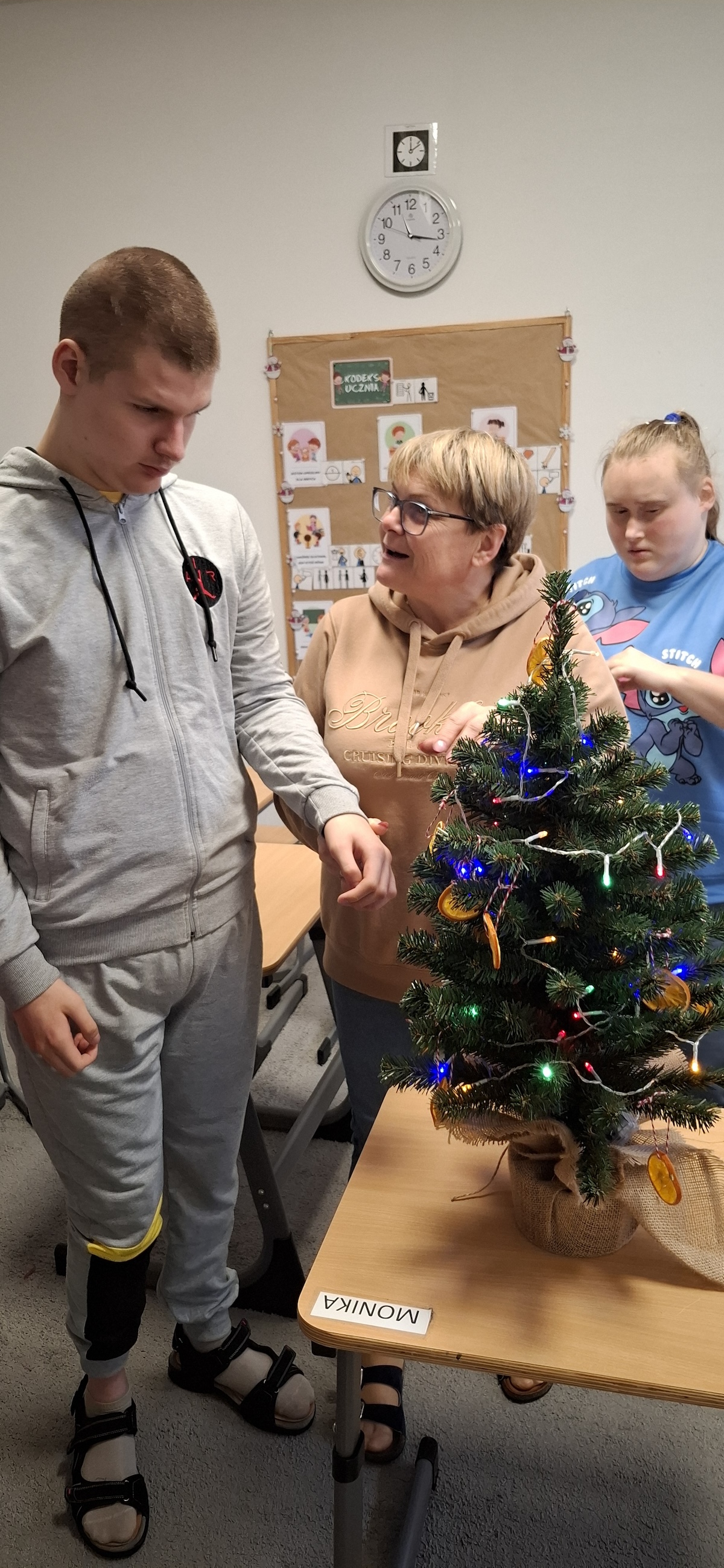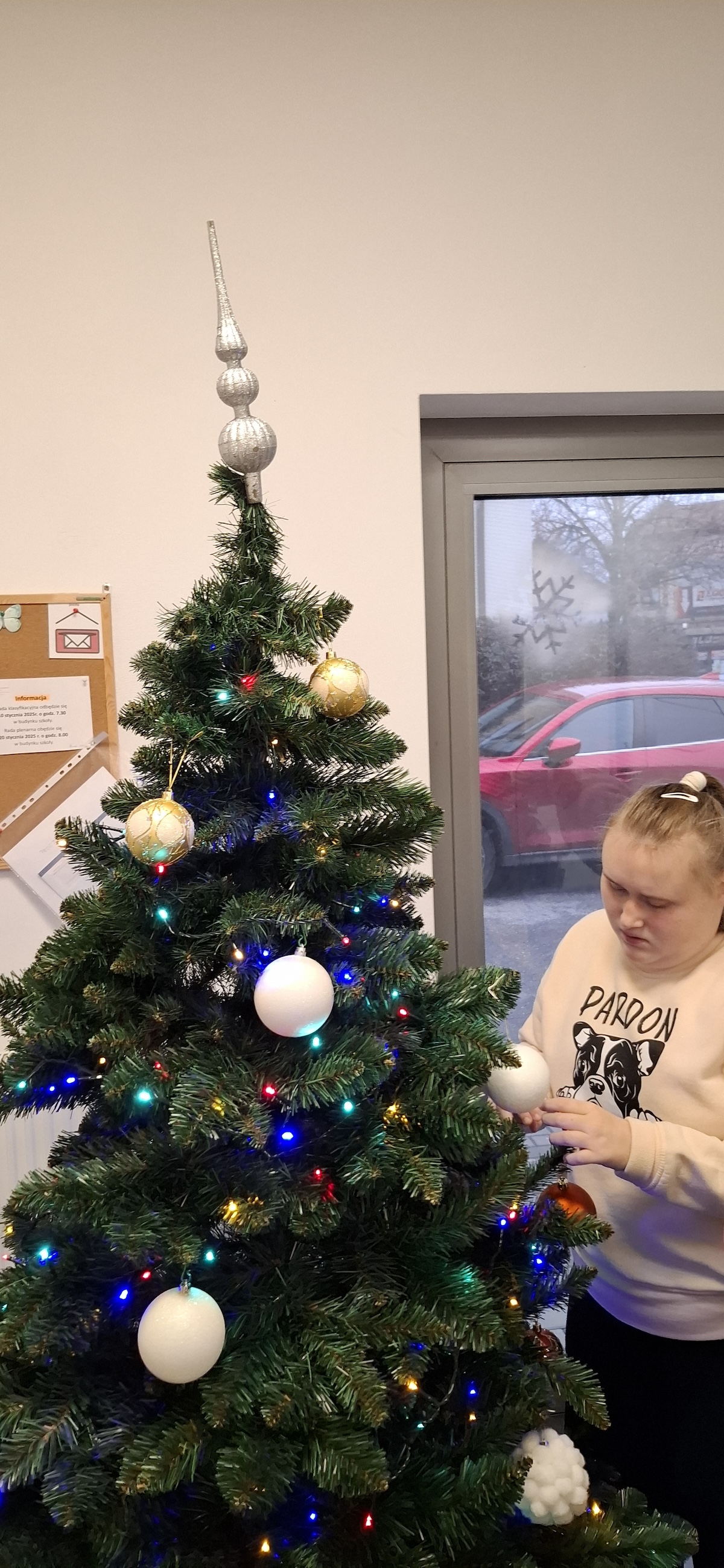 Zbliżający się okres Świąt Bożego Narodzenia to czas pełen radości, ciepła i magii. Jednym z najpiękniejszych momentów, który towarzyszy każdemu z nas, jest ubieranie choinki. Choinka to nie tylko ozdoba, ale także symbol radości, nadziei i wspólnego spędzania czasu. Dlatego uczniowie naszej szkoły, wraz z pracownikami, spędzili miły dzień ubierając to magiczne drzewo, słuchając i śpiewając kolędy, co pozwoliło nam wprowadzić się w świąteczny nastrój.