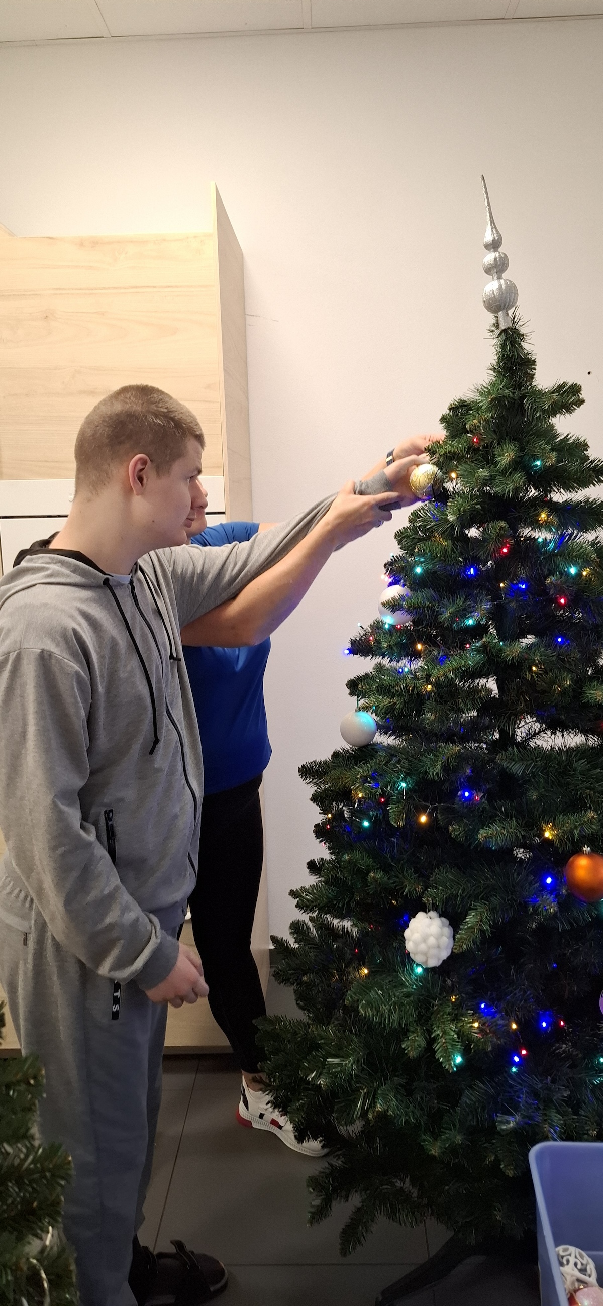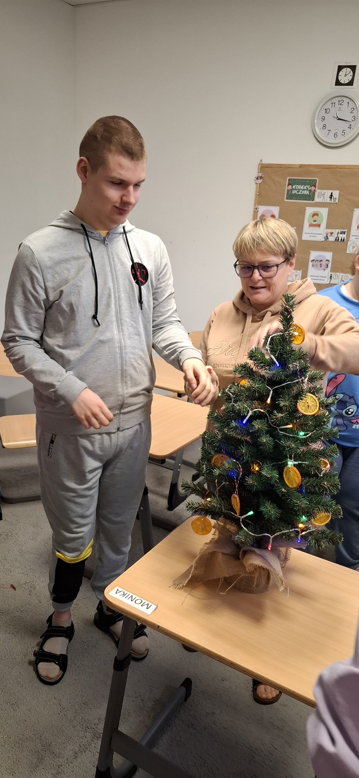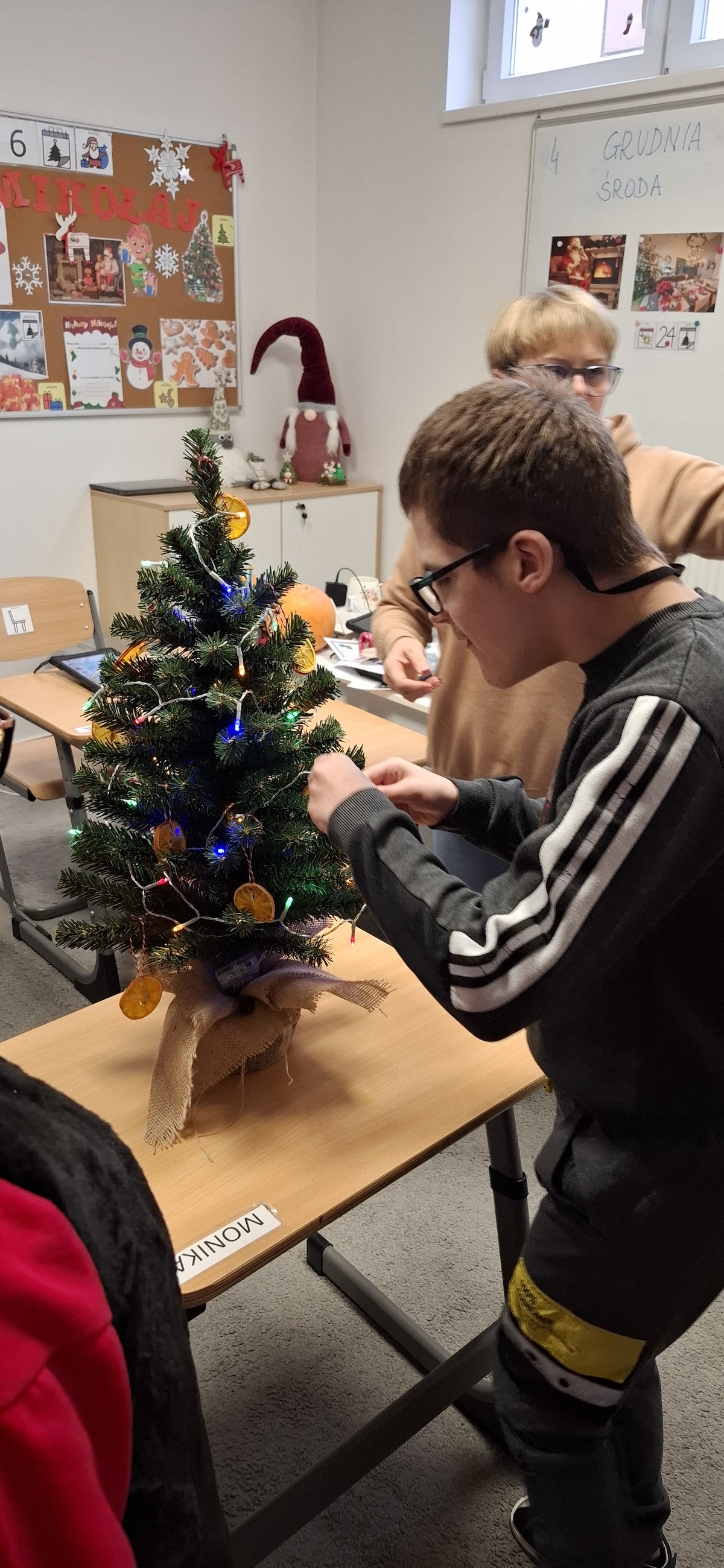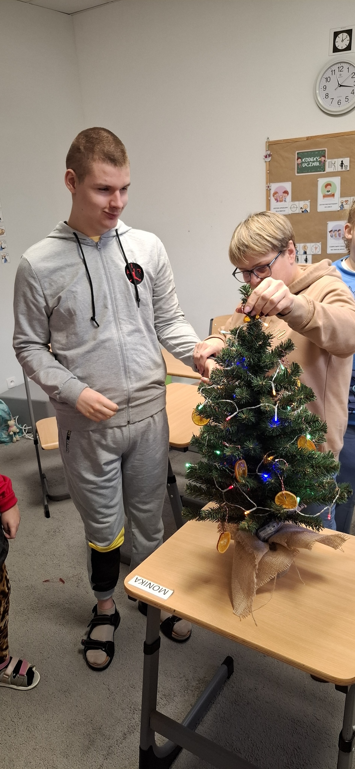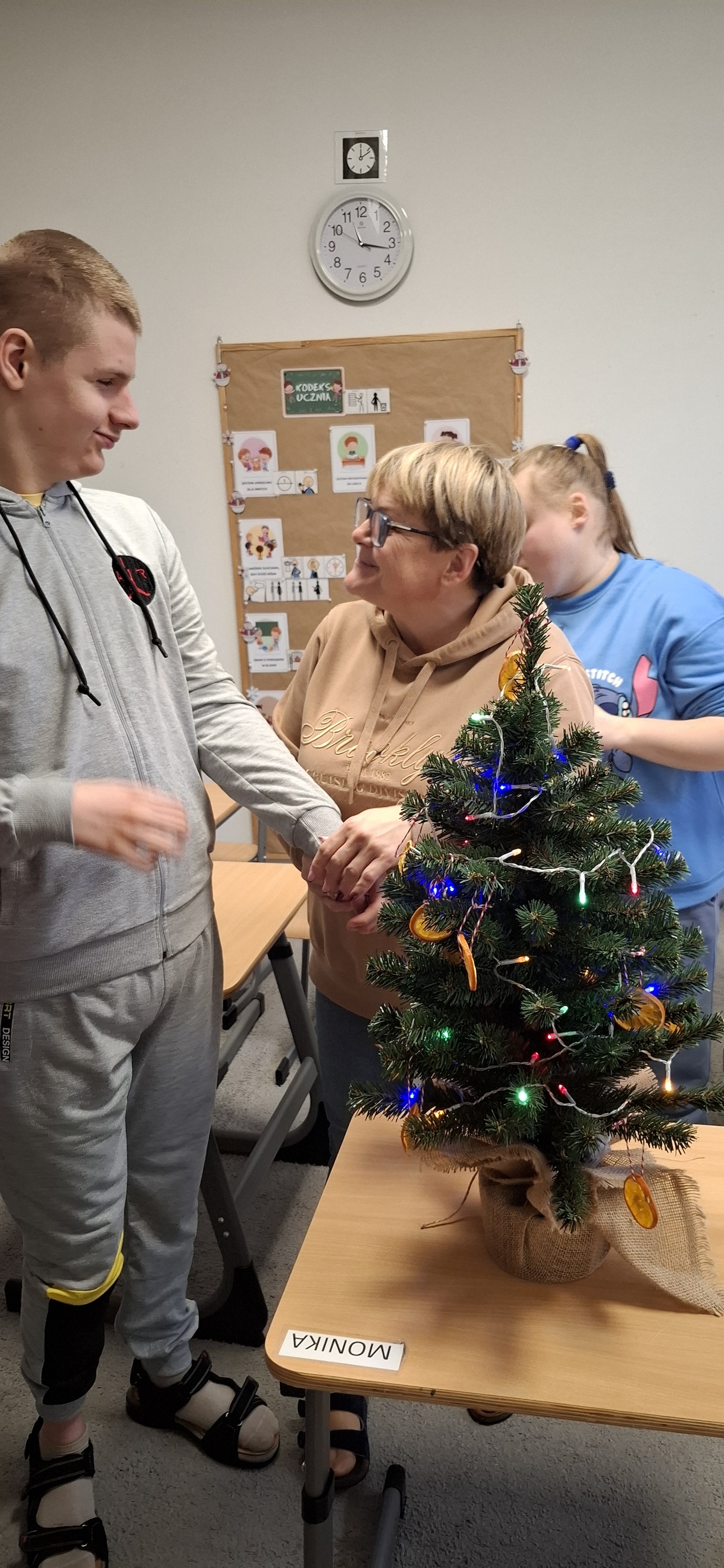 Zbliżający się okres Świąt Bożego Narodzenia to czas pełen radości, ciepła i magii. Jednym z najpiękniejszych momentów, który towarzyszy każdemu z nas, jest ubieranie choinki. Choinka to nie tylko ozdoba, ale także symbol radości, nadziei i wspólnego spędzania czasu. Dlatego uczniowie naszej szkoły, wraz z pracownikami, spędzili miły dzień ubierając to magiczne drzewo, słuchając i śpiewając kolędy, co pozwoliło nam wprowadzić się w świąteczny nastrój.