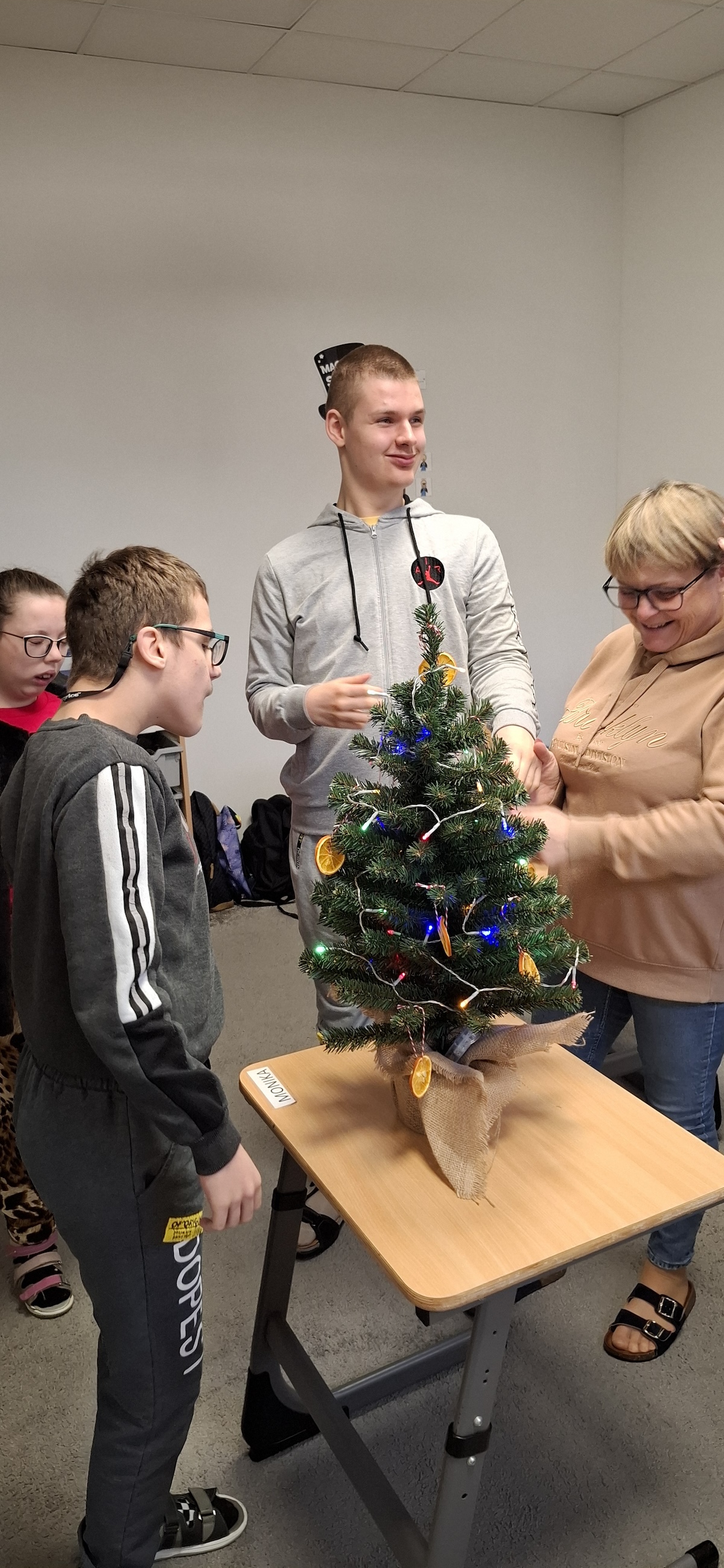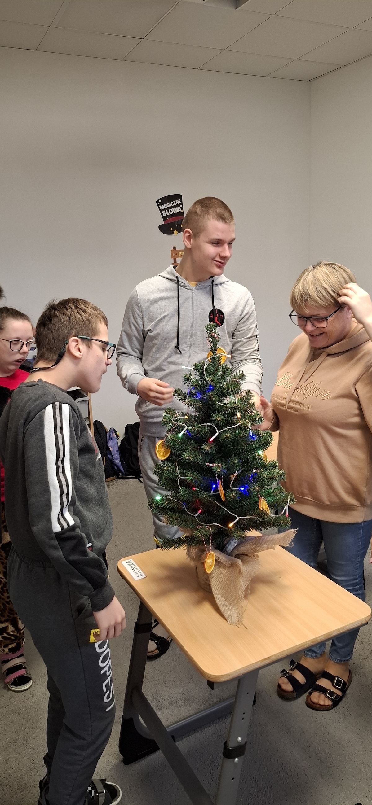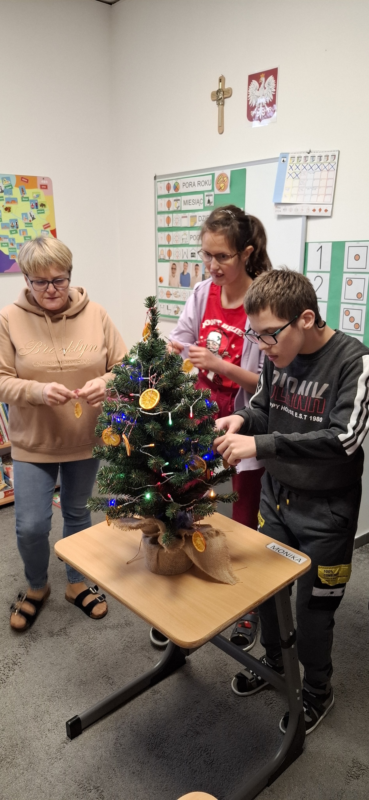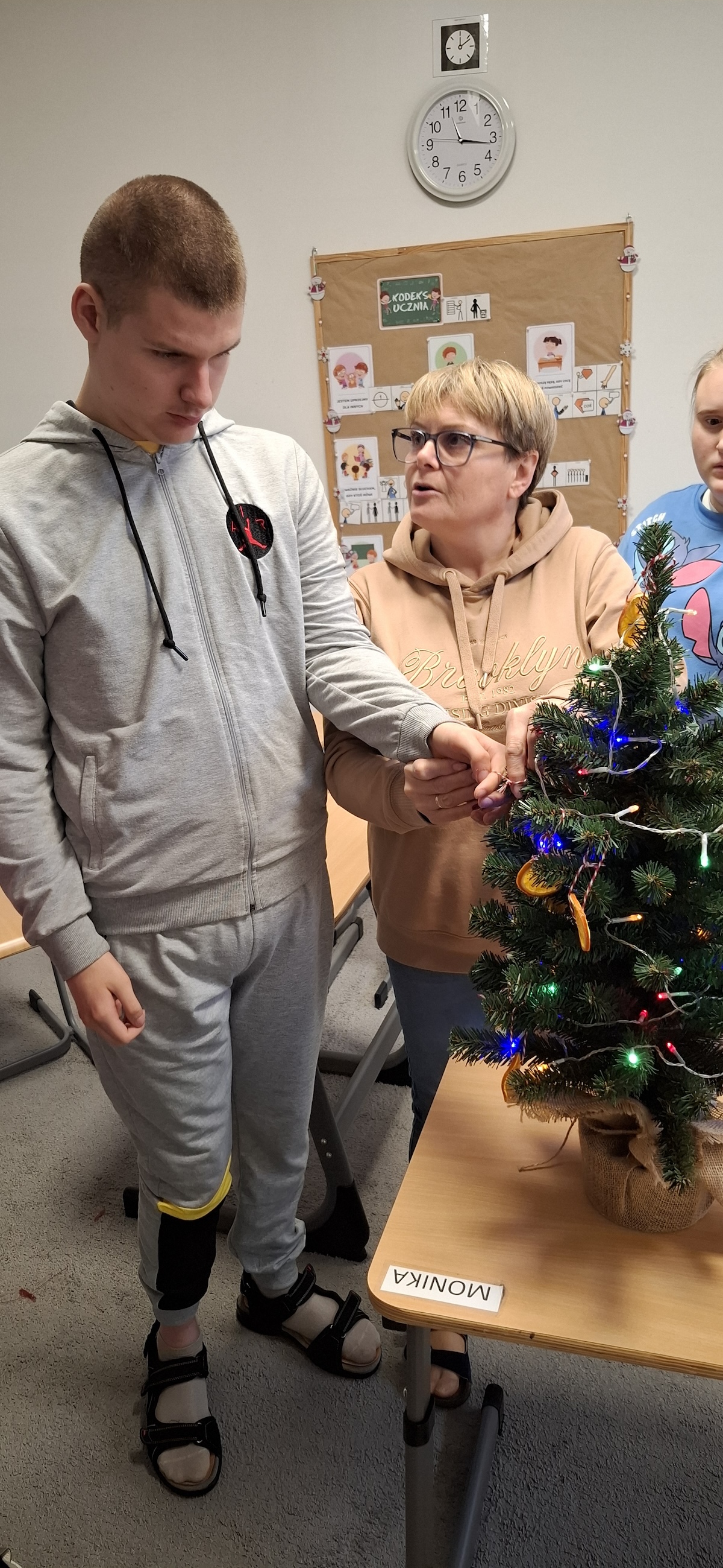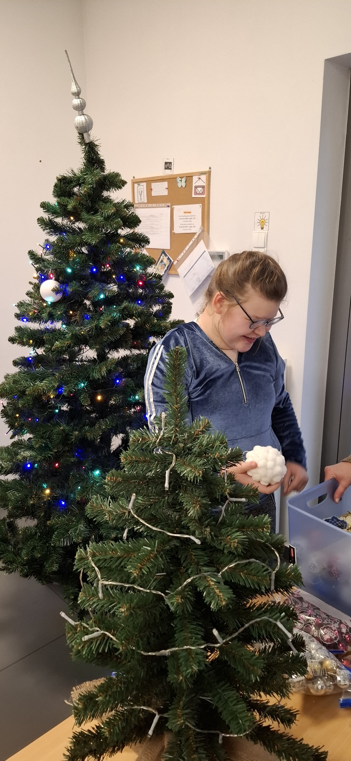 Zbliżający się okres Świąt Bożego Narodzenia to czas pełen radości, ciepła i magii. Jednym z najpiękniejszych momentów, który towarzyszy każdemu z nas, jest ubieranie choinki. Choinka to nie tylko ozdoba, ale także symbol radości, nadziei i wspólnego spędzania czasu. Dlatego uczniowie naszej szkoły, wraz z pracownikami, spędzili miły dzień ubierając to magiczne drzewo, słuchając i śpiewając kolędy, co pozwoliło nam wprowadzić się w świąteczny nastrój.