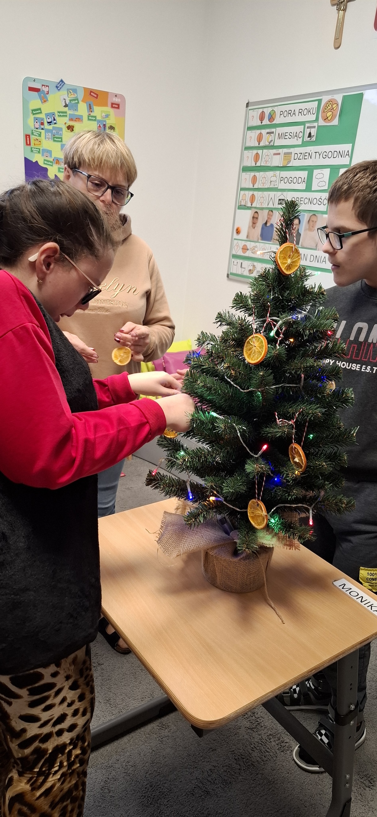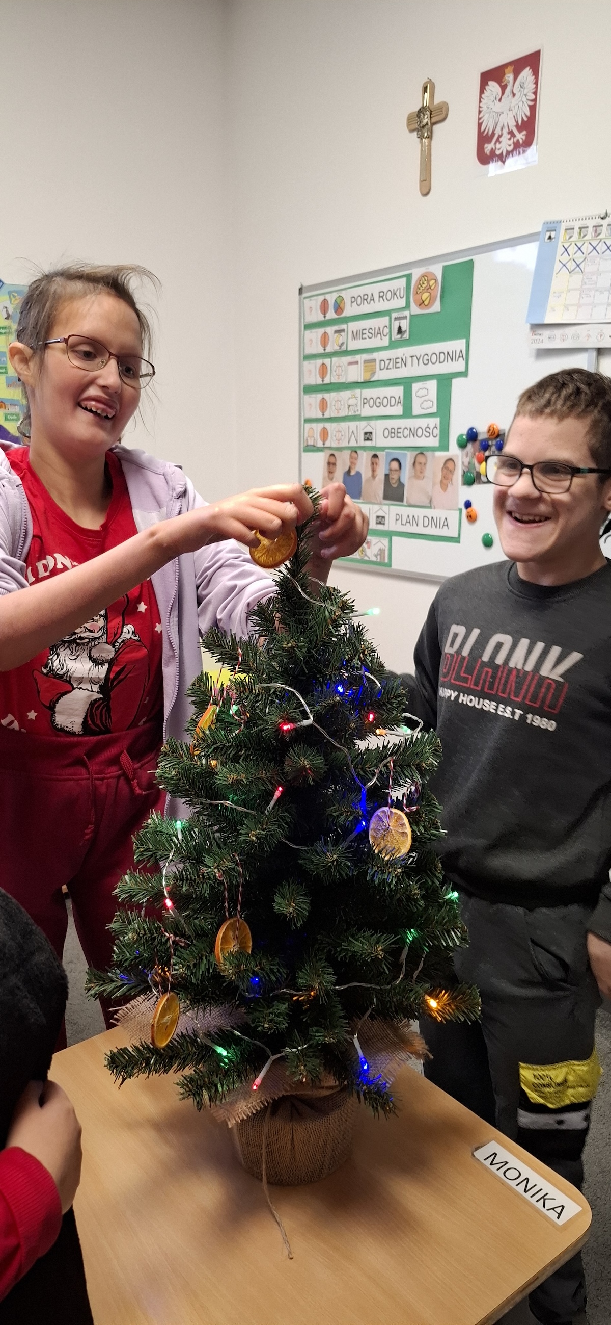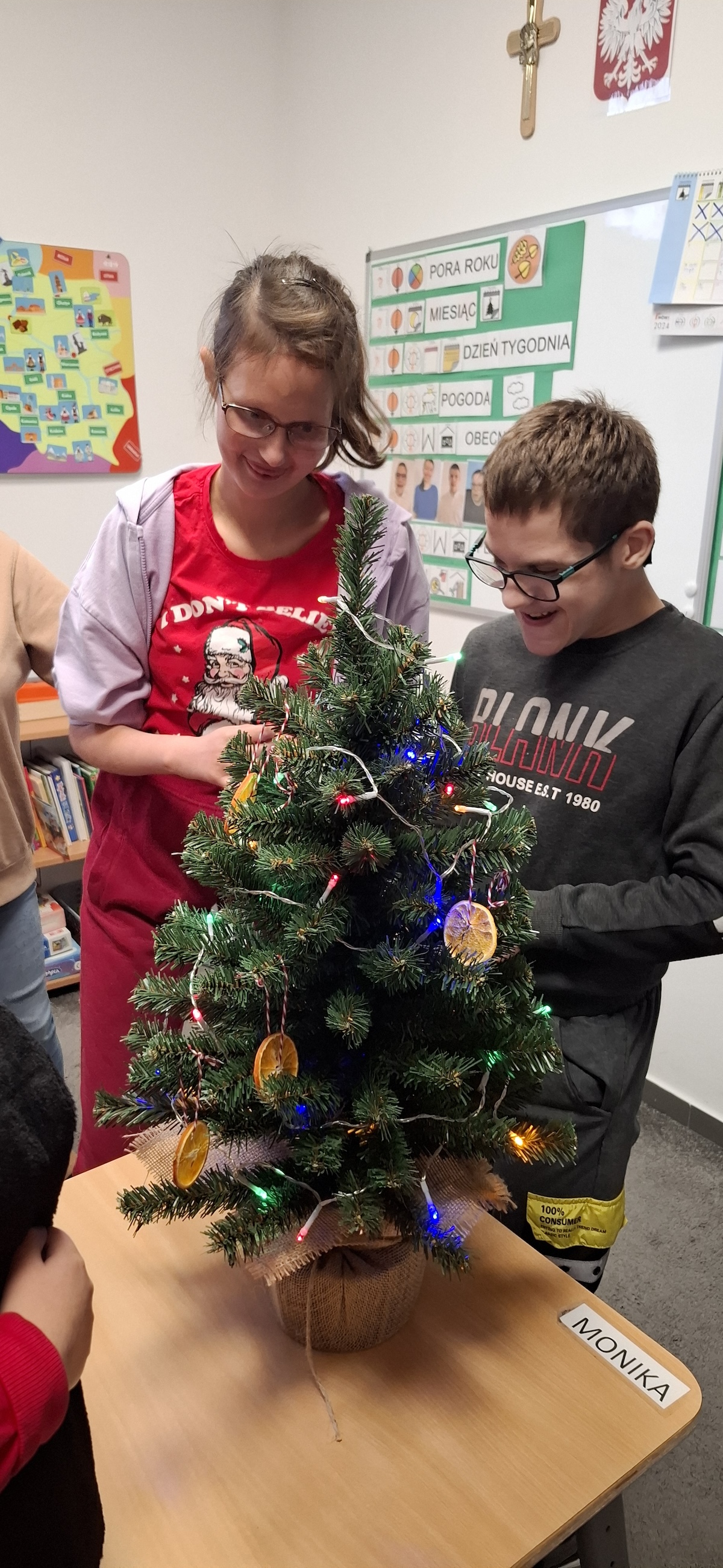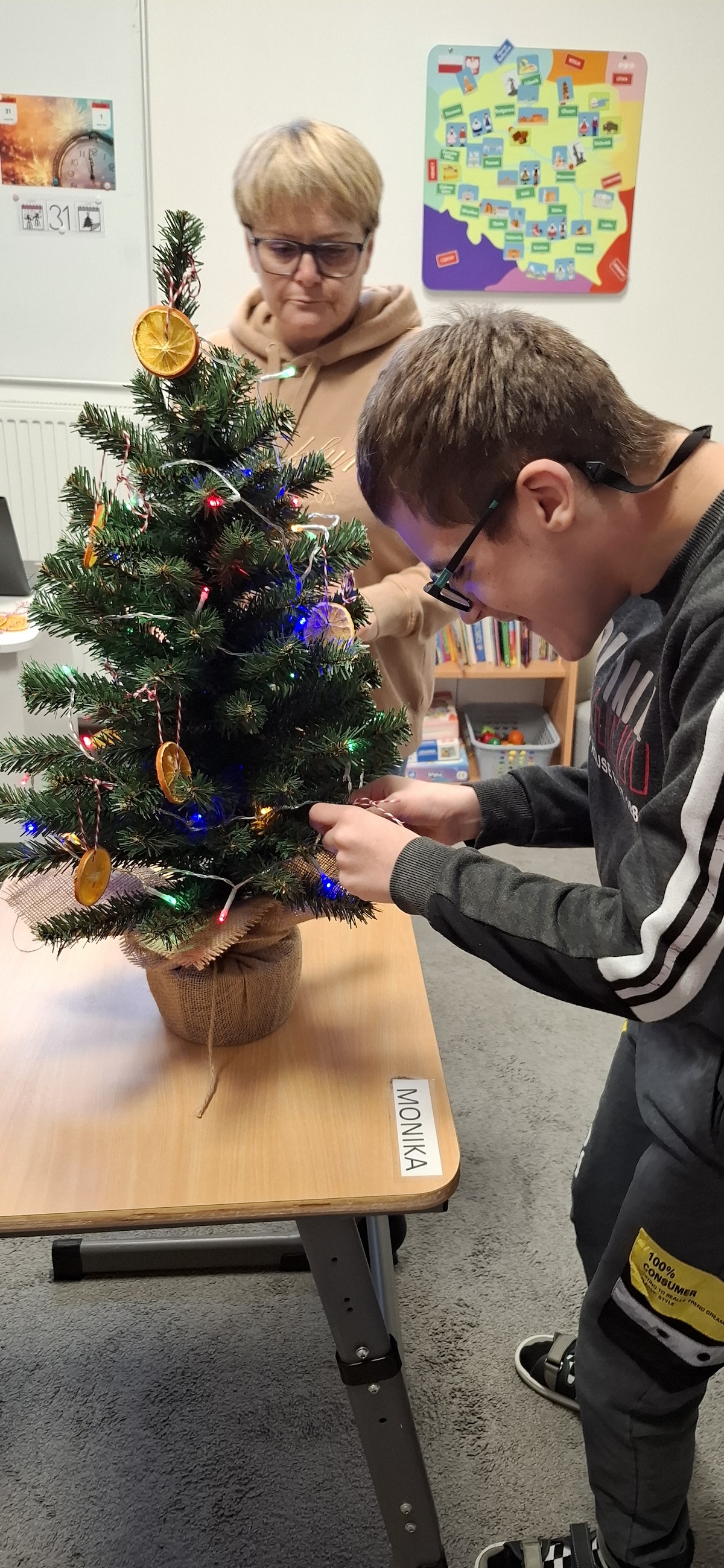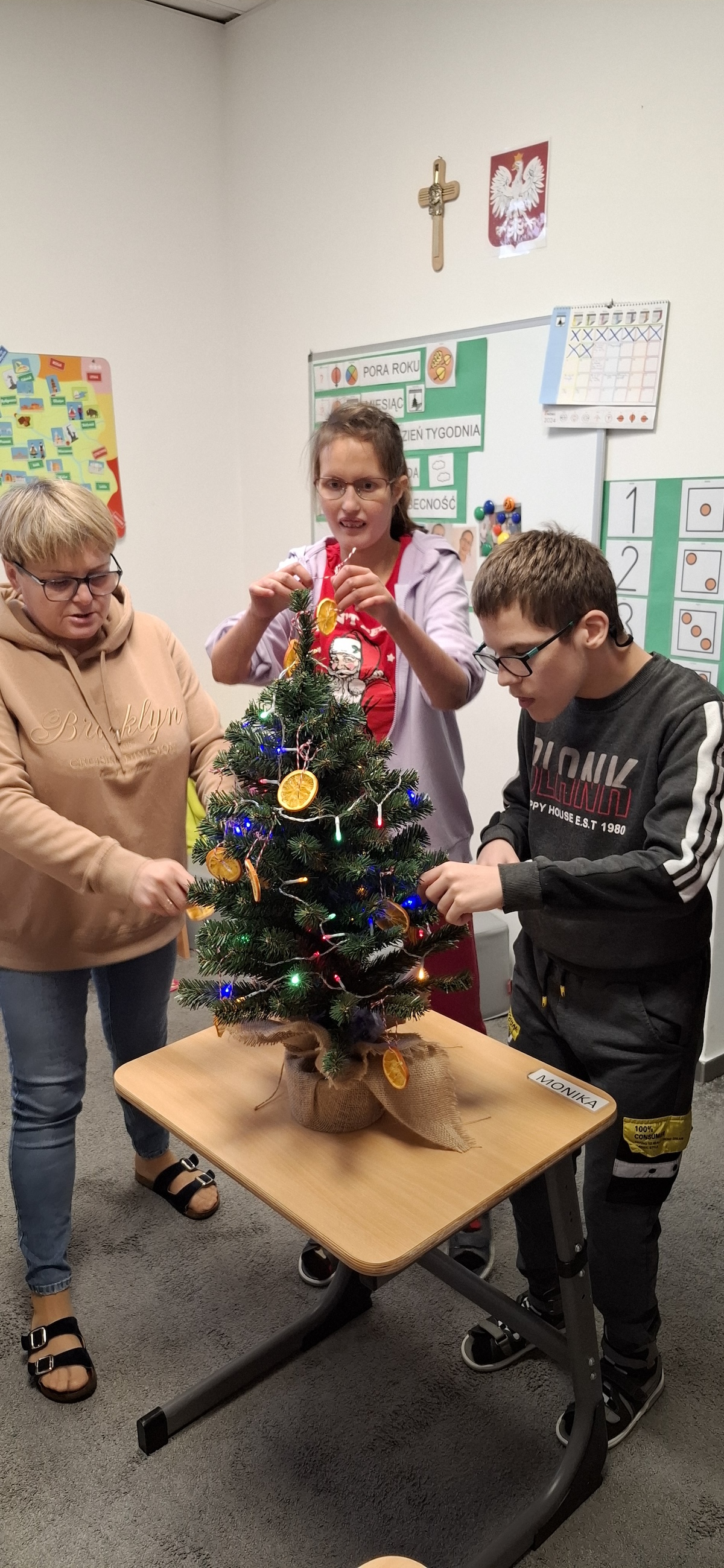 Zbliżający się okres Świąt Bożego Narodzenia to czas pełen radości, ciepła i magii. Jednym z najpiękniejszych momentów, który towarzyszy każdemu z nas, jest ubieranie choinki. Choinka to nie tylko ozdoba, ale także symbol radości, nadziei i wspólnego spędzania czasu. Dlatego uczniowie naszej szkoły, wraz z pracownikami, spędzili miły dzień ubierając to magiczne drzewo, słuchając i śpiewając kolędy, co pozwoliło nam wprowadzić się w świąteczny nastrój.