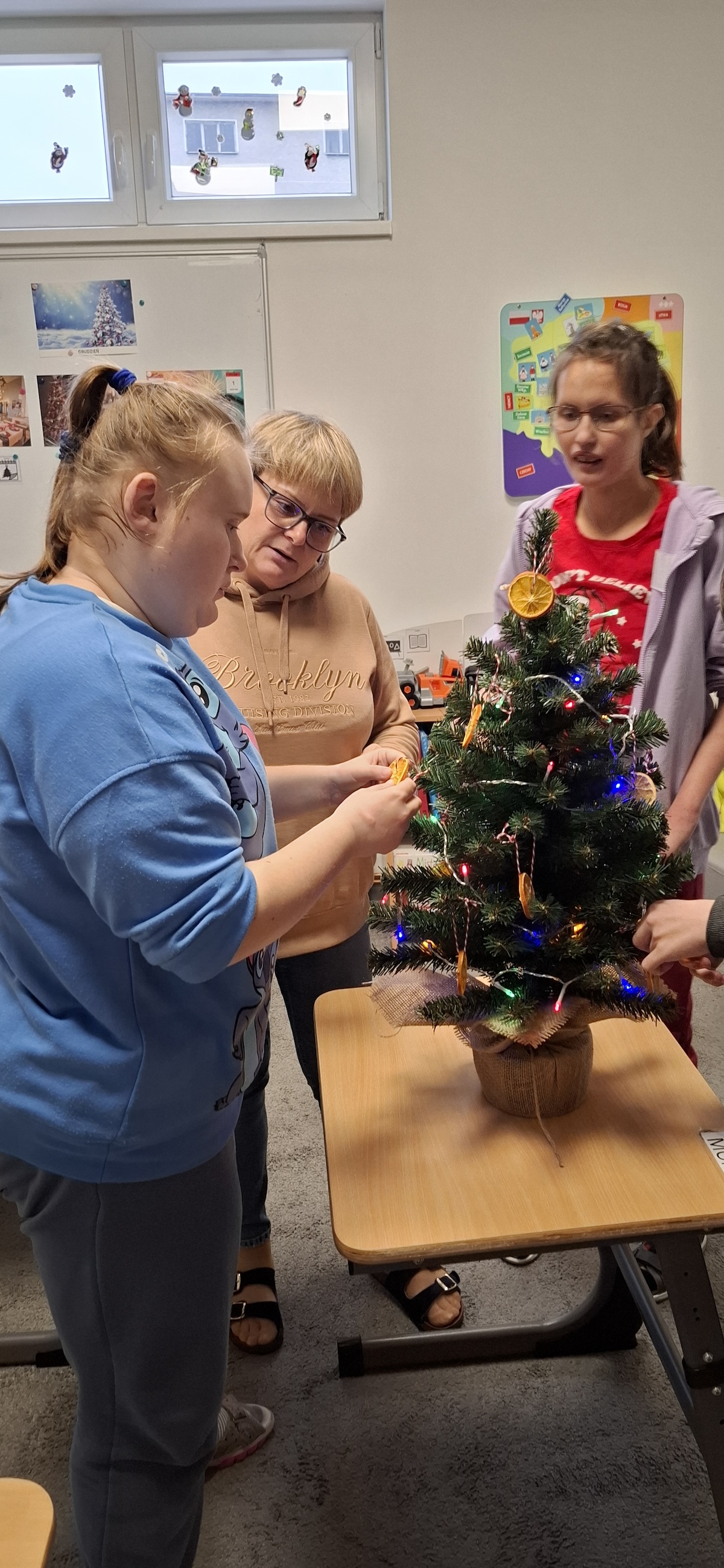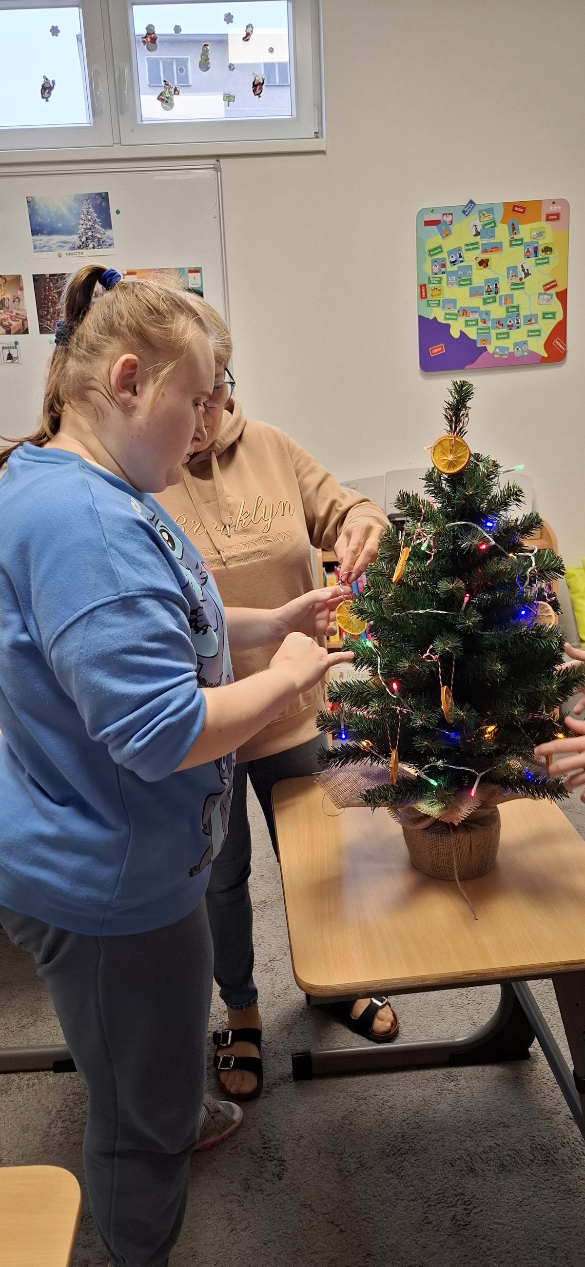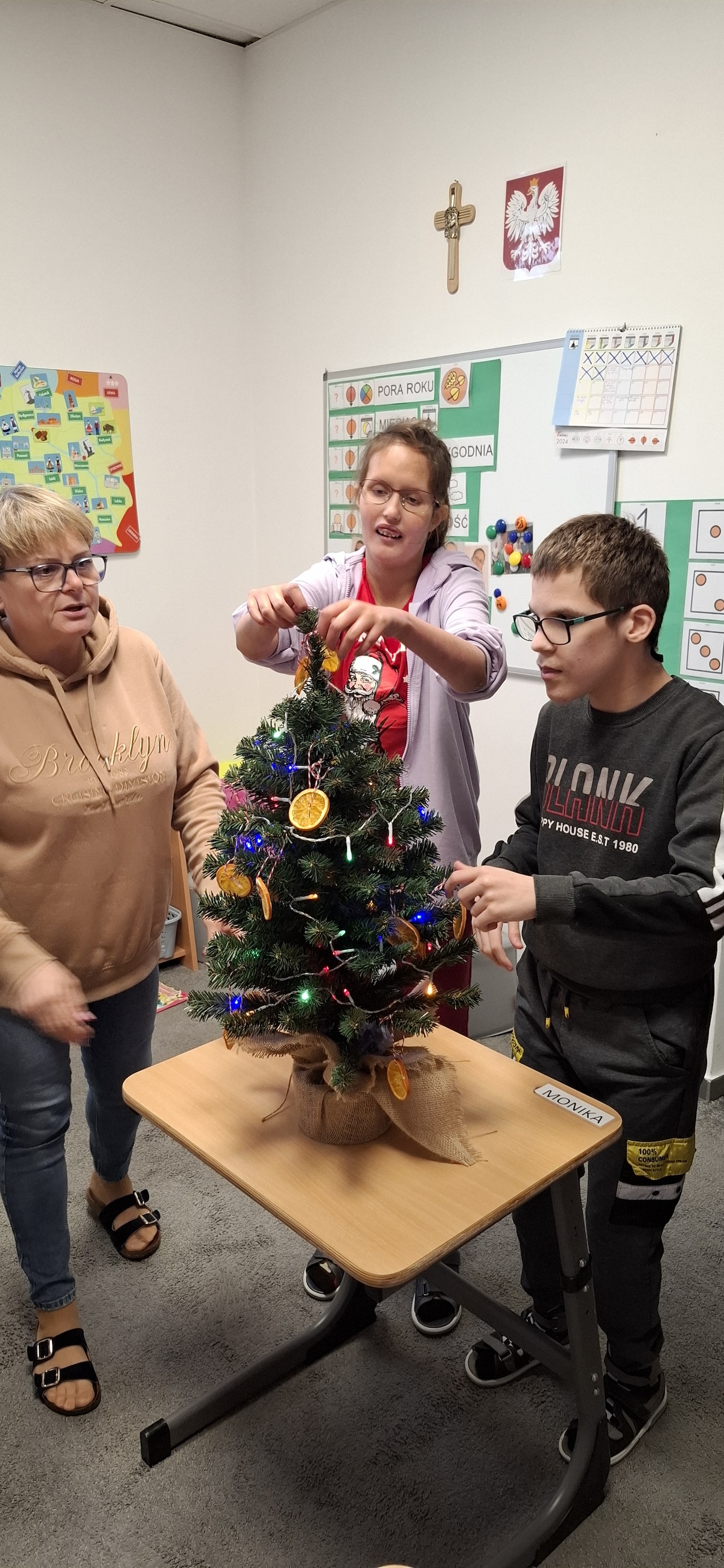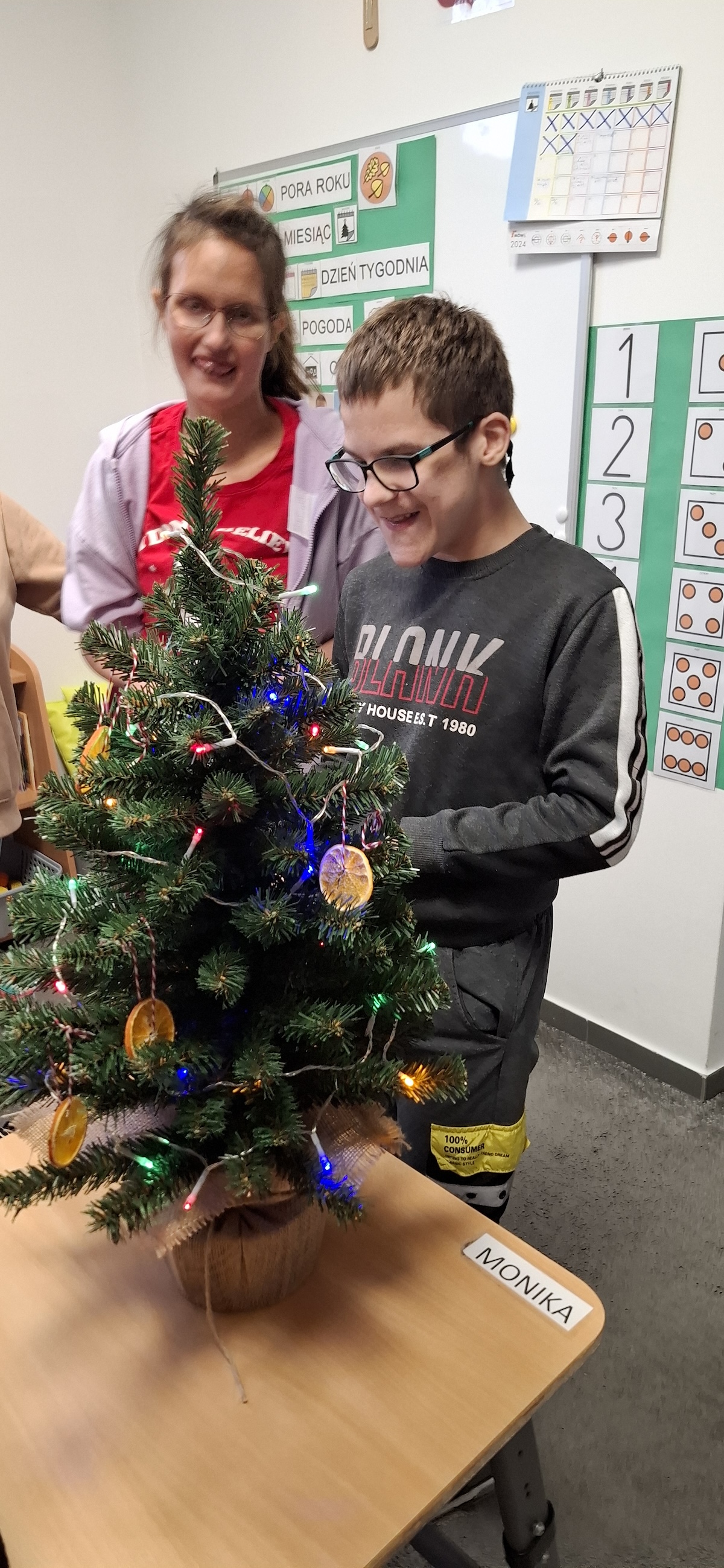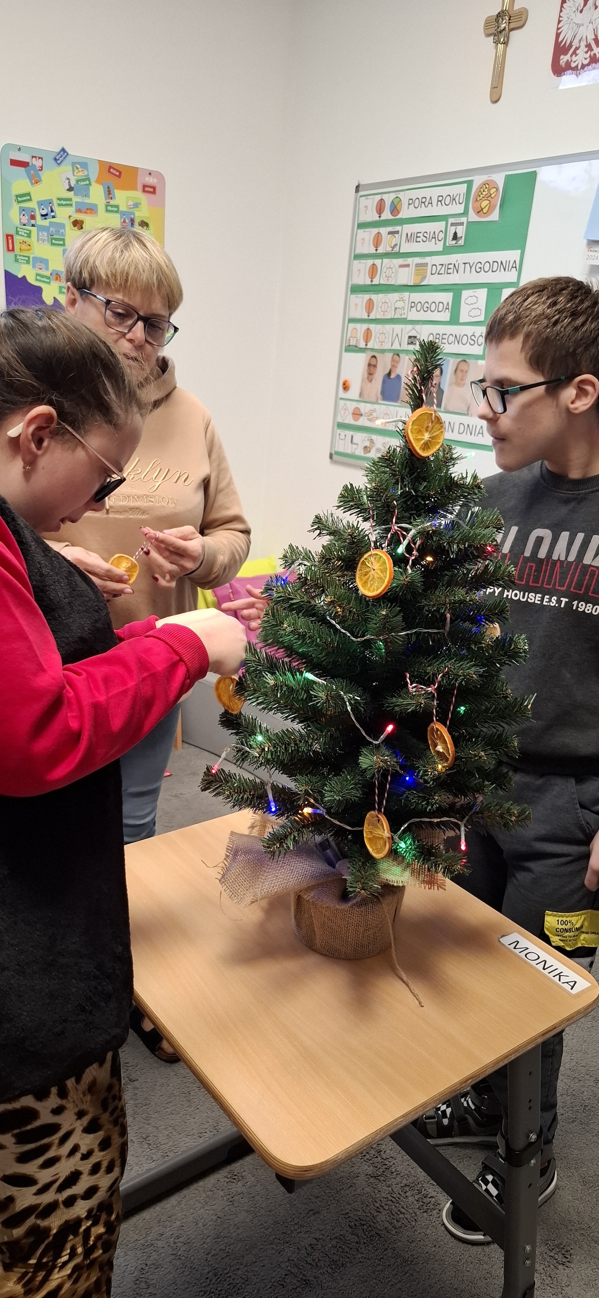 Zbliżający się okres Świąt Bożego Narodzenia to czas pełen radości, ciepła i magii. Jednym z najpiękniejszych momentów, który towarzyszy każdemu z nas, jest ubieranie choinki. Choinka to nie tylko ozdoba, ale także symbol radości, nadziei i wspólnego spędzania czasu. Dlatego uczniowie naszej szkoły, wraz z pracownikami, spędzili miły dzień ubierając to magiczne drzewo, słuchając i śpiewając kolędy, co pozwoliło nam wprowadzić się w świąteczny nastrój.