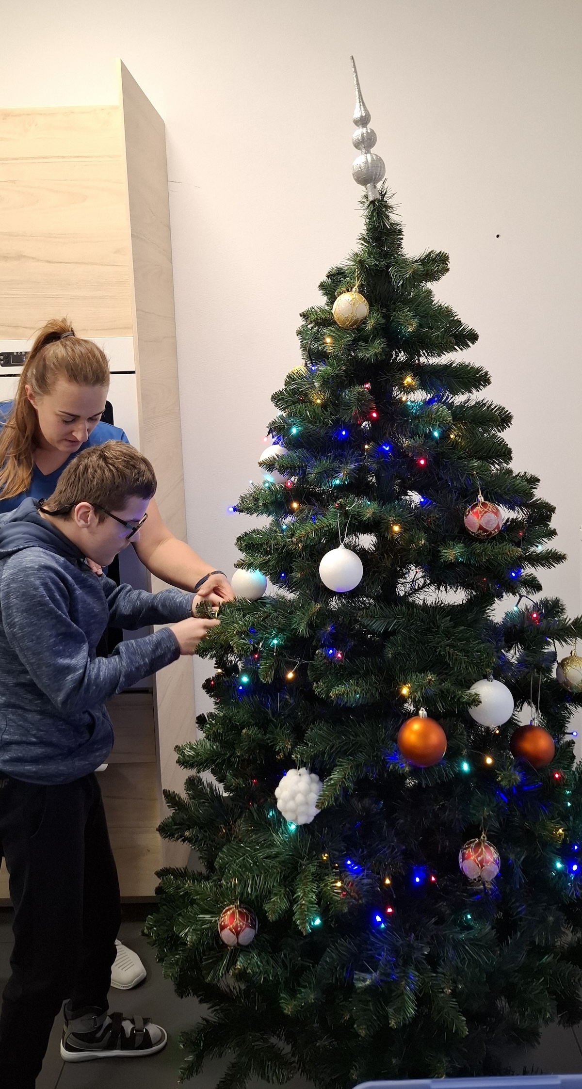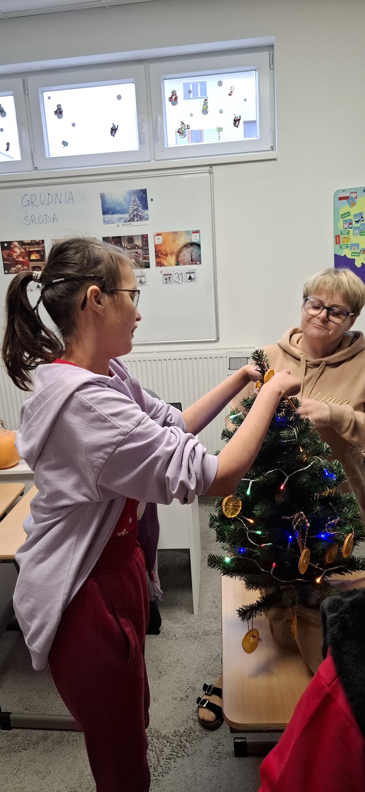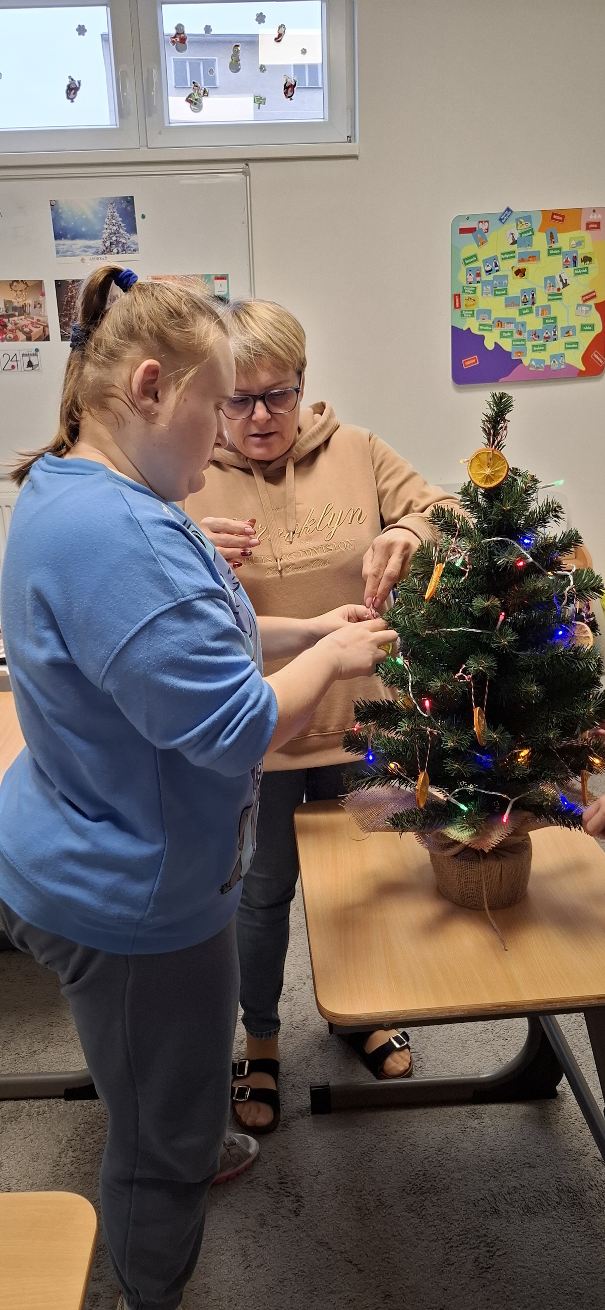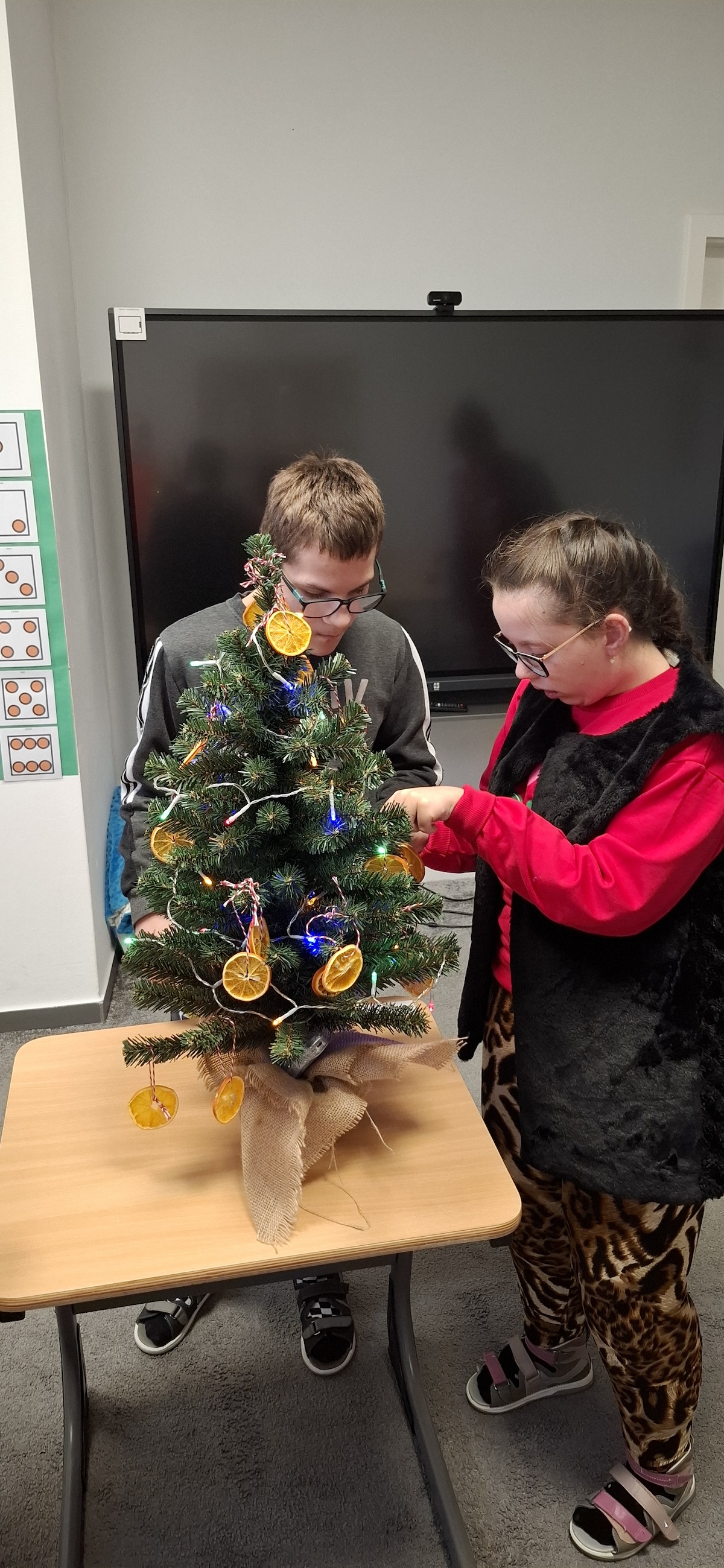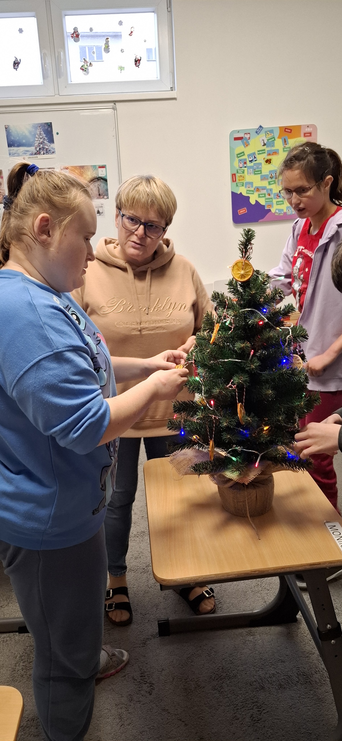 Zbliżający się okres Świąt Bożego Narodzenia to czas pełen radości, ciepła i magii. Jednym z najpiękniejszych momentów, który towarzyszy każdemu z nas, jest ubieranie choinki. Choinka to nie tylko ozdoba, ale także symbol radości, nadziei i wspólnego spędzania czasu. Dlatego uczniowie naszej szkoły, wraz z pracownikami, spędzili miły dzień ubierając to magiczne drzewo, słuchając i śpiewając kolędy, co pozwoliło nam wprowadzić się w świąteczny nastrój.