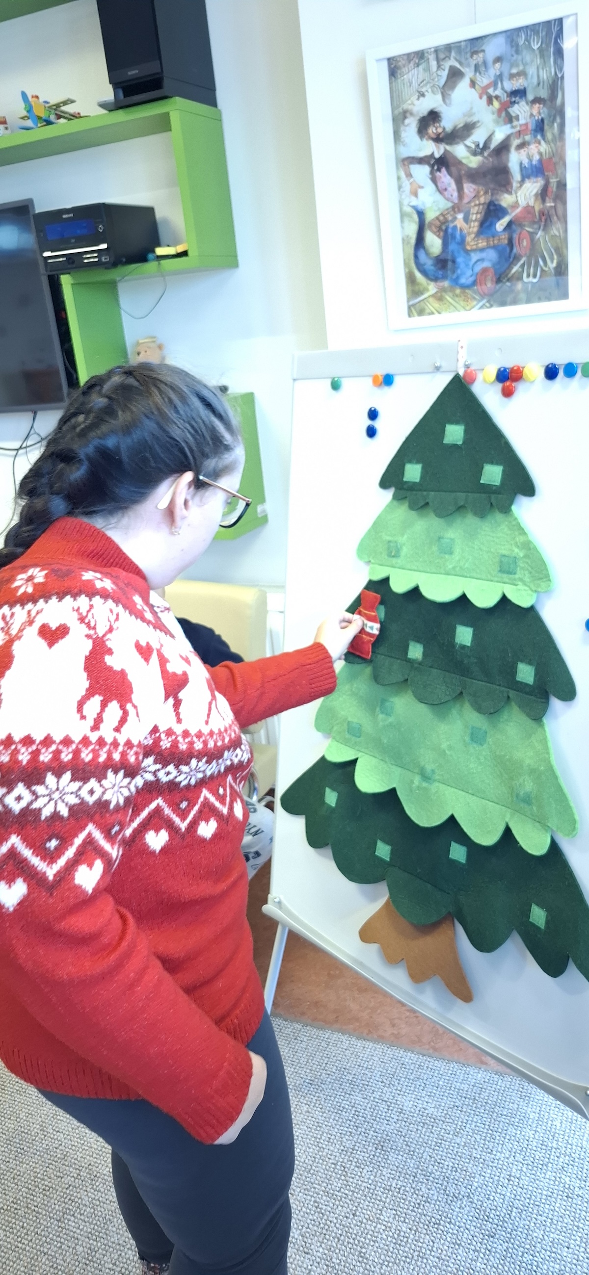 Zbliżający się okres Świąt Bożego Narodzenia to czas, który sprzyja zatrzymaniu się na chwilę, wyciszeniu i refleksji. To także doskonała okazja, by wprowadzić dzieci i młodzież w magiczną atmosferę świąt, łącząc ją z pasją do książek i literatury. Takie wyjątkowe spotkanie miało miejsce w naszej bibliotece, gdzie uczniowie mieli okazję połączyć radość nadchodzących Świąt z przyjemnością obcowania z literaturą. Po przeczytaniu wybranych książek, wspólnie ozdabialiśmy magiczne drzewko, omawiając znaczenie poszczególnych ozdób choinkowych. Po tym wprowadzeniu przystąpiliśmy do wykonania prac plastycznych pt. „Choinka”. A oto fotorelacja z tego wspaniale spędzonego dnia.