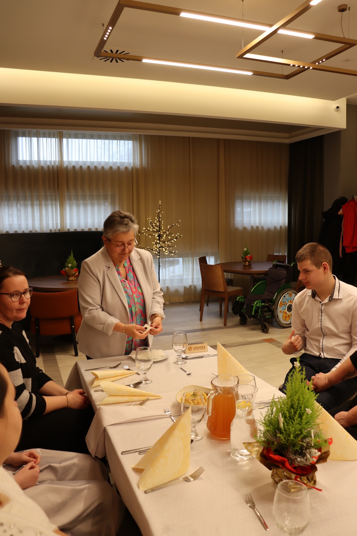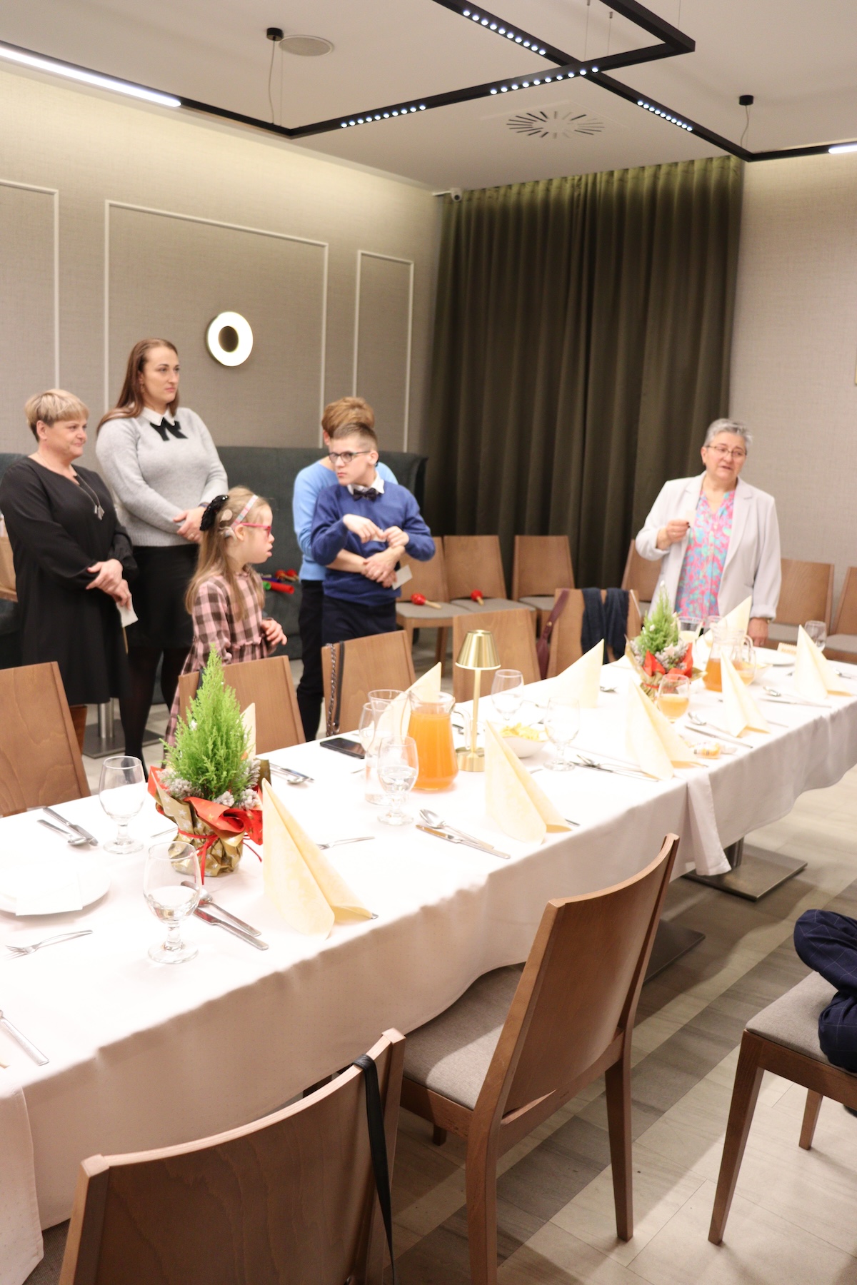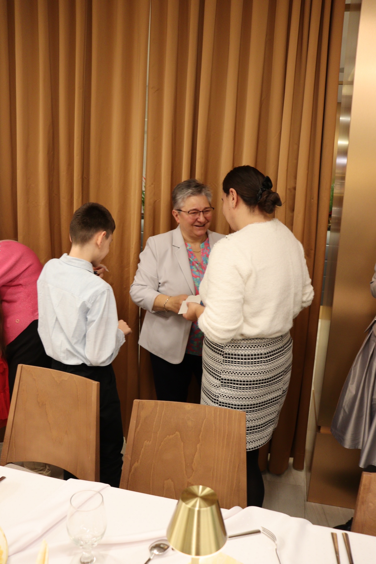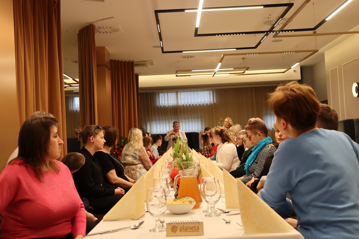 Tuż przed Świętami Bożego Narodzenia w naszej szkole odbyło się tradycyjne spotkanie opłatkowe, które miało miejsce w Restauracji „Planeta”. Gdy wszyscy zebrali się na miejscu, Pani Dyrektor serdecznie powitała wszystkich zgromadzonych i złożyła świąteczne życzenia, następnie podzieliliśmy się opłatkiem, symbolem otwartości serca i gotowości do przebaczenia. Po tej wzruszającej chwili zasiedliśmy do Wigilijnego Stołu, gdzie mogliśmy delektować się pysznymi potrawami. Atmosferę spotkania umiliło uroczyste odśpiewanie kolęd, które wprowadziło nas w prawdziwie świąteczny nastrój. Na zakończenie spotkania wszyscy otrzymali skromne upominki bożonarodzeniowe, które były miłym akcentem i udali się do swoich domów, aby cieszyć się świątecznym odpoczynkiem w gronie najbliższych. Życzymy wszystkim spokojnych, ciepłych i pełnych miłości Świąt Bożego Narodzenia!