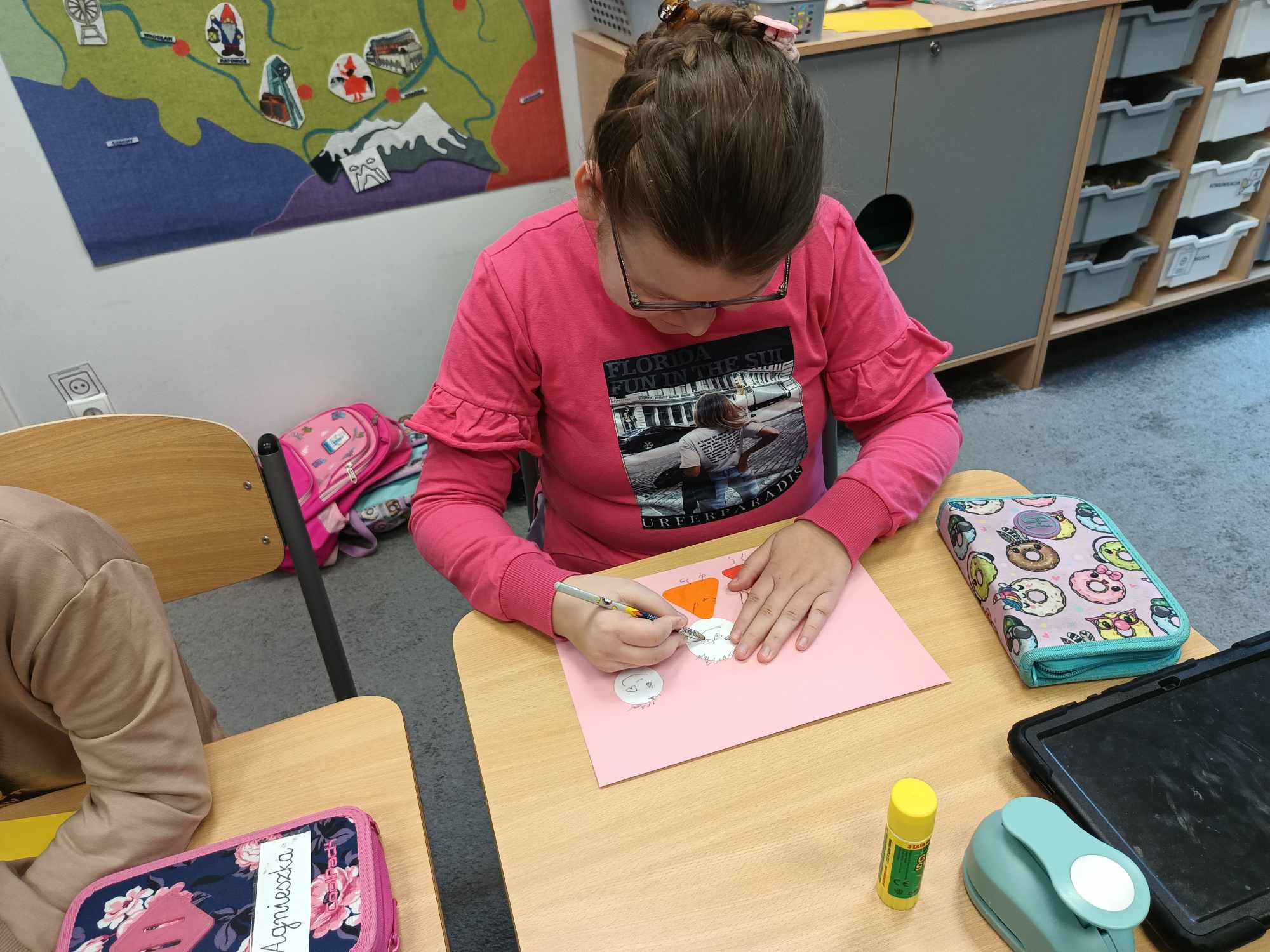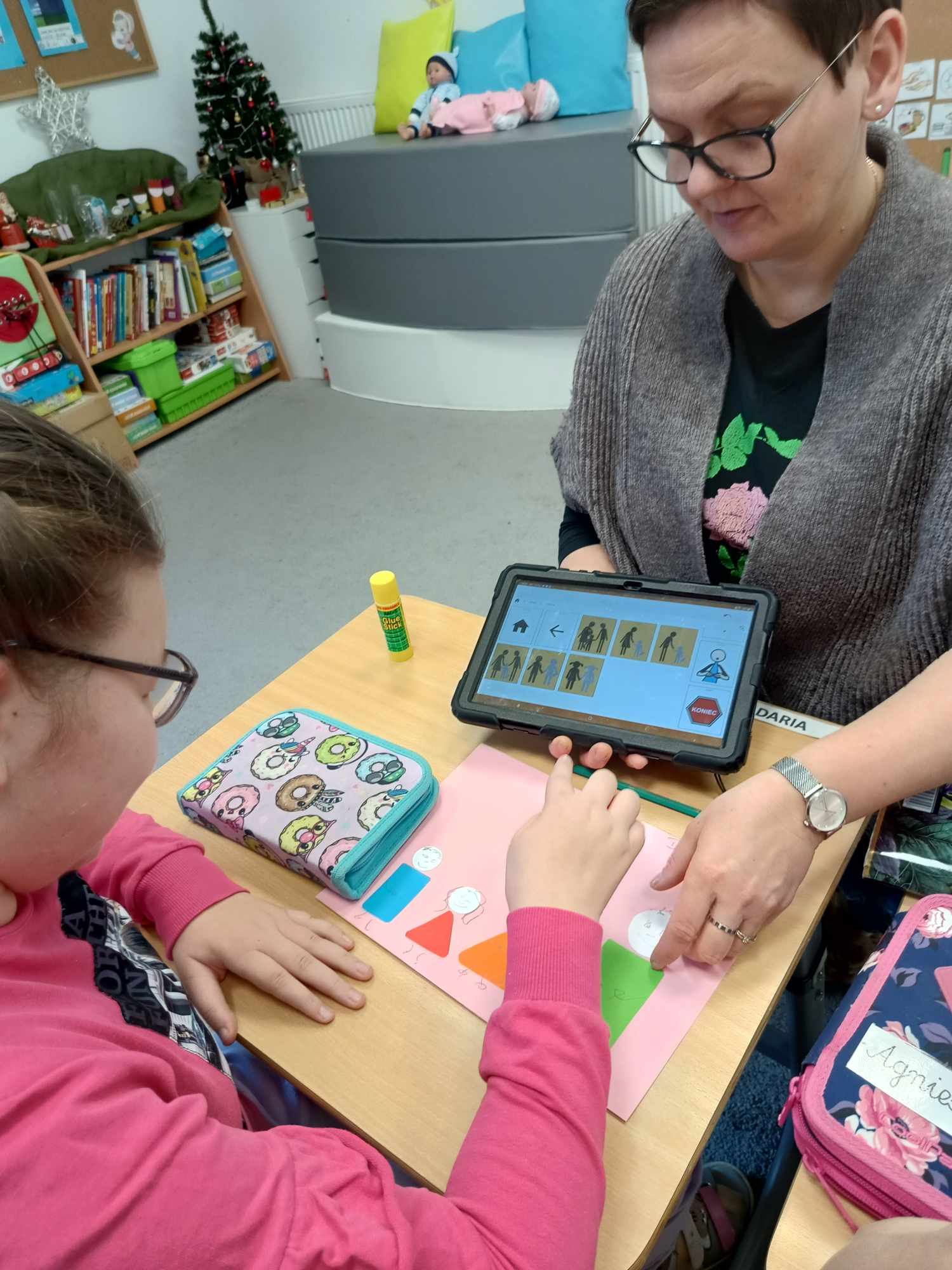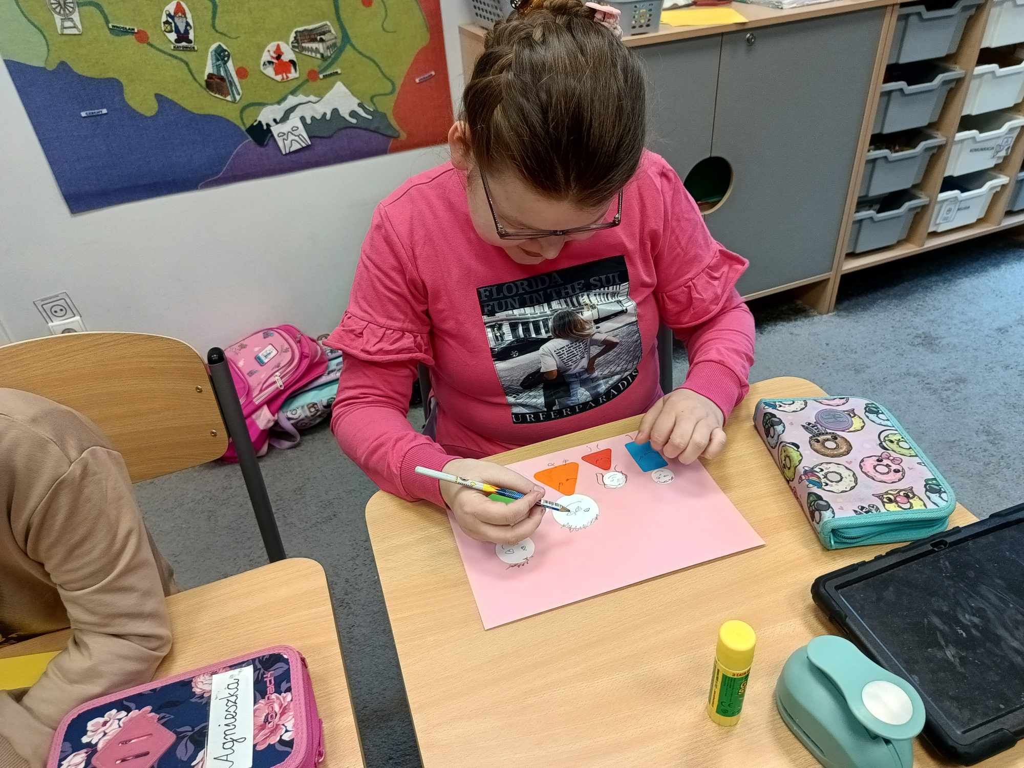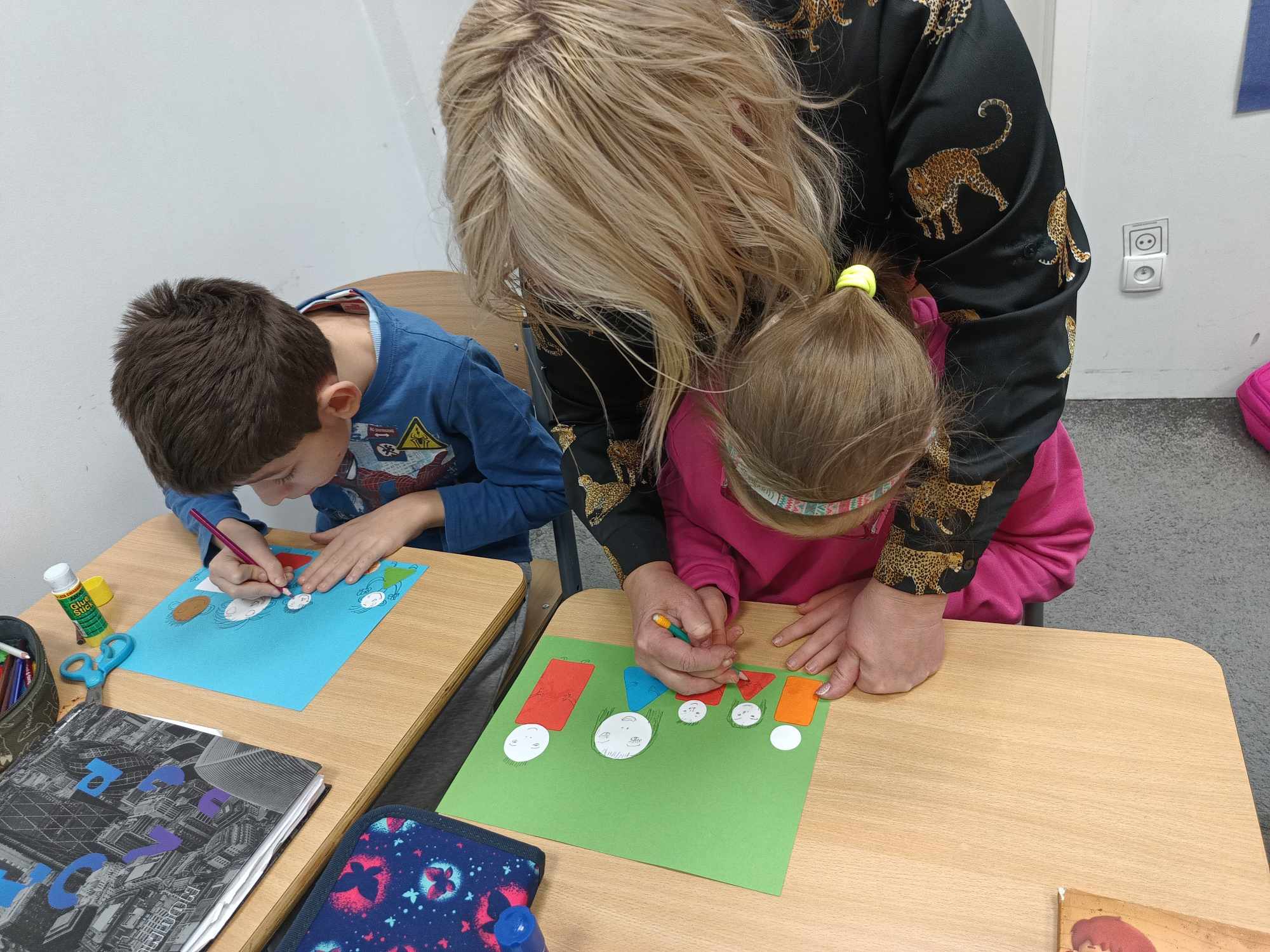 Omawiając temat tygodnia „Relacje rodzinne”, uczniowie oddziału „I” podjęli się niezwykle kreatywnego zadania, które pozwoliło im na wyrażenie swoich uczuć i więzi z najbliższymi. W ramach tego projektu wykonali piękne, ale nietypowe portrety swojej rodziny, które z pewnością zaskoczyły nie tylko ich samych, ale także rodziców. Portrety te były nietypowe, ponieważ zamiast tradycyjnych przedstawień, uczniowie wykorzystali figur geometryczne do stworzenia swoich dzieł. Każda postać została zbudowana z różnych kształtów – kół, kwadratów, trójkątów i prostokątów, co dodało pracom oryginalności. Utrwalali tym samy kształty i kolory oraz rozwijali sprawność motoryki małej.